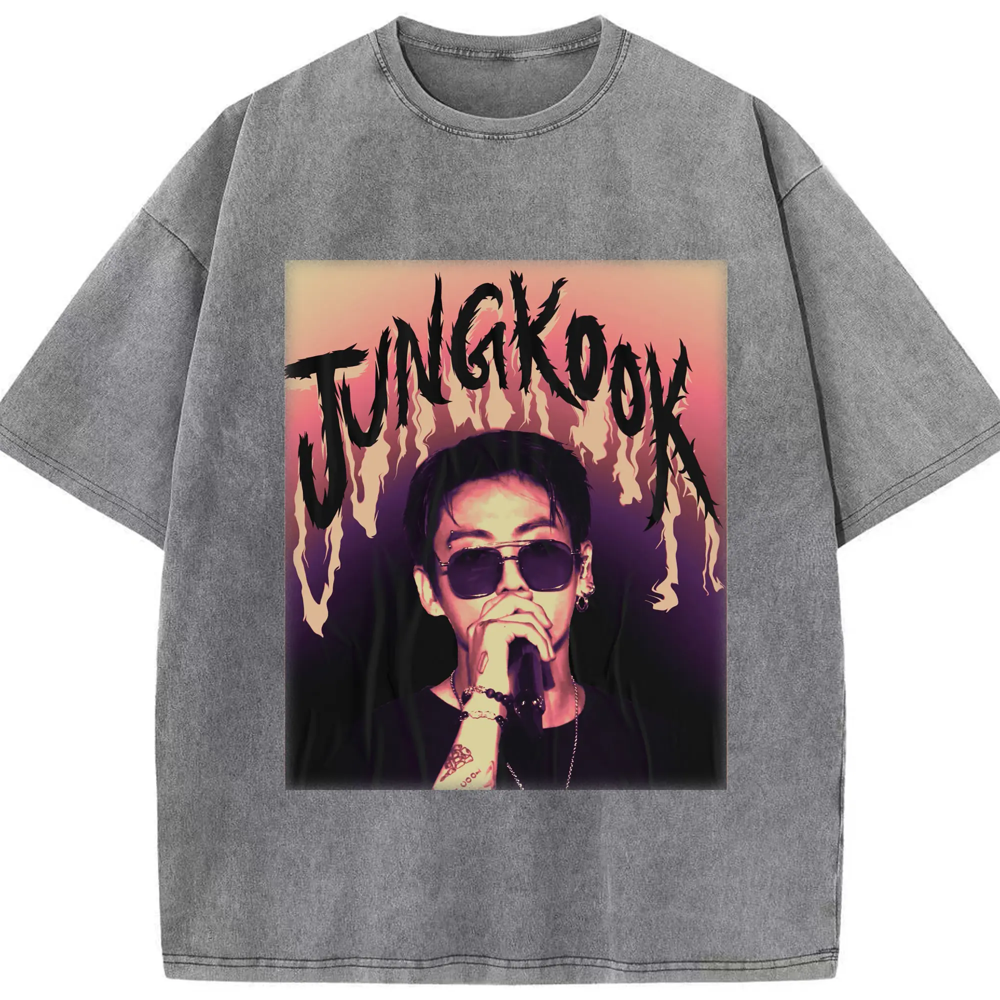 BTS ジョングク ヴィンテージデザイン 韓流アイドル グッズ メンズ レディース対応 - 綿100% 半袖Tシャツ ・ フロントプリント ・ 快適 通気性 ・ 日常使い 散歩 スポーツ用