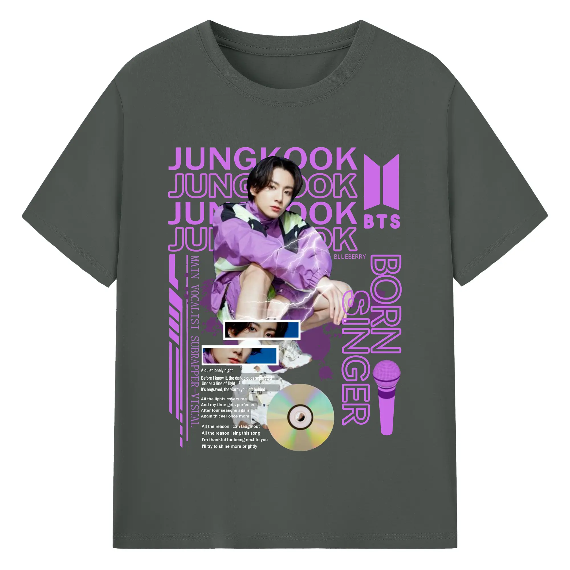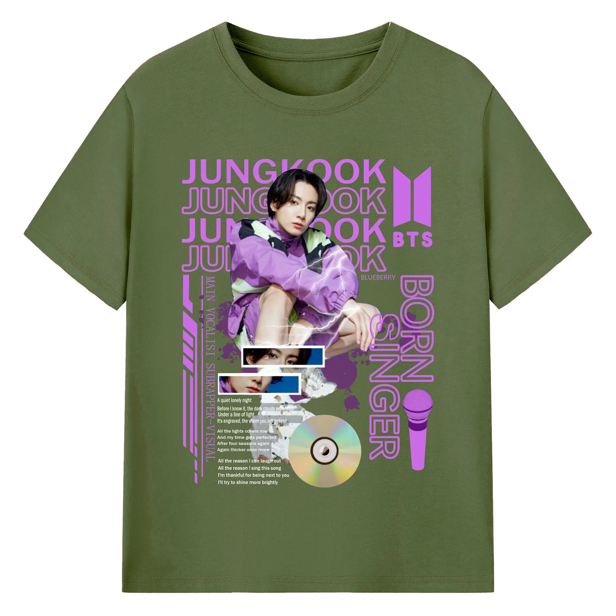 ジョングク ARMY応援Tシャツ 推し活コーデの定番💜 - 綿100% 半袖Tシャツ ・ フロントプリント ・ 快適 通気性 ・ 日常使い 散歩 スポーツ用