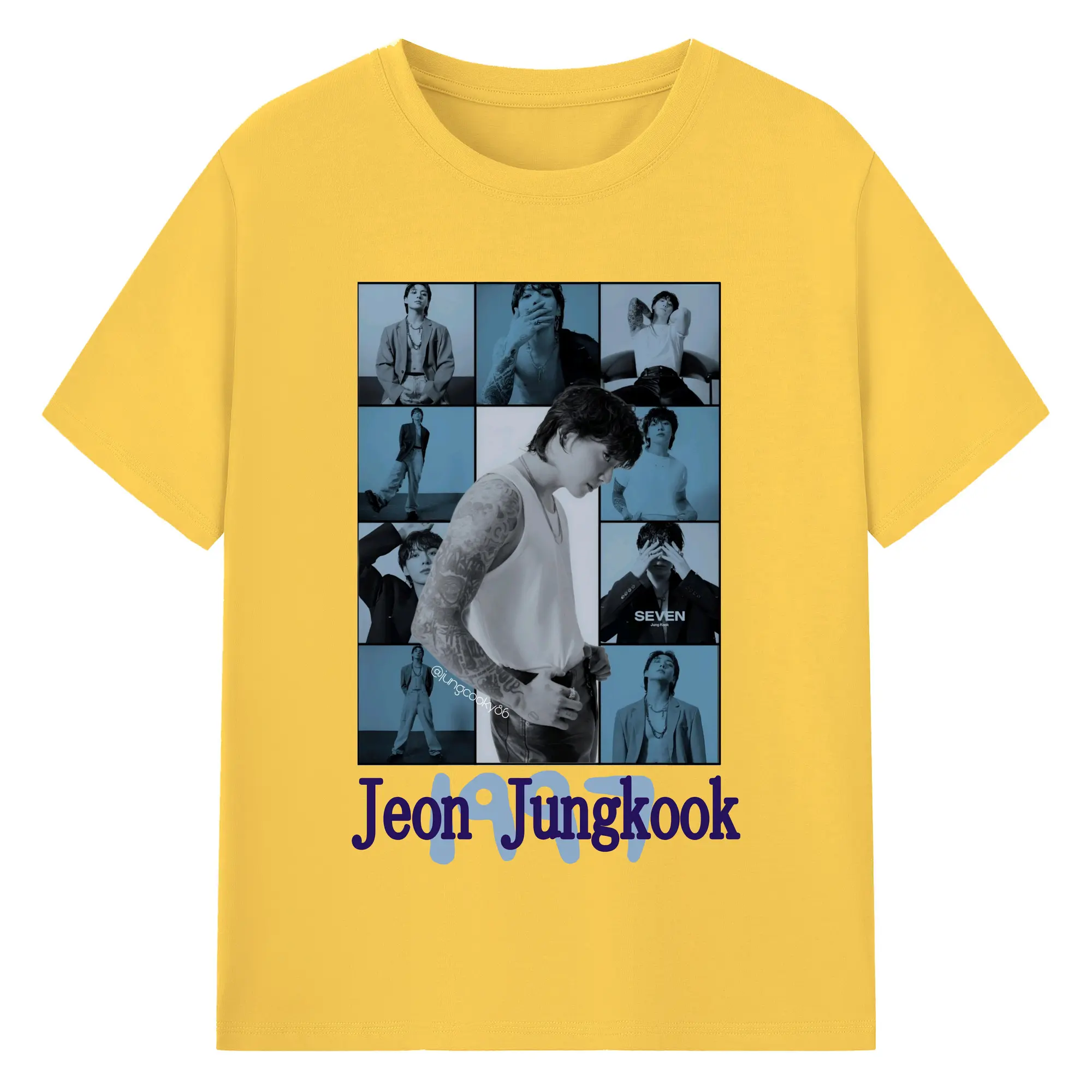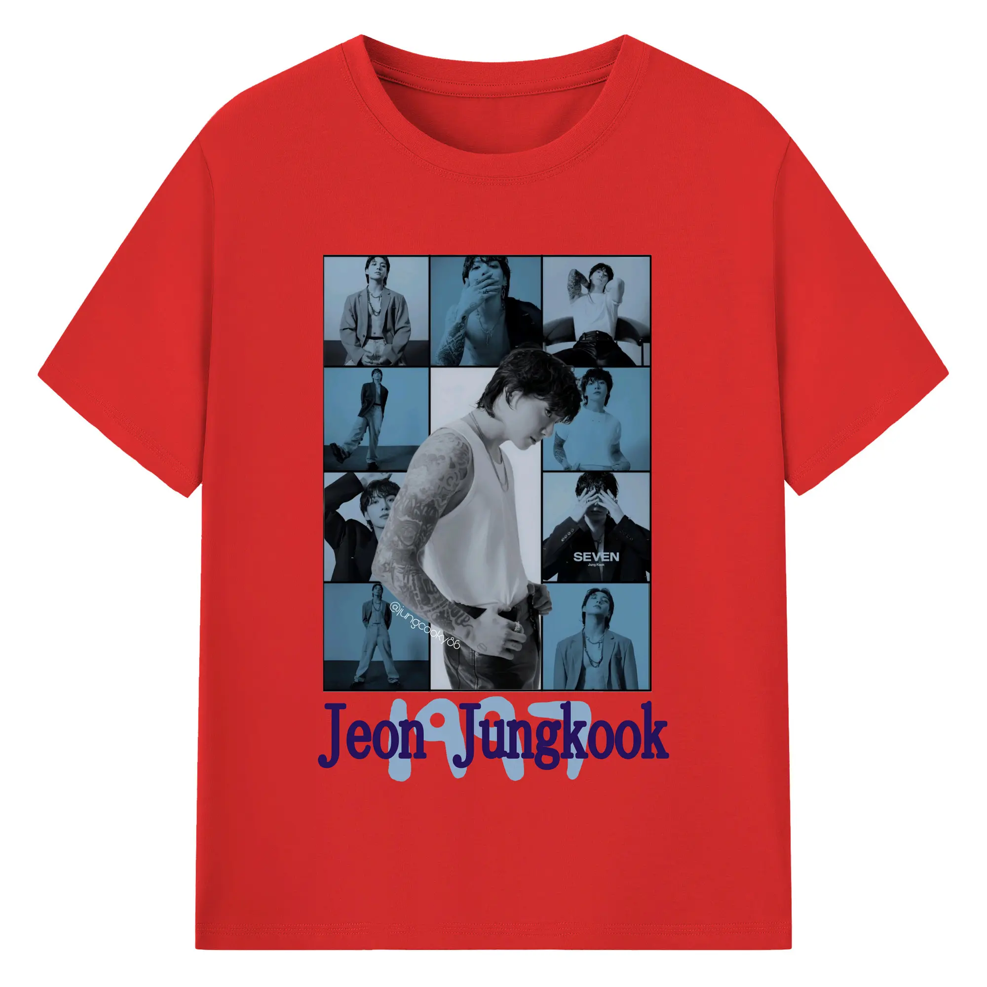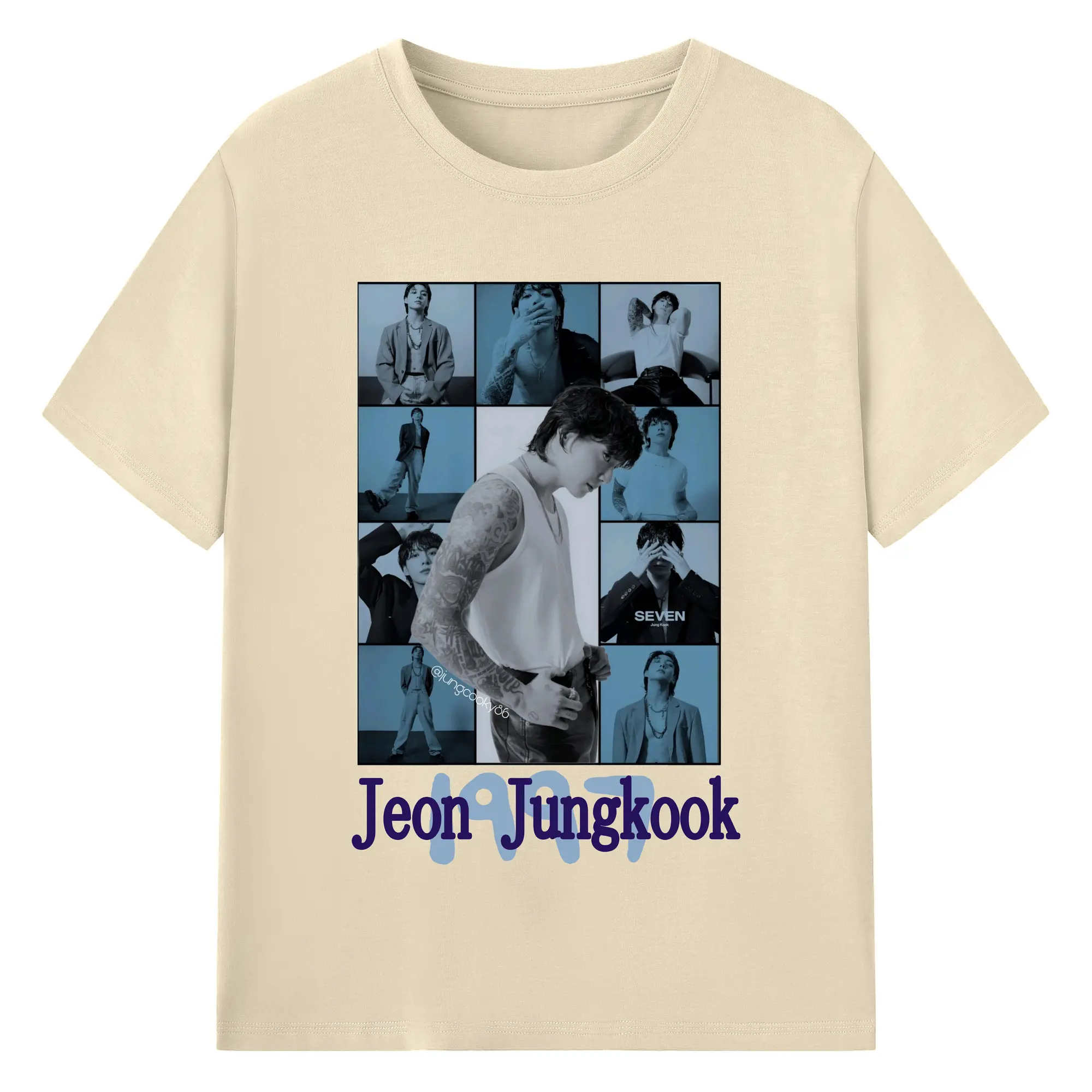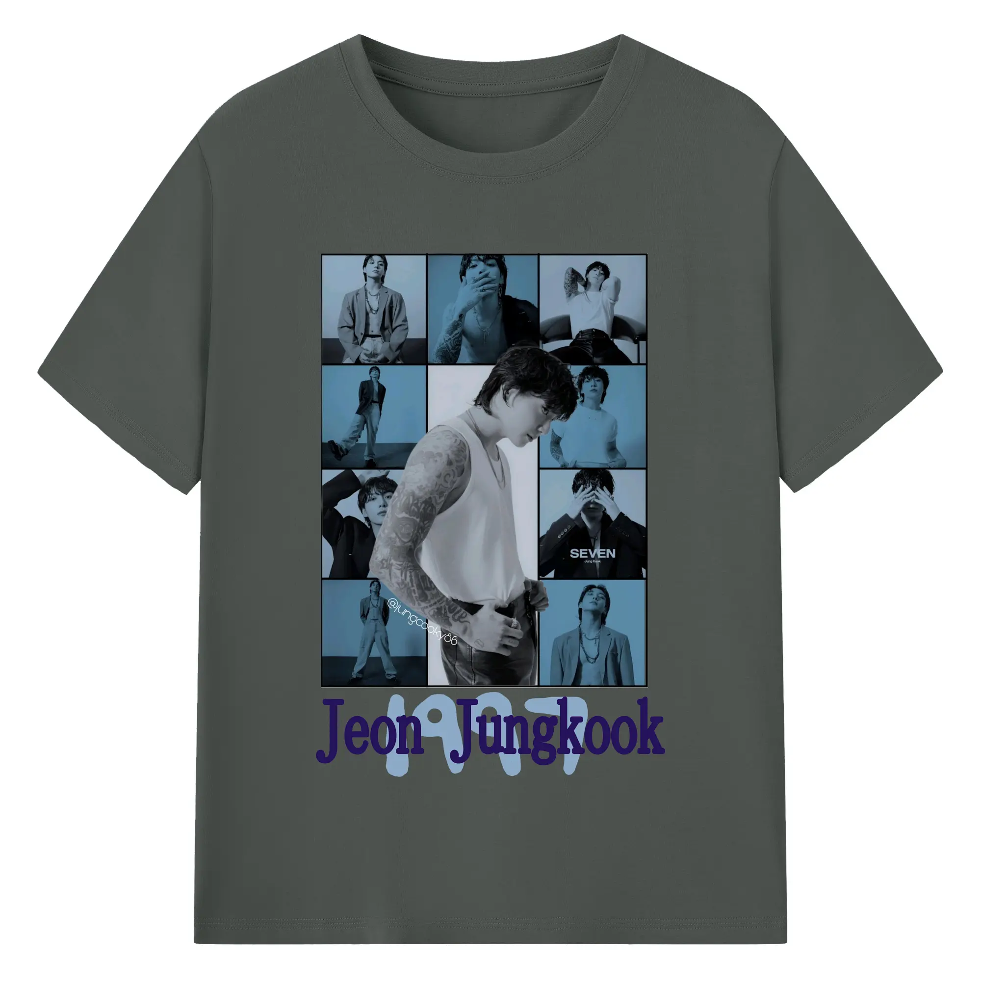 BTS ジョングク おしゃれ 韓流ストリートスタイル2025新作! - 綿100% 半袖Tシャツ ・ フロントプリント ・ 快適 通気性 ・ 日常使い 散歩 スポーツ用