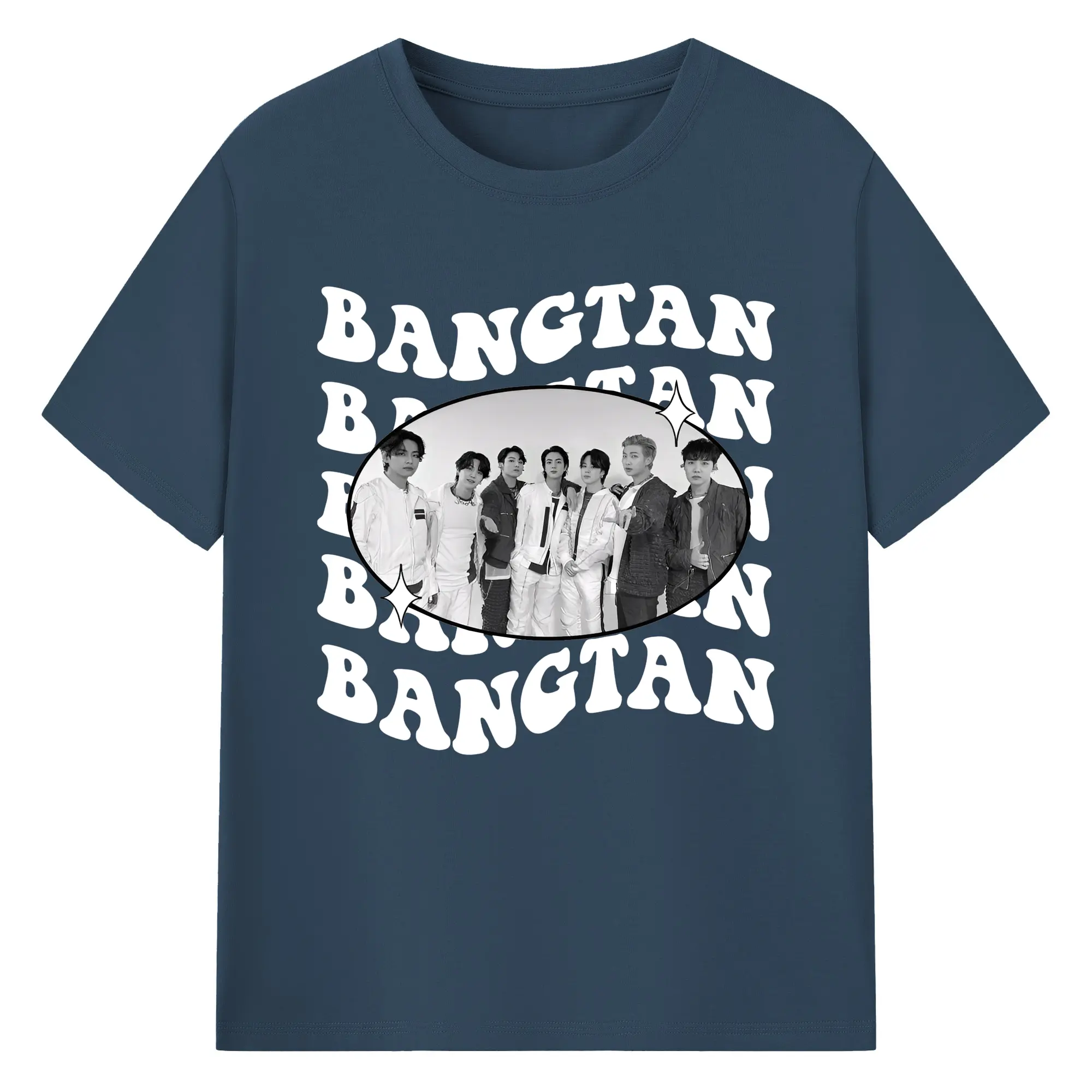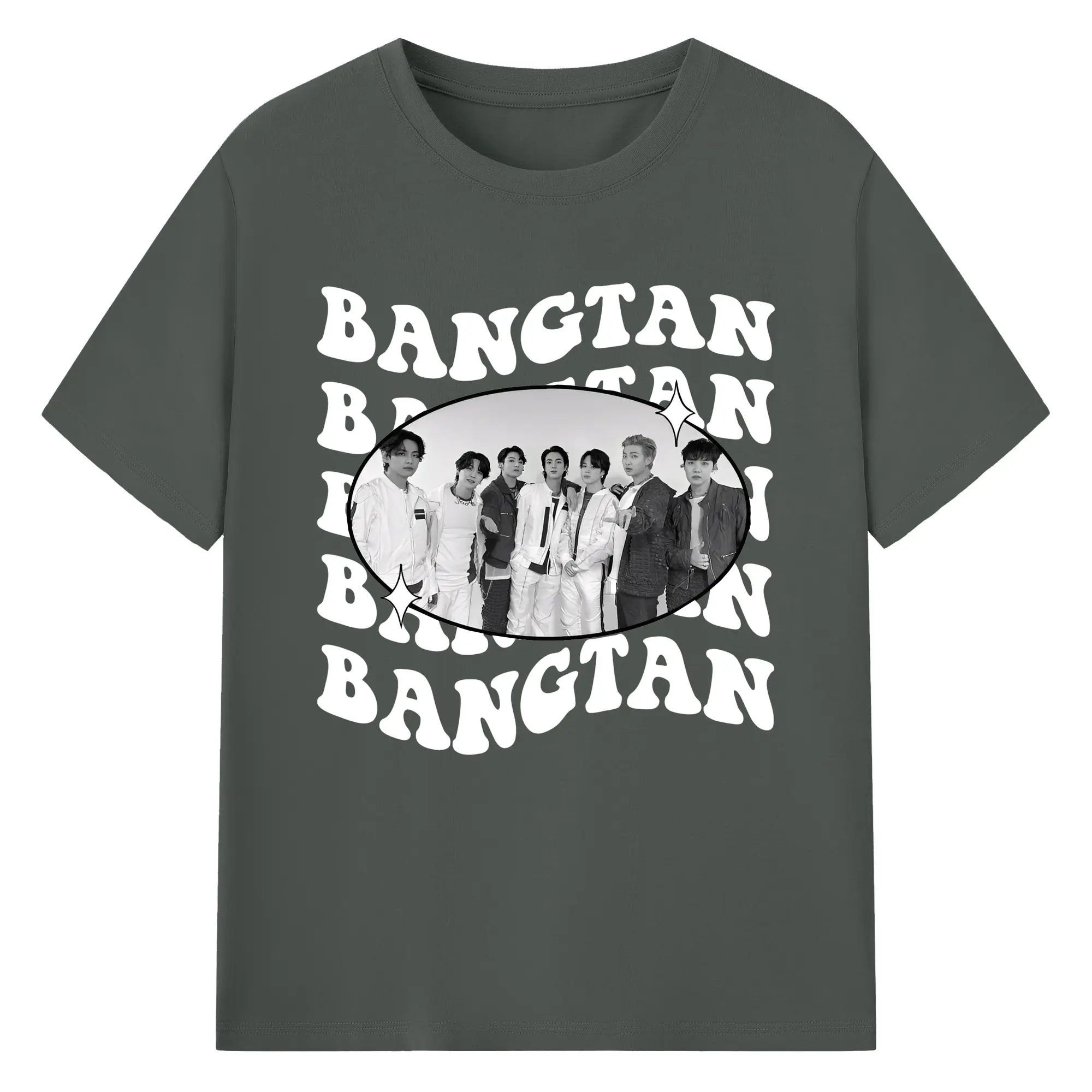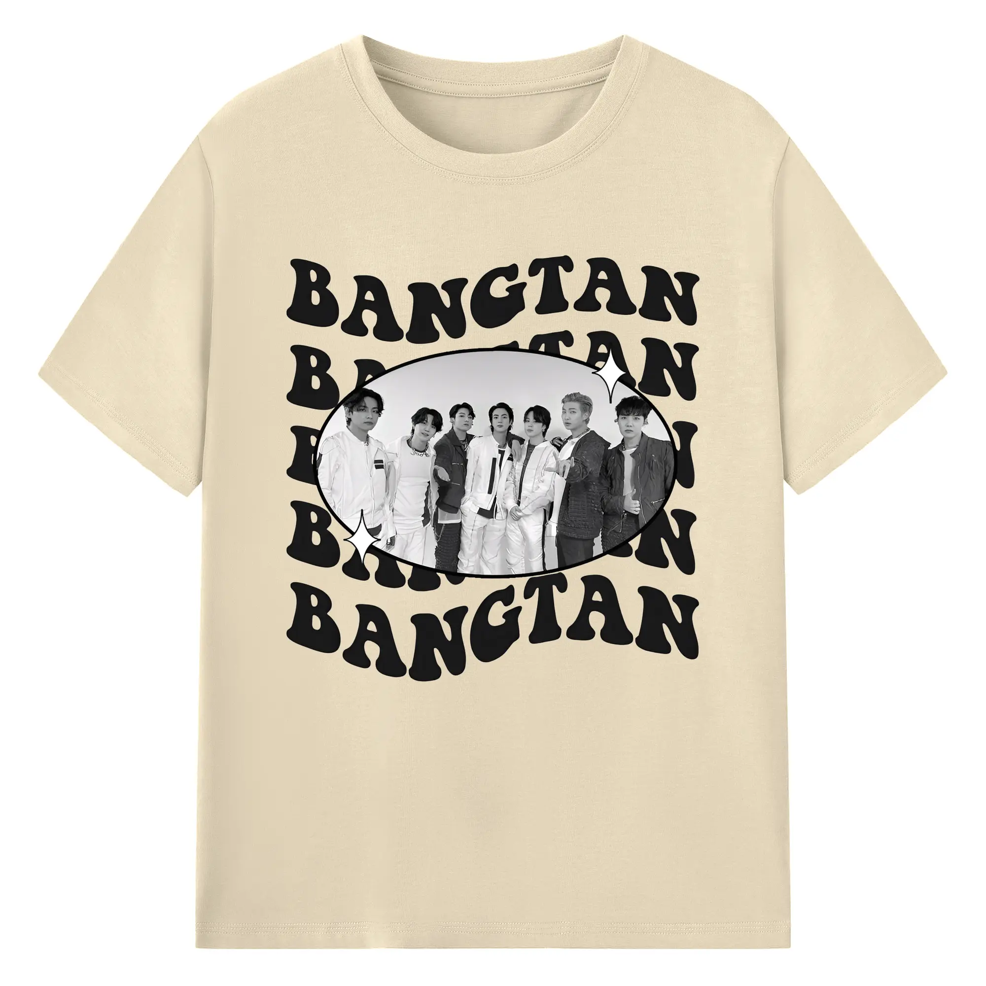 BTS メンバー風 韓流ストリート 男女兼用 人気コーデ - 綿100% ヴィンテージ風 半袖Tシャツ ・ フロントプリント ・ 柔らか肌触り ・ 通気性 快適 ・ スポーツ カジュアル 外出用