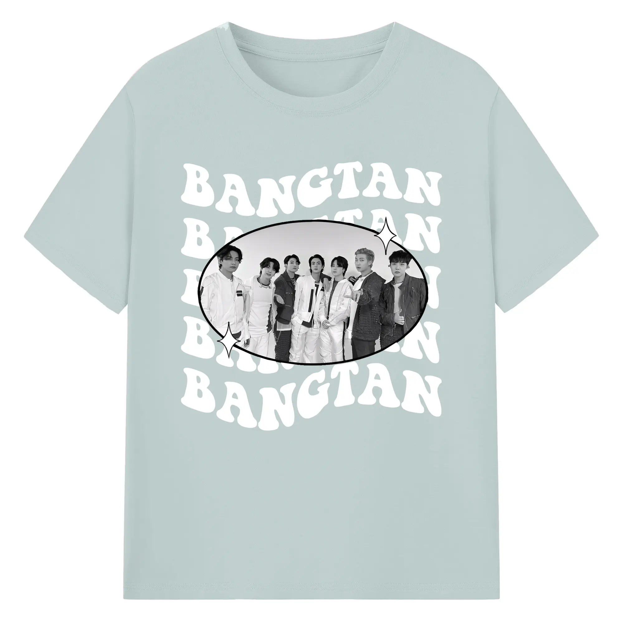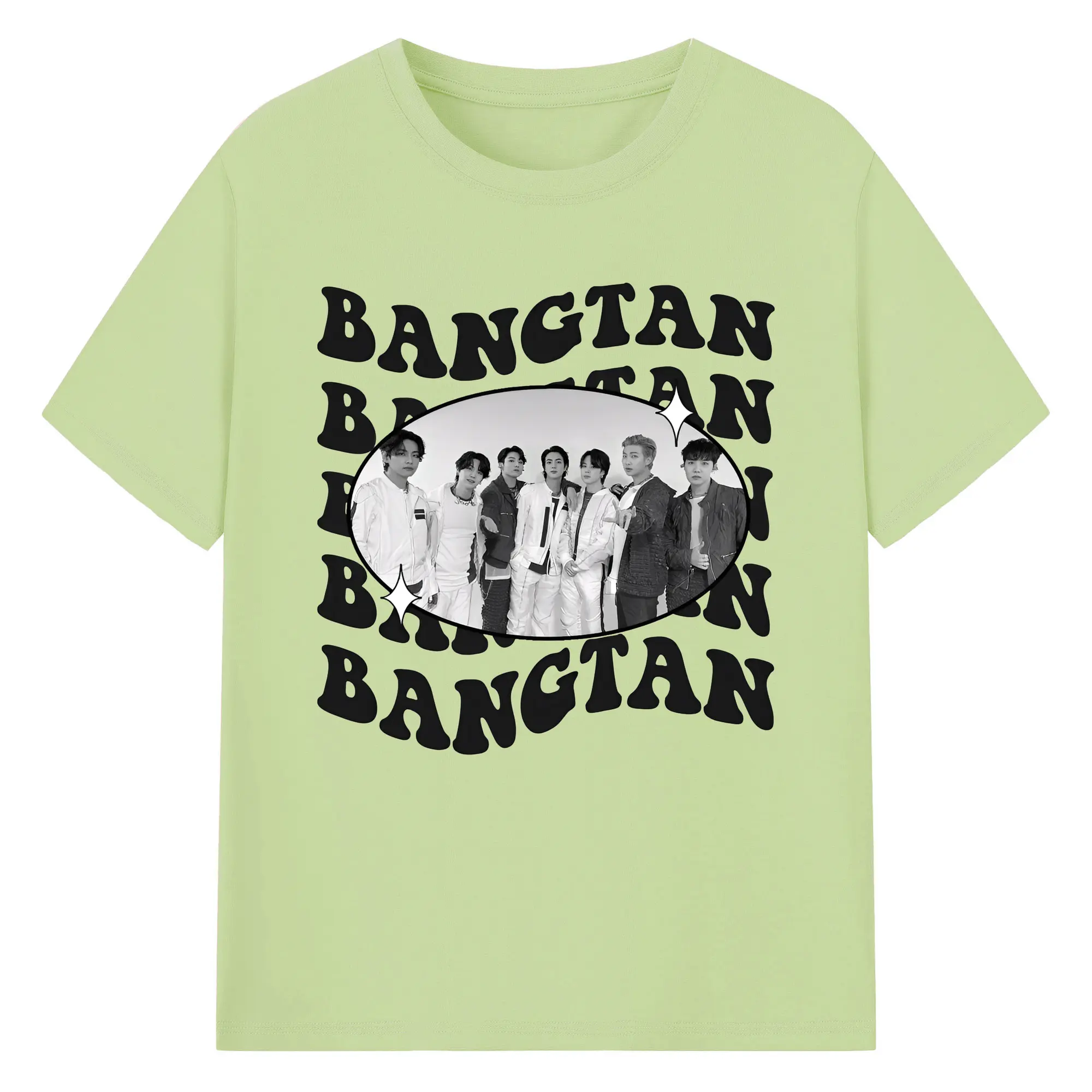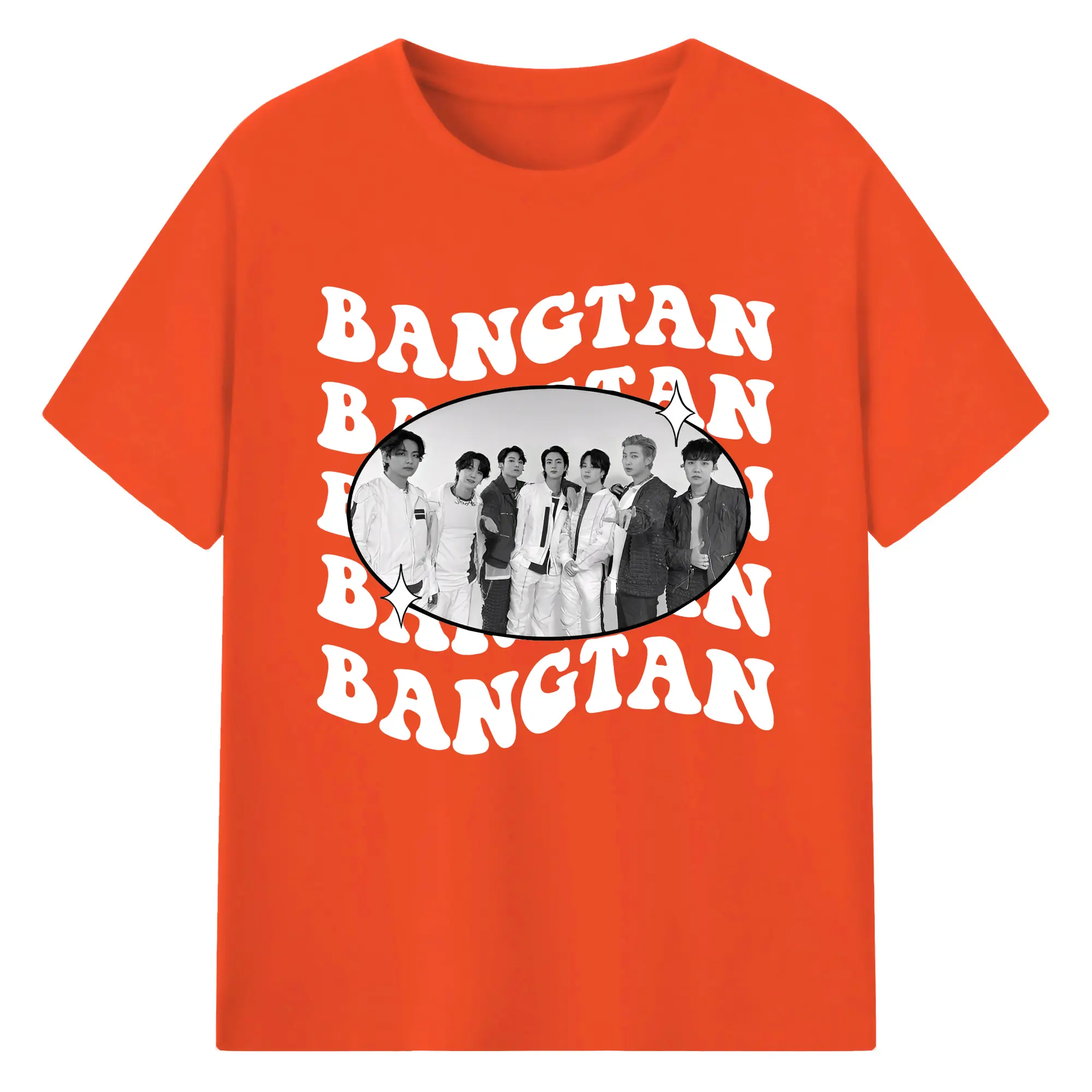 BTS メンバー風 韓流ストリート 男女兼用 人気コーデ - 綿100% ヴィンテージ風 半袖Tシャツ ・ フロントプリント ・ 柔らか肌触り ・ 通気性 快適 ・ スポーツ カジュアル 外出用