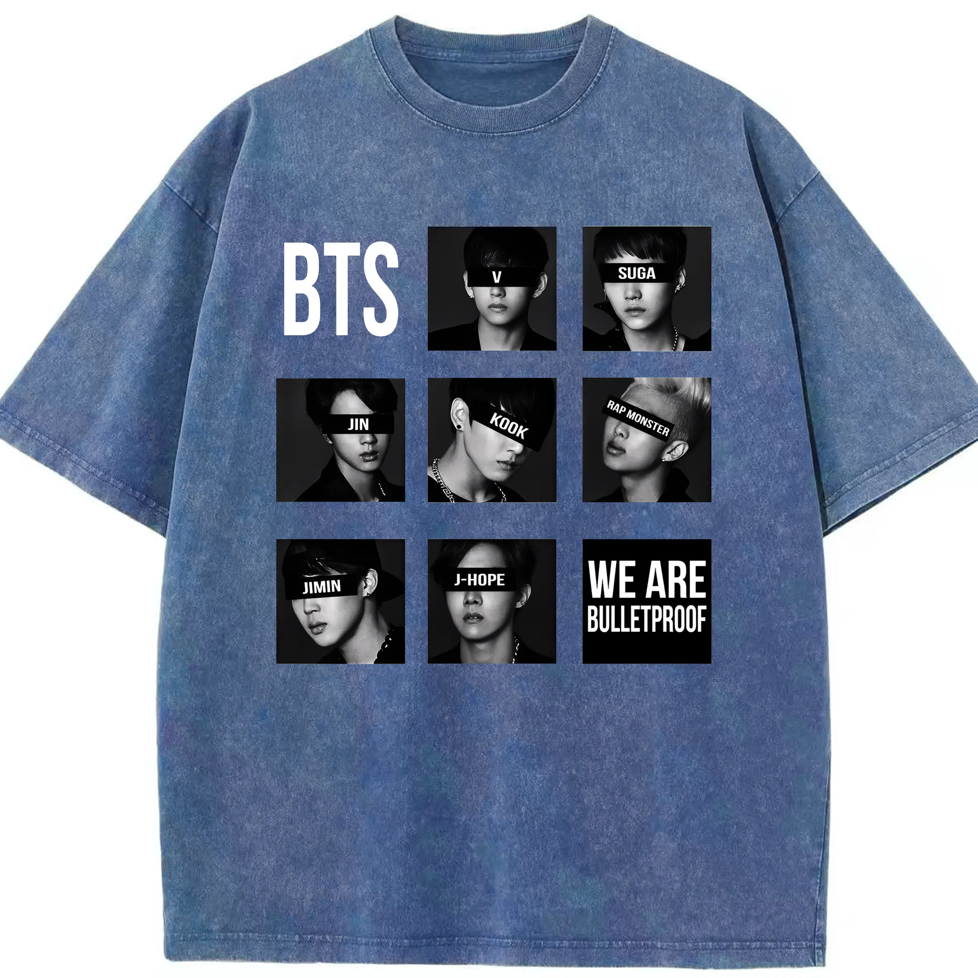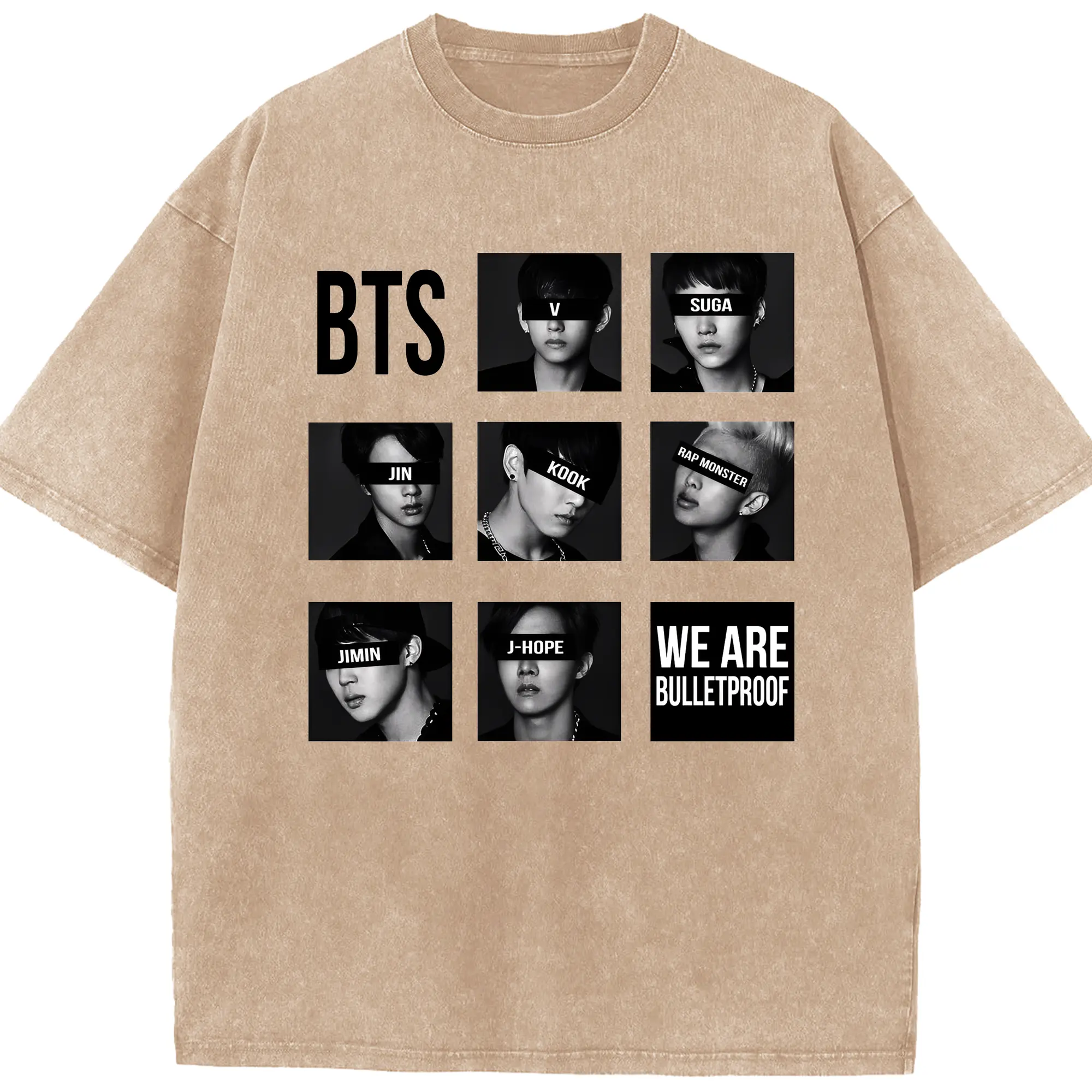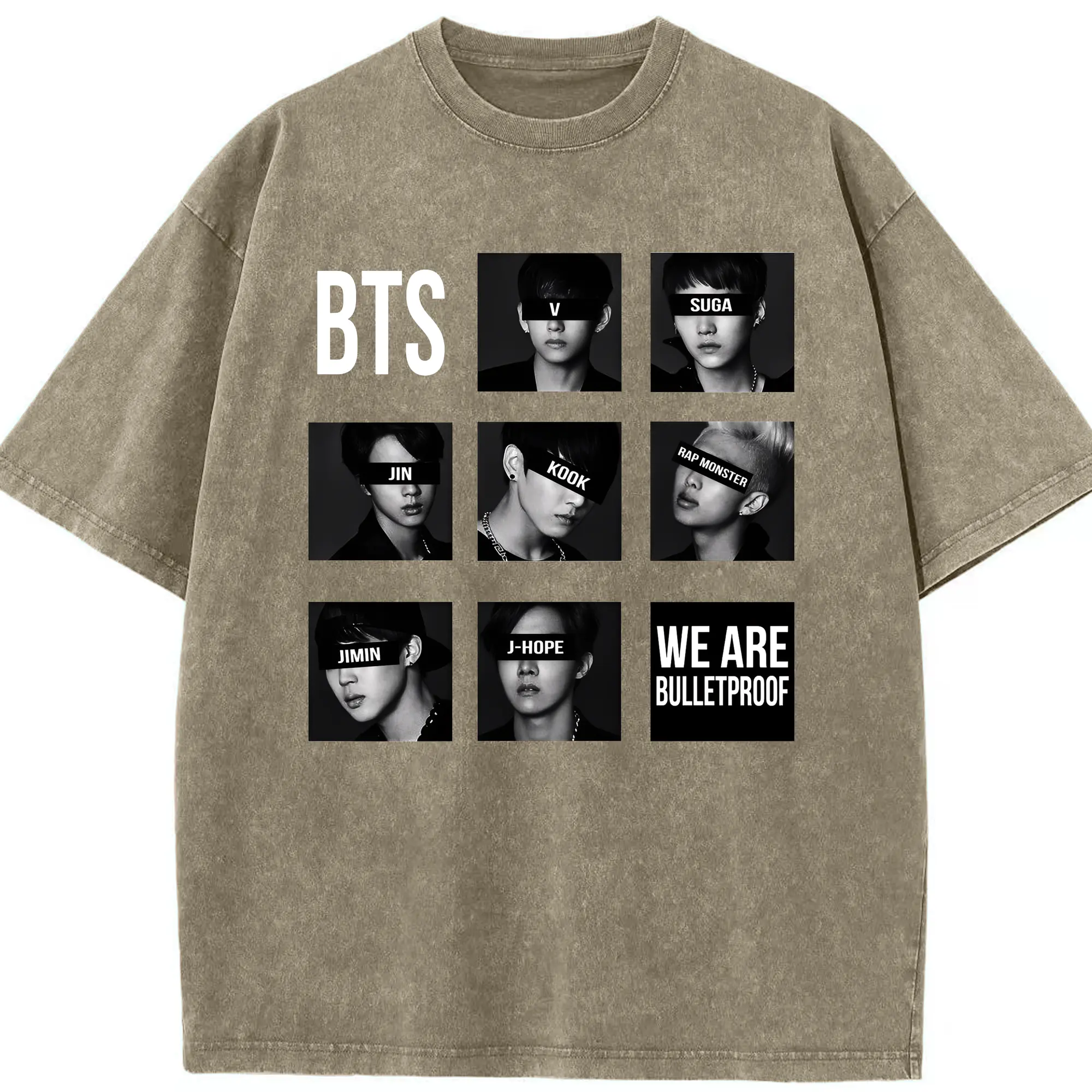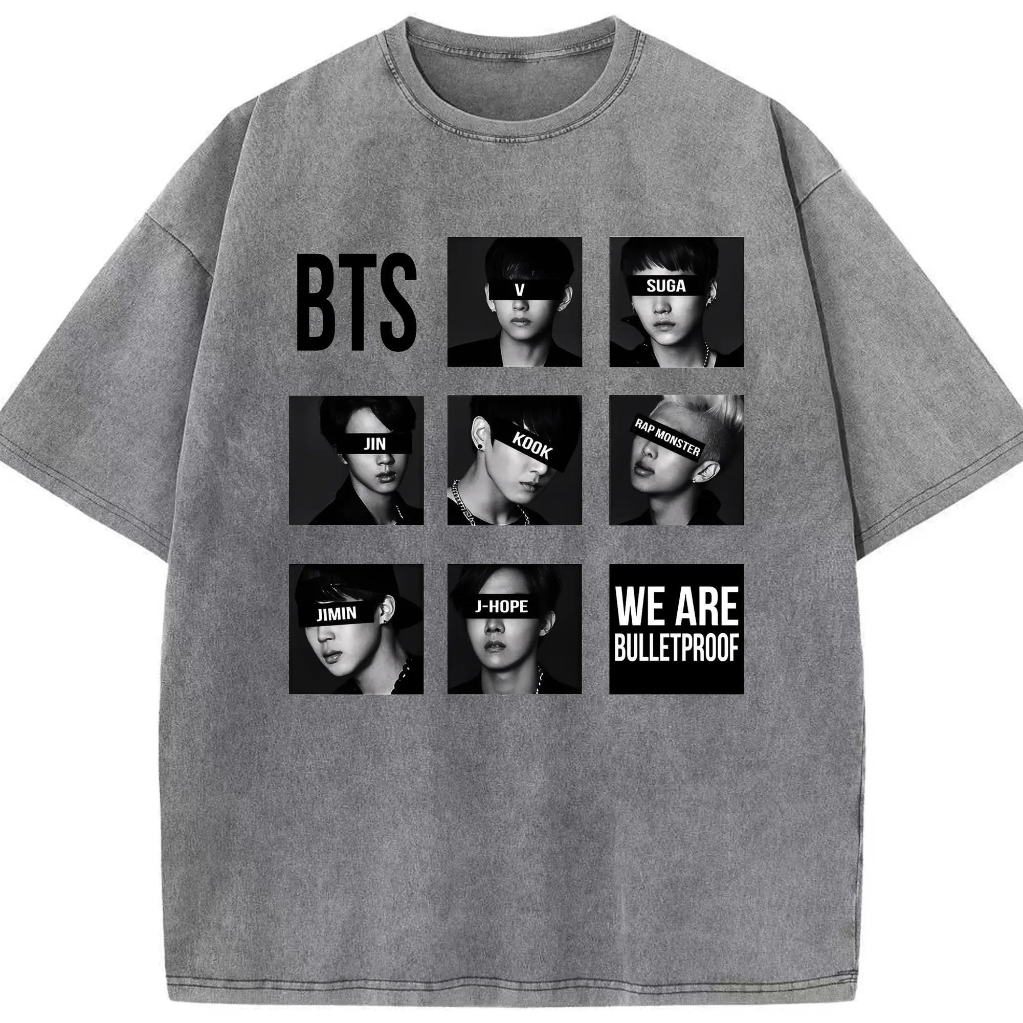 BTS メンバー風 韓流ストリート 男女兼用 人気コーデ - 綿100% ヴィンテージ風 半袖Tシャツ ・ フロントプリント ・ 柔らか肌触り ・ 通気性 快適 ・ スポーツ カジュアル 外出用