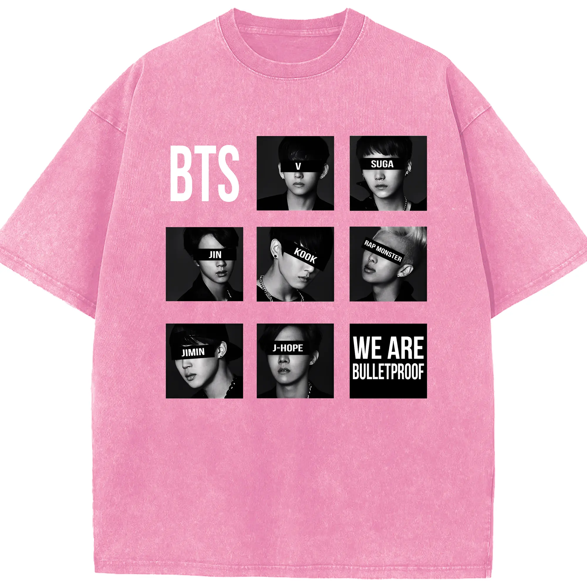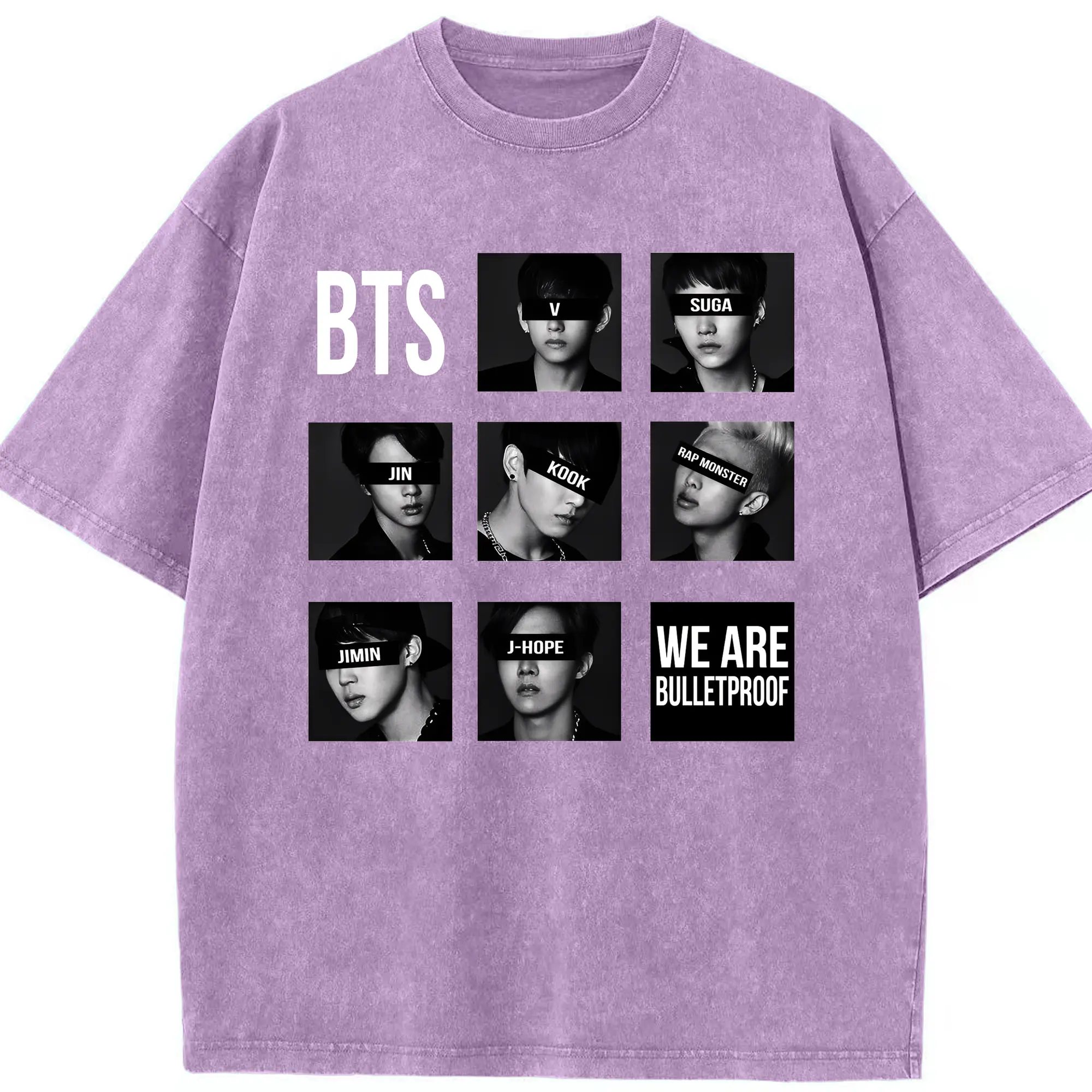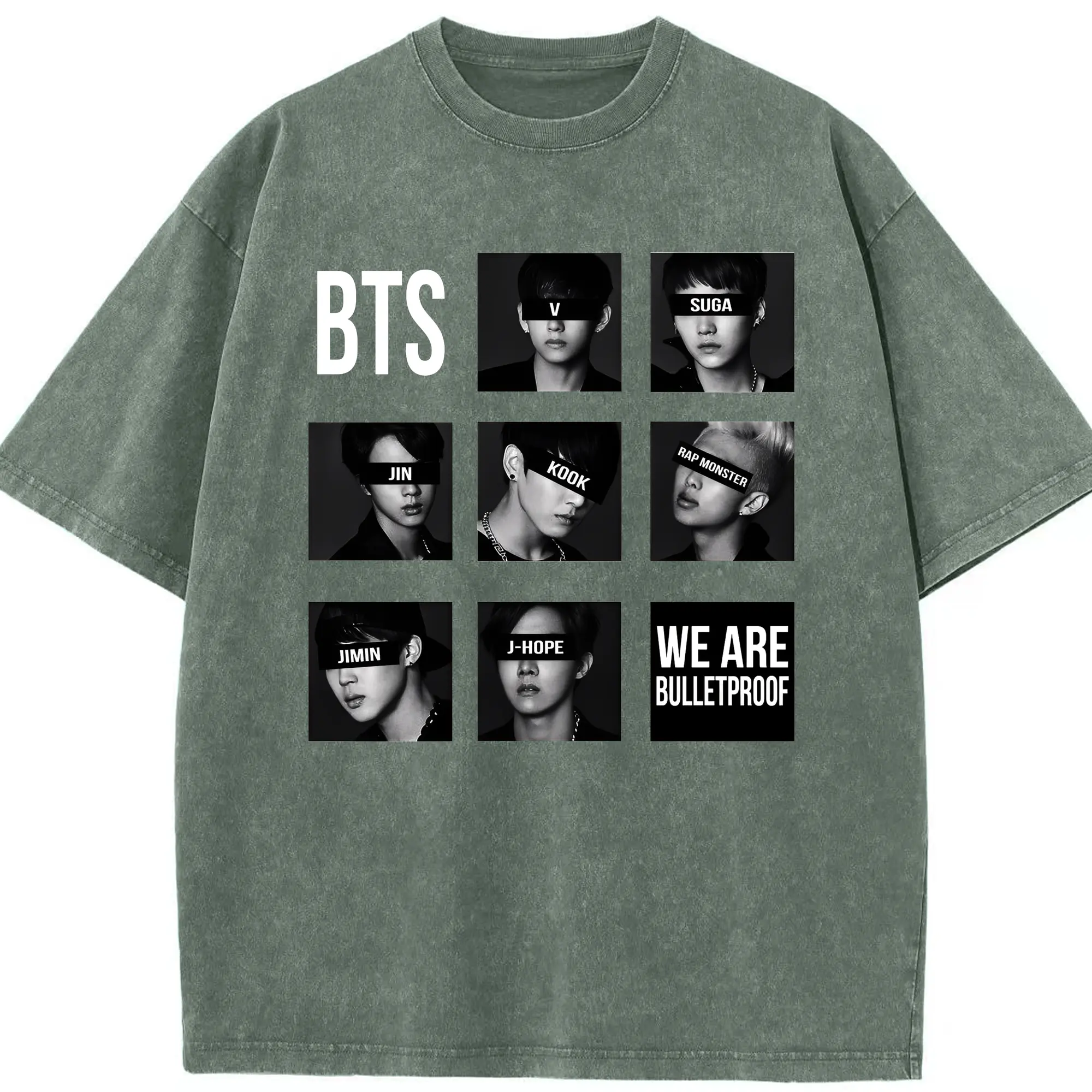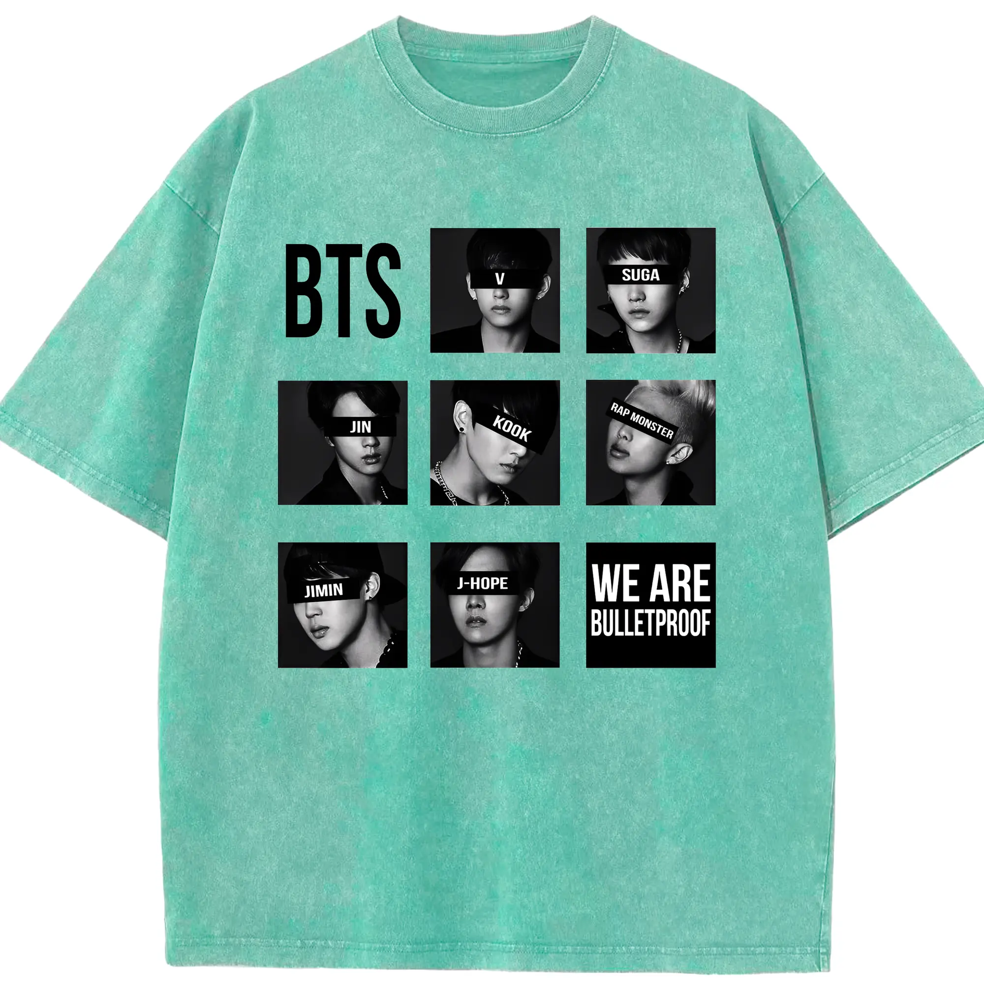 BTS メンバー風 韓流ストリート 男女兼用 人気コーデ - 綿100% ヴィンテージ風 半袖Tシャツ ・ フロントプリント ・ 柔らか肌触り ・ 通気性 快適 ・ スポーツ カジュアル 外出用