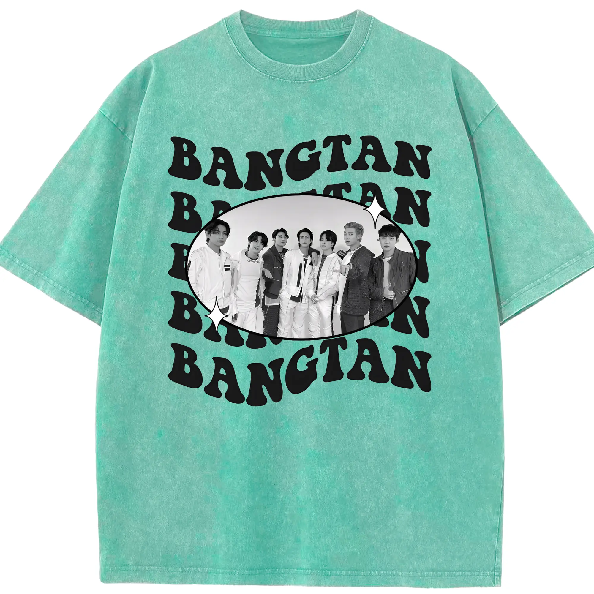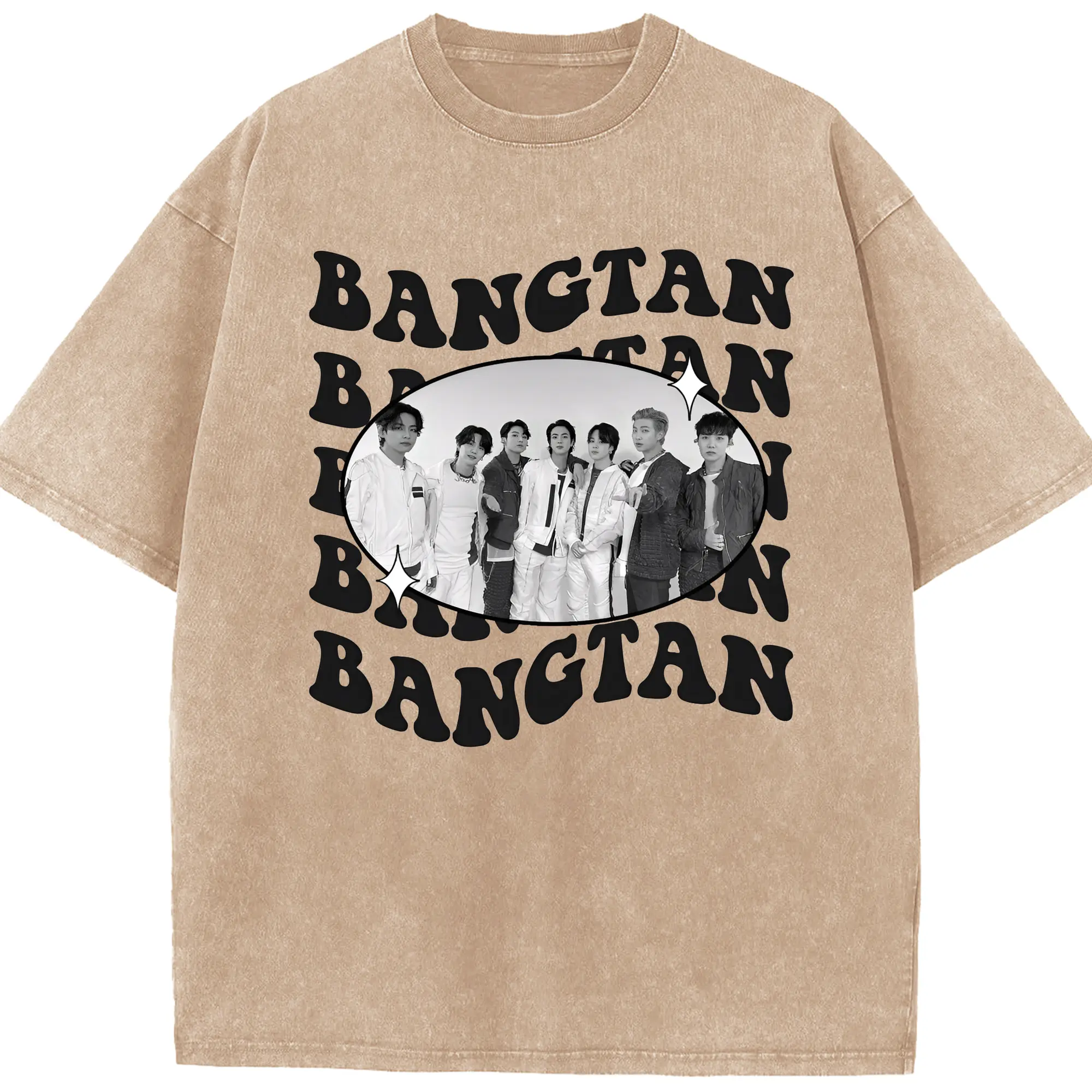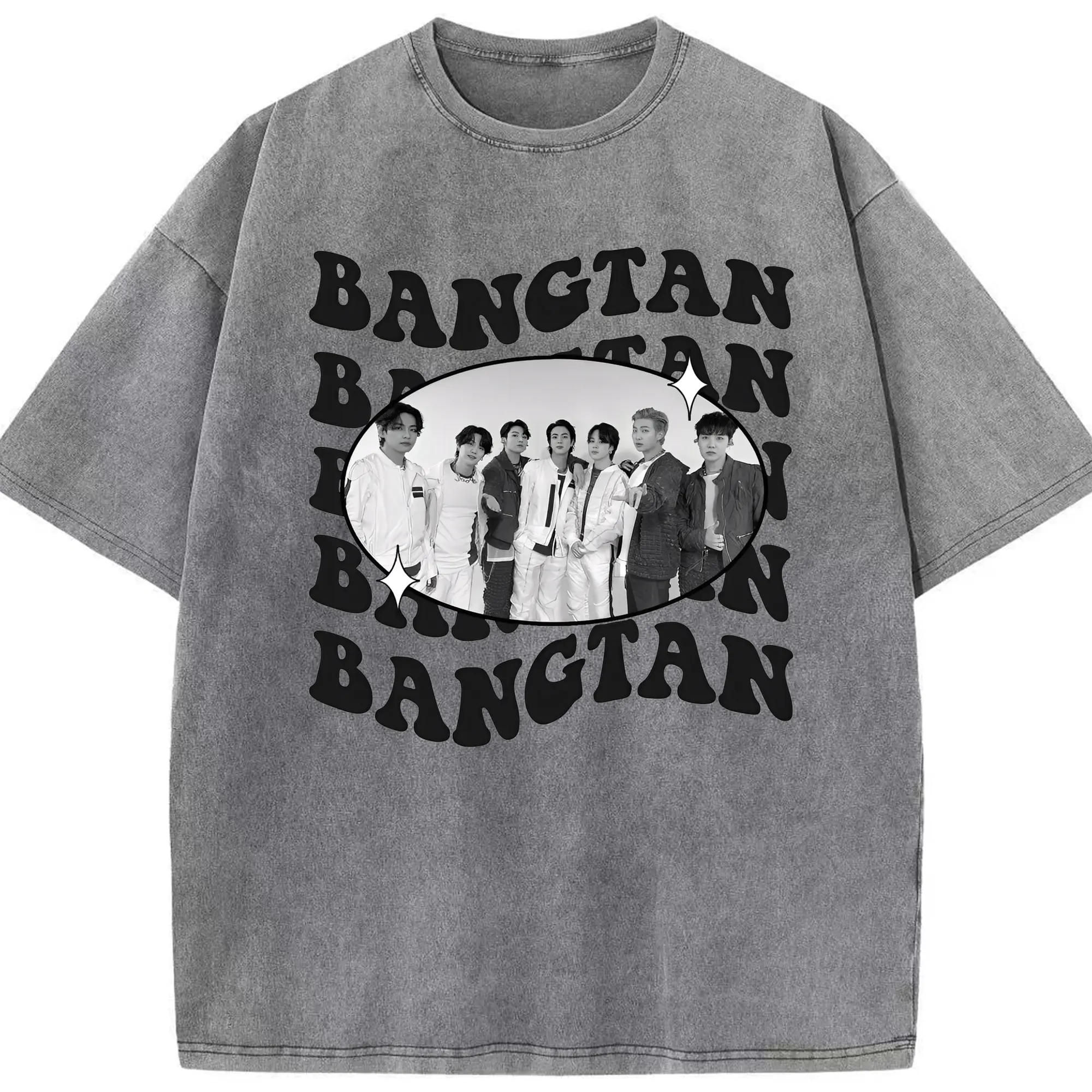 バンタン Qバージョン カートゥーン韓流ファッション - 綿100% ヴィンテージ風 半袖Tシャツ ・ フロントプリント ・ 柔らか肌触り ・ 通気性 快適 ・ スポーツ カジュアル 外出用