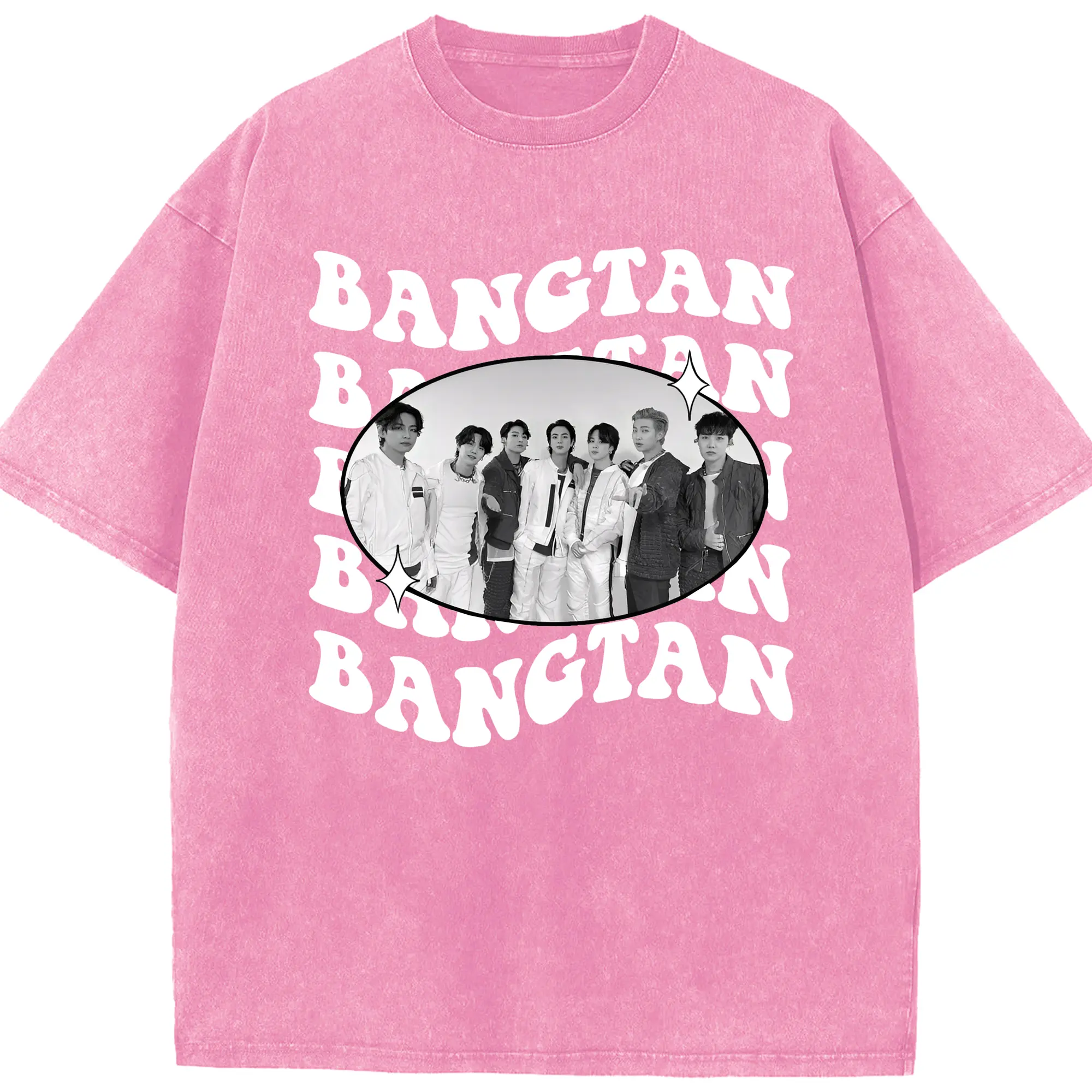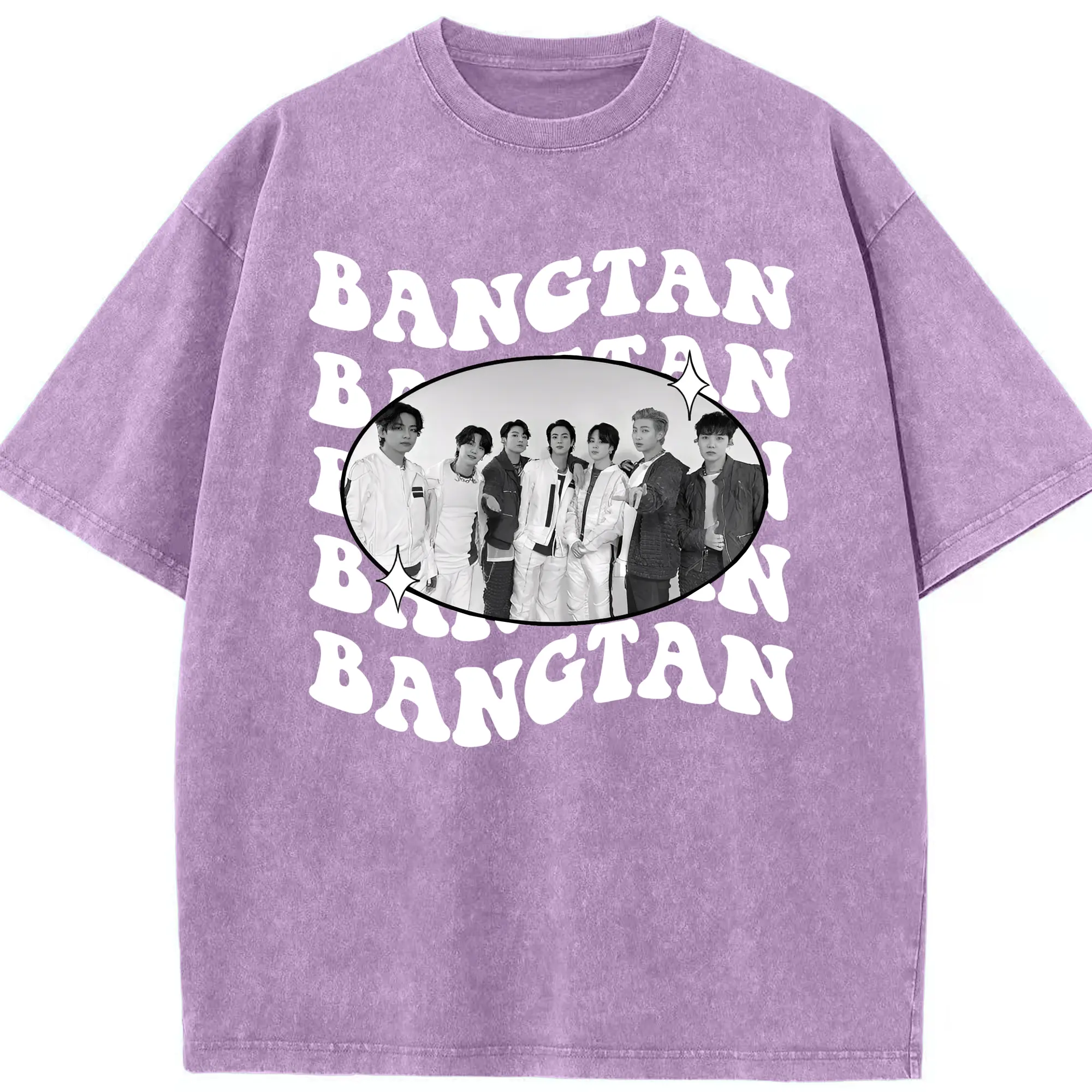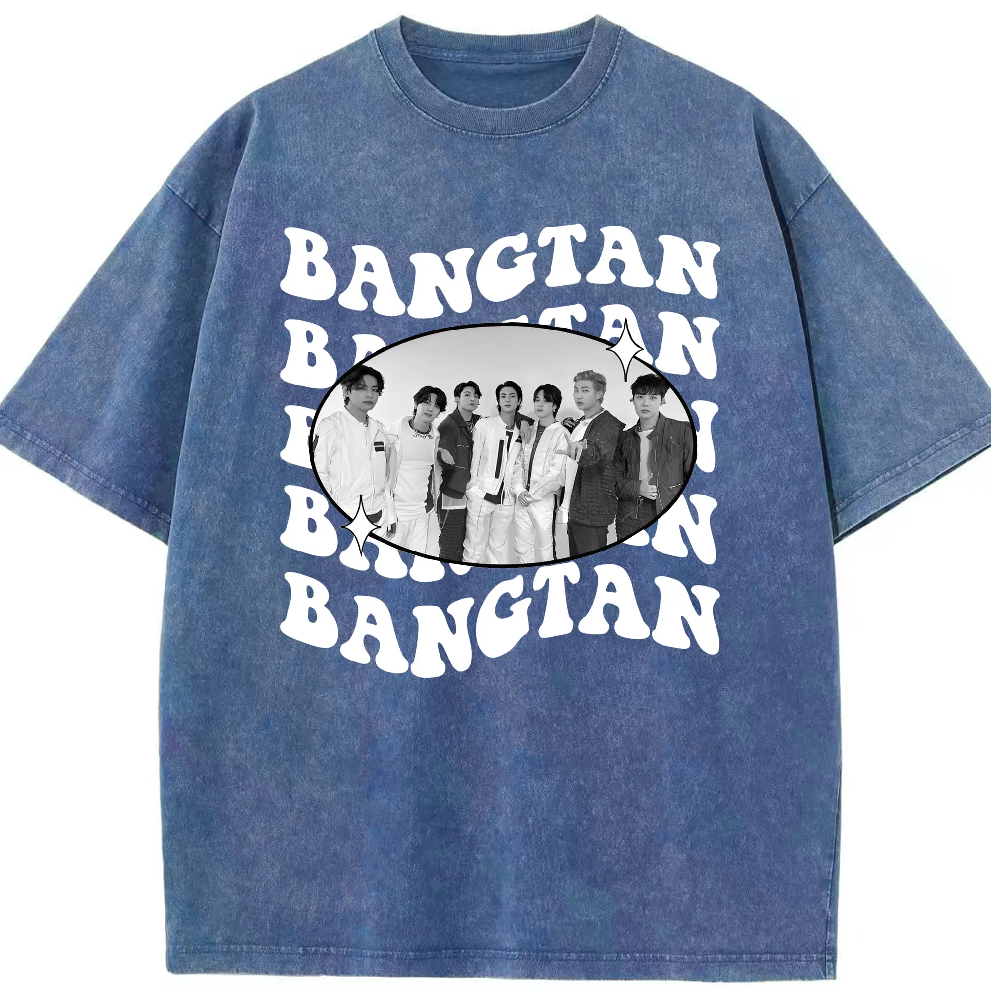 バンタン Qバージョン カートゥーン韓流ファッション - 綿100% ヴィンテージ風 半袖Tシャツ ・ フロントプリント ・ 柔らか肌触り ・ 通気性 快適 ・ スポーツ カジュアル 外出用