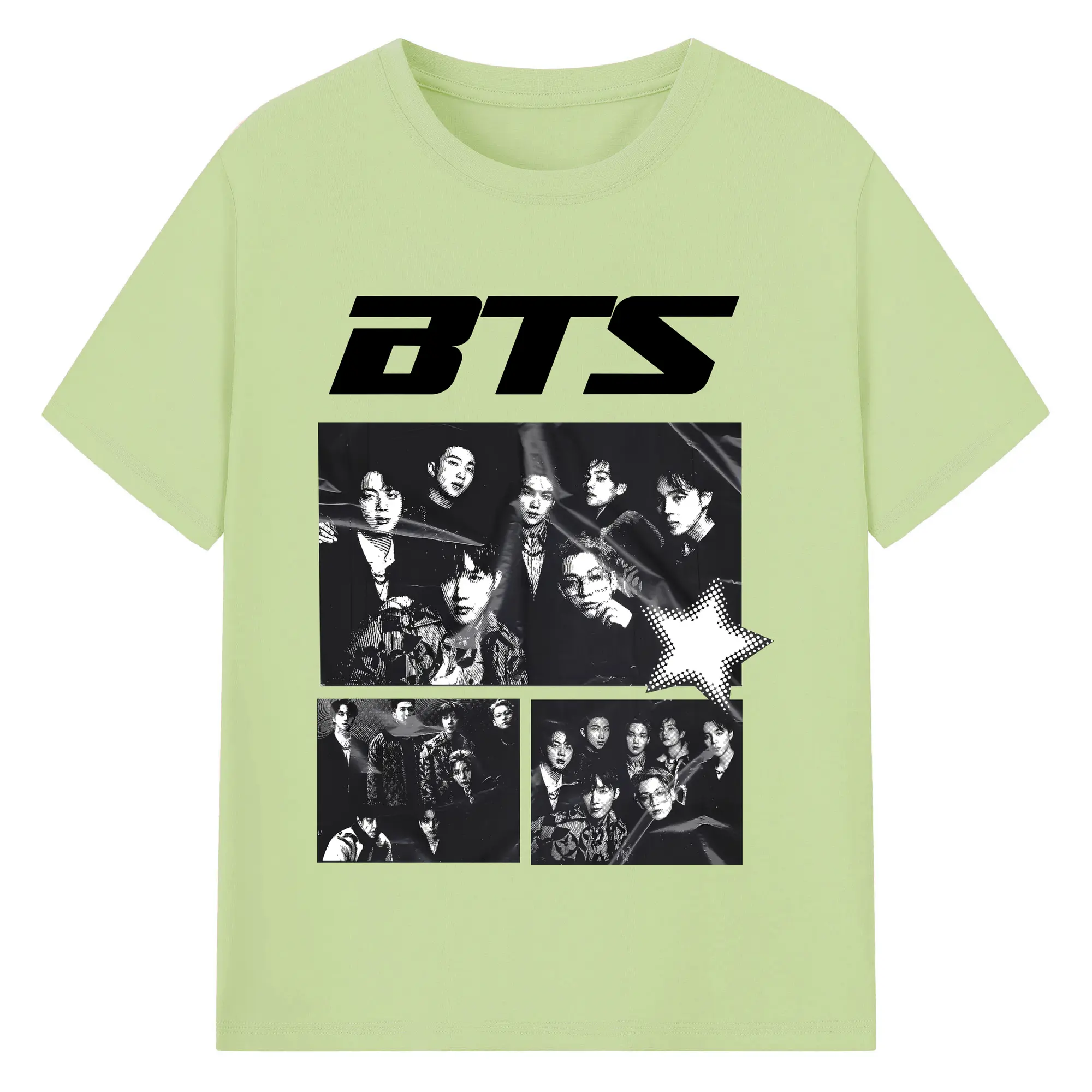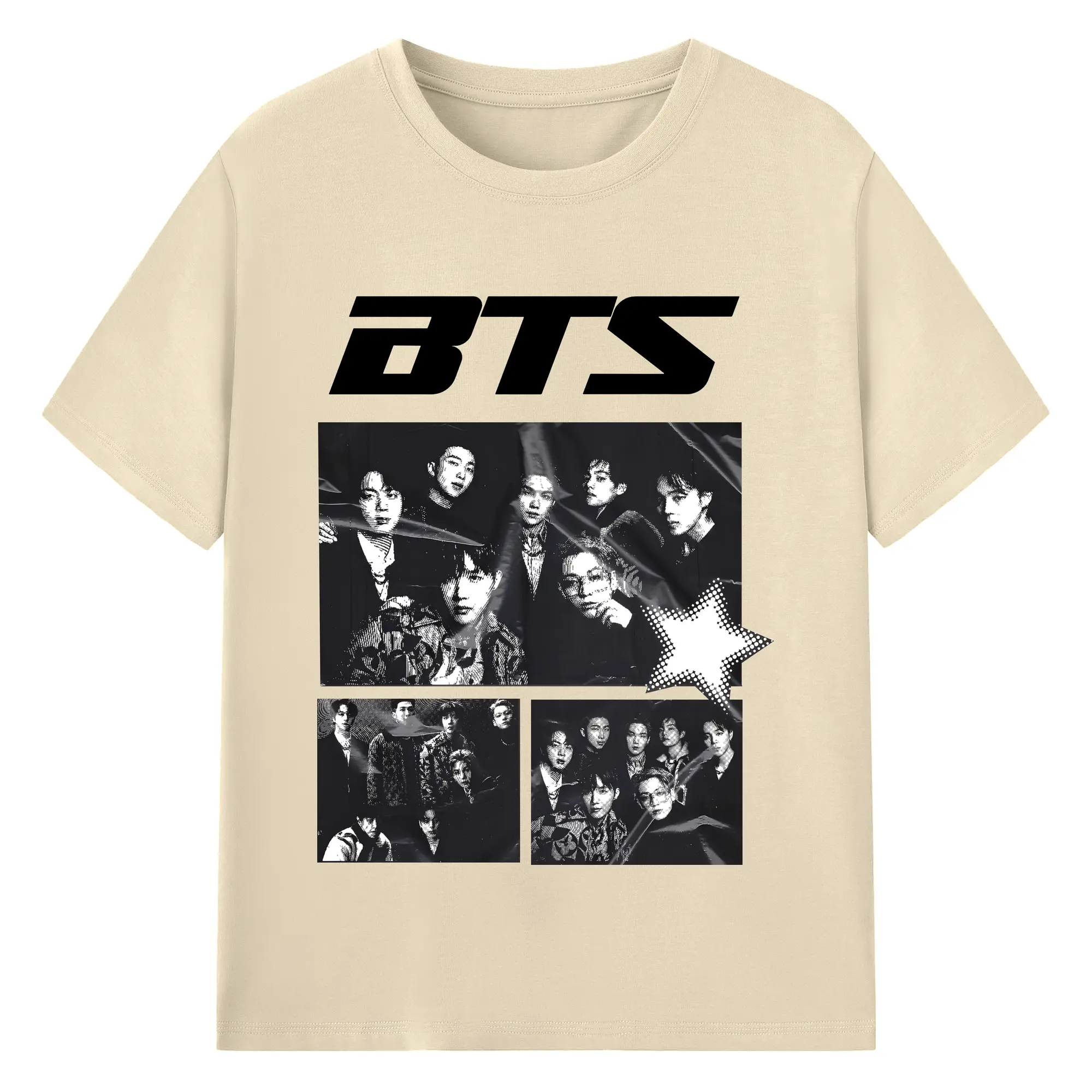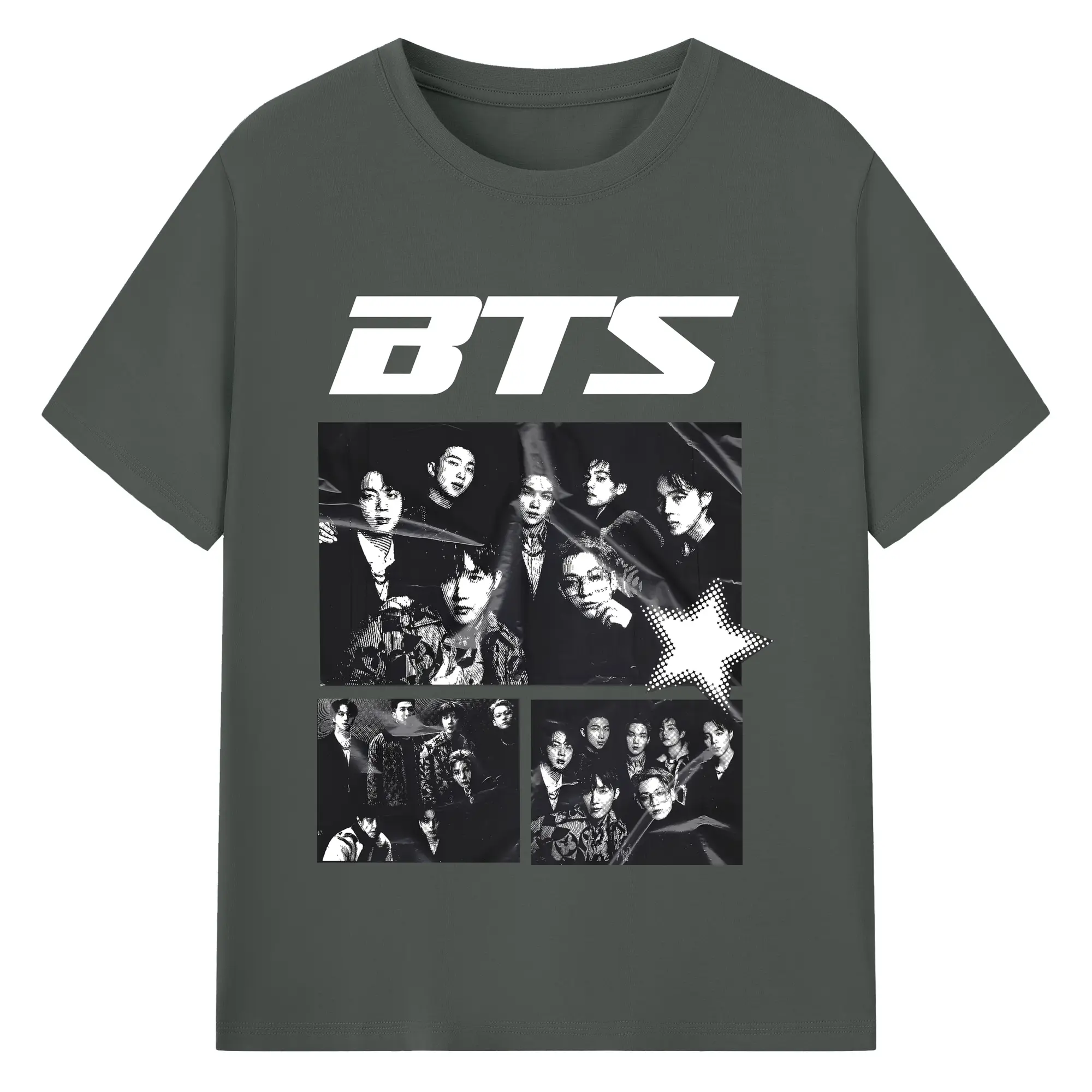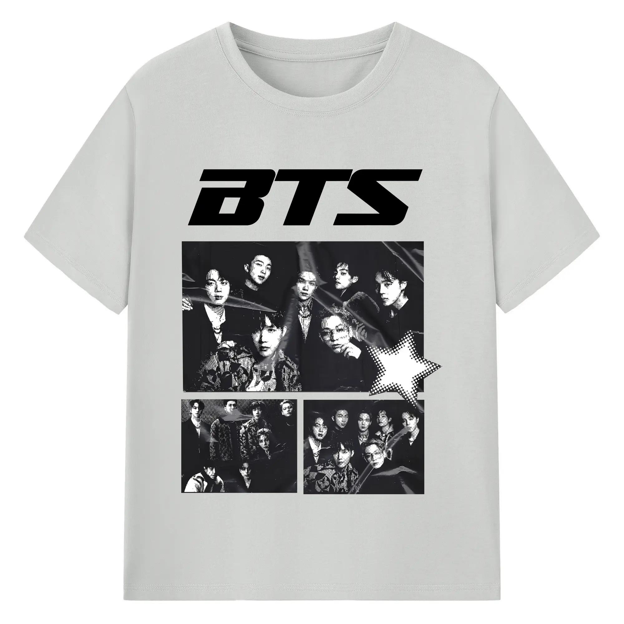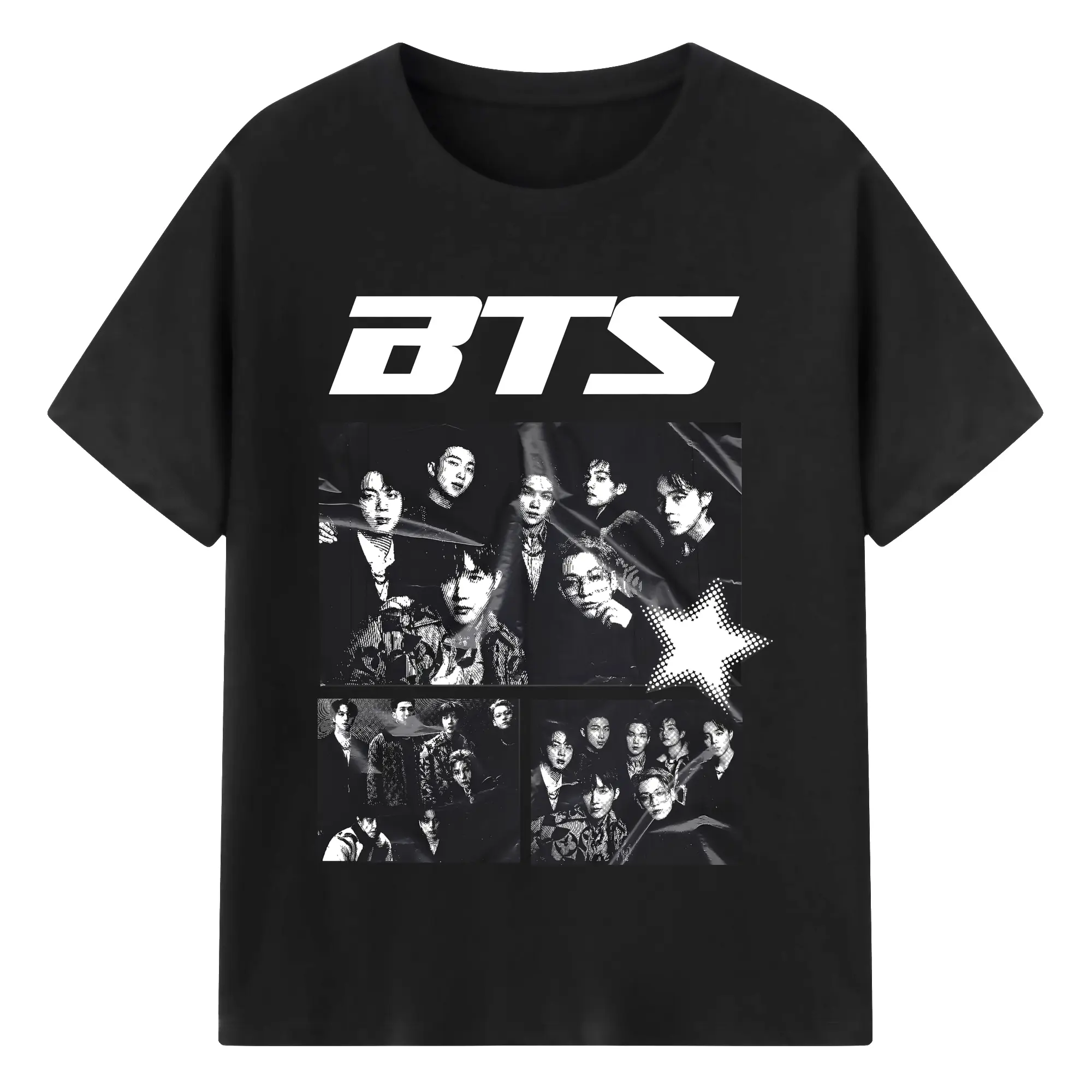 BTS モノトーン 韓国ファッション おしゃれ上級者向け - 綿100% ヴィンテージ風 半袖Tシャツ ・ フロントプリント ・ 柔らか肌触り ・ 通気性 快適 ・ スポーツ カジュアル 外出用