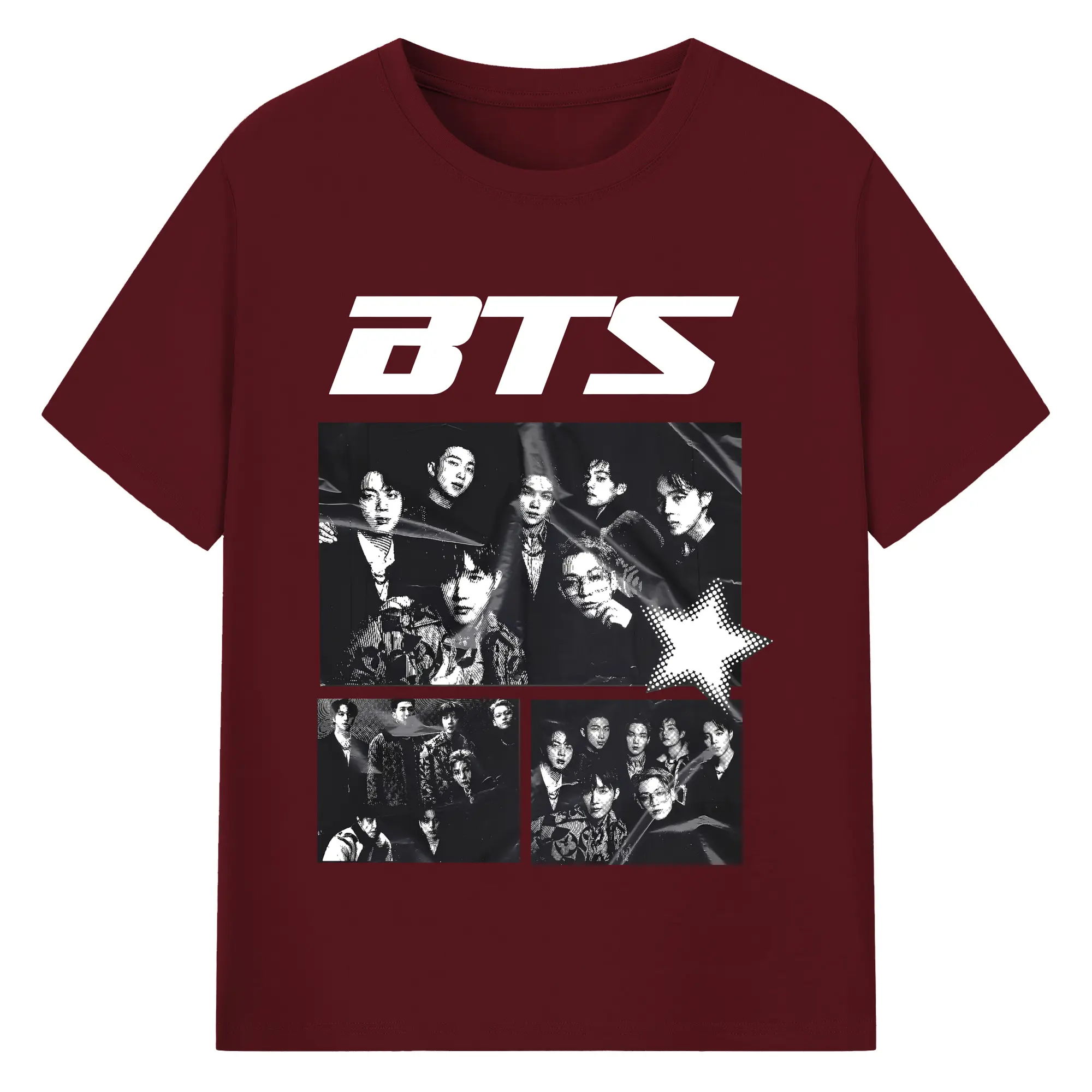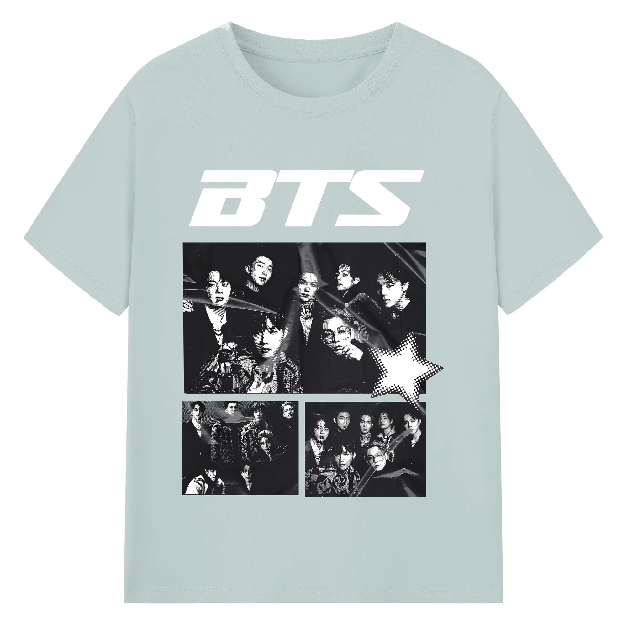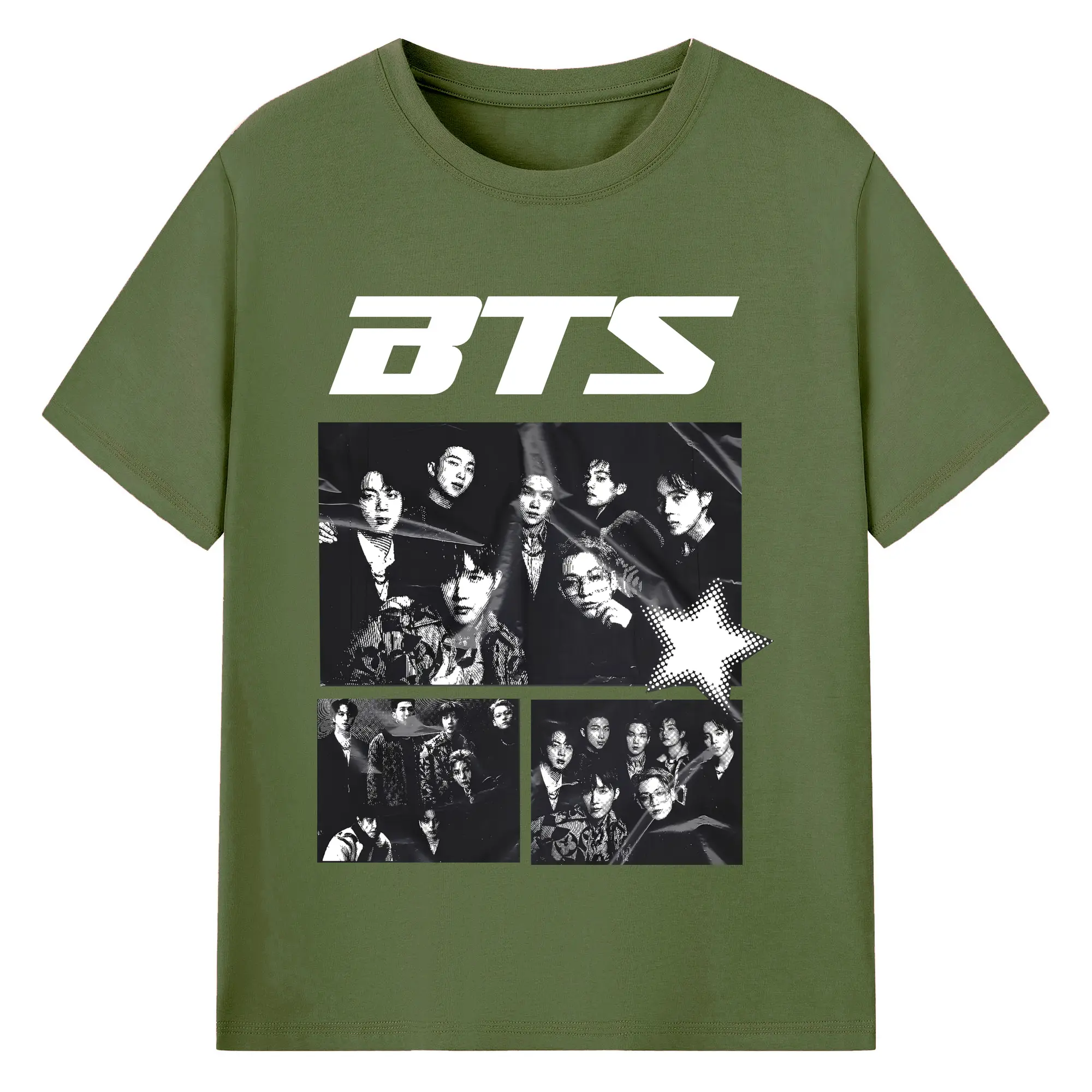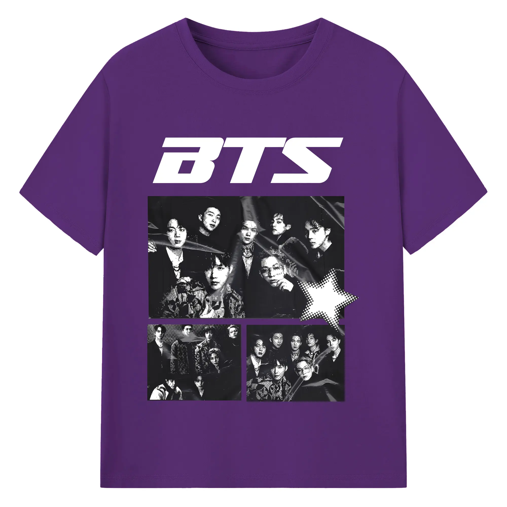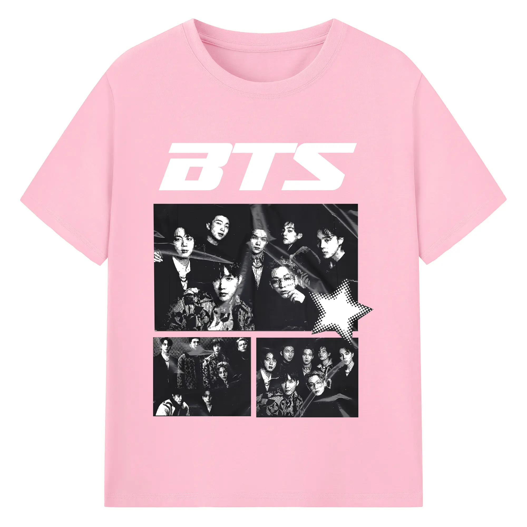 BTS モノトーン 韓国ファッション おしゃれ上級者向け - 綿100% ヴィンテージ風 半袖Tシャツ ・ フロントプリント ・ 柔らか肌触り ・ 通気性 快適 ・ スポーツ カジュアル 外出用