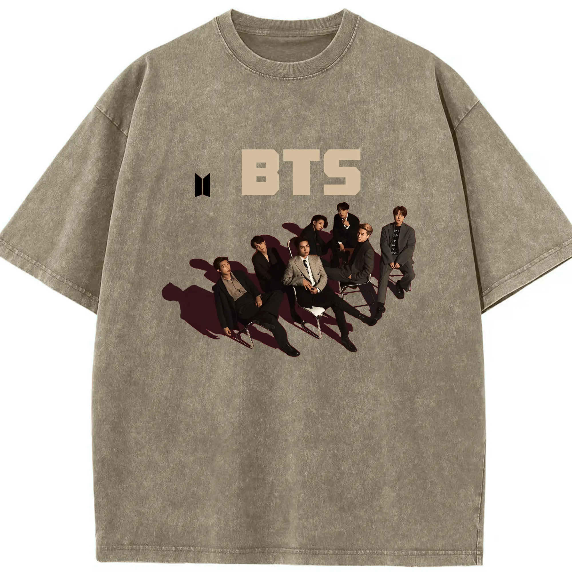 BTS レトロデザイン 限定モデル 人気 韓国ファッション ARMY必見✨ - 綿100% 半袖Tシャツ ・ フロントプリント ・ 快適 通気性 ・ 日常使い 散歩 スポーツ用
