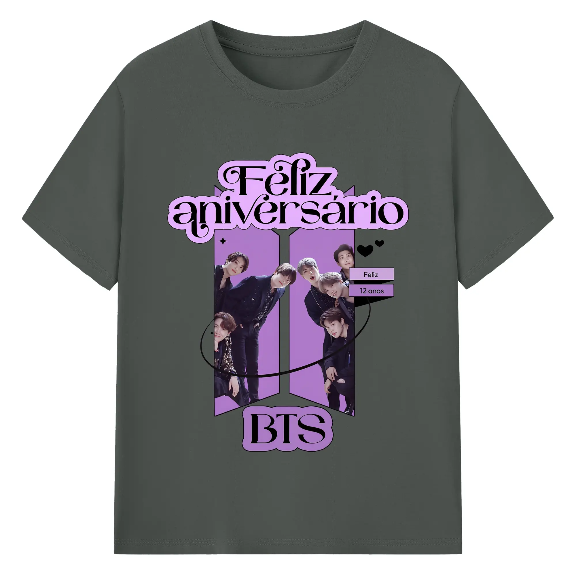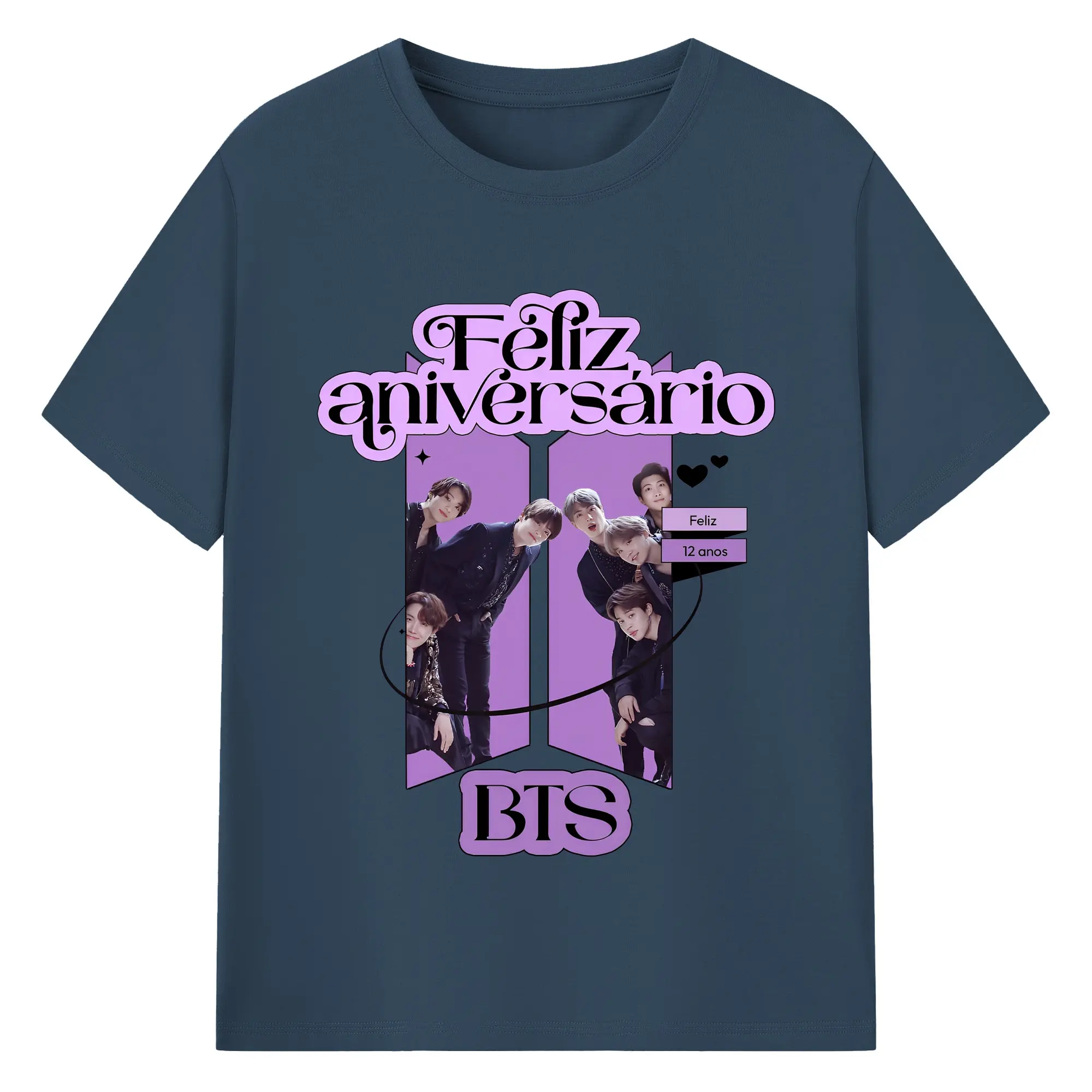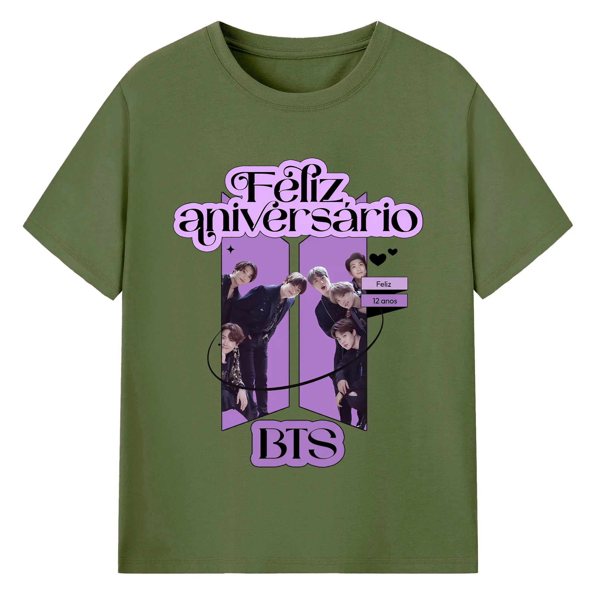 BTS 記念周年 応援ARMY必見 限定モデル💜 - 綿100% ヴィンテージ風 半袖Tシャツ ・ フロントプリント ・ 柔らか肌触り ・ 通気性 快適 ・ スポーツ カジュアル 外出用