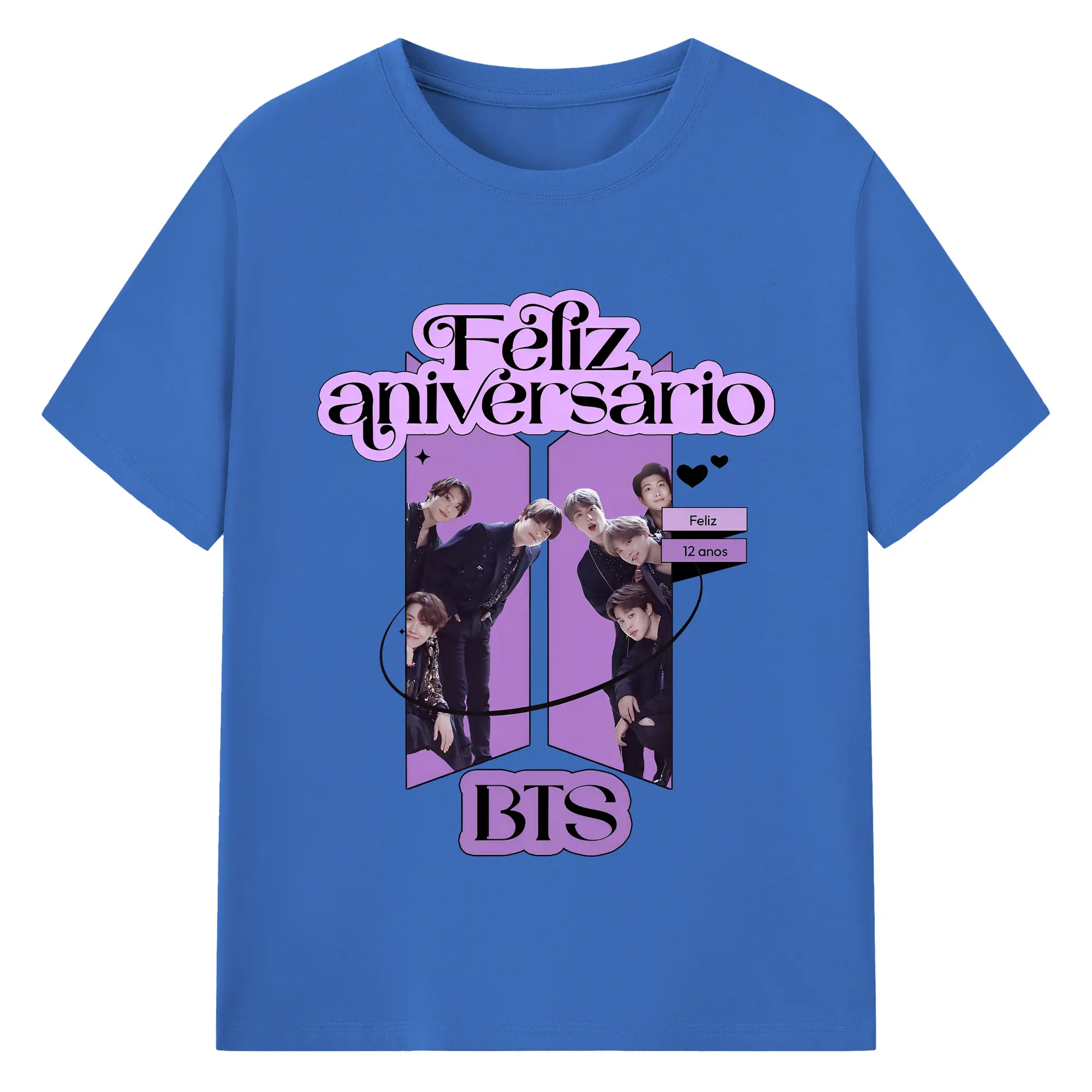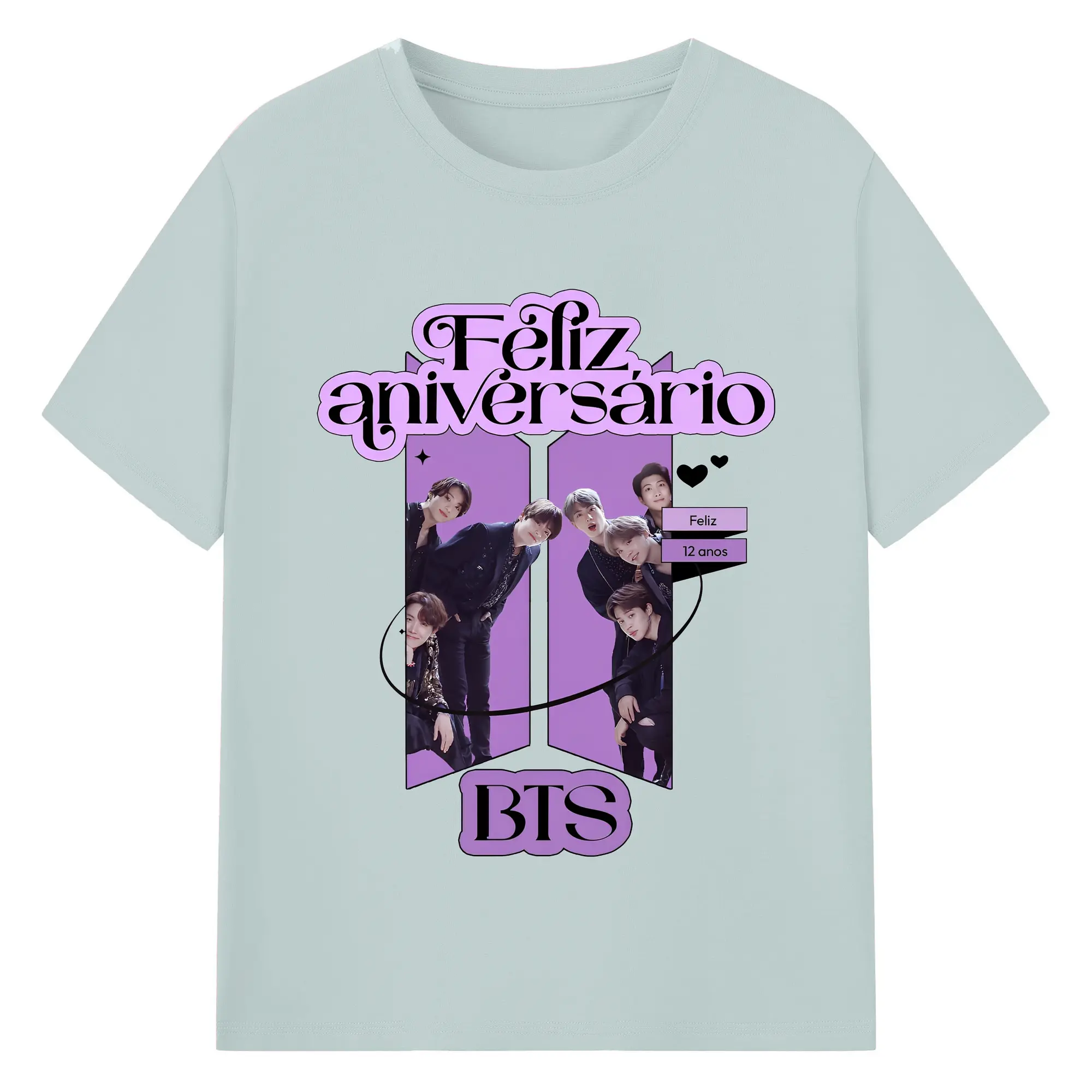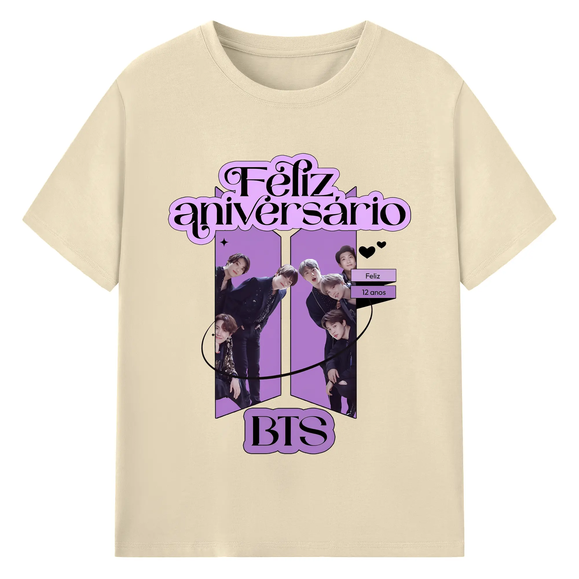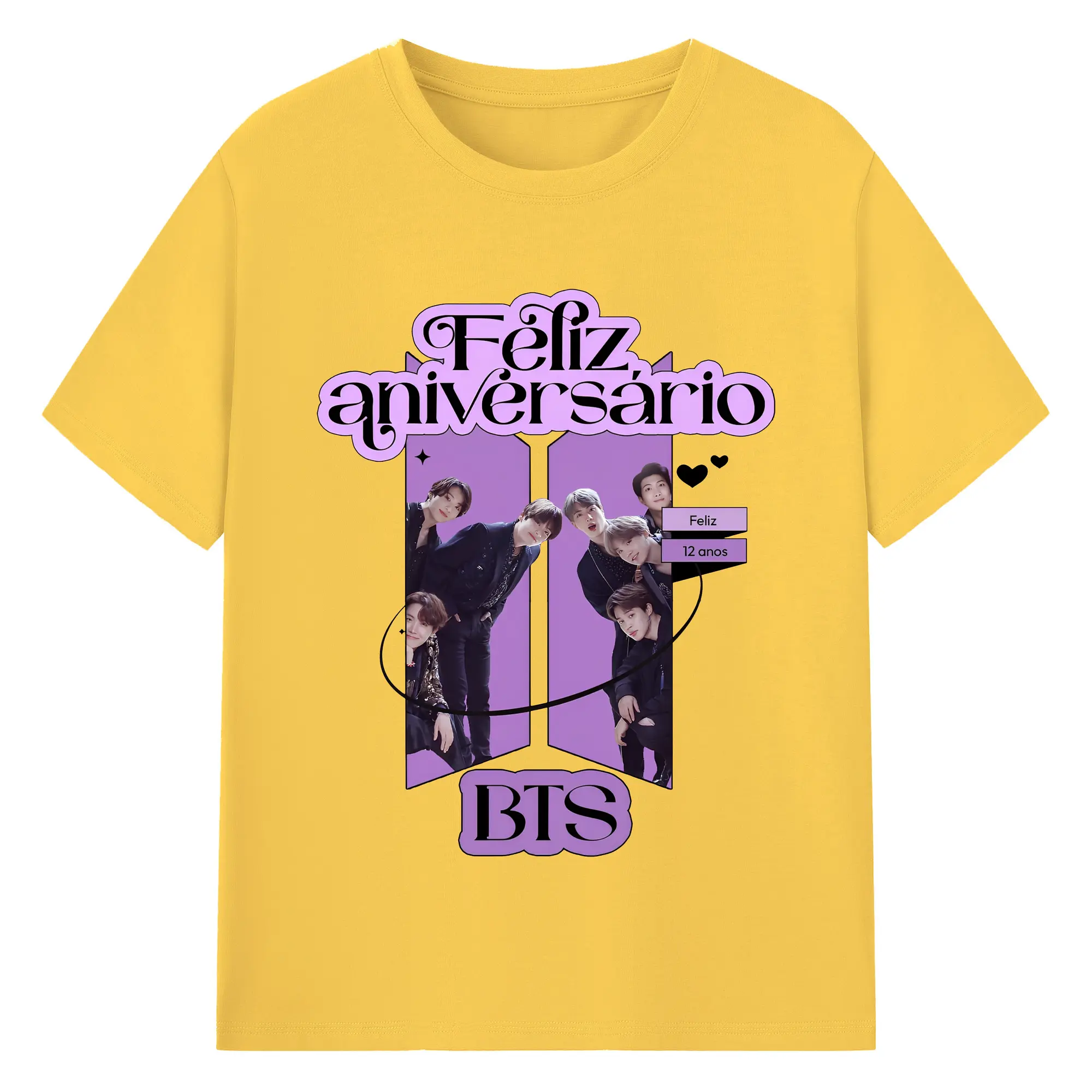 BTS 記念周年 応援ARMY必見 限定モデル💜 - 綿100% ヴィンテージ風 半袖Tシャツ ・ フロントプリント ・ 柔らか肌触り ・ 通気性 快適 ・ スポーツ カジュアル 外出用