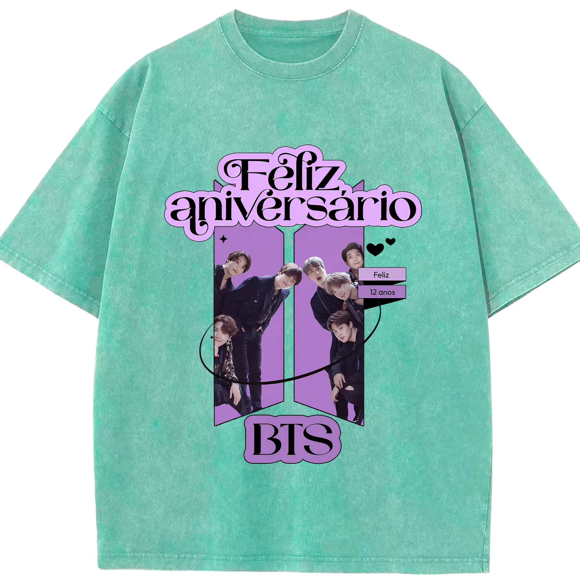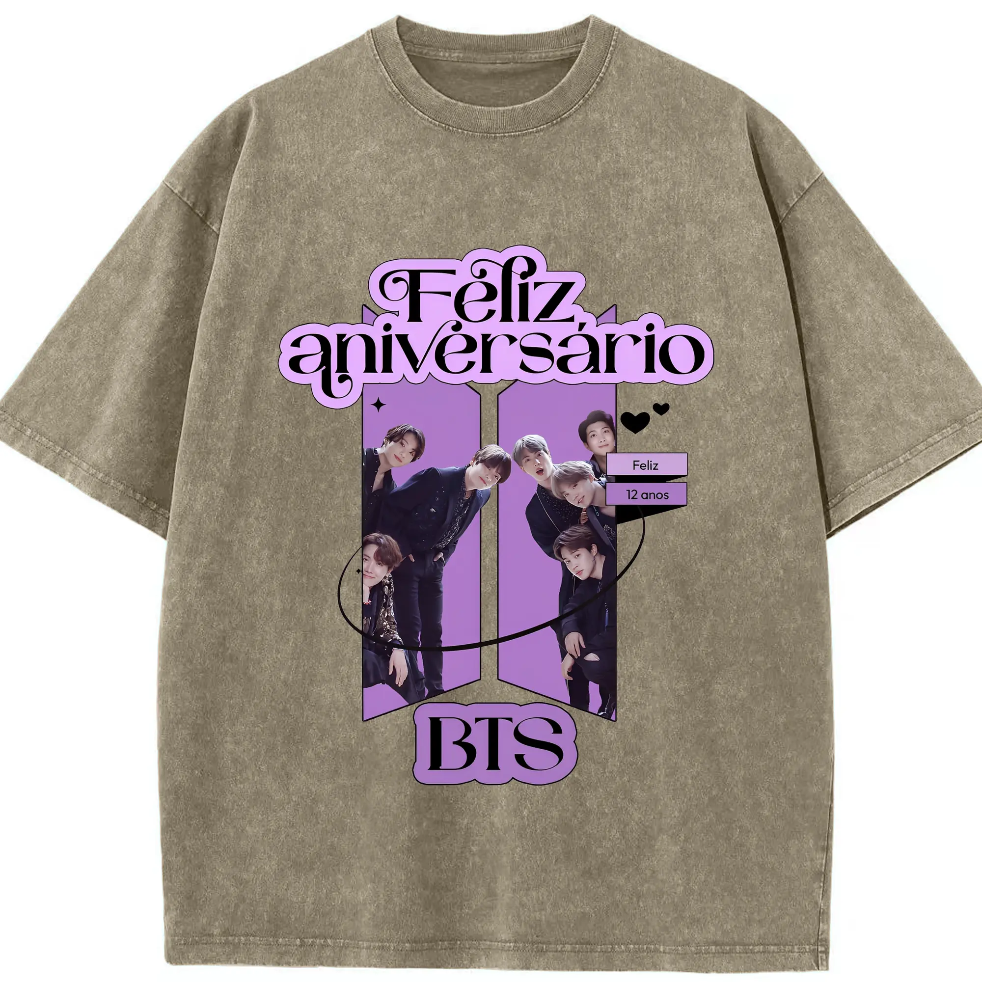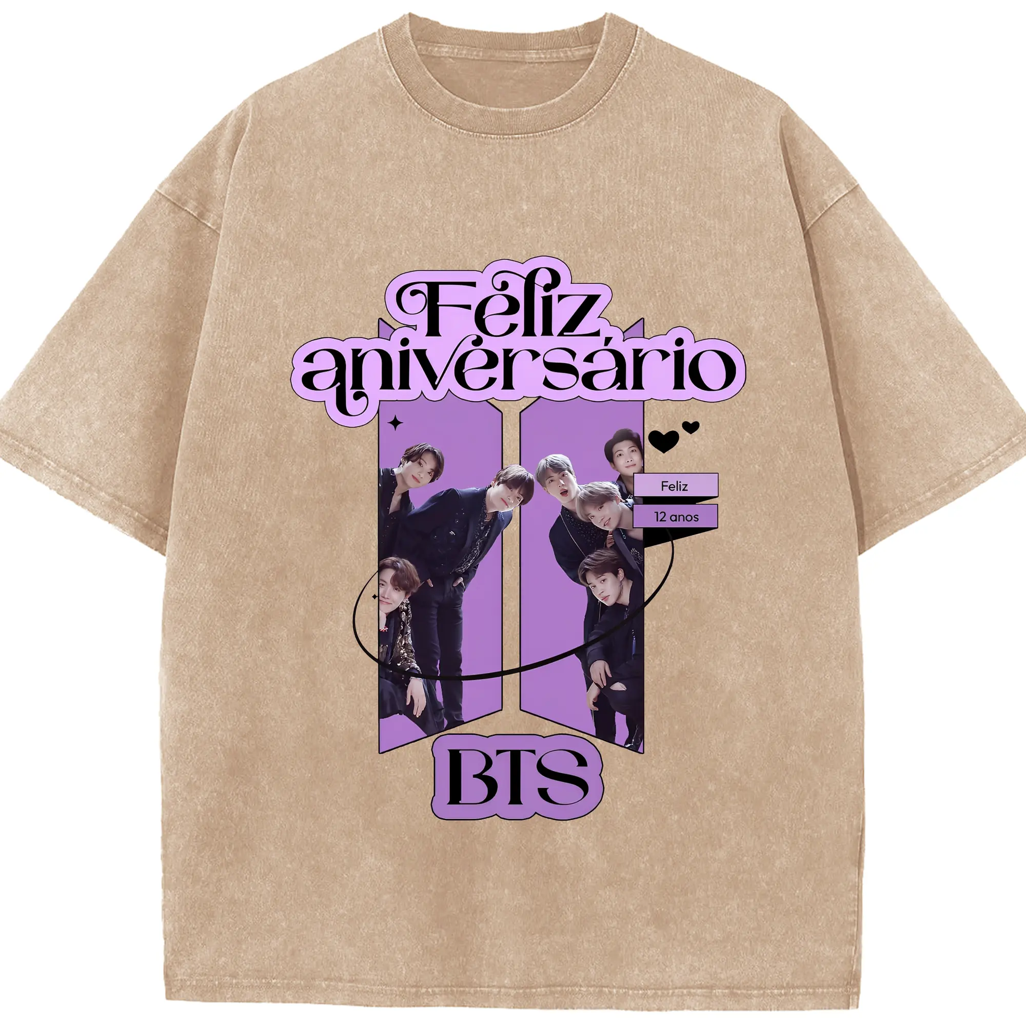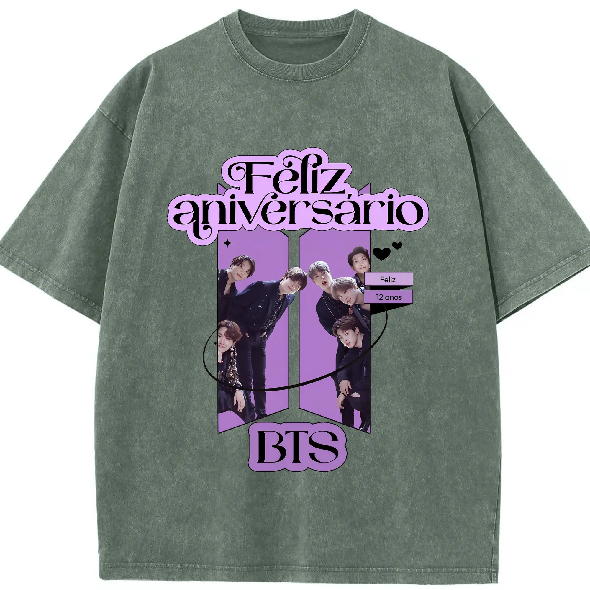 BTS 推し活💜ライブ・コンサート応援にぴったり - 綿100% ヴィンテージ風 半袖Tシャツ ・ フロントプリント ・ 柔らか肌触り ・ 通気性 快適 ・ スポーツ カジュアル 外出用