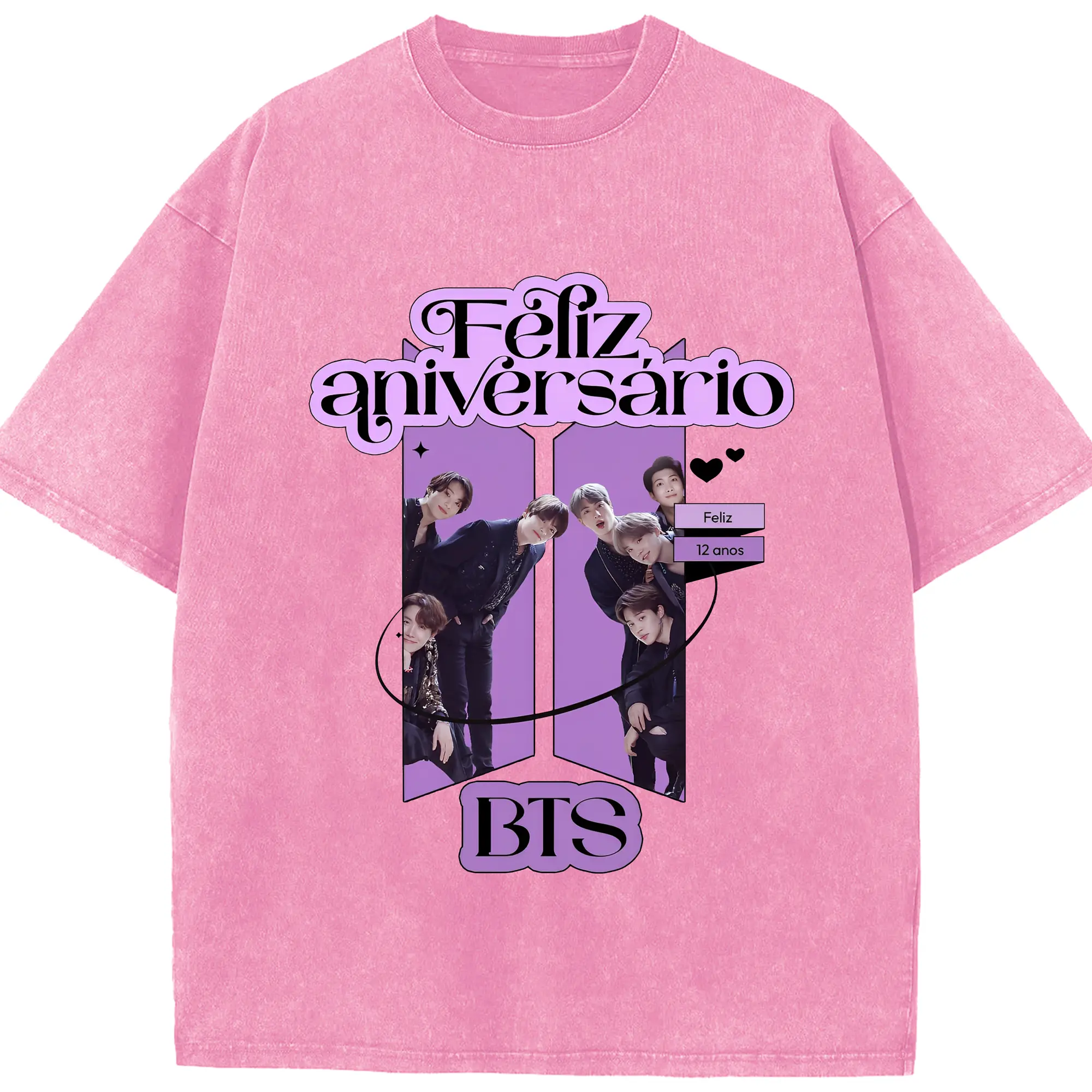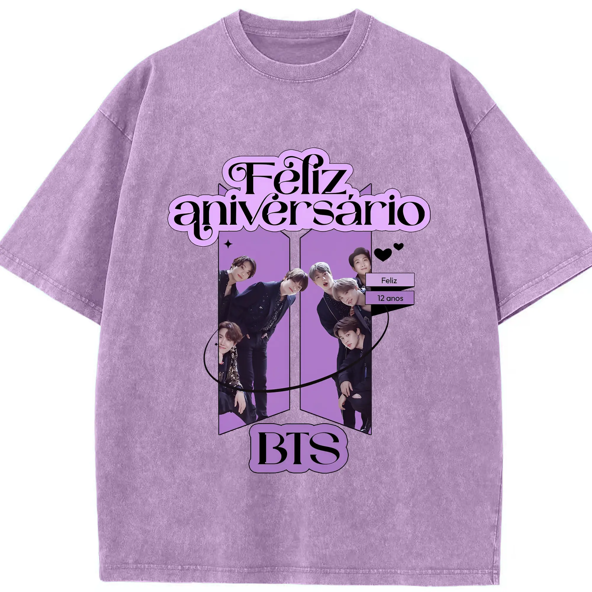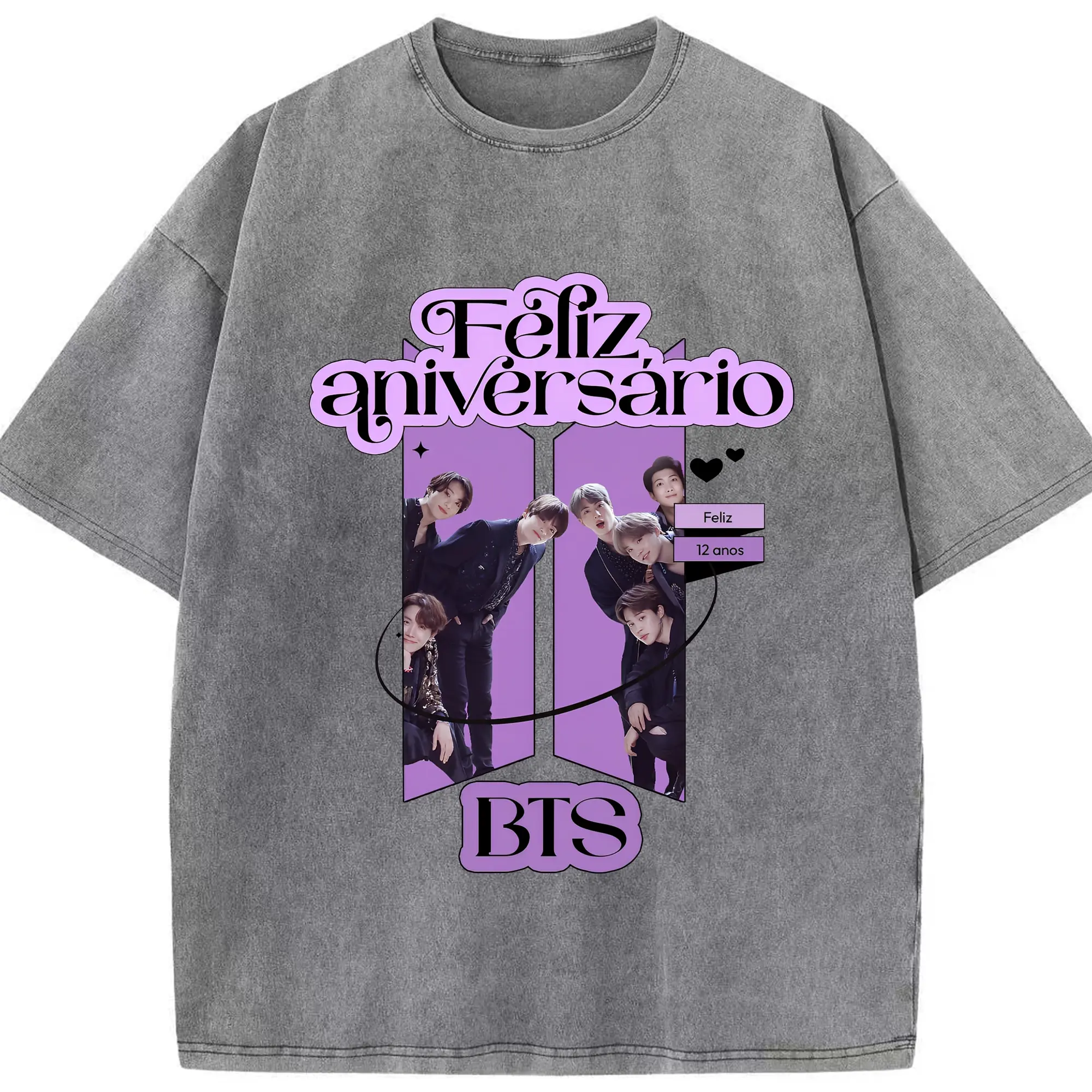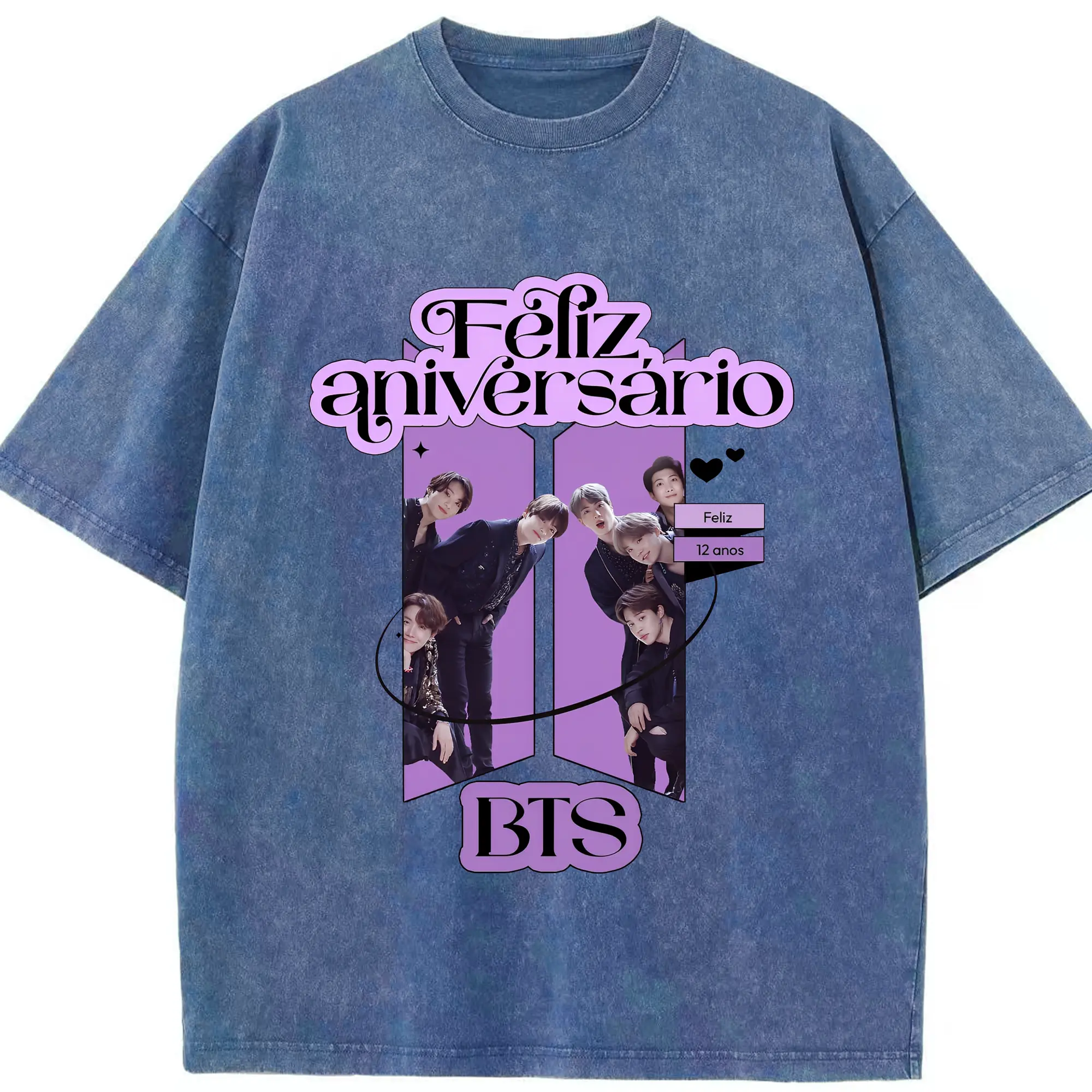 BTS 推し活💜ライブ・コンサート応援にぴったり - 綿100% ヴィンテージ風 半袖Tシャツ ・ フロントプリント ・ 柔らか肌触り ・ 通気性 快適 ・ スポーツ カジュアル 外出用