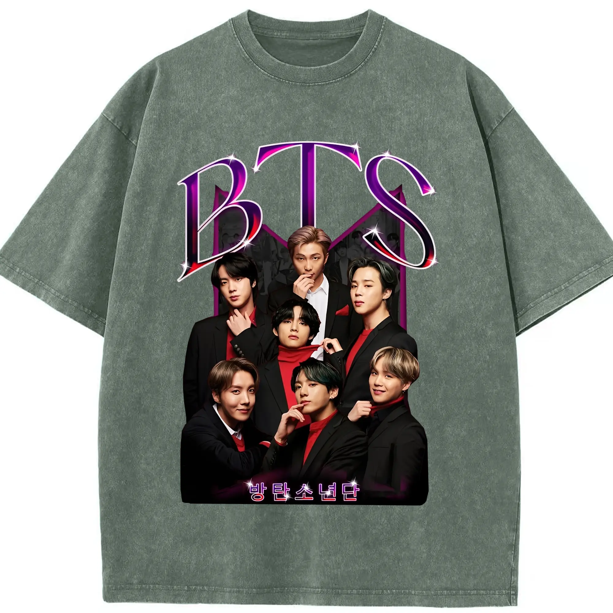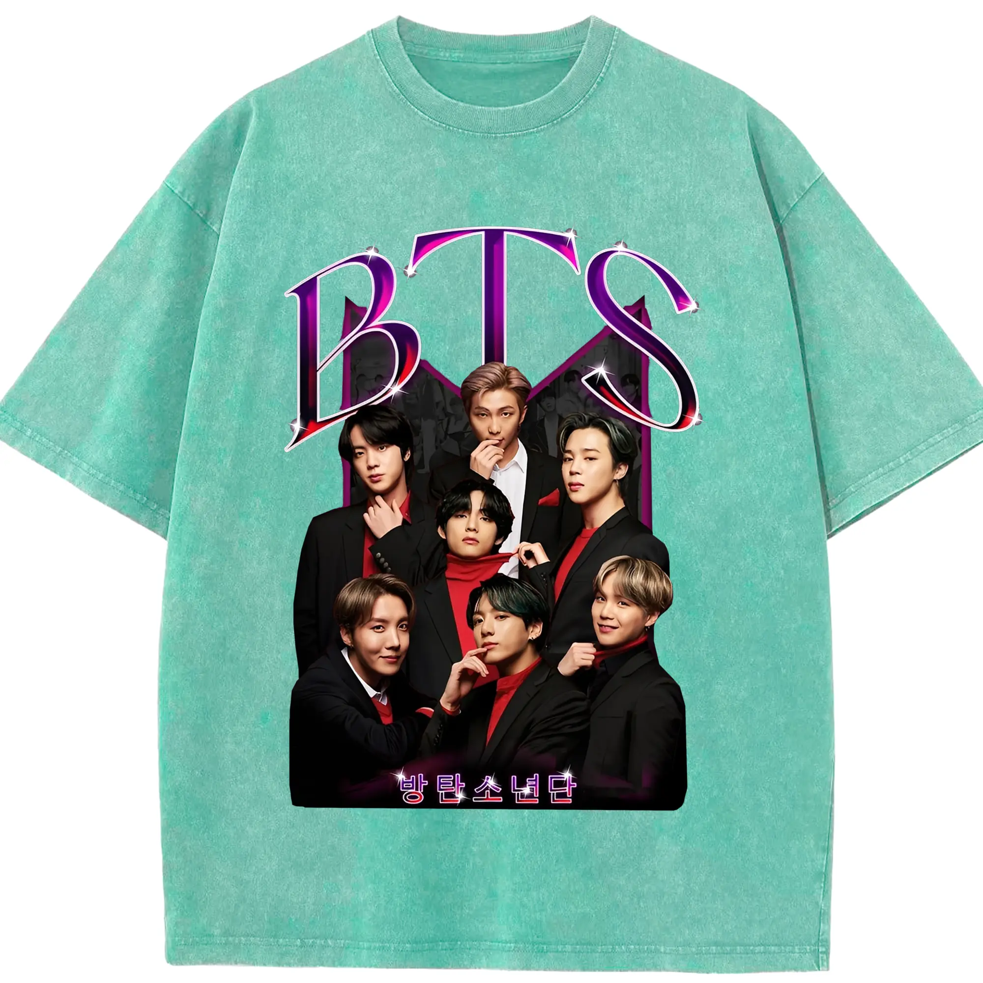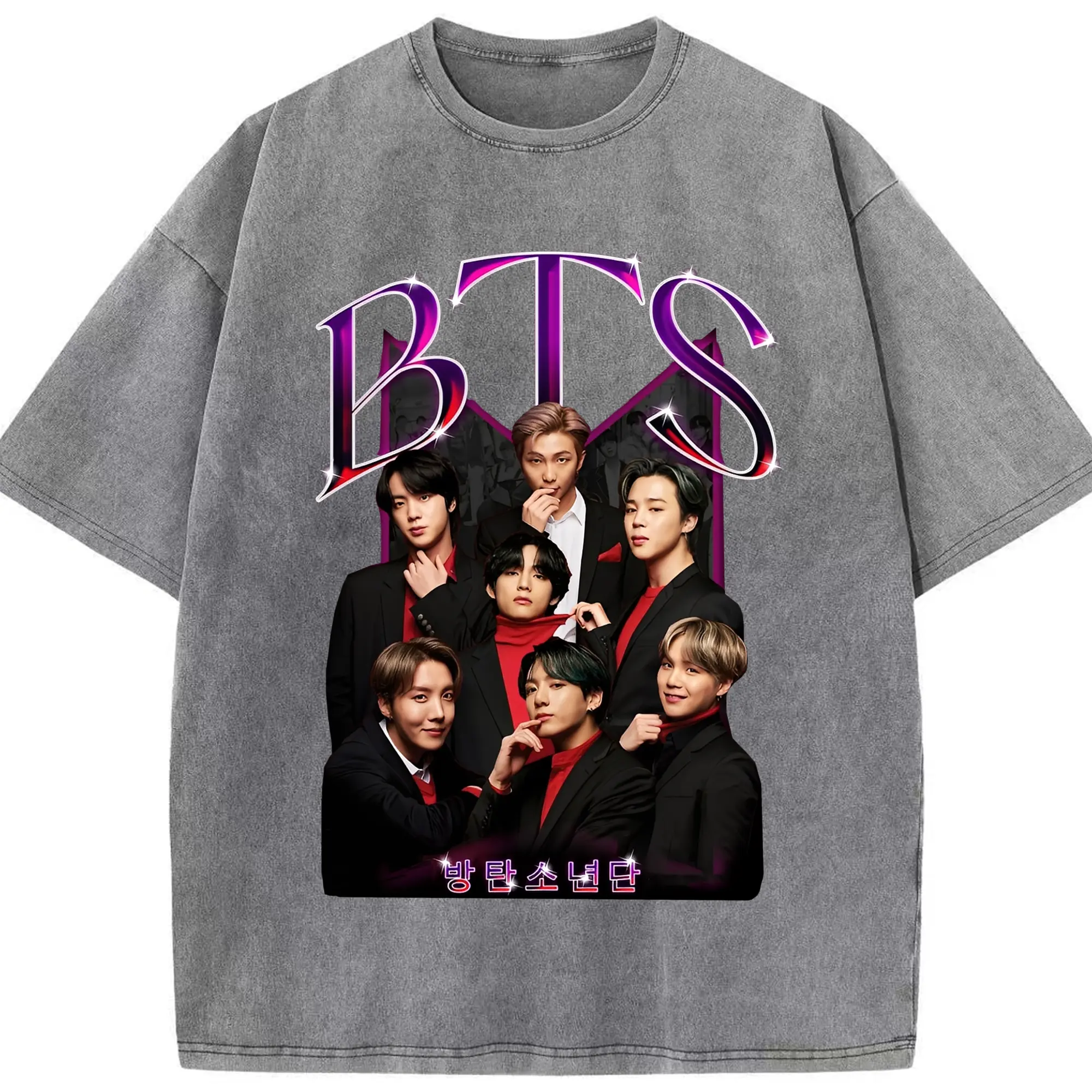 BTS 限定プリント メンバー別コレクション✨ - 綿100% ヴィンテージ風 半袖Tシャツ ・ フロントプリント ・ 柔らか肌触り ・ 通気性 快適 ・ スポーツ カジュアル 外出用