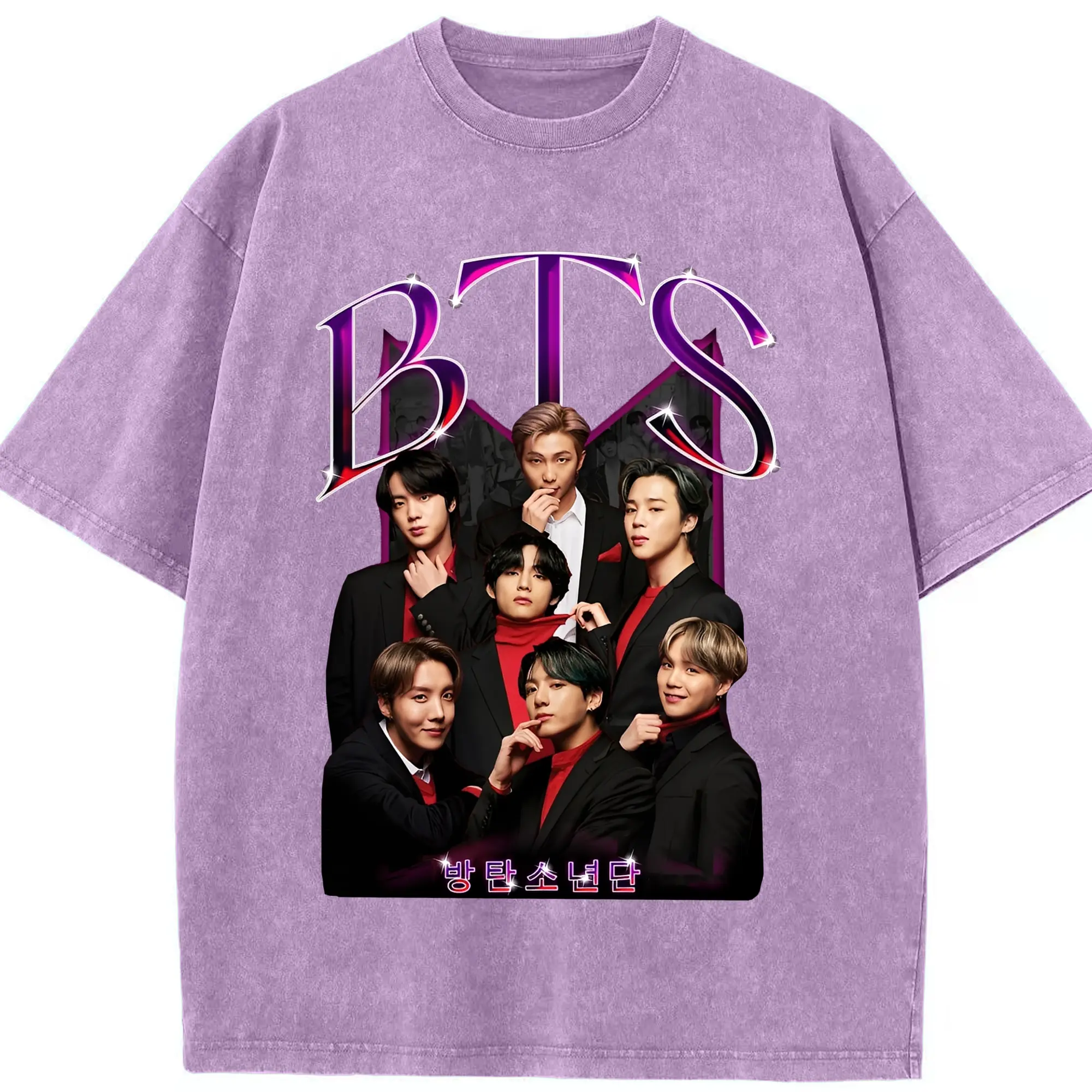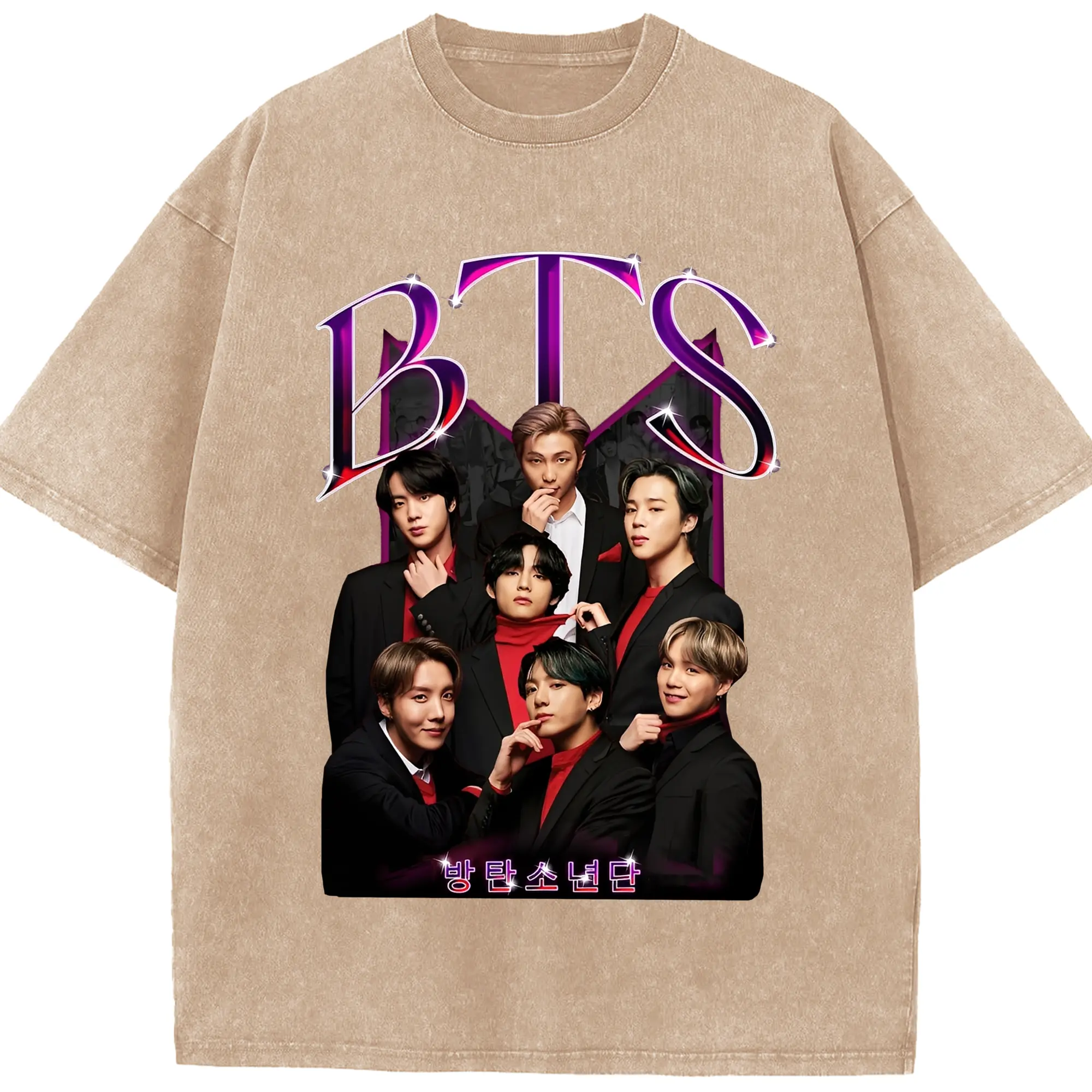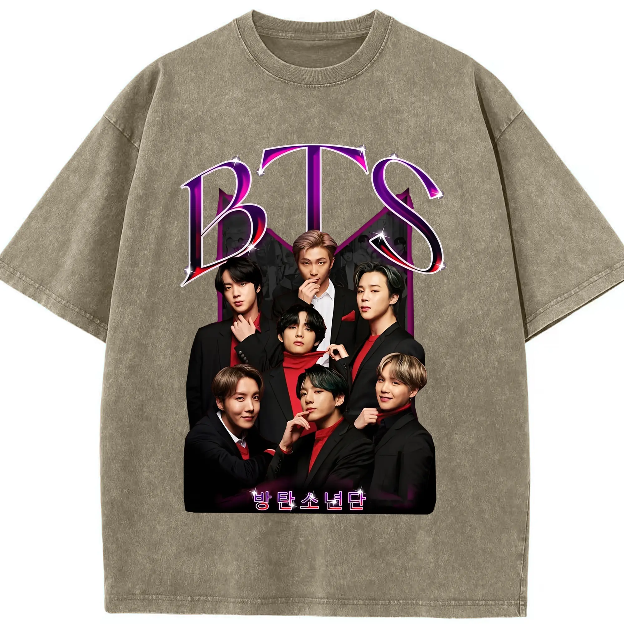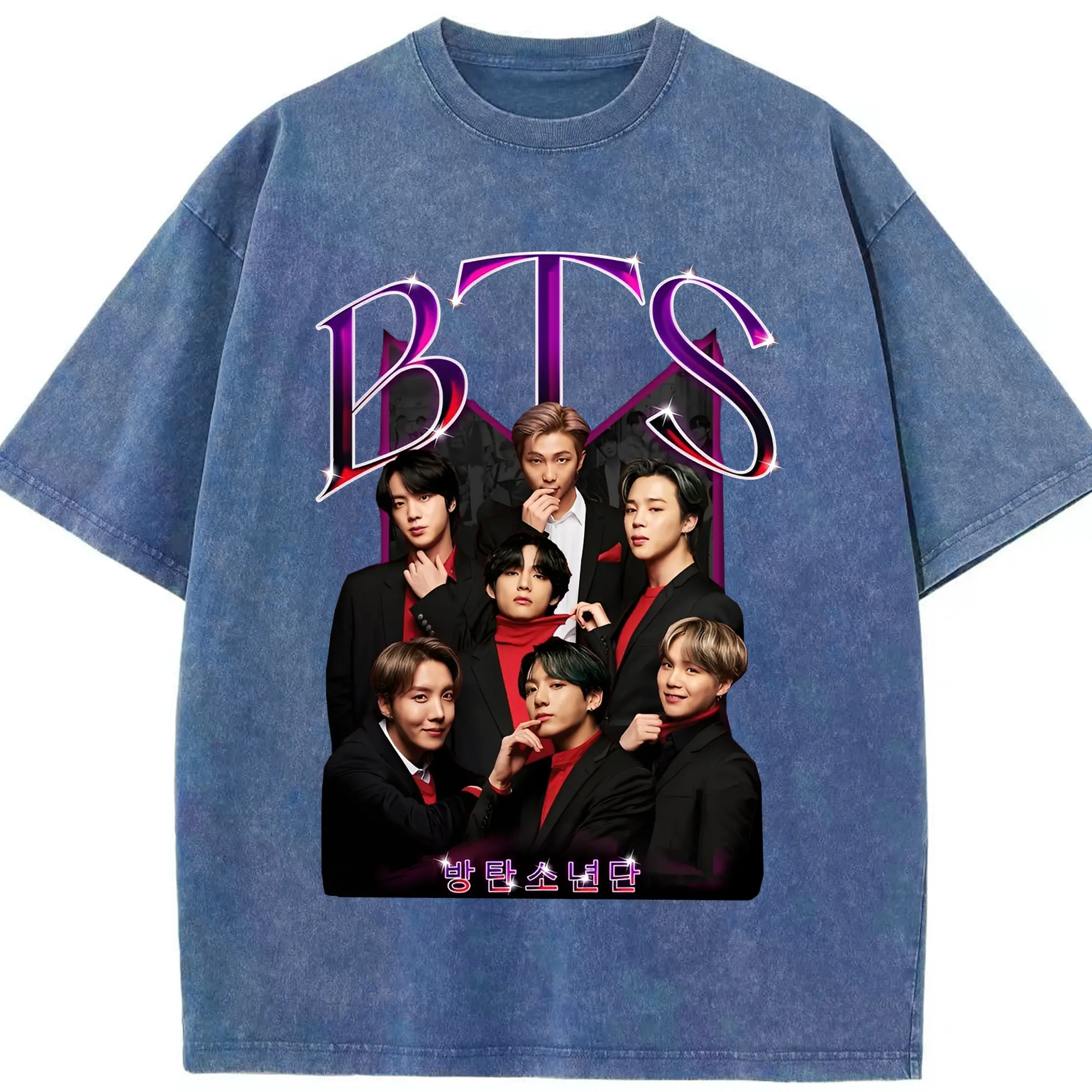 BTS 限定プリント メンバー別コレクション✨ - 綿100% ヴィンテージ風 半袖Tシャツ ・ フロントプリント ・ 柔らか肌触り ・ 通気性 快適 ・ スポーツ カジュアル 外出用