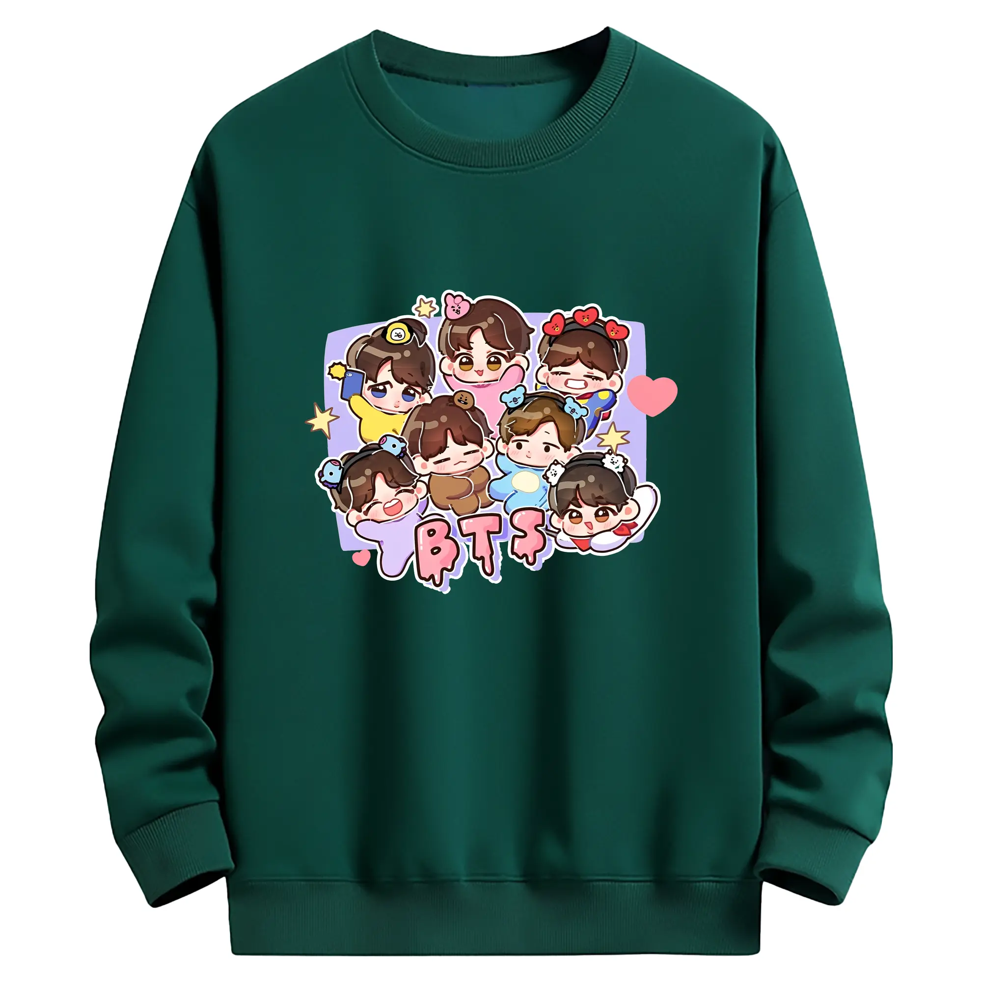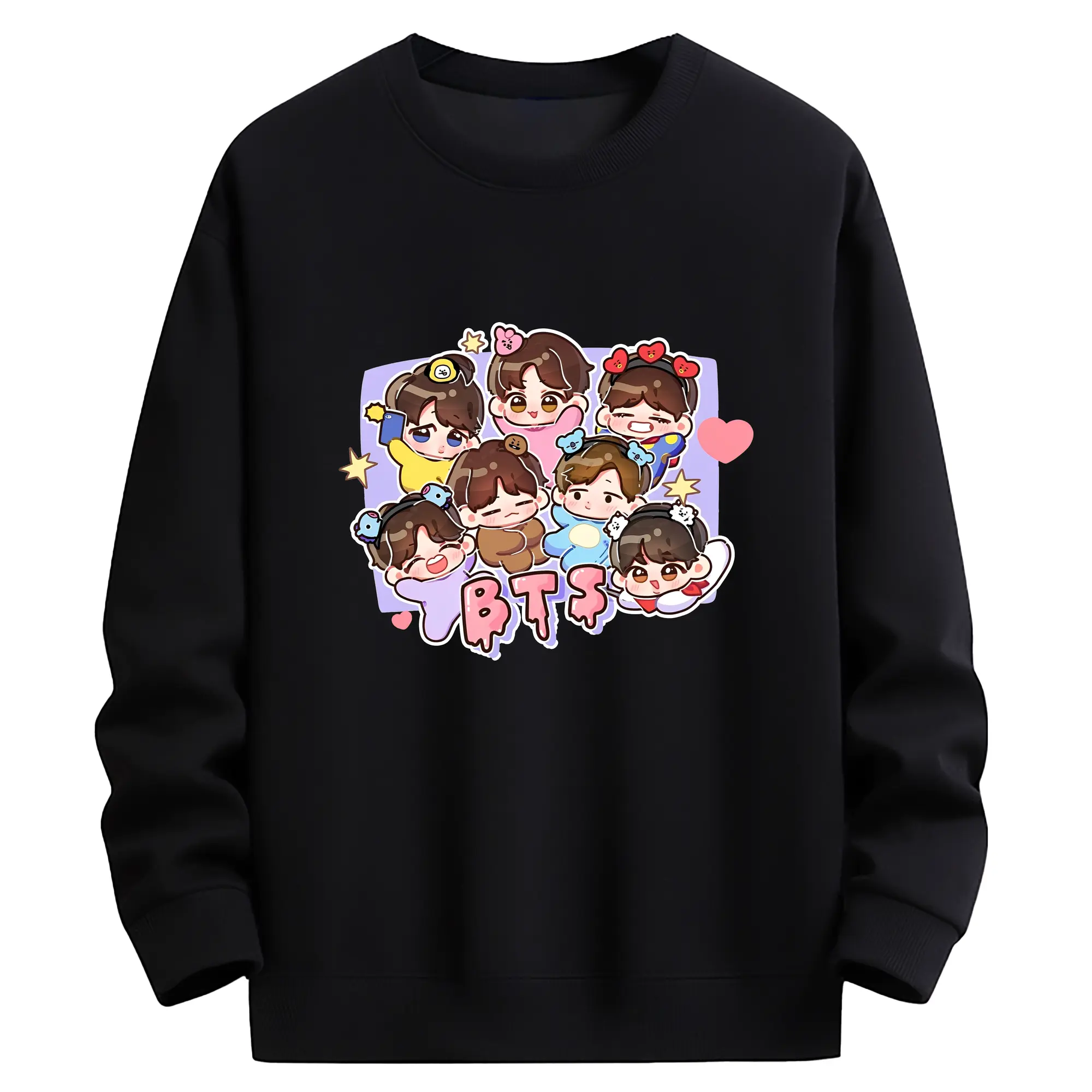 BTS Q版キャラクター デザイン 可愛い限定モデル - 綿100% 半袖Tシャツ ・ フロントプリント ・ 快適 通気性 ・ 日常使い 散歩 スポーツ用