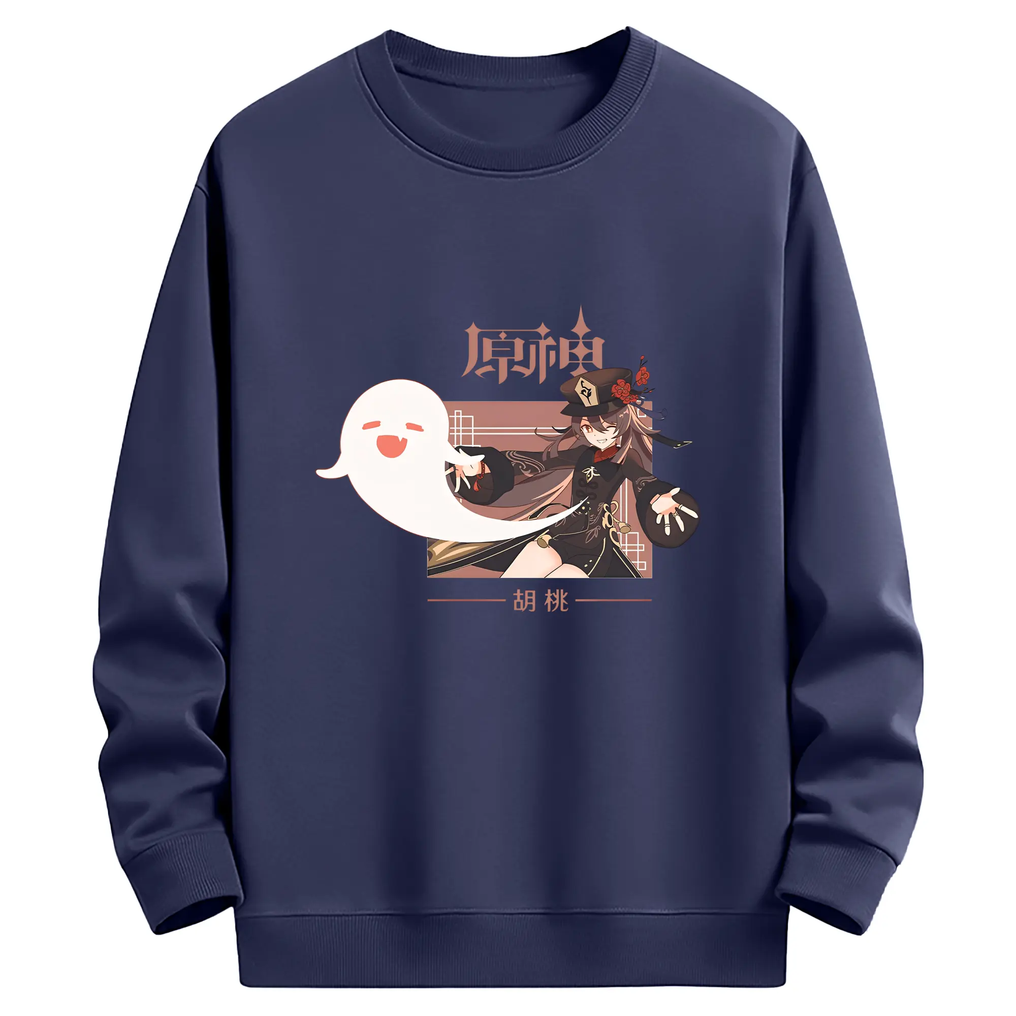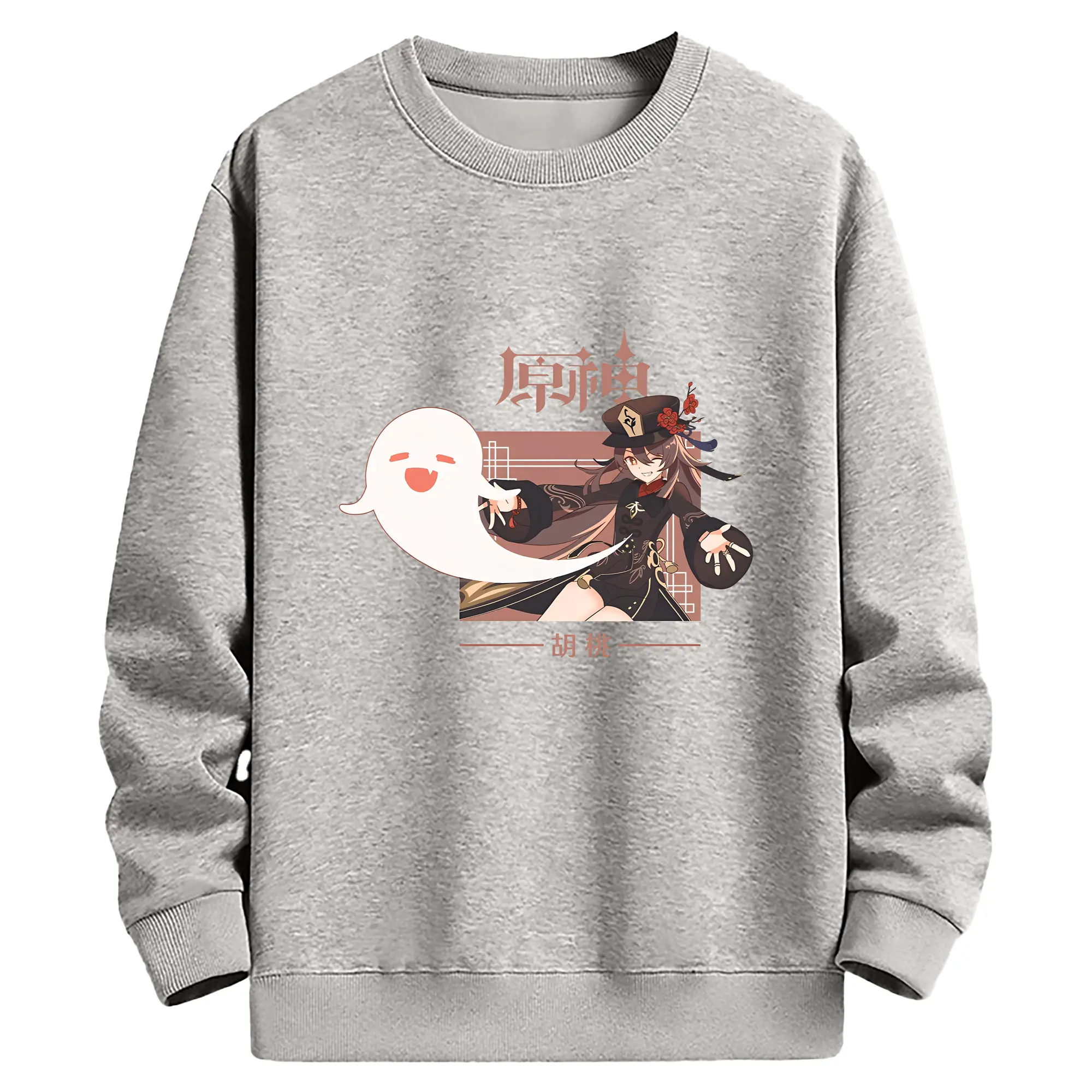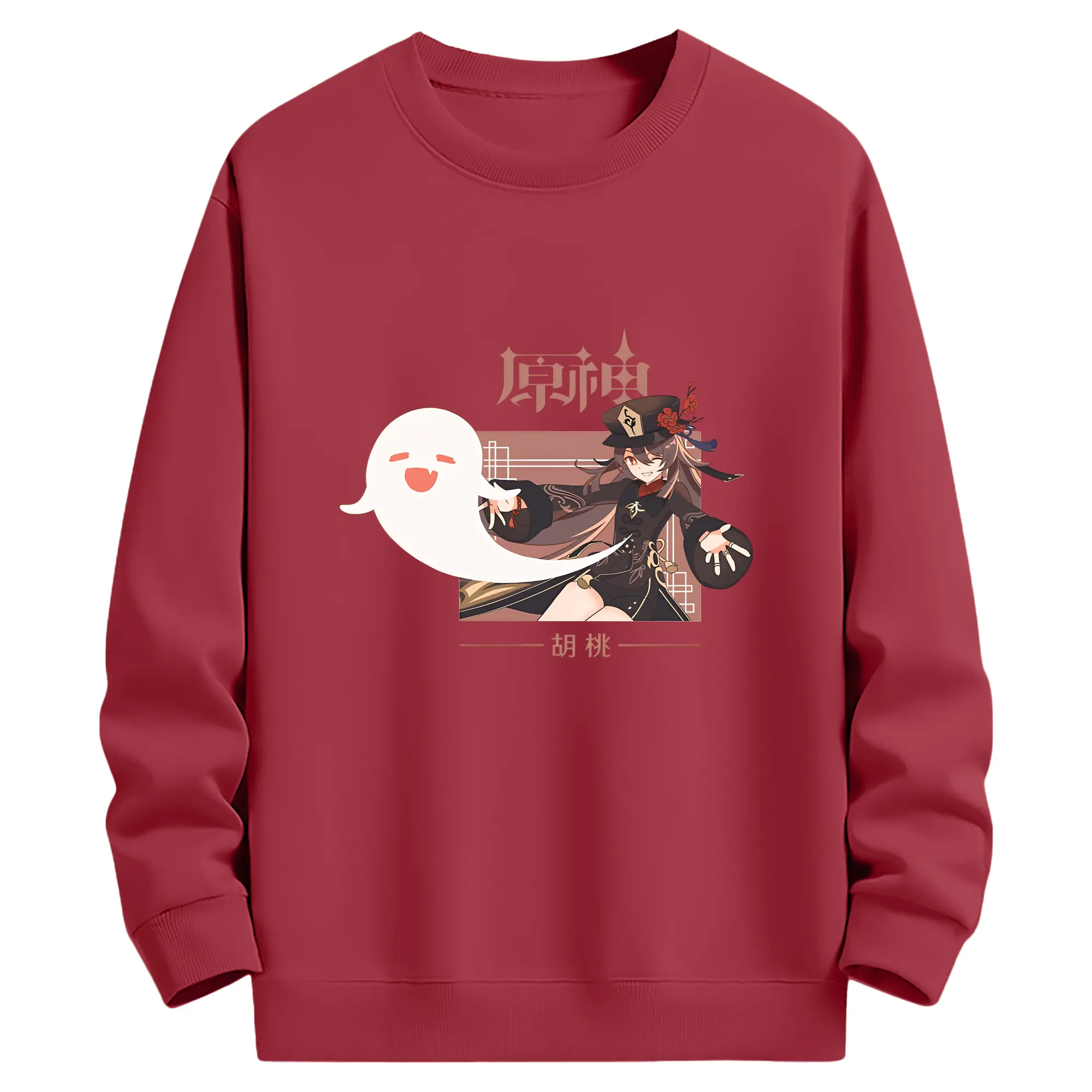 原神胡桃 Hu Tao大人気 キャラクターグッズ 周辺 - 高品質 クルーネック スウェット ・ コットン59% ポリエステル41% ・ ユニセックス 長袖 トレーナー ・ カジュアル デイリー スポーツ 散歩用