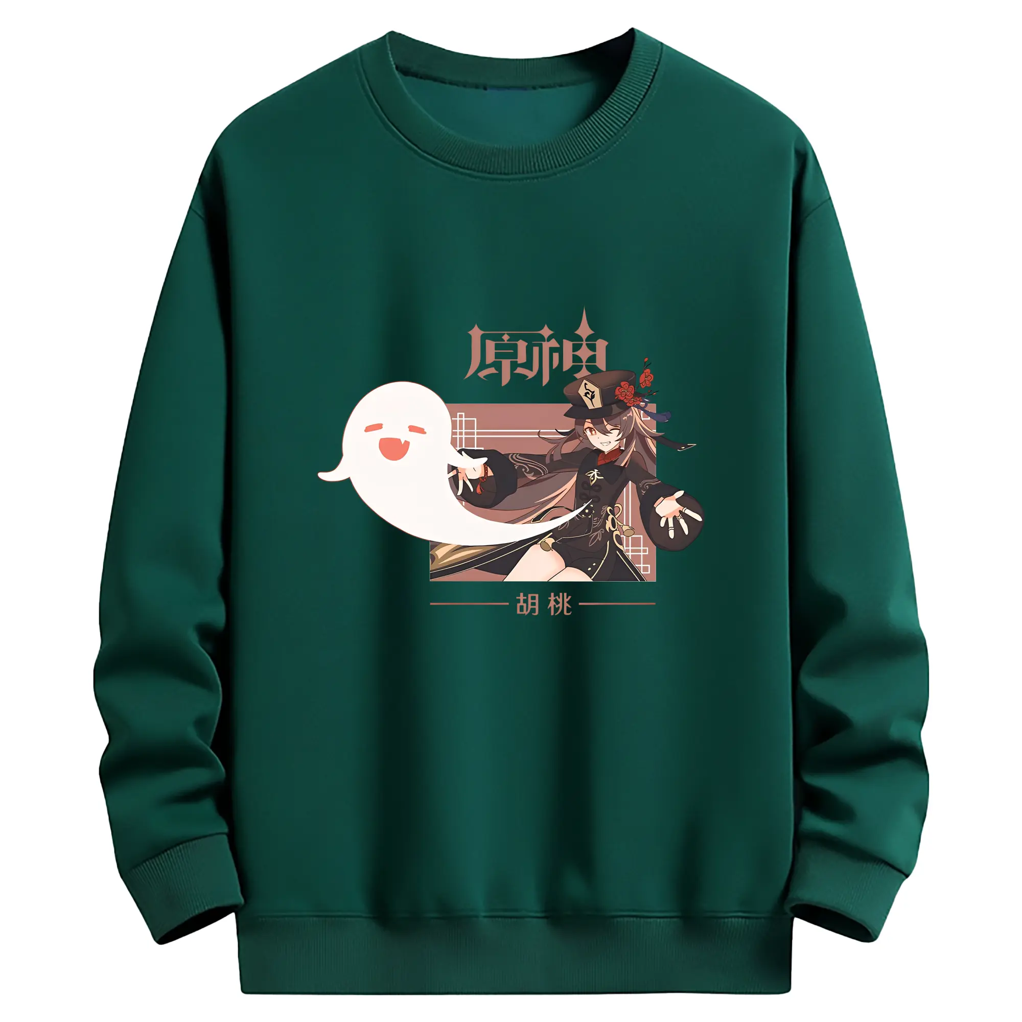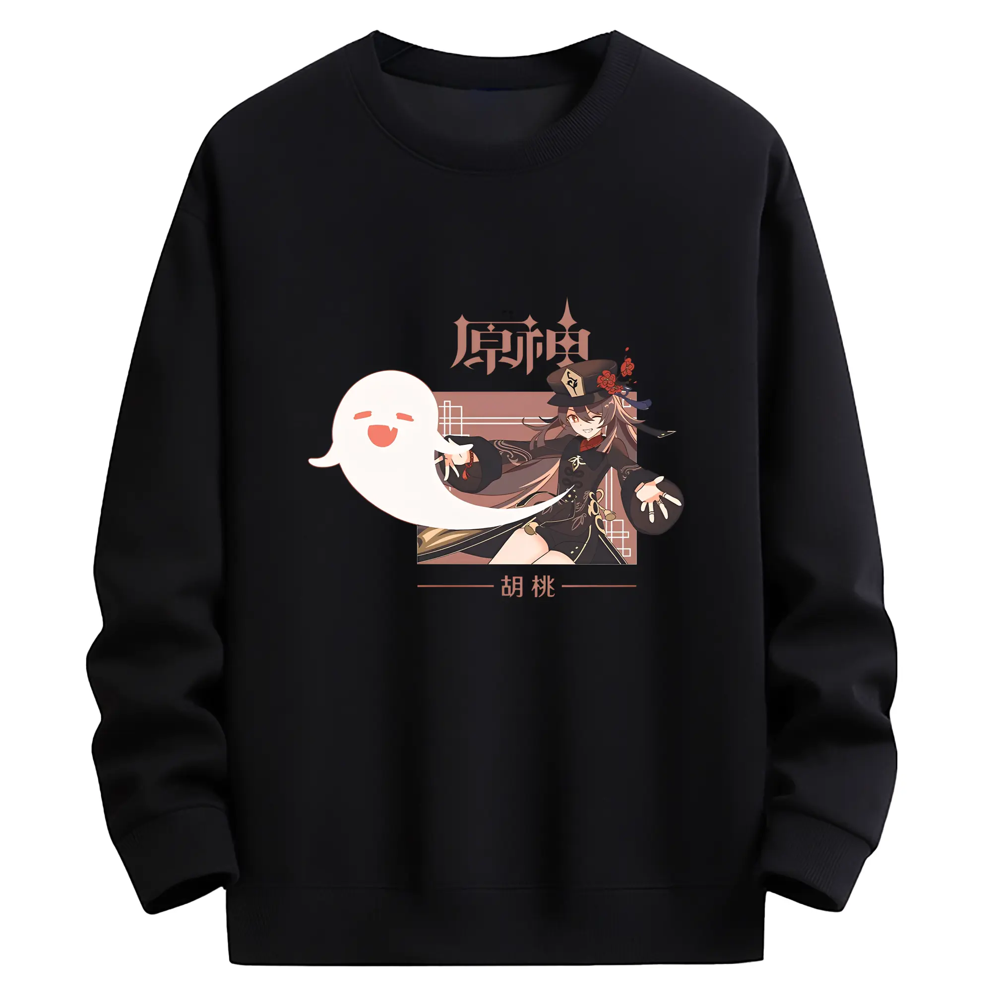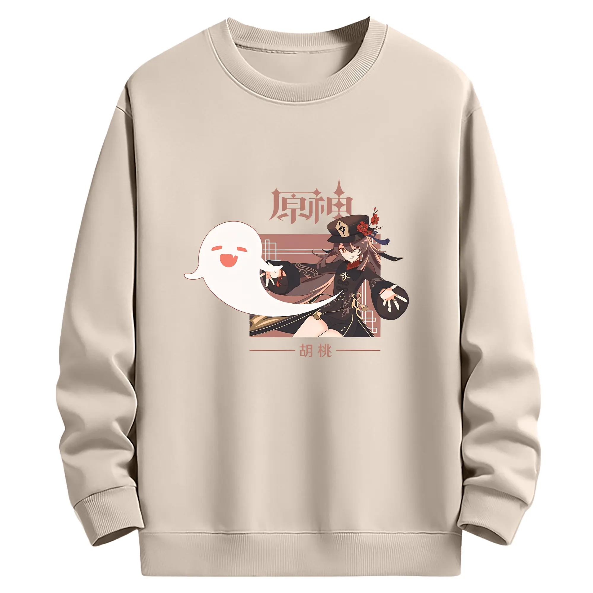原神胡桃 Hu Tao大人気 キャラクターグッズ 周辺 - 高品質 クルーネック スウェット ・ コットン59% ポリエステル41% ・ ユニセックス 長袖 トレーナー ・ カジュアル デイリー スポーツ 散歩用