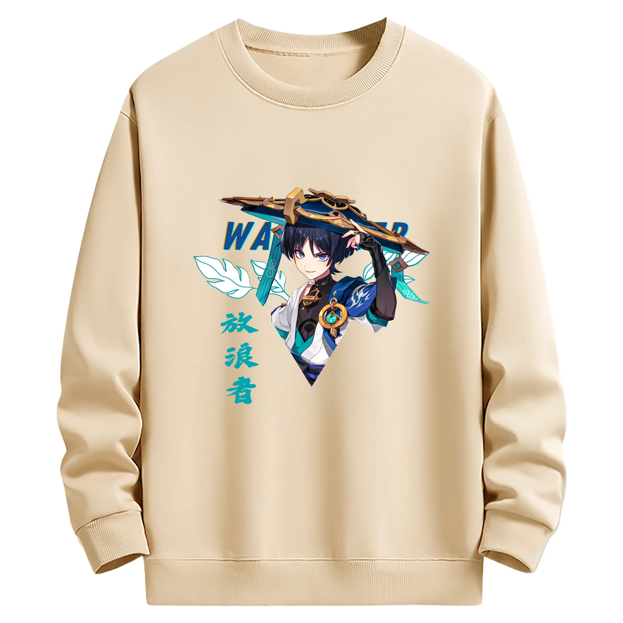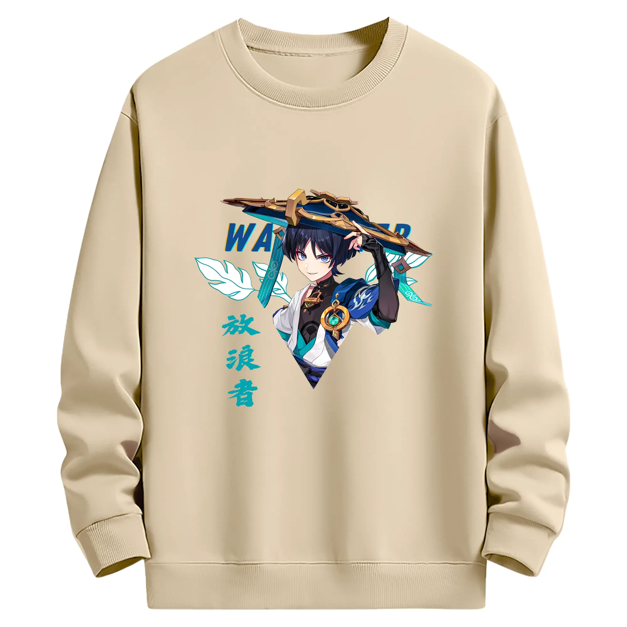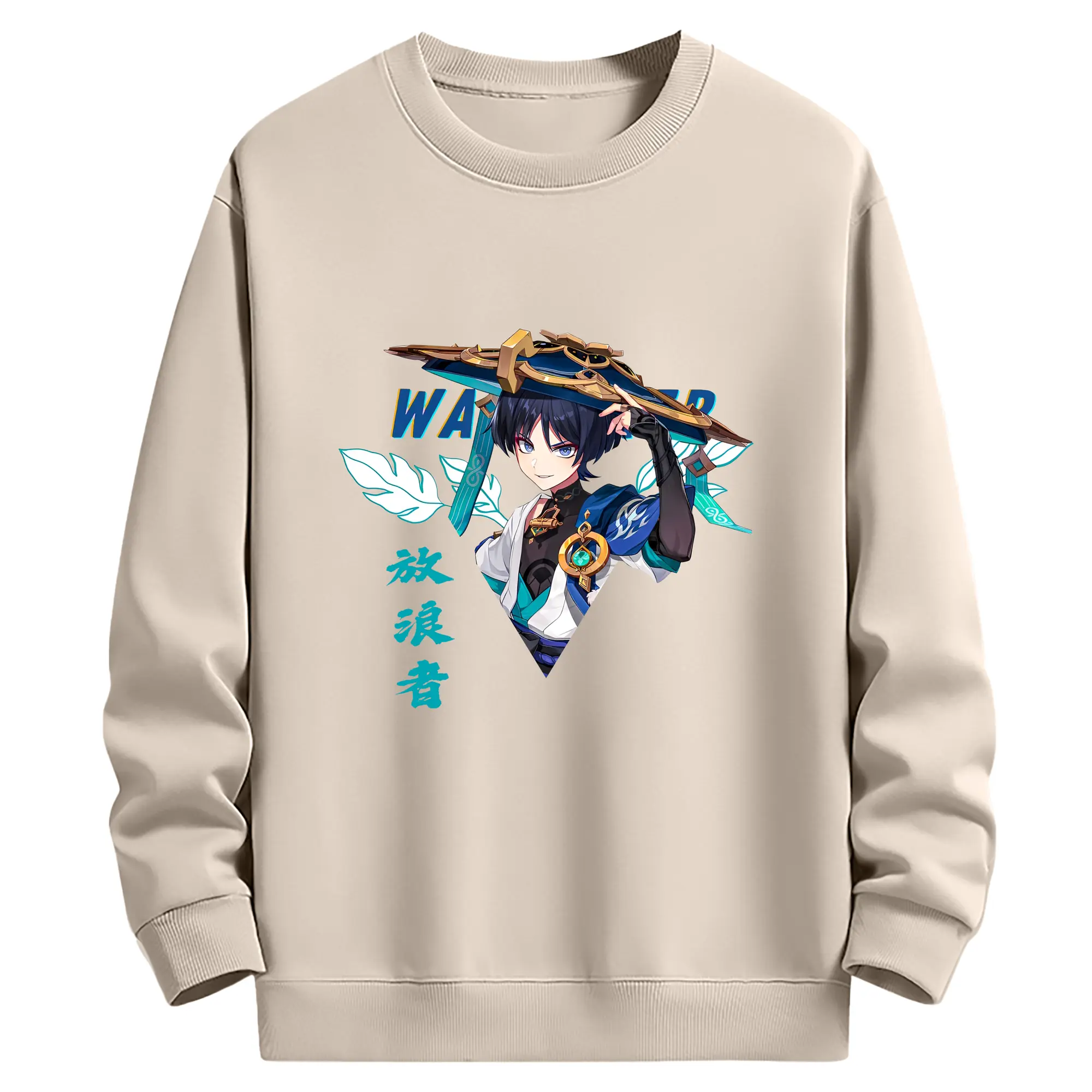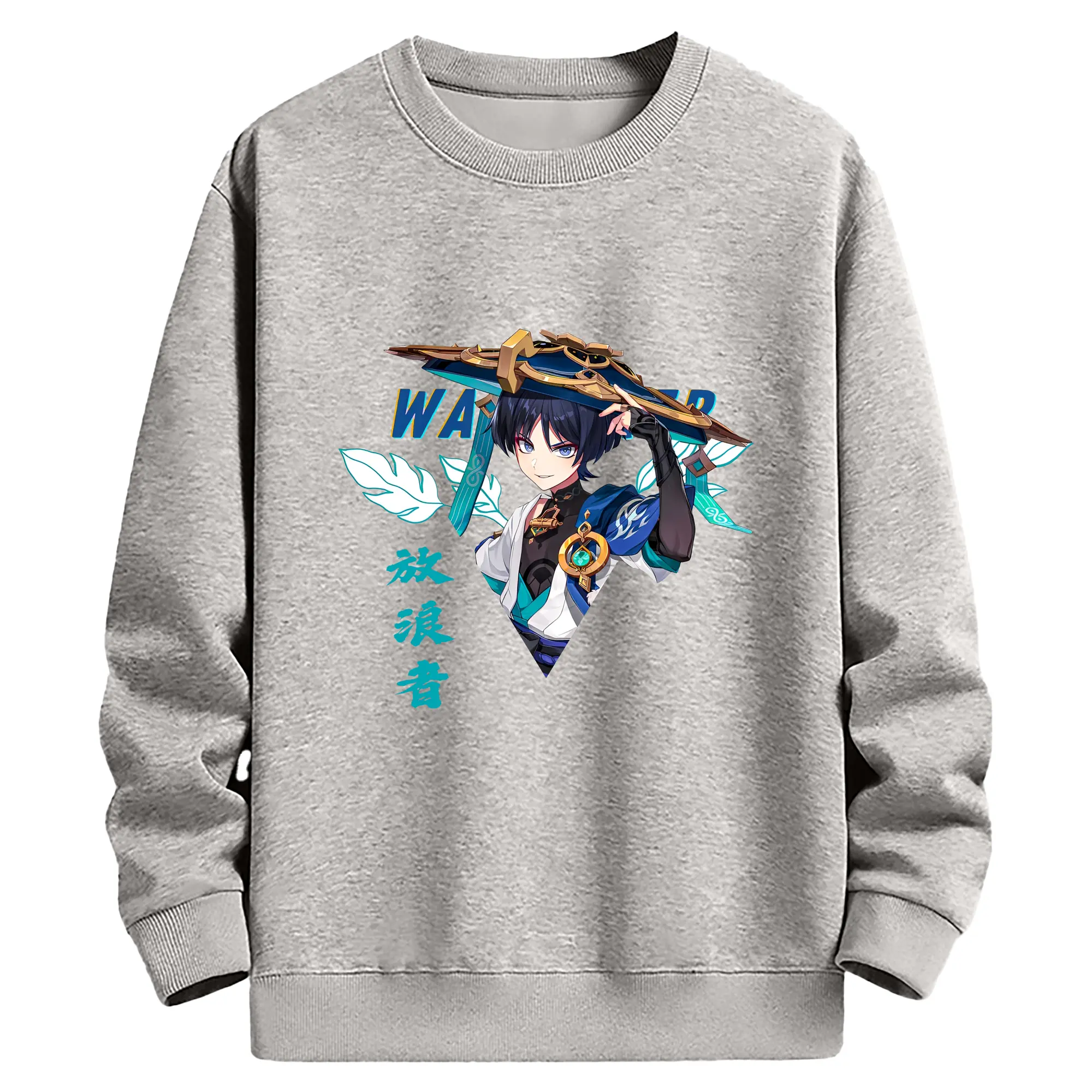 原神 ヌヴィレット キャラクターグッズ - 高品質 クルーネック スウェット ・ コットン59% ポリエステル41% ・ ユニセックス 長袖 トレーナー ・ カジュアル デイリー スポーツ 散歩用