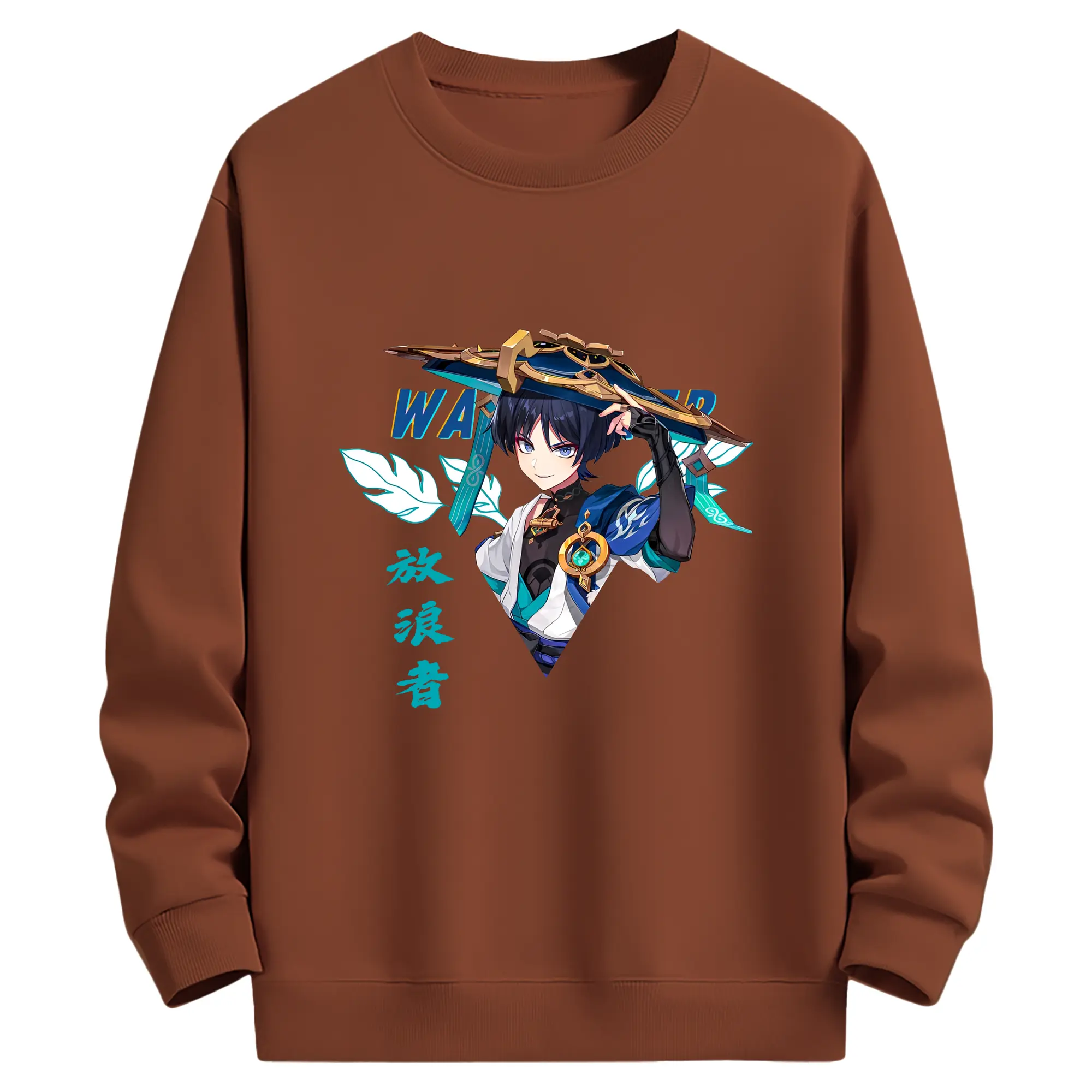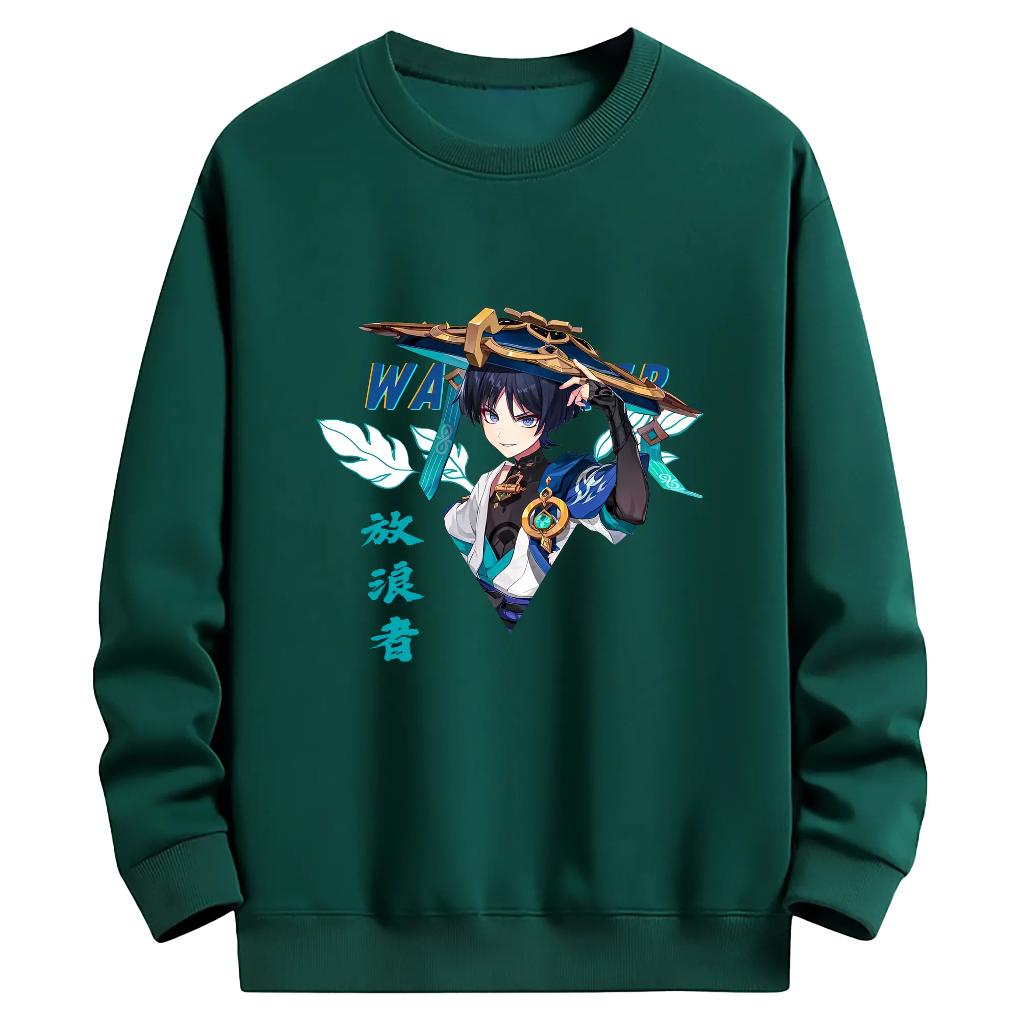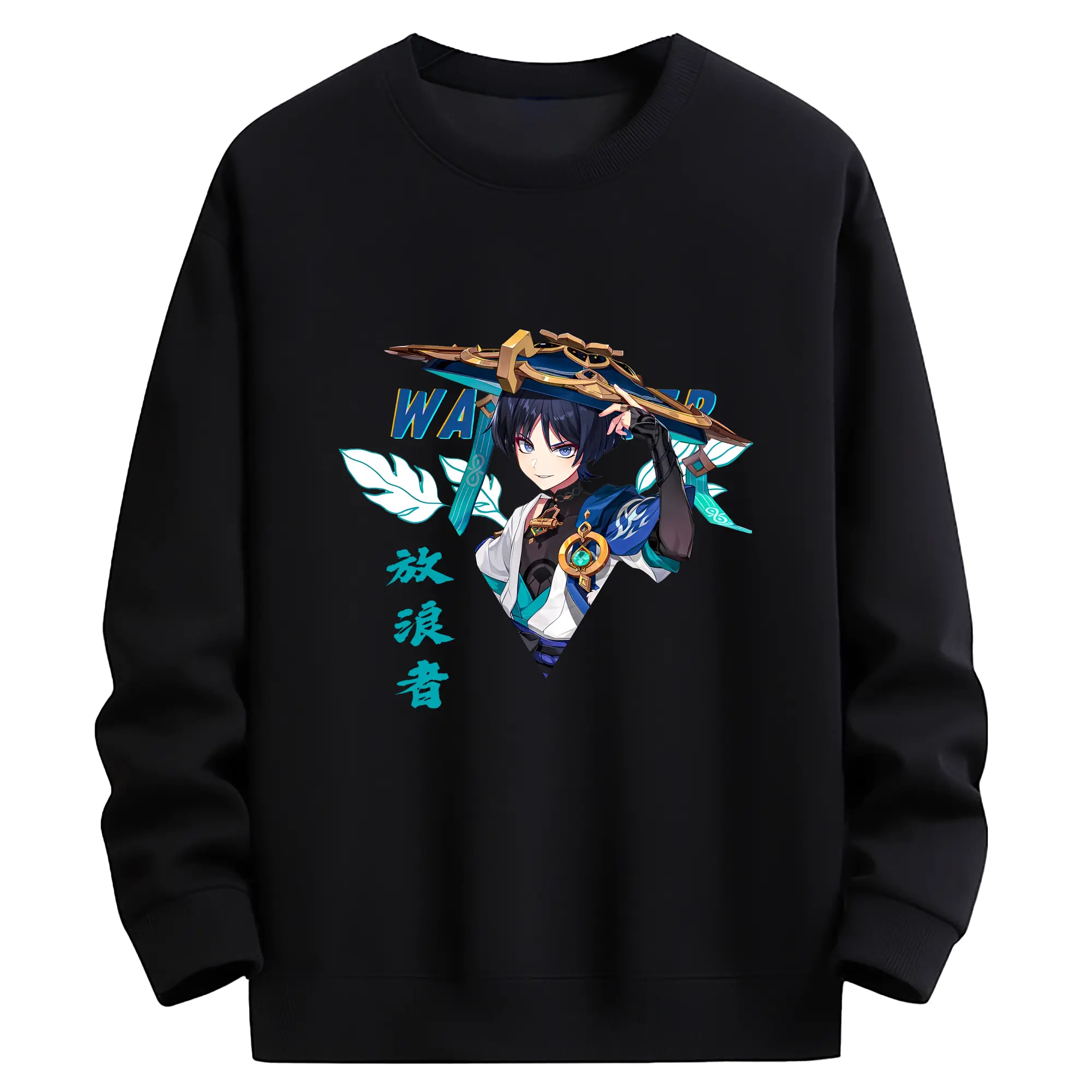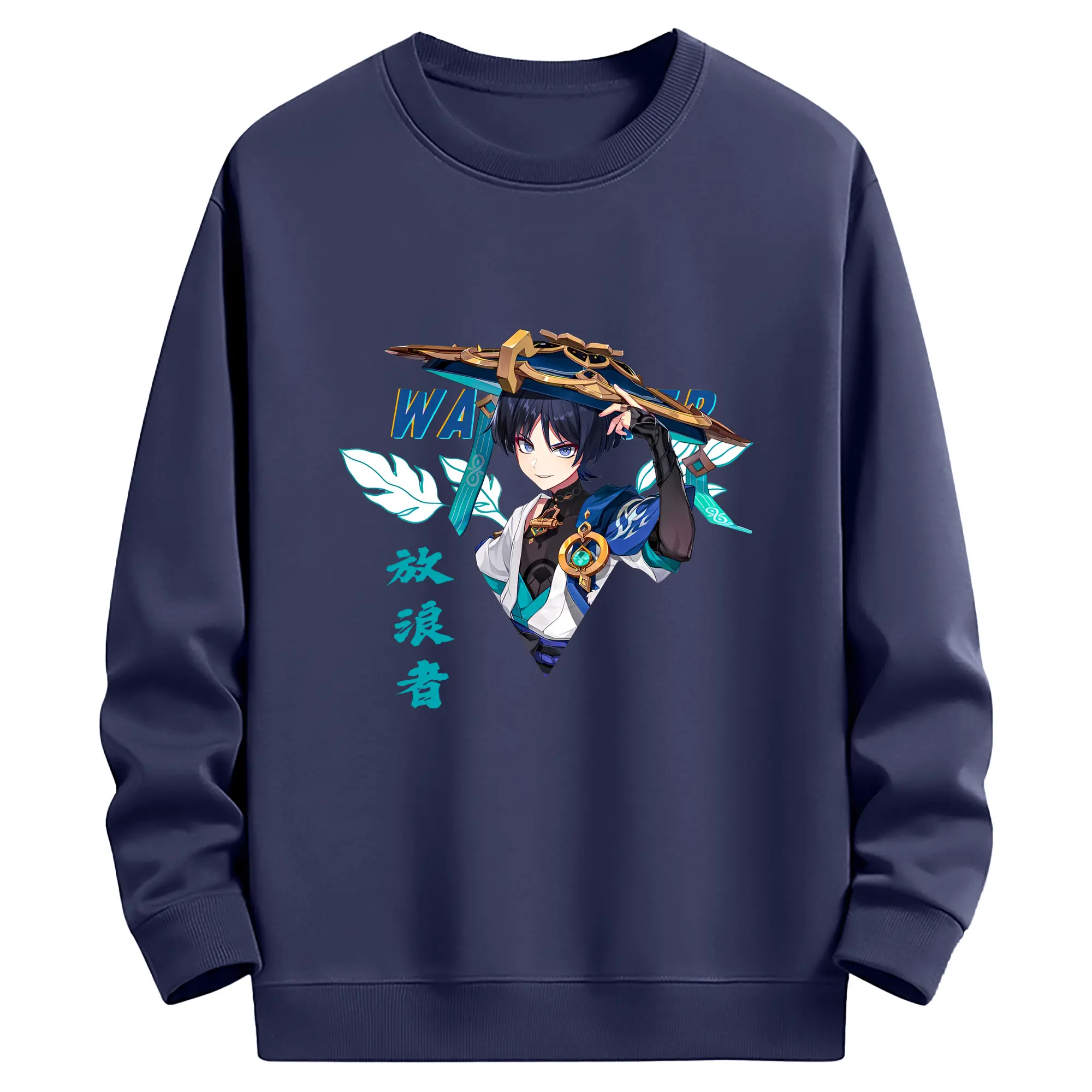 原神 ヌヴィレット キャラクターグッズ - 高品質 クルーネック スウェット ・ コットン59% ポリエステル41% ・ ユニセックス 長袖 トレーナー ・ カジュアル デイリー スポーツ 散歩用