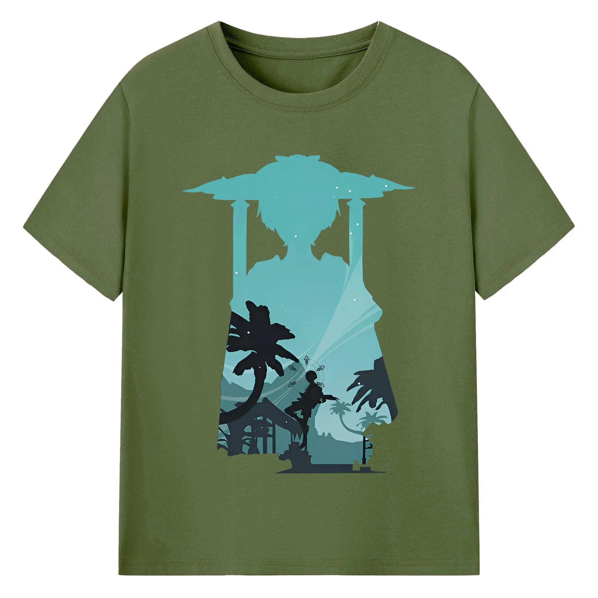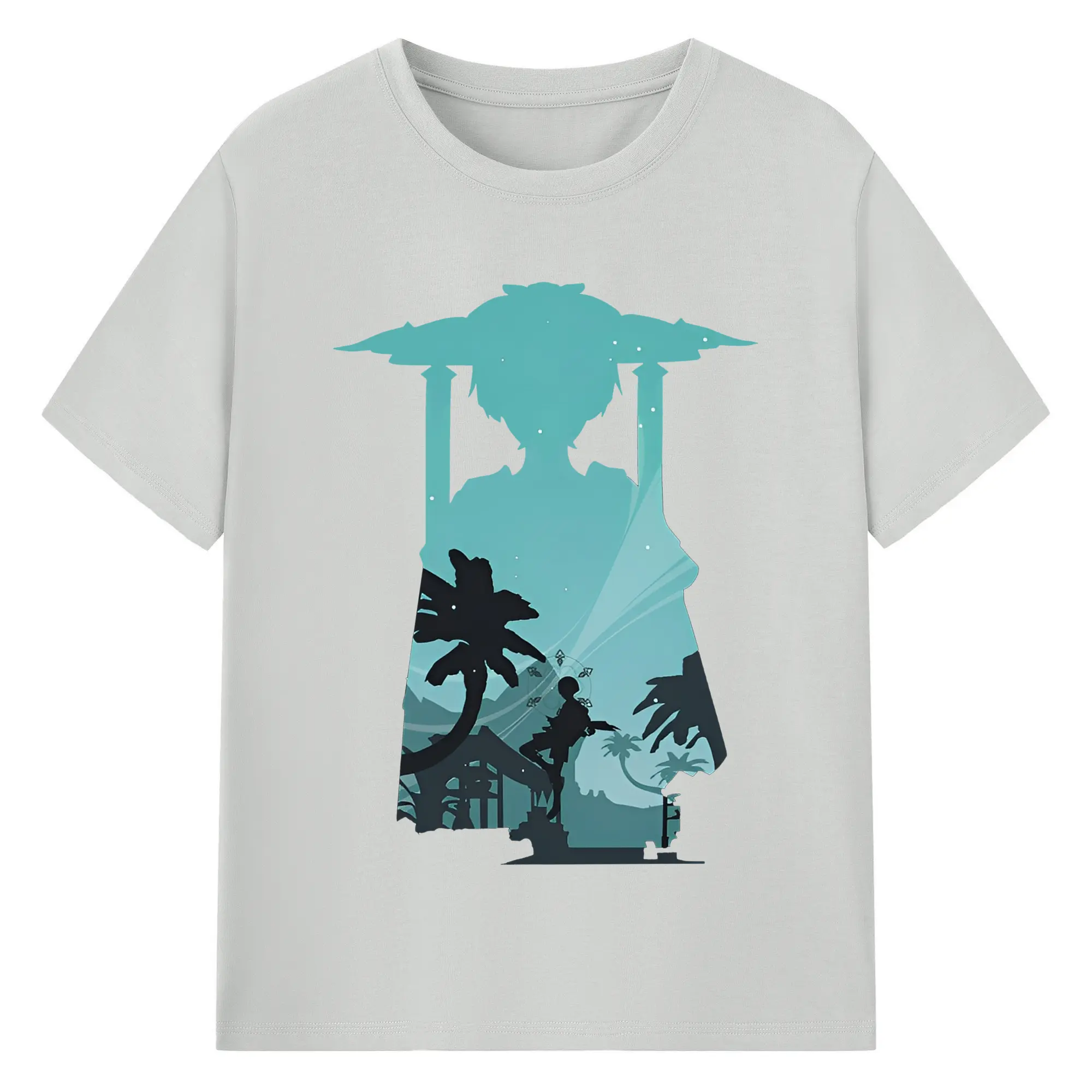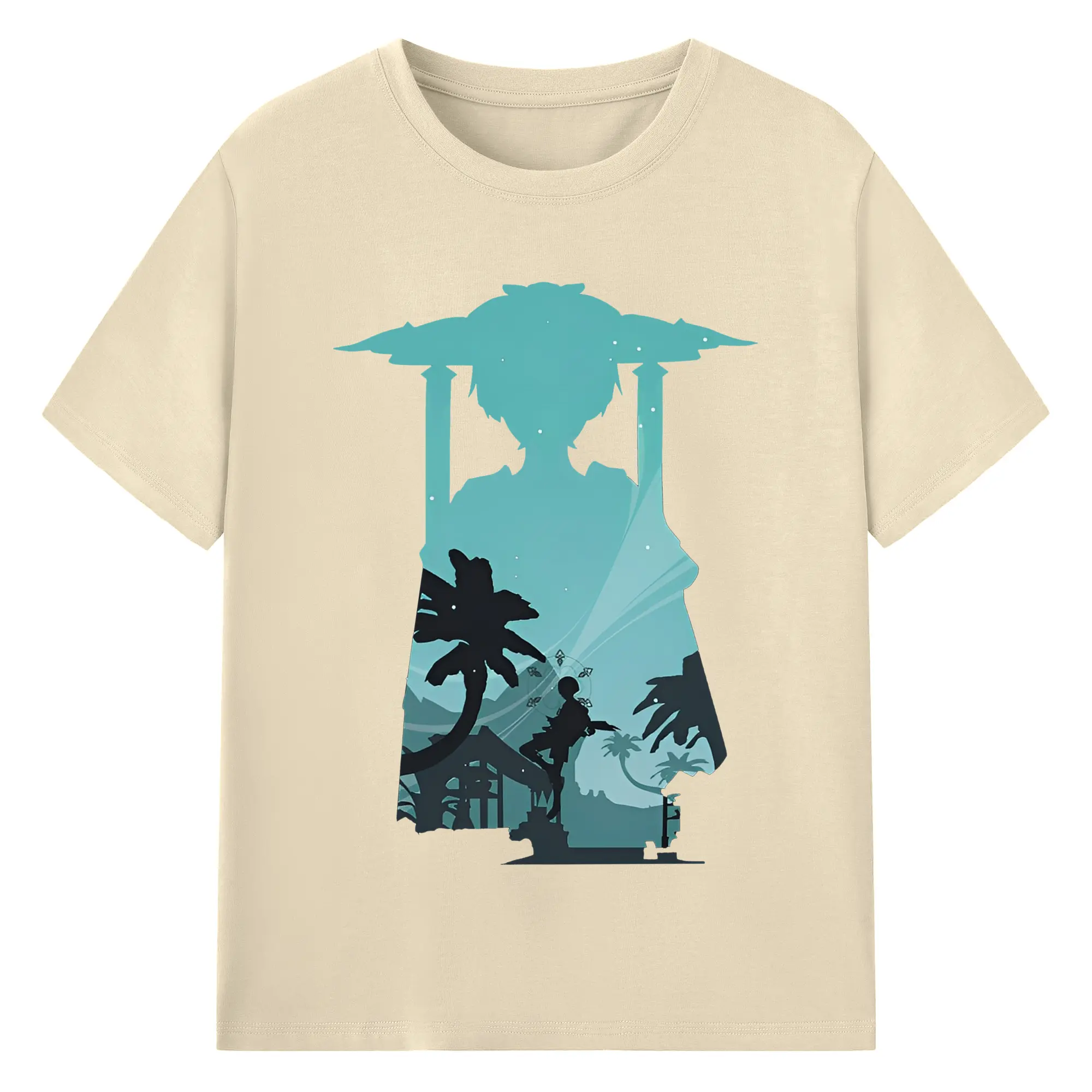 Genshin Impact 放浪者 ミニマルデザイン おしゃれスタイル - 綿100% ヴィンテージ風 半袖Tシャツ ・ フロントプリント ・ 柔らか肌触り ・ 通気性 快適 ・ スポーツ カジュアル 外出用