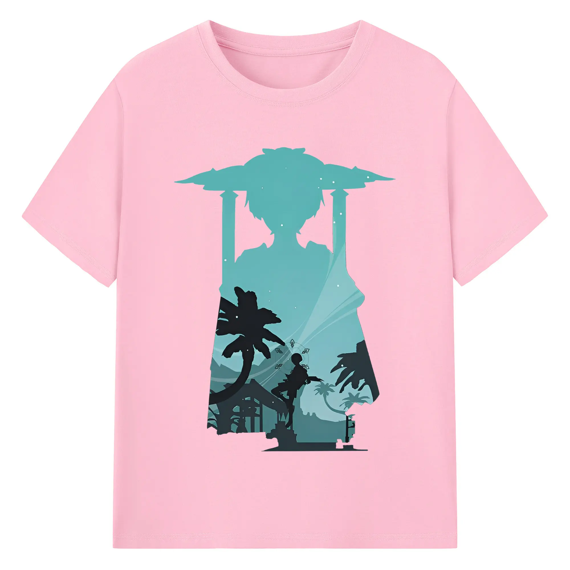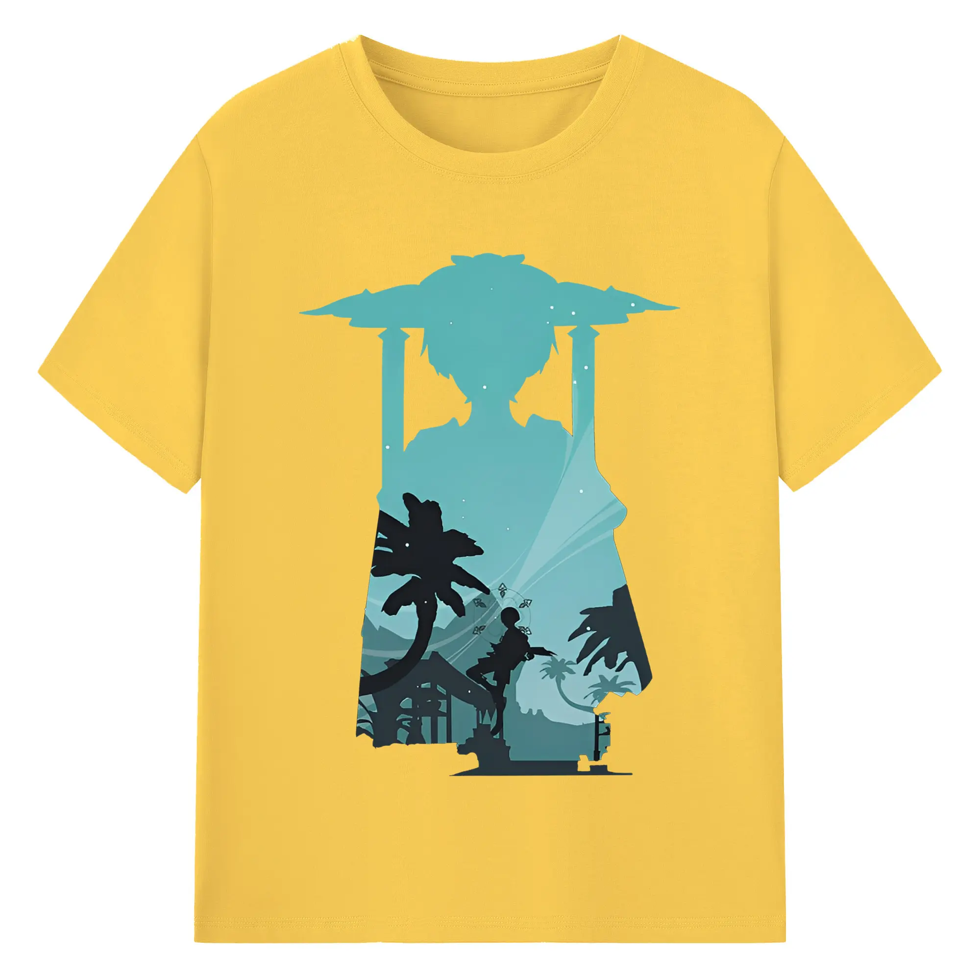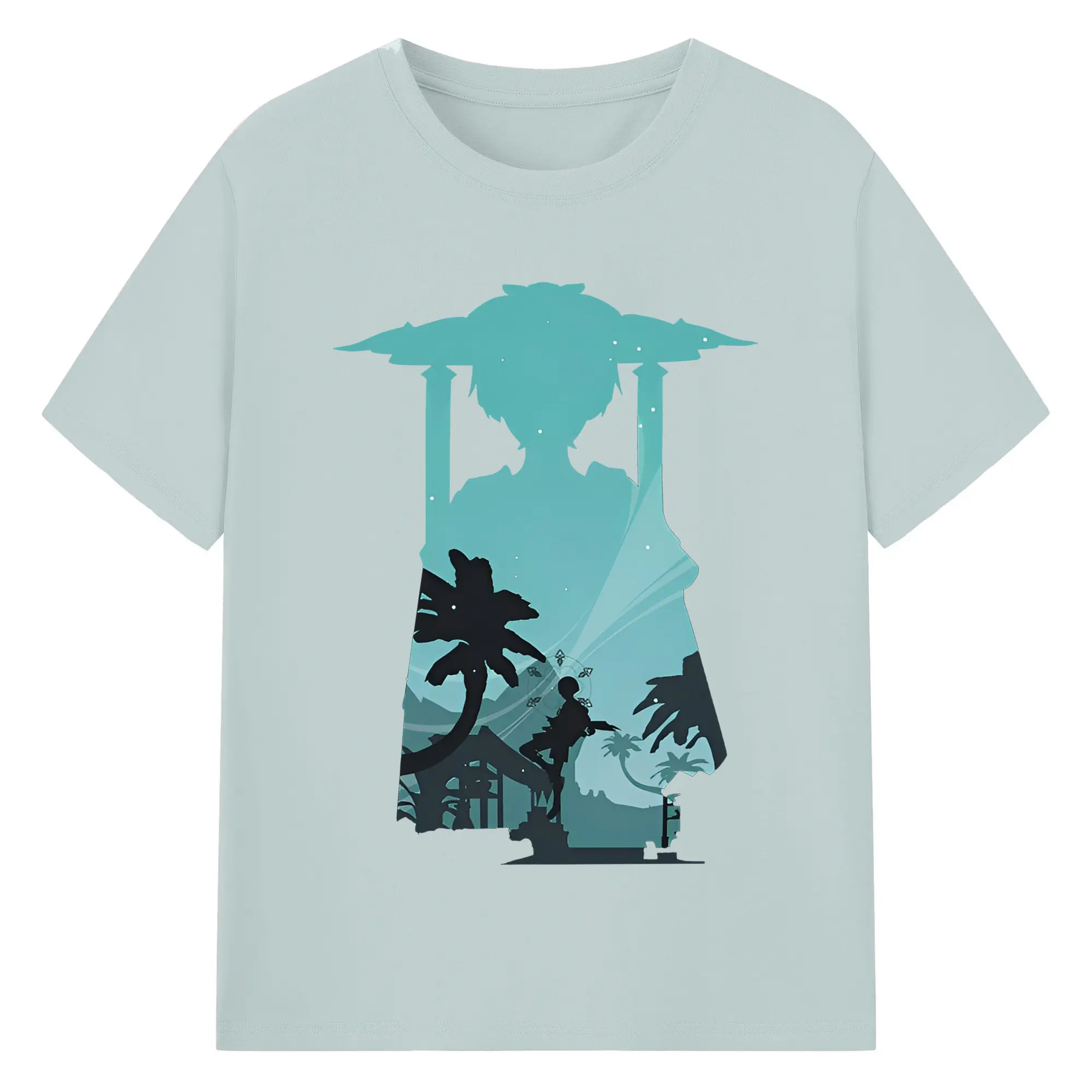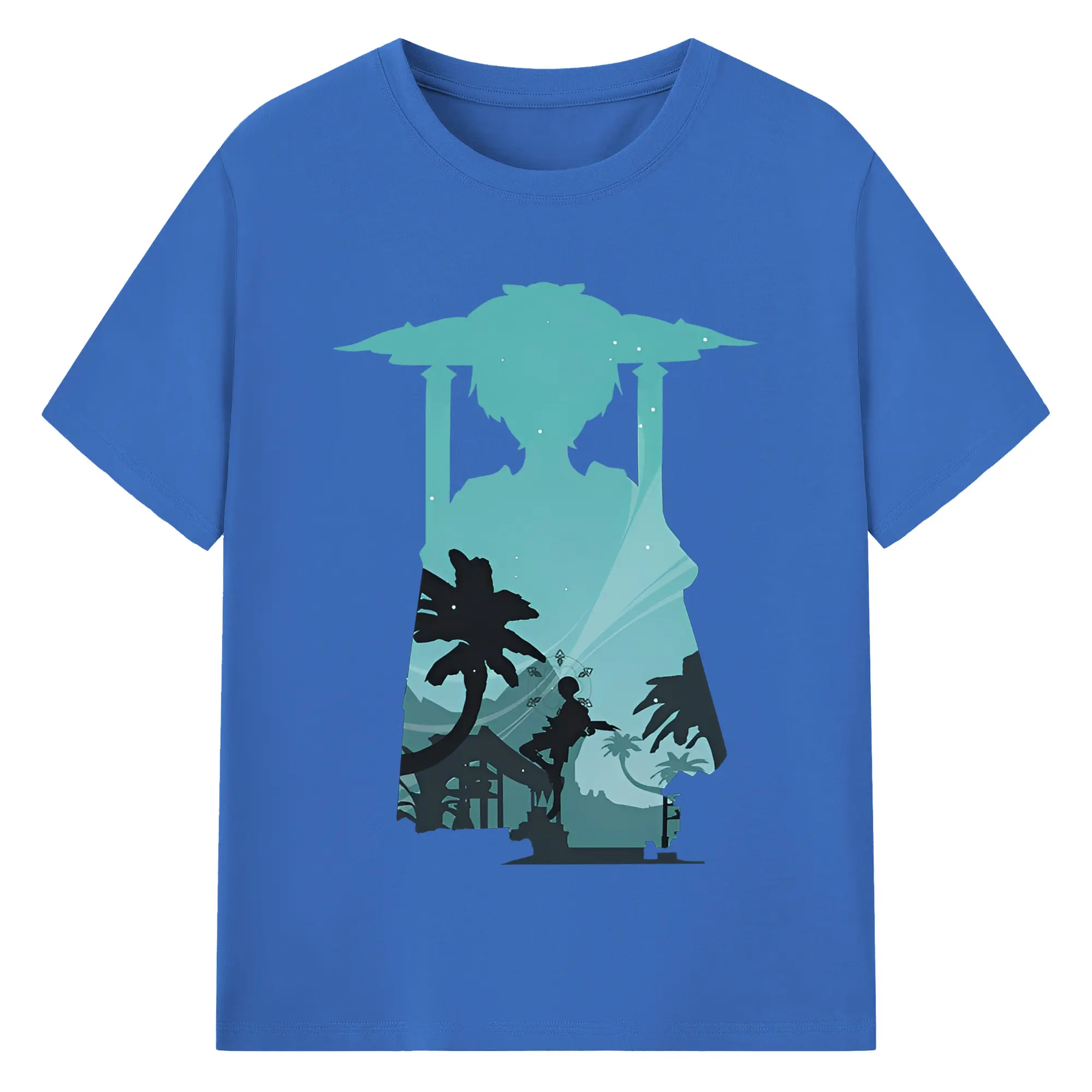 Genshin Impact 放浪者 ミニマルデザイン おしゃれスタイル - 綿100% ヴィンテージ風 半袖Tシャツ ・ フロントプリント ・ 柔らか肌触り ・ 通気性 快適 ・ スポーツ カジュアル 外出用