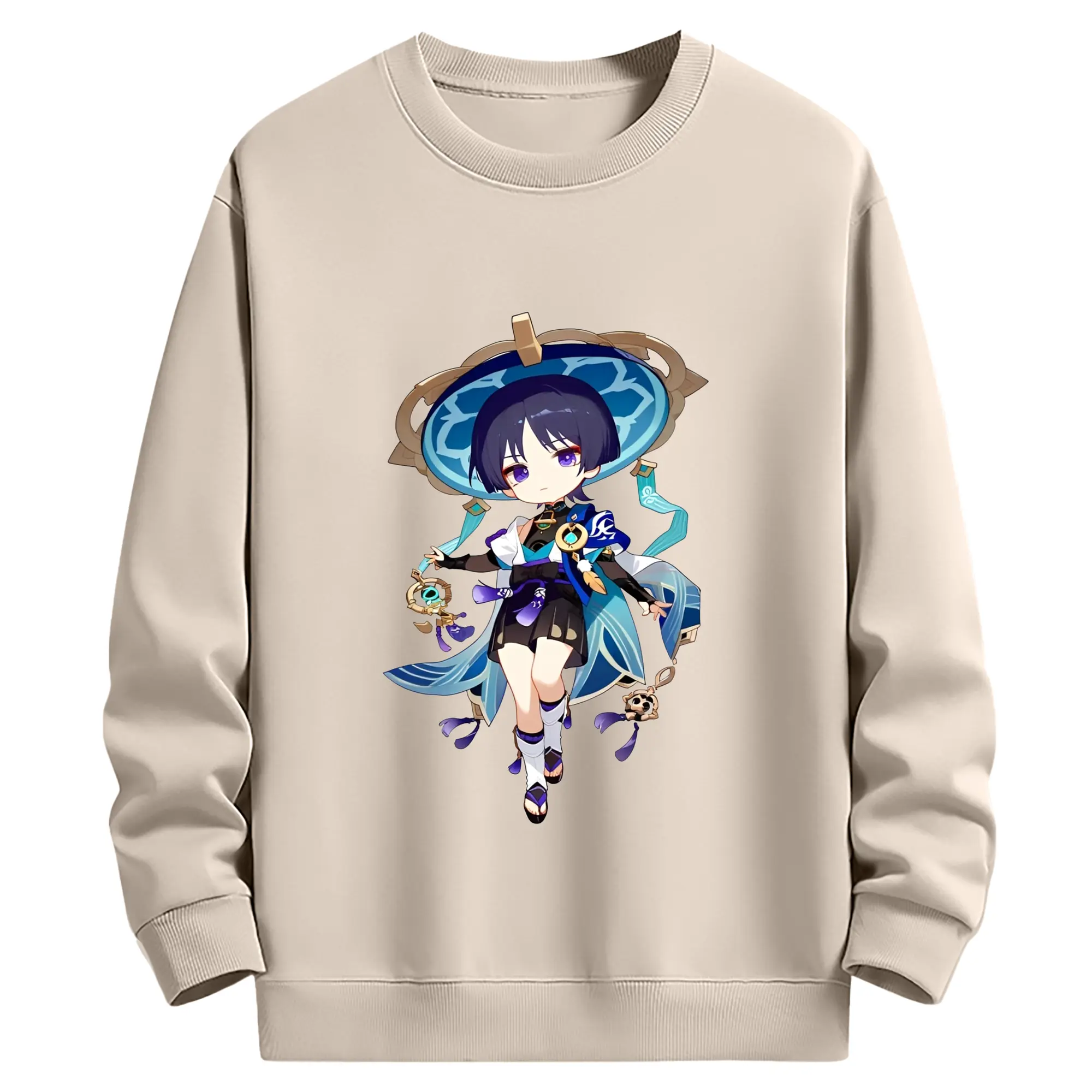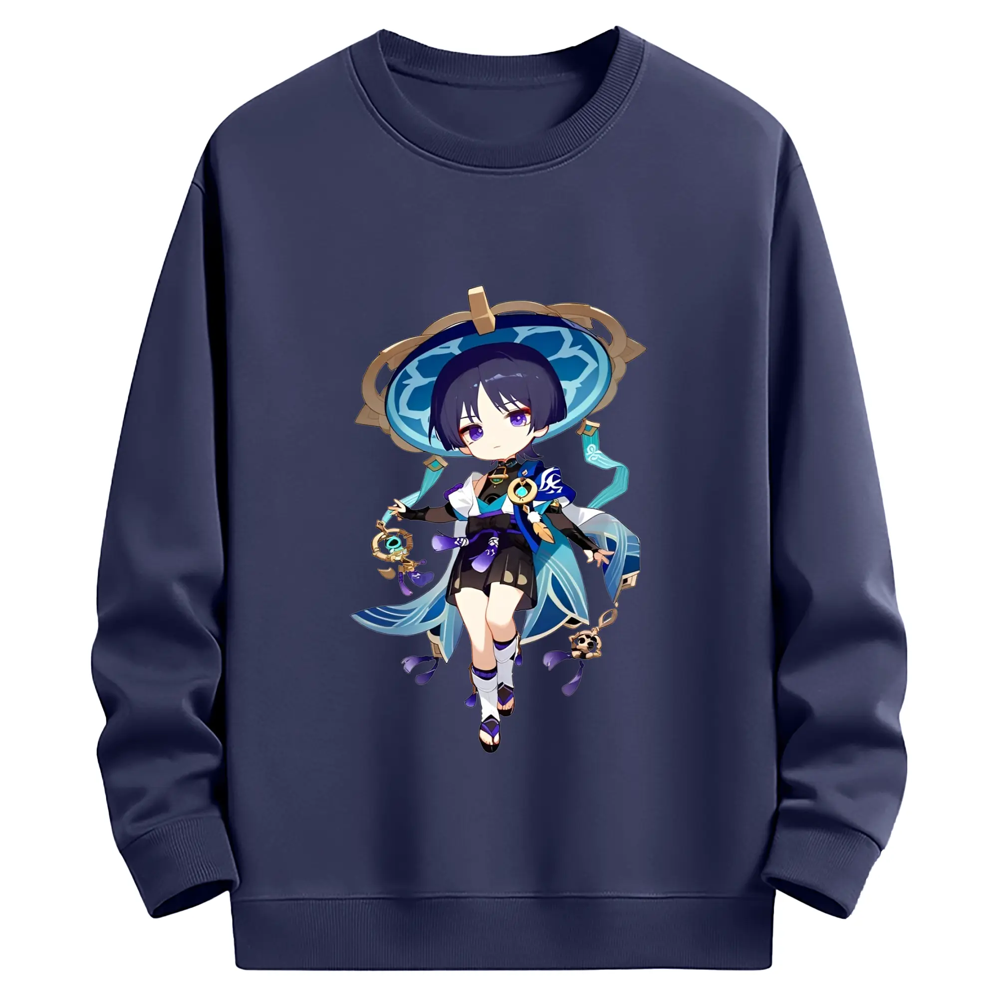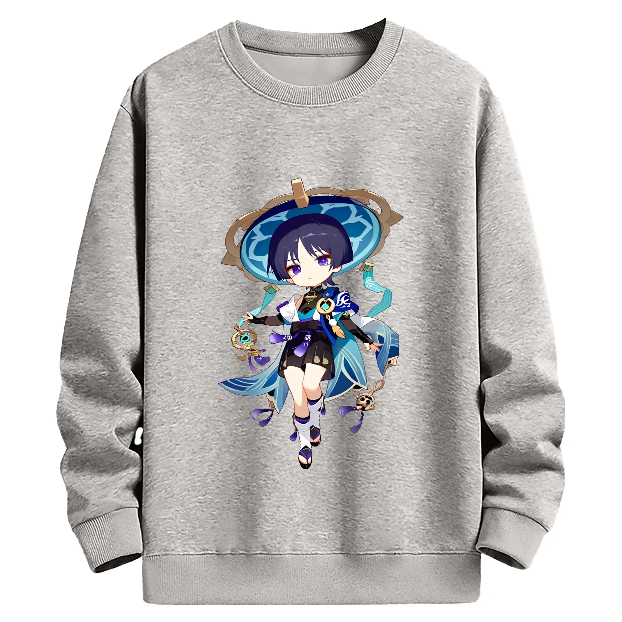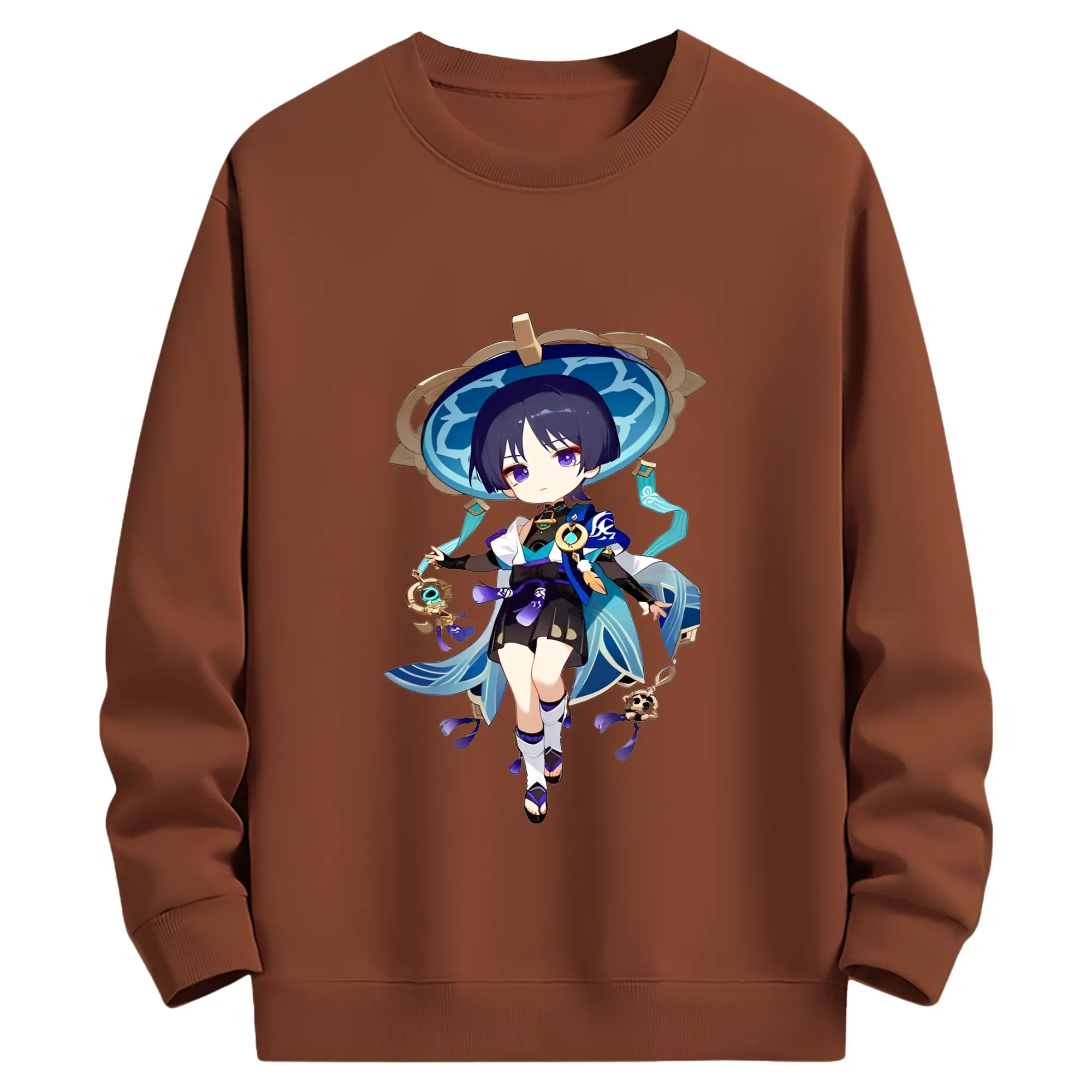 原神 ヌヴィレット キャラクターグッズ - 高品質 クルーネック スウェット ・ コットン59% ポリエステル41% ・ ユニセックス 長袖 トレーナー ・ カジュアル デイリー スポーツ 散歩用