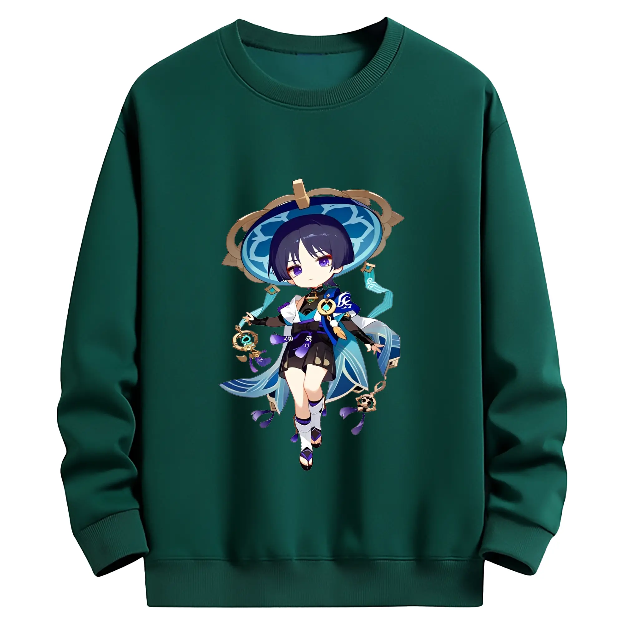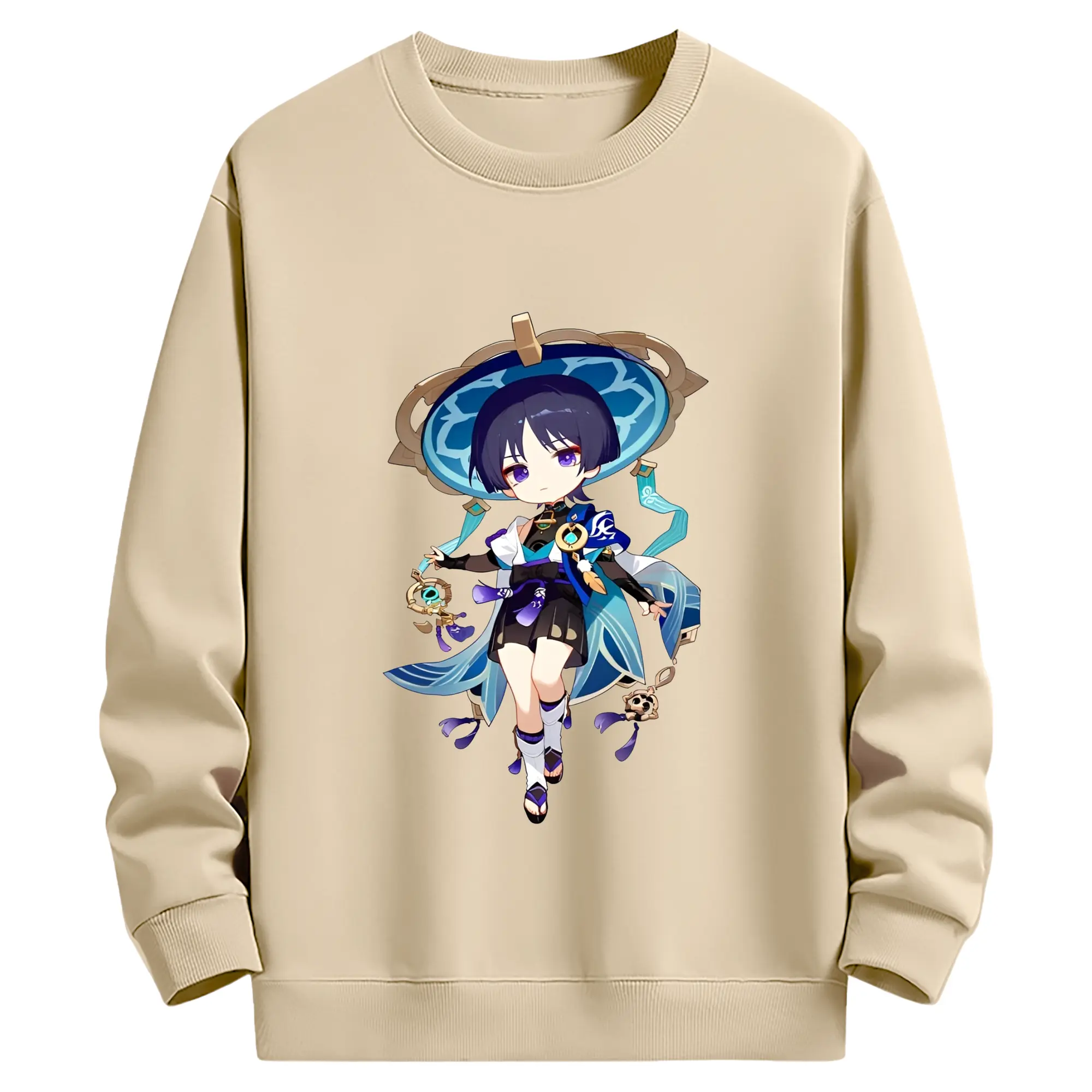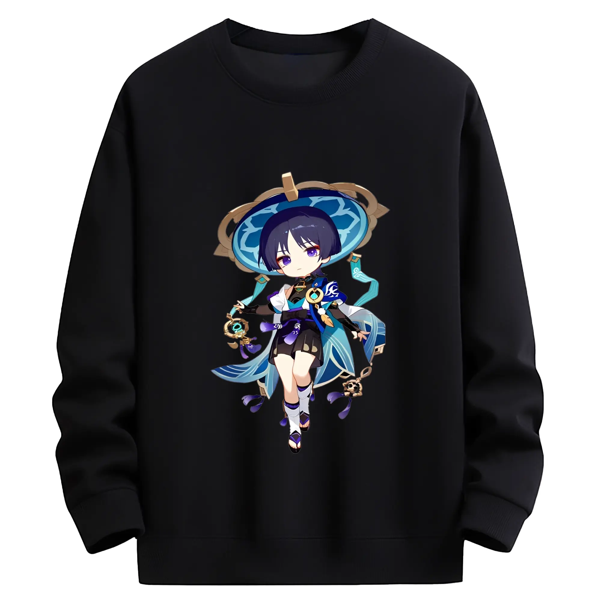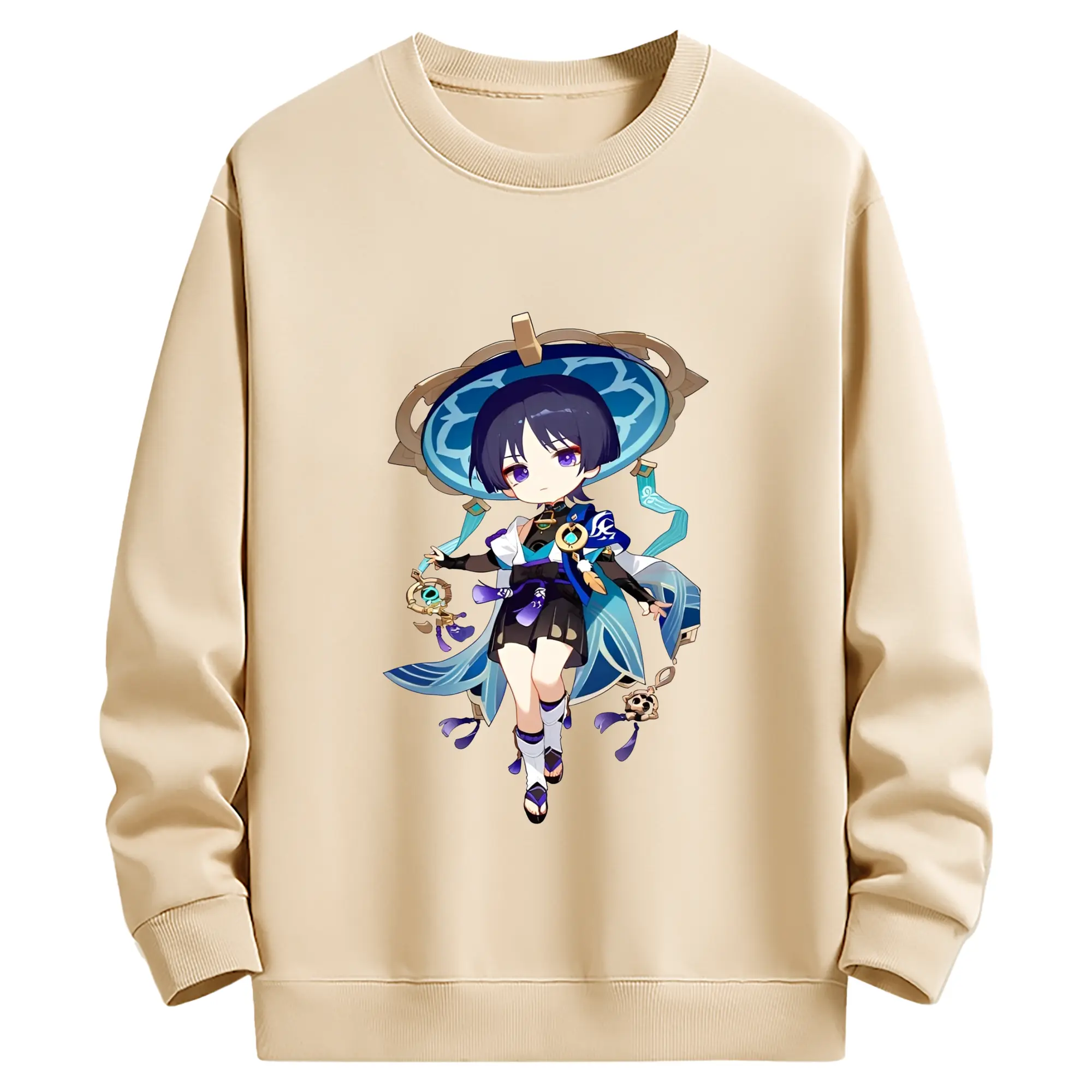 原神 ヌヴィレット キャラクターグッズ - 高品質 クルーネック スウェット ・ コットン59% ポリエステル41% ・ ユニセックス 長袖 トレーナー ・ カジュアル デイリー スポーツ 散歩用