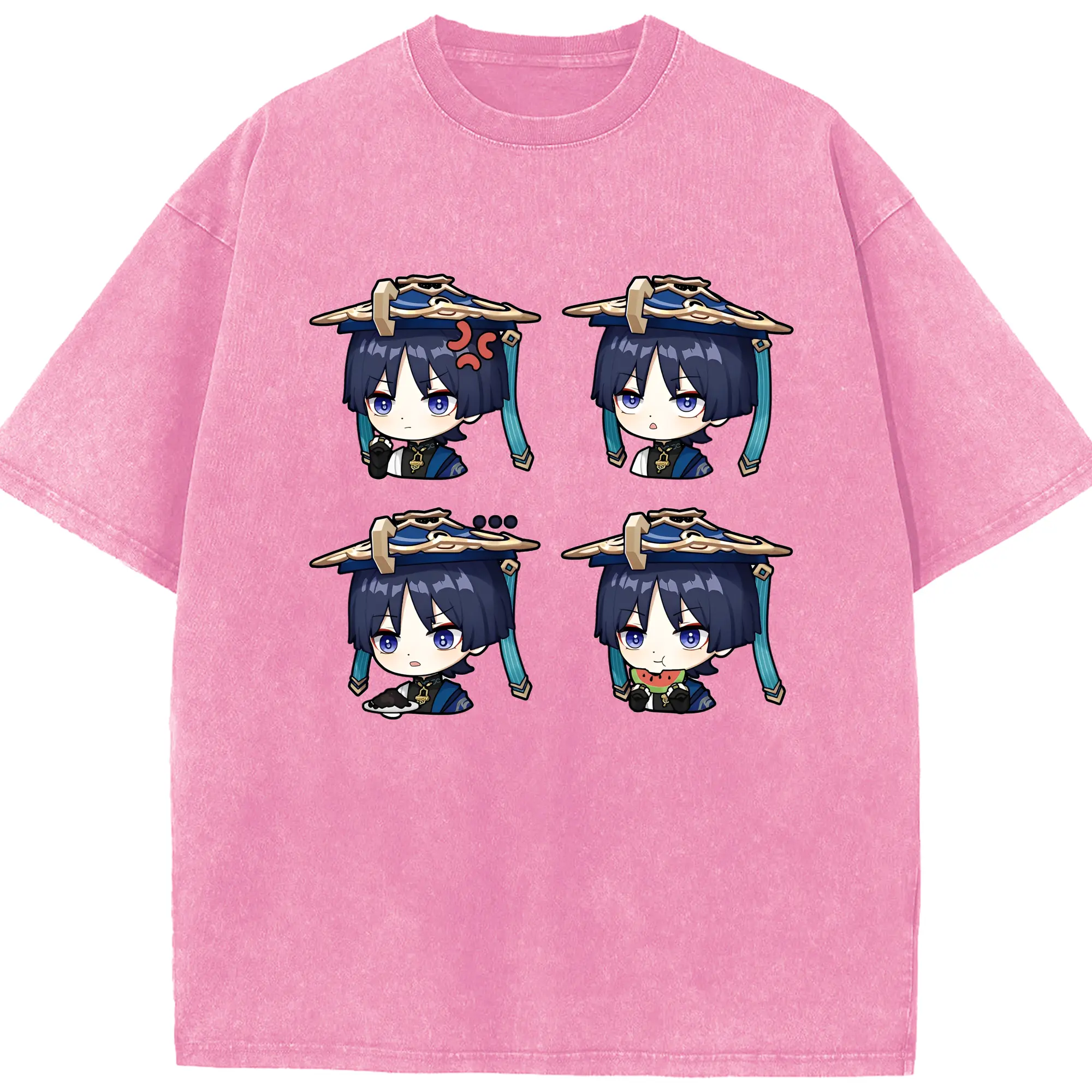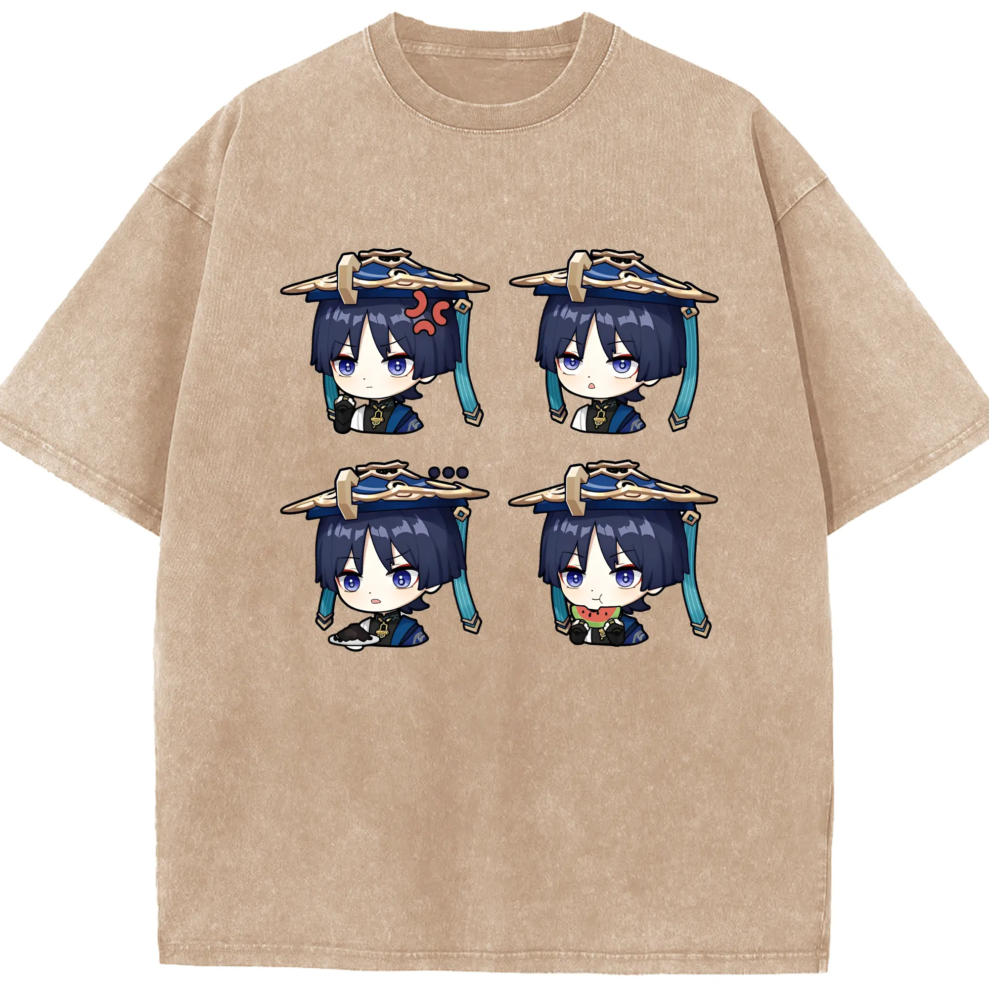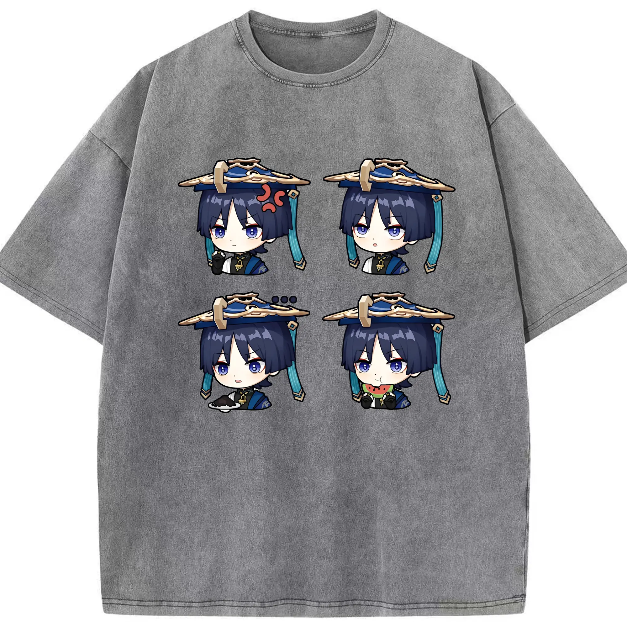 Genshin Impact 放浪者 Q版キャラクター 可愛いファングッズ - 綿100% 半袖Tシャツ ・ フロントプリント ・ 快適 通気性 ・ 日常使い 散歩 スポーツ用