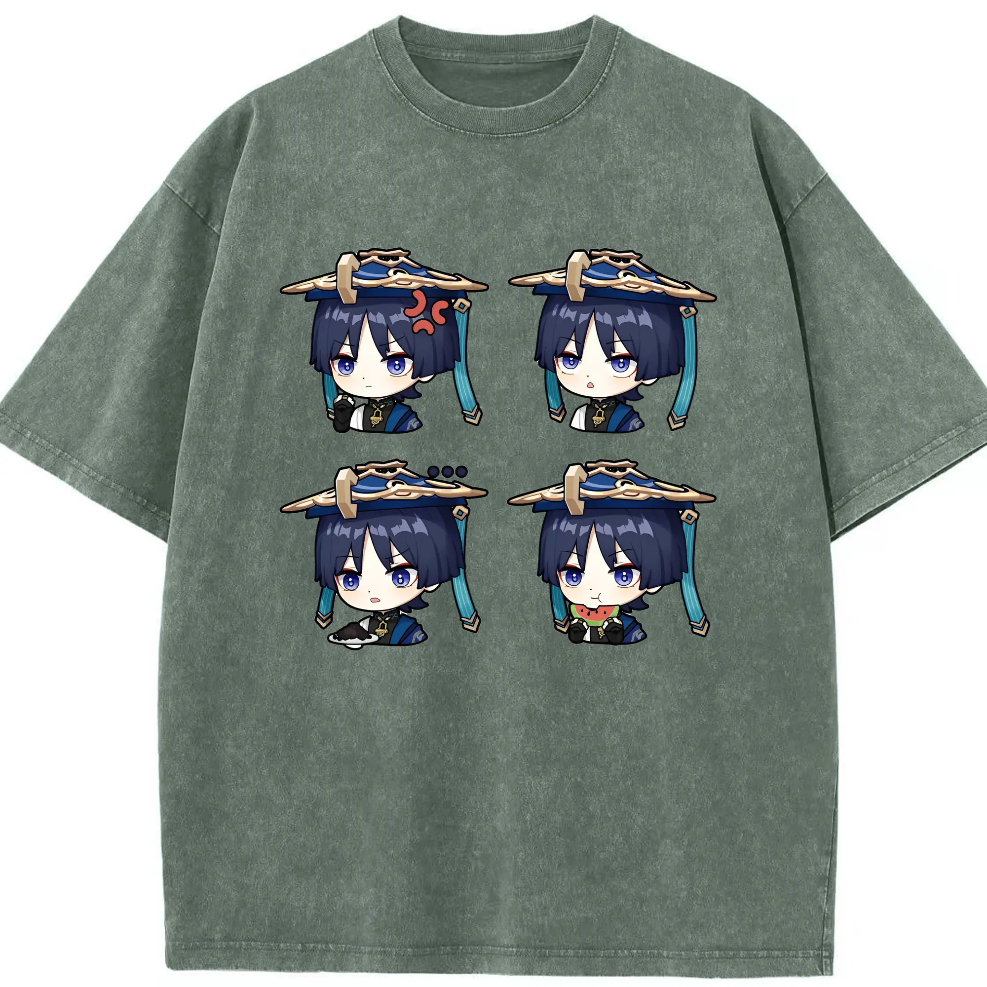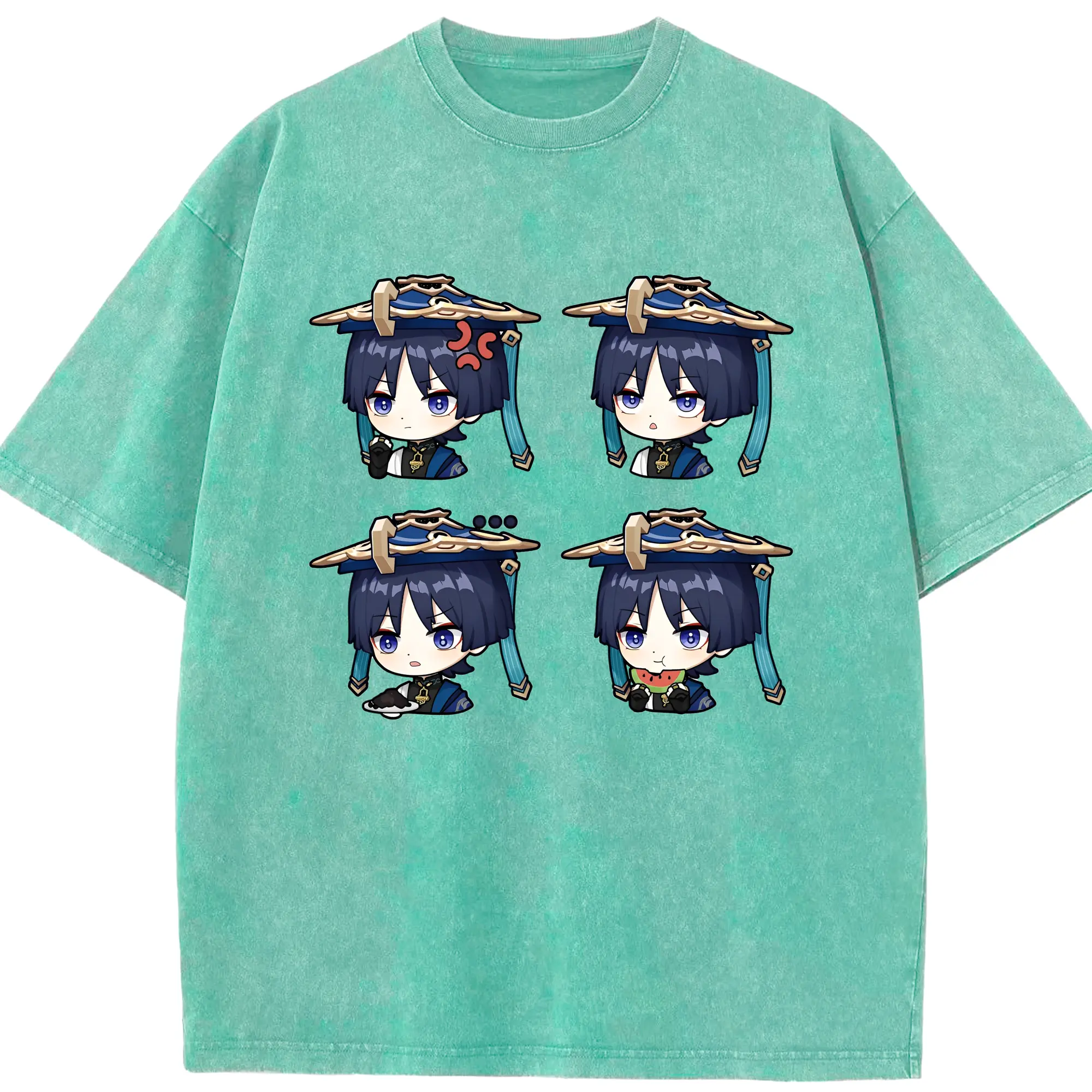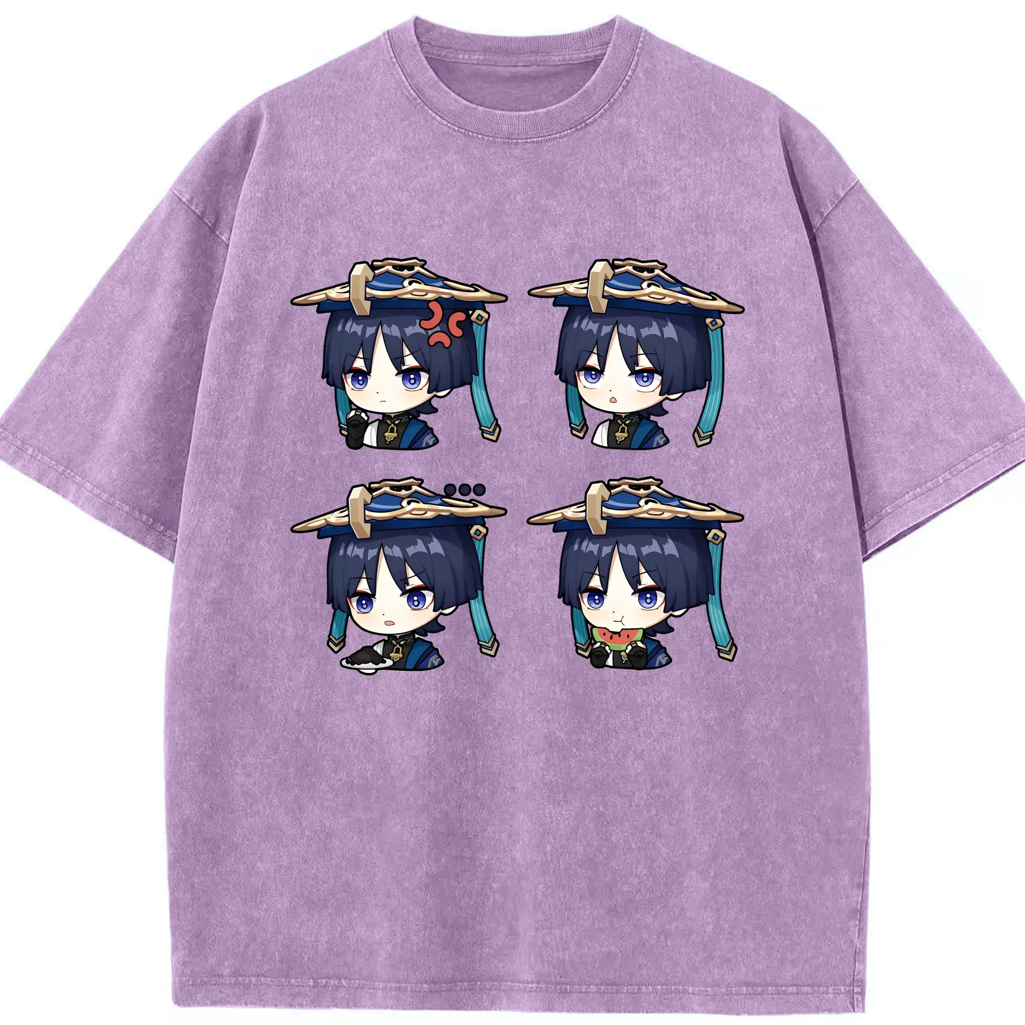 Genshin Impact 放浪者 Q版キャラクター 可愛いファングッズ - 綿100% 半袖Tシャツ ・ フロントプリント ・ 快適 通気性 ・ 日常使い 散歩 スポーツ用