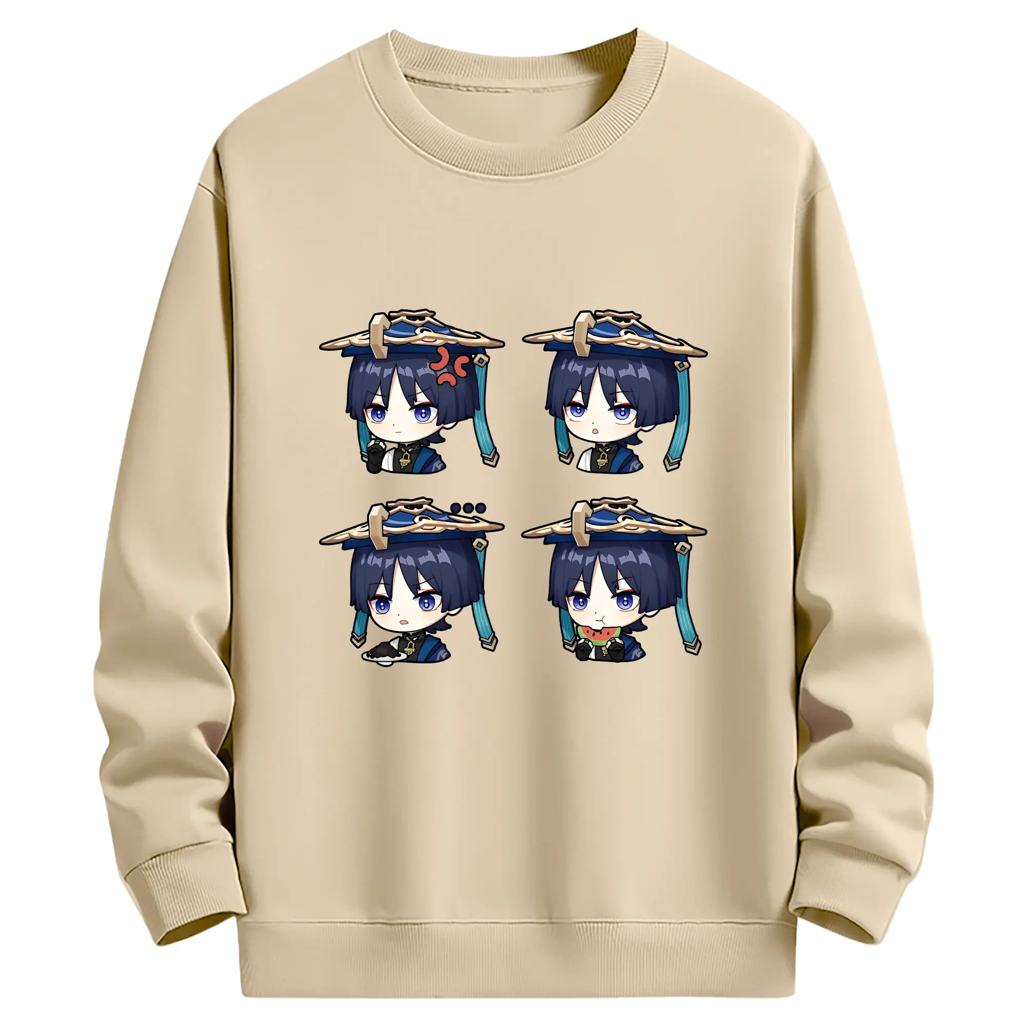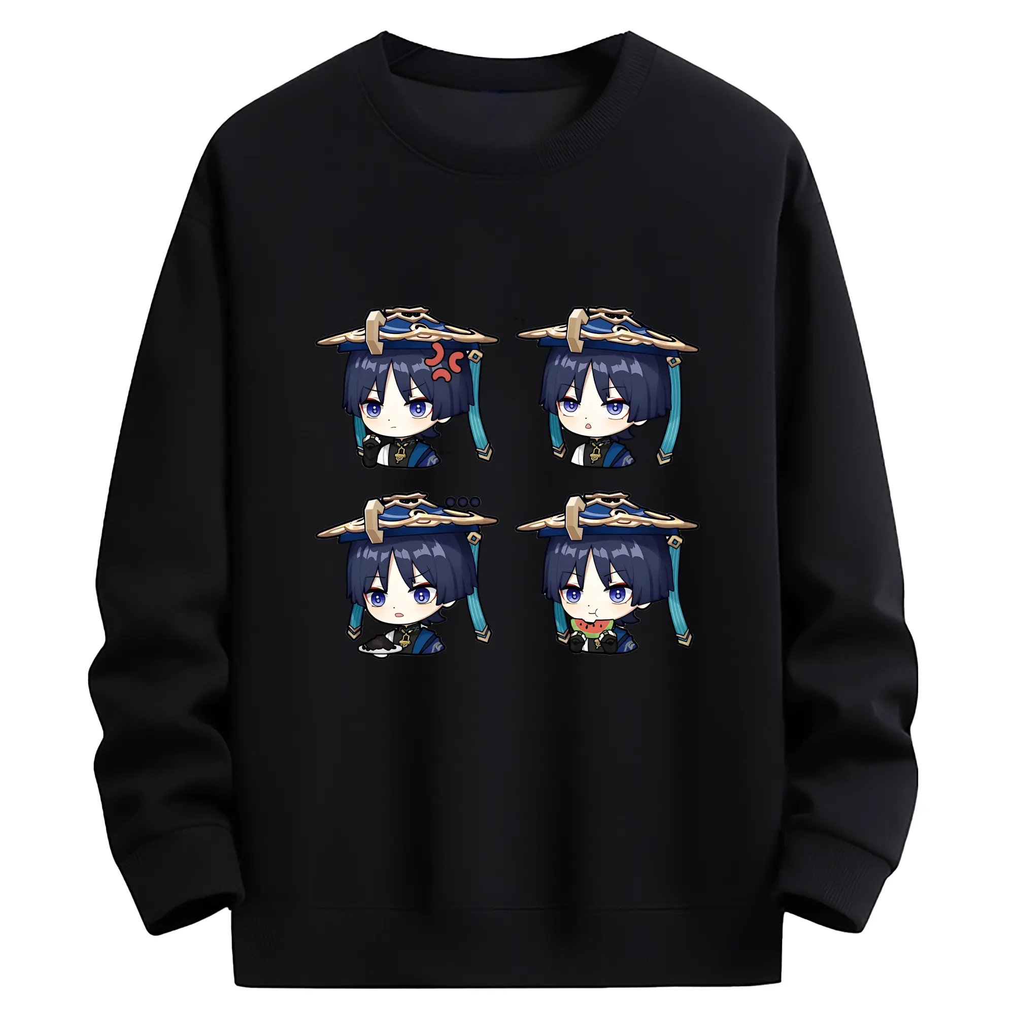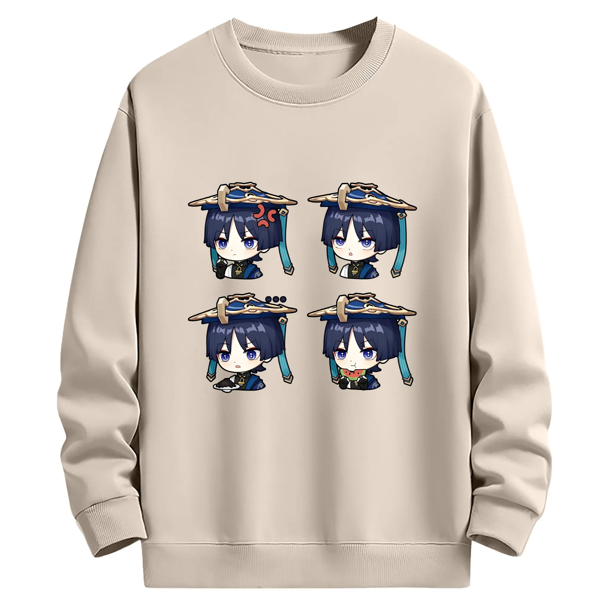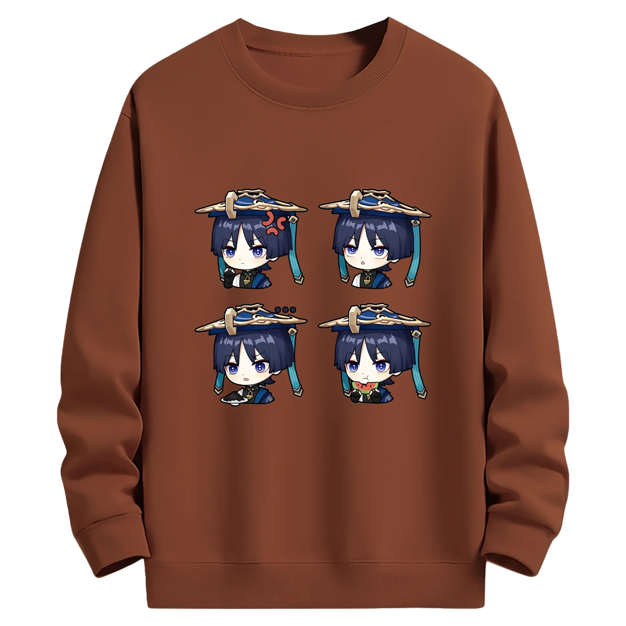 原神 胡桃 ゆるかわアート - 高品質 クルーネック スウェット ・ コットン59% ポリエステル41% ・ ユニセックス 長袖 トレーナー ・ カジュアル デイリー スポーツ 散歩用