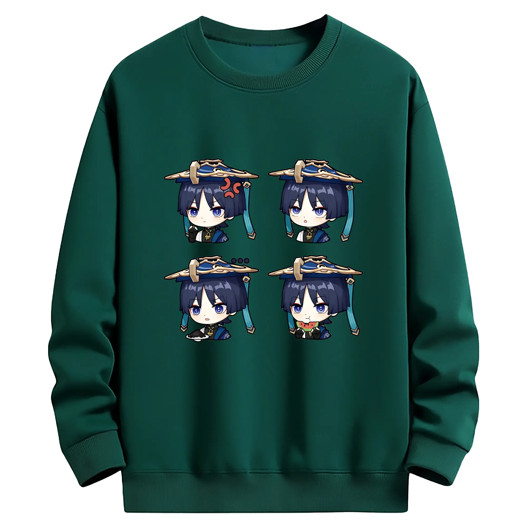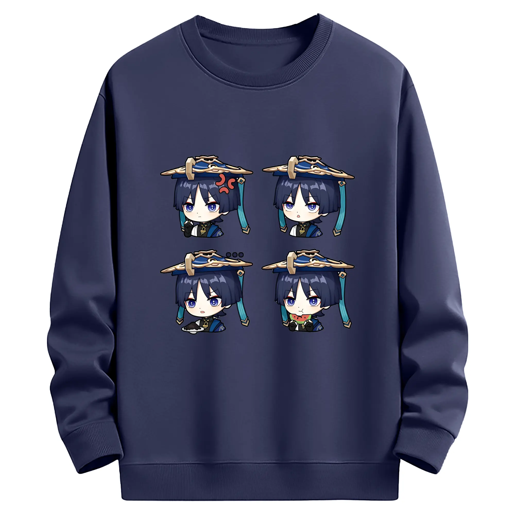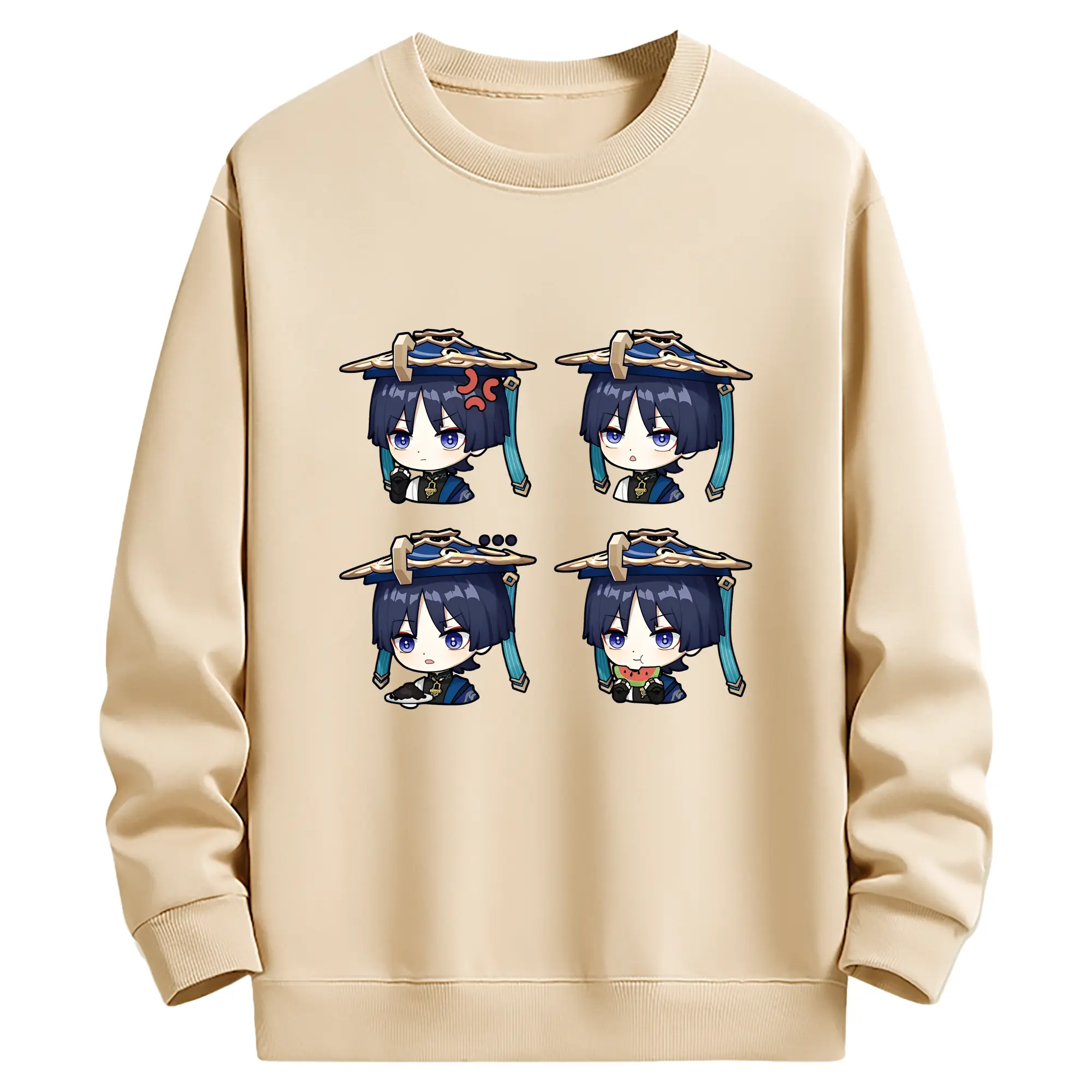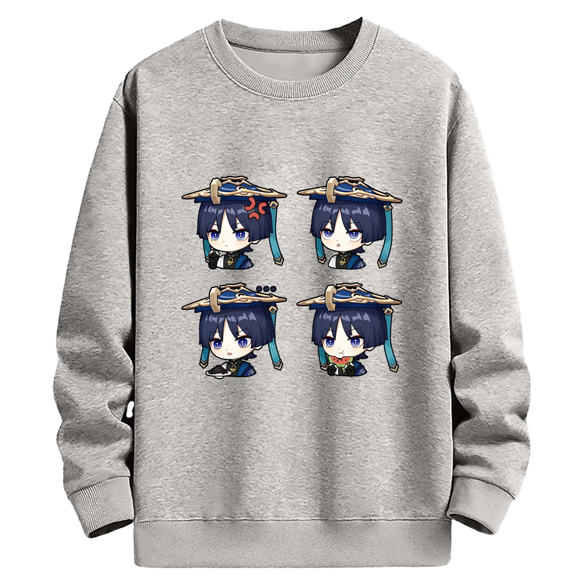原神 胡桃 ゆるかわアート - 高品質 クルーネック スウェット ・ コットン59% ポリエステル41% ・ ユニセックス 長袖 トレーナー ・ カジュアル デイリー スポーツ 散歩用