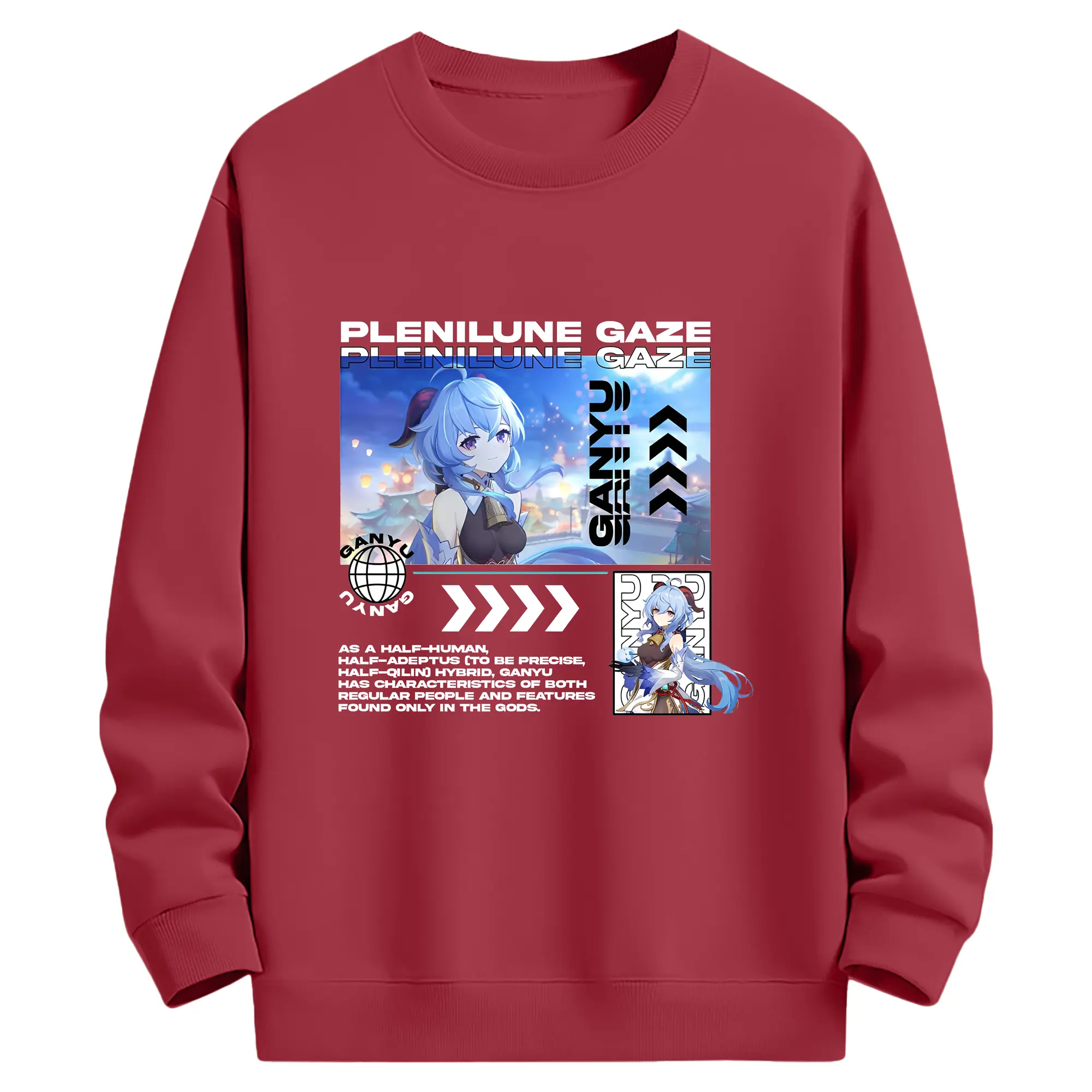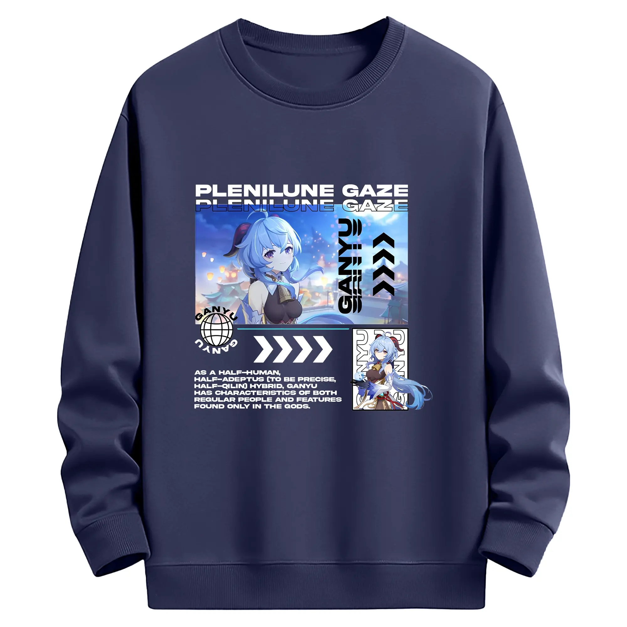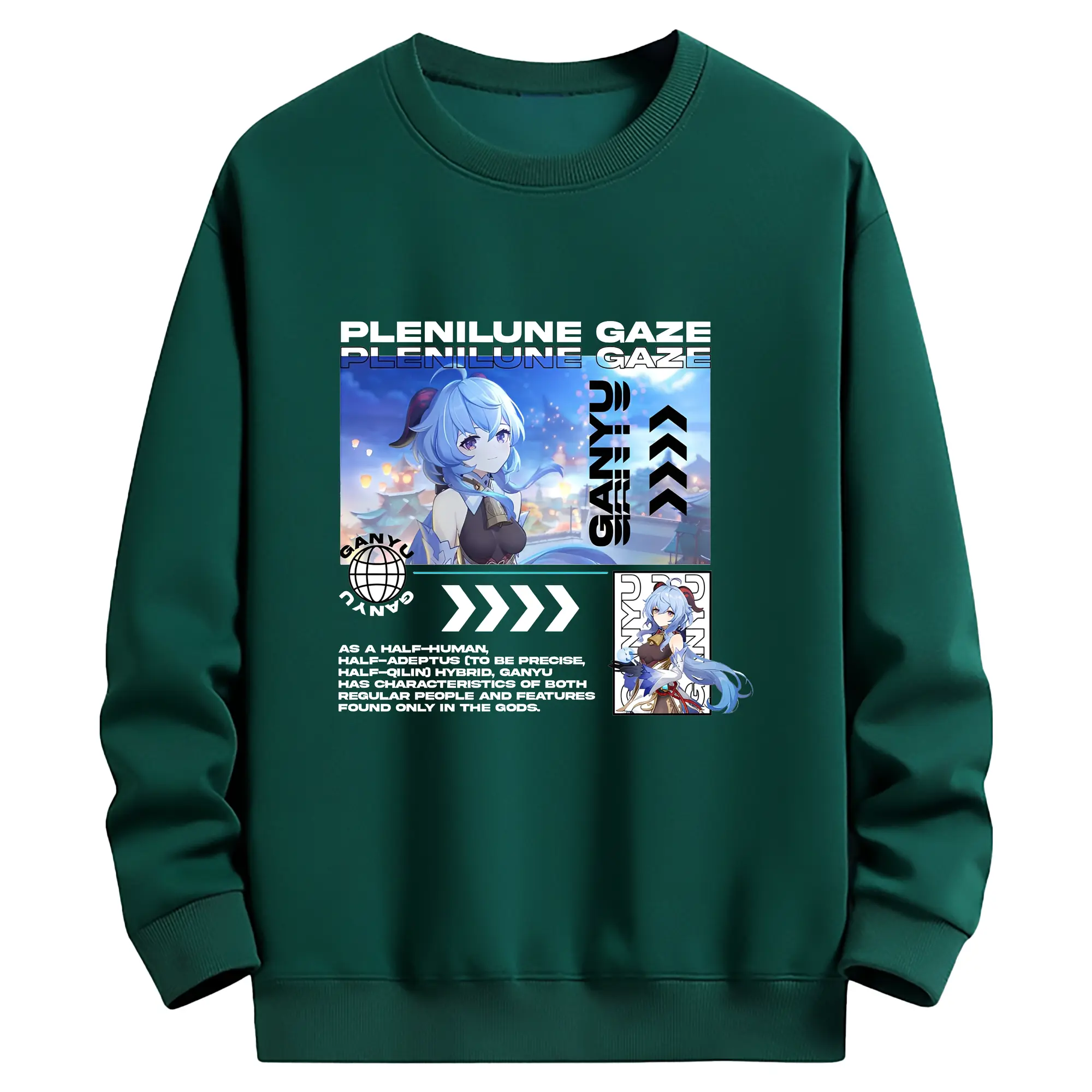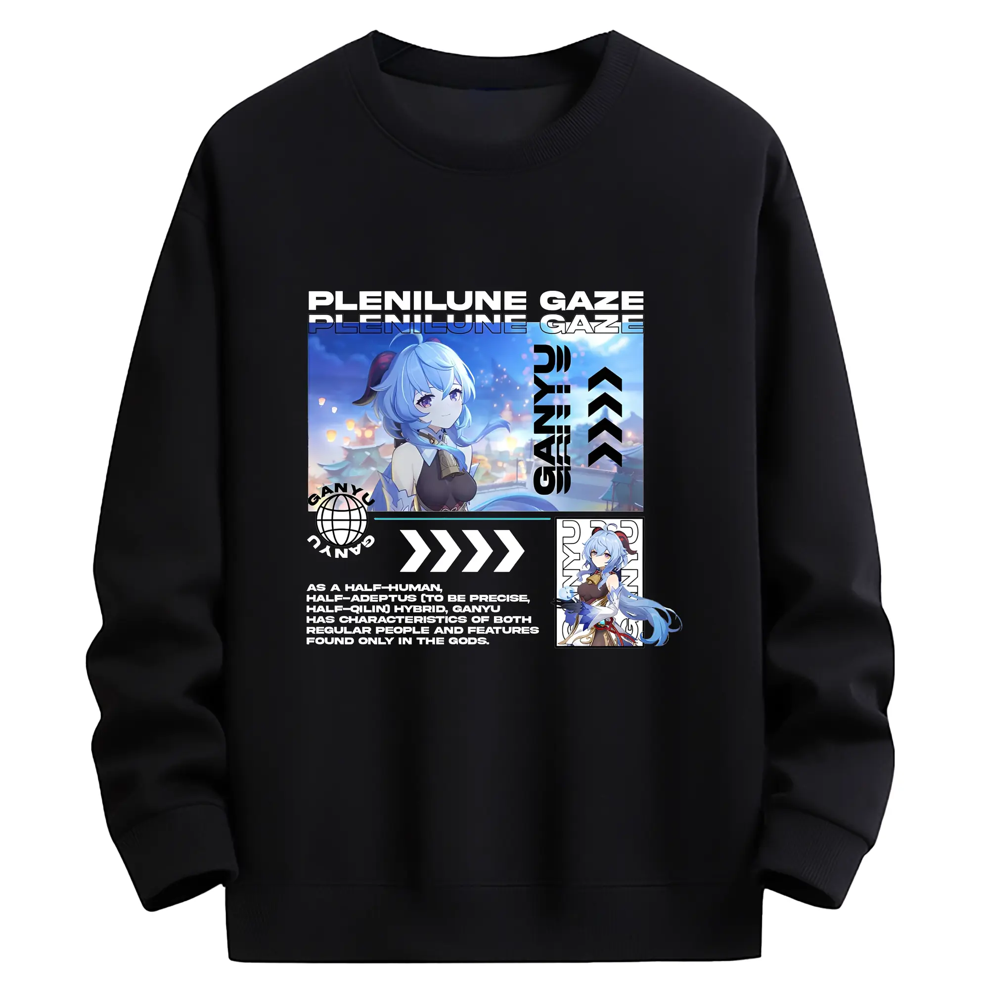 Genshin Impact 甘雨 キャラクターグッズ ファン必見 - 綿100% 半袖Tシャツ ・ フロントプリント ・ 快適 通気性 ・ 日常使い 散歩 スポーツ用