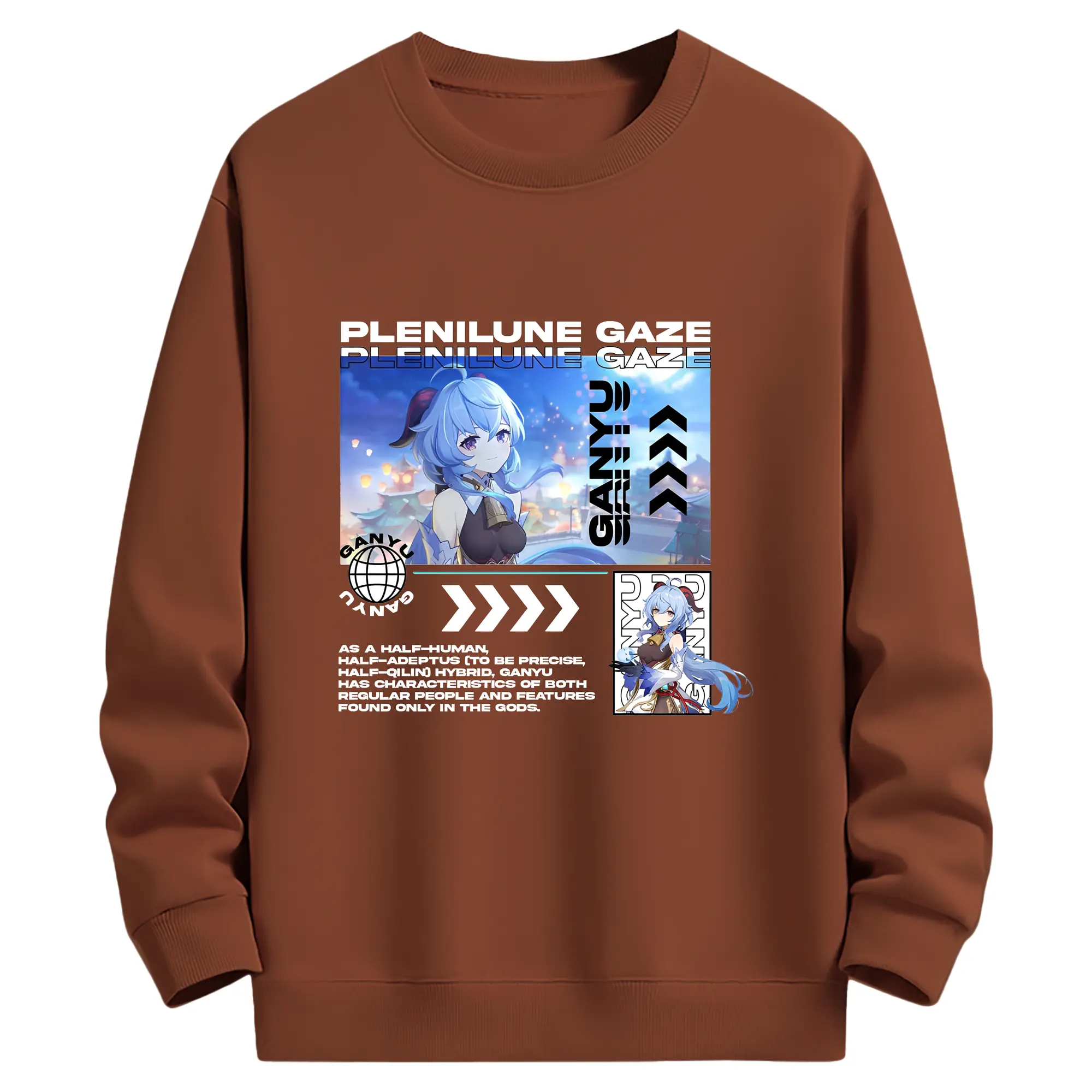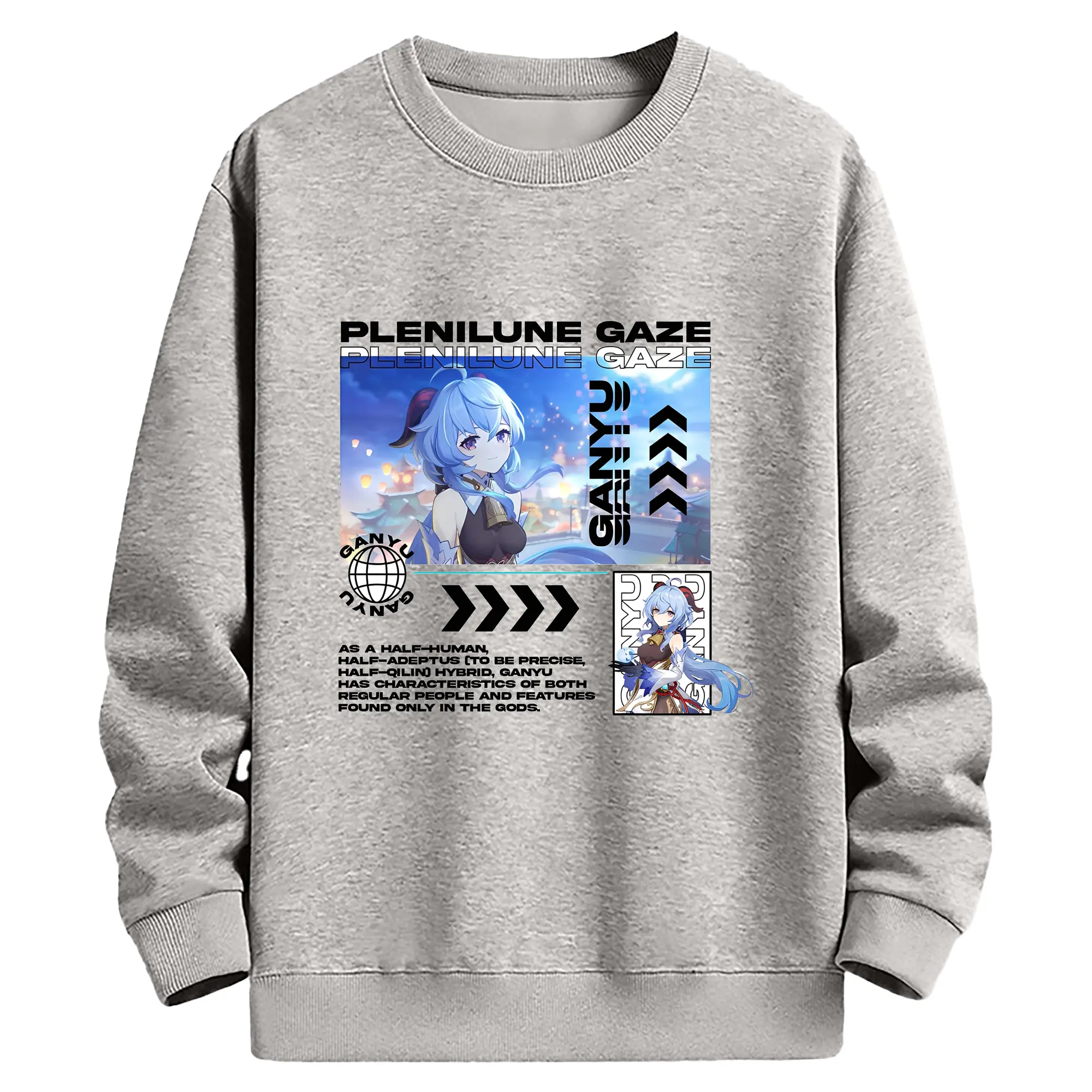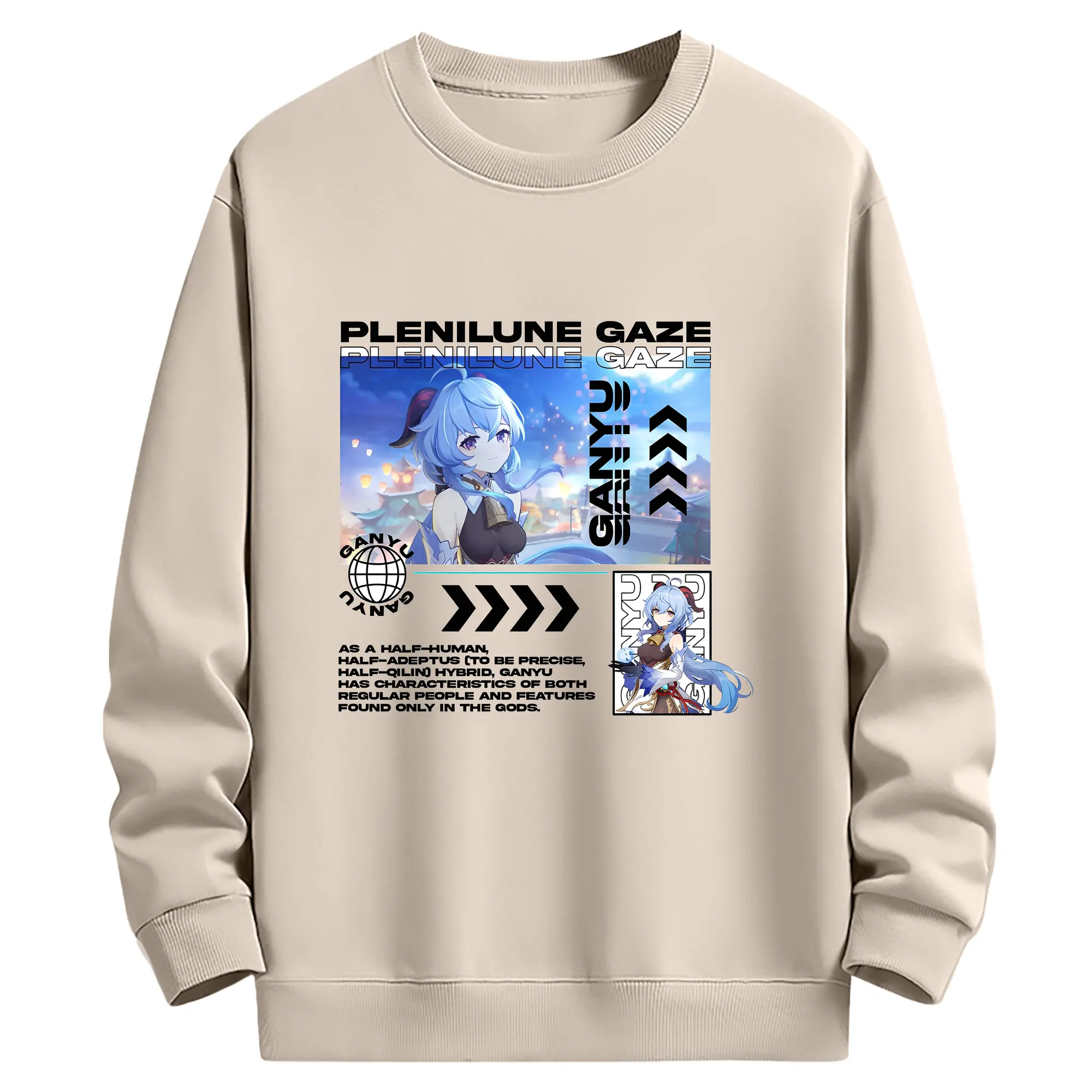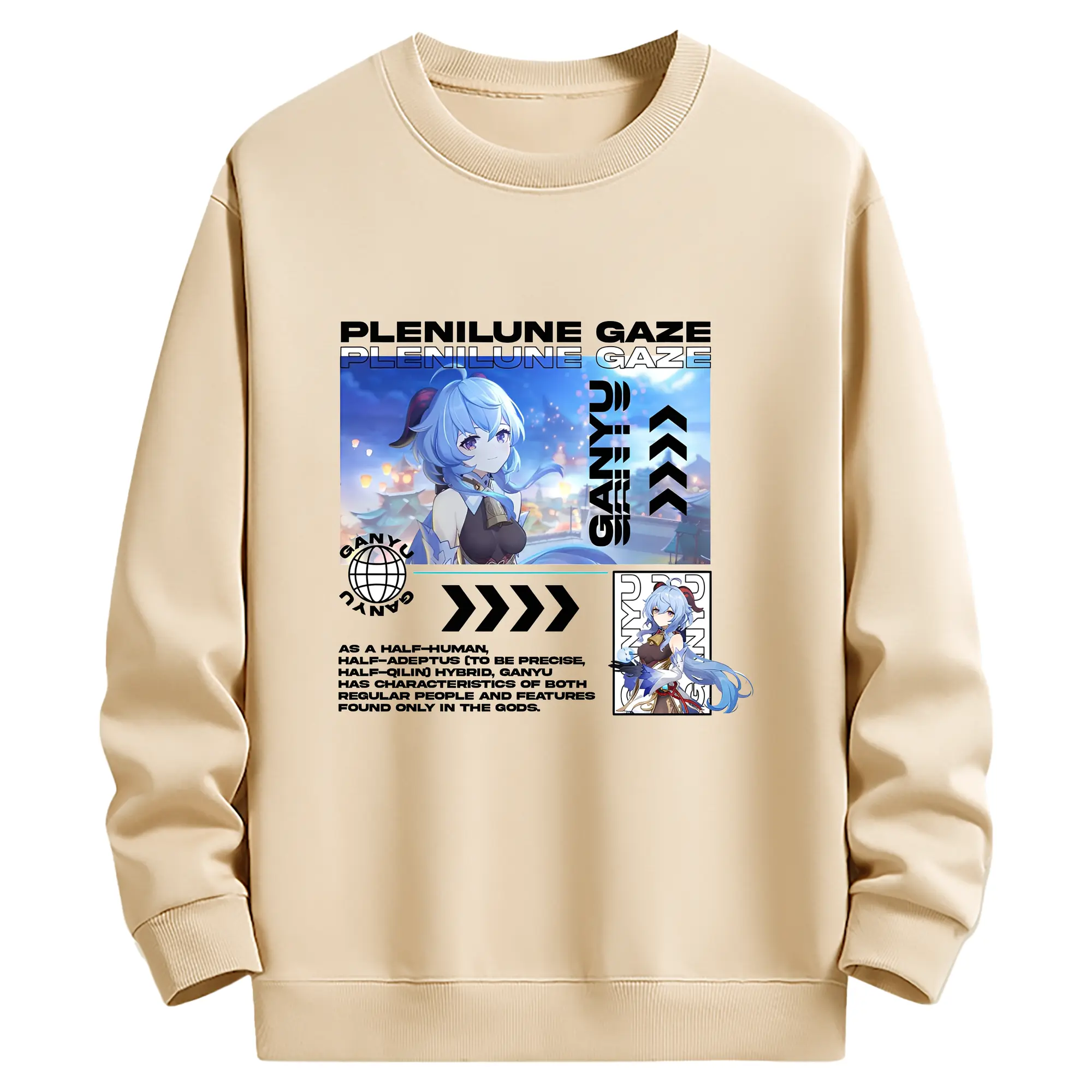 Genshin Impact 甘雨 キャラクターグッズ ファン必見 - 綿100% ヴィンテージ風 半袖Tシャツ ・ フロントプリント ・ 柔らか肌触り ・ 通気性 快適 ・ スポーツ カジュアル 外出用