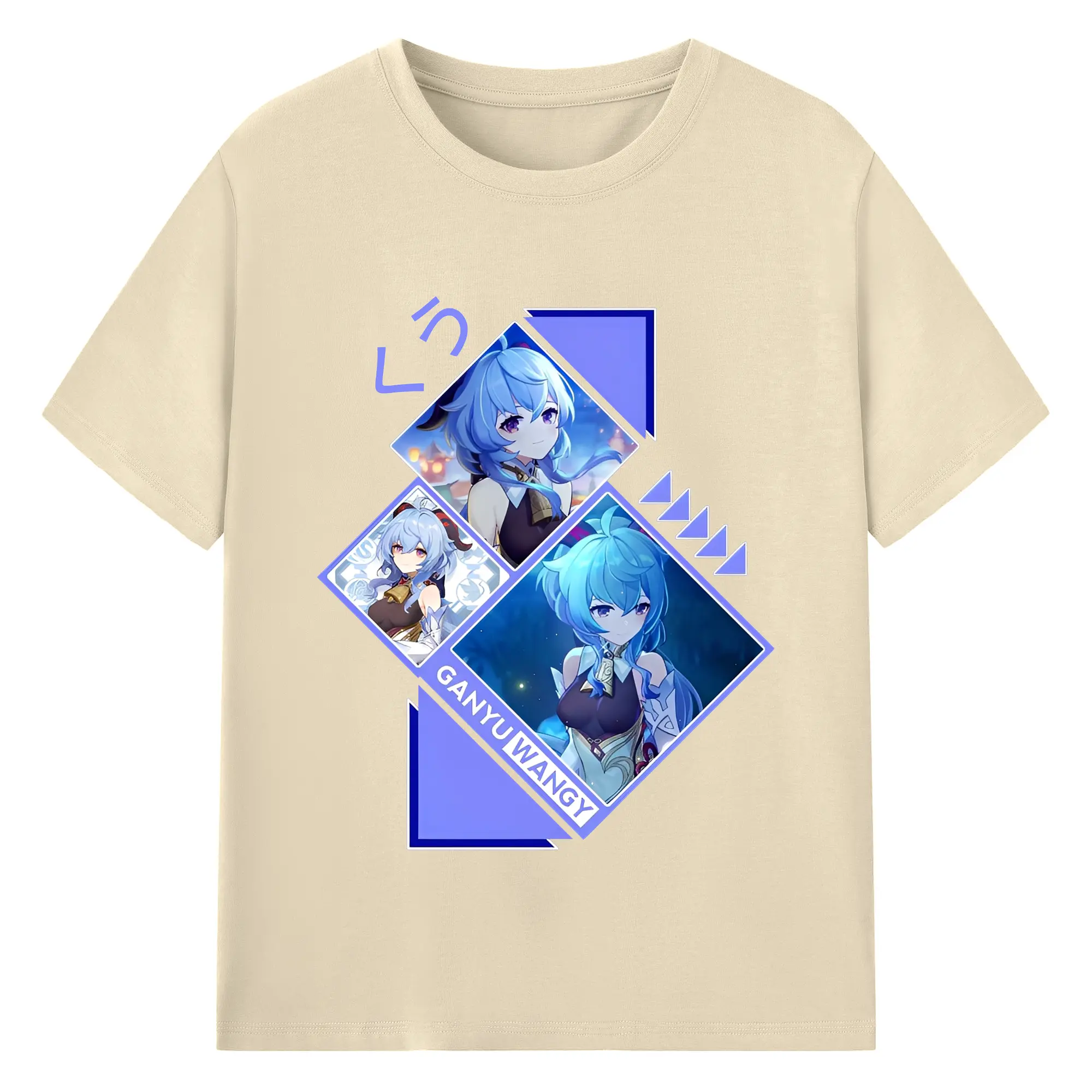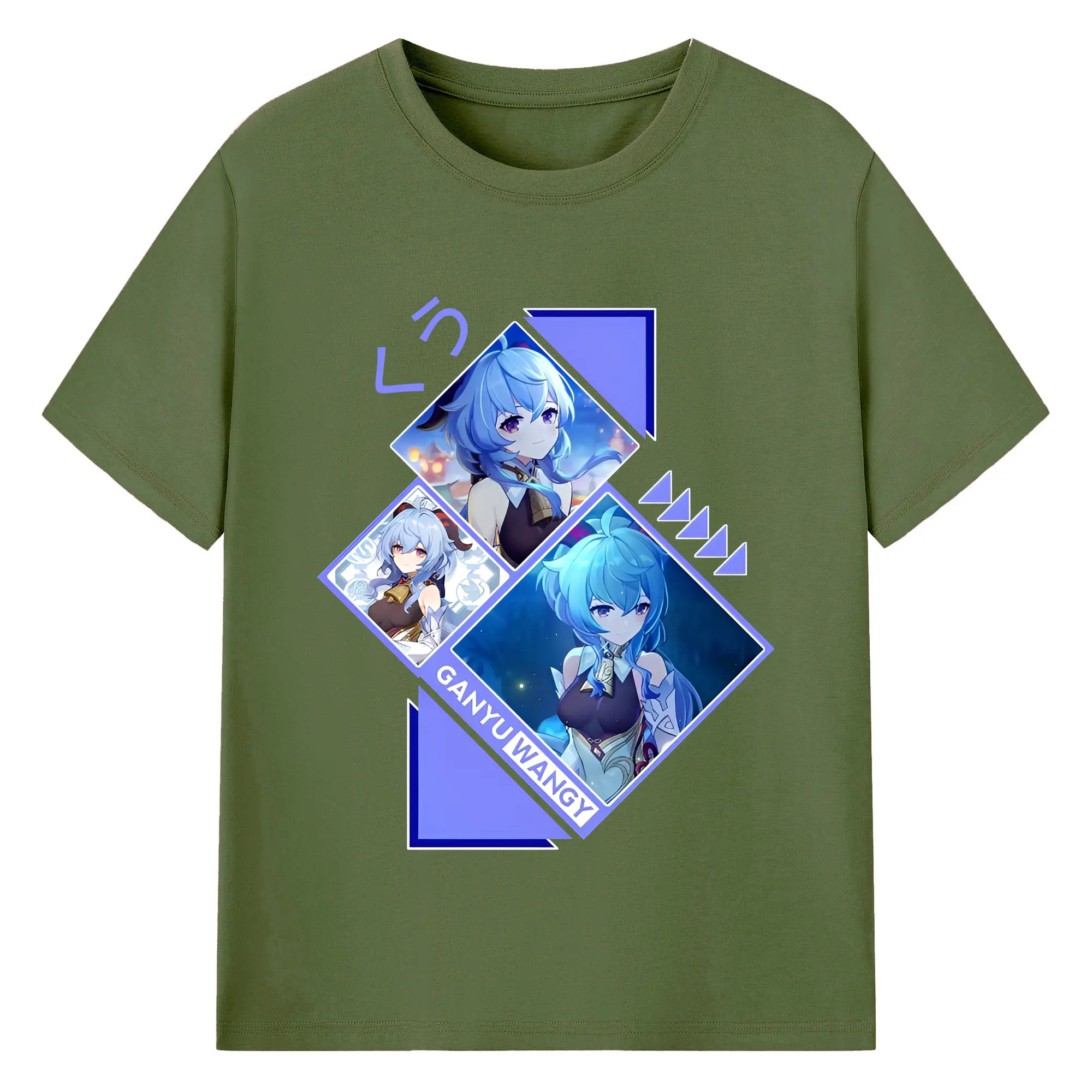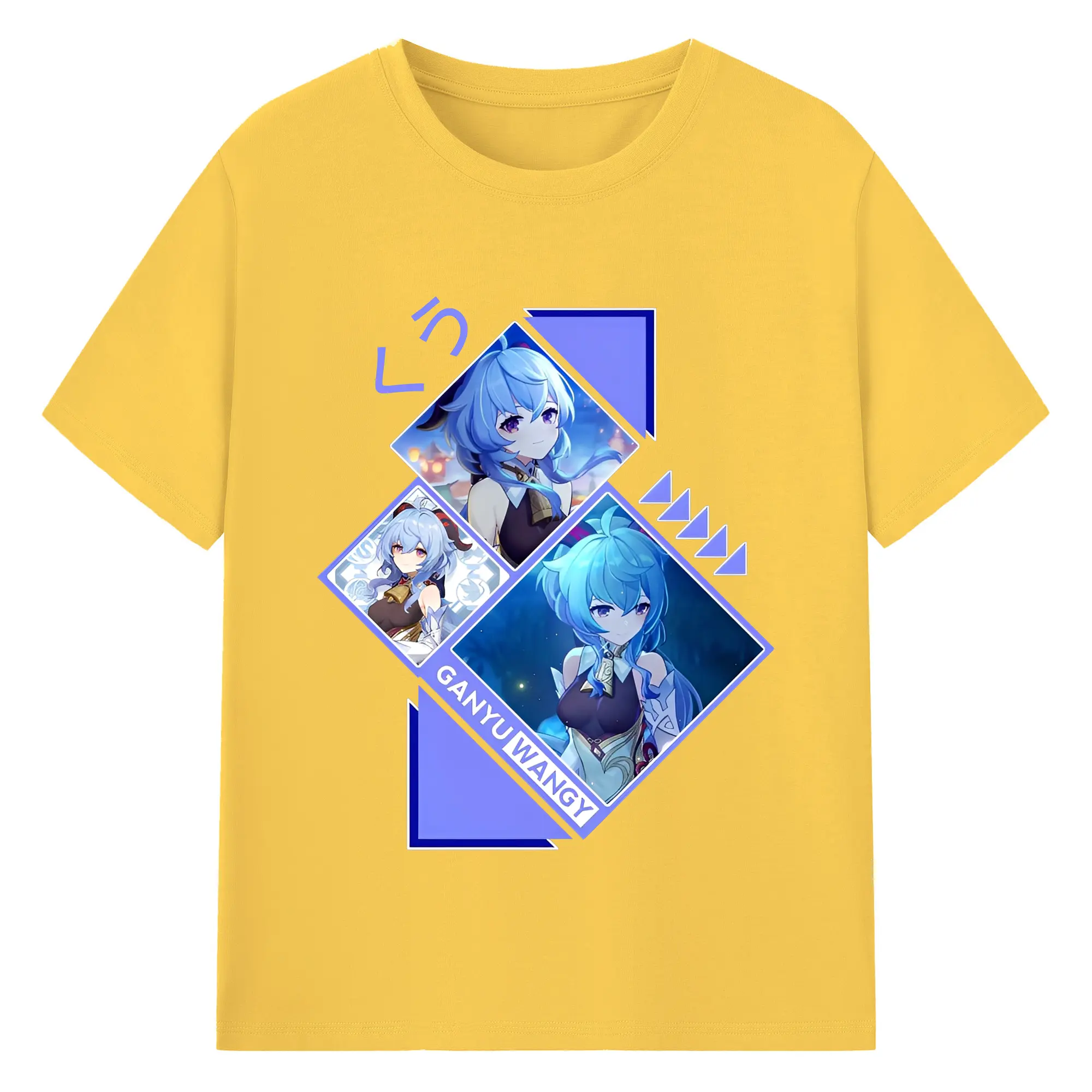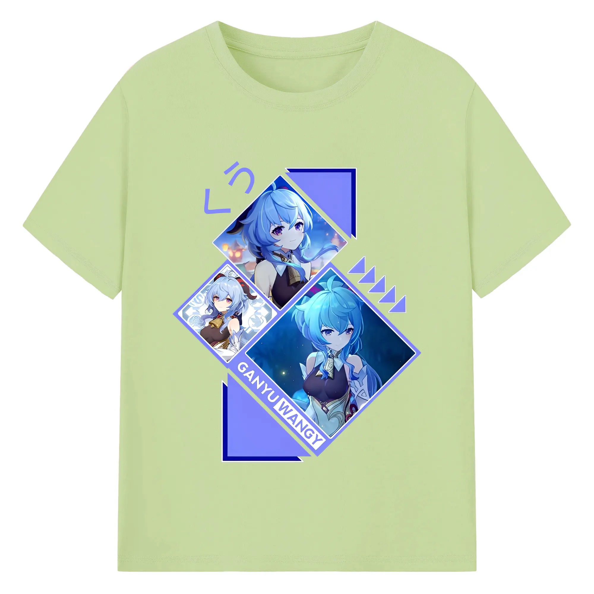 Genshin Impact 甘雨 ミニマルデザイン おしゃれスタイル - 綿100% ヴィンテージ風 半袖Tシャツ ・ フロントプリント ・ 柔らか肌触り ・ 通気性 快適 ・ スポーツ カジュアル 外出用