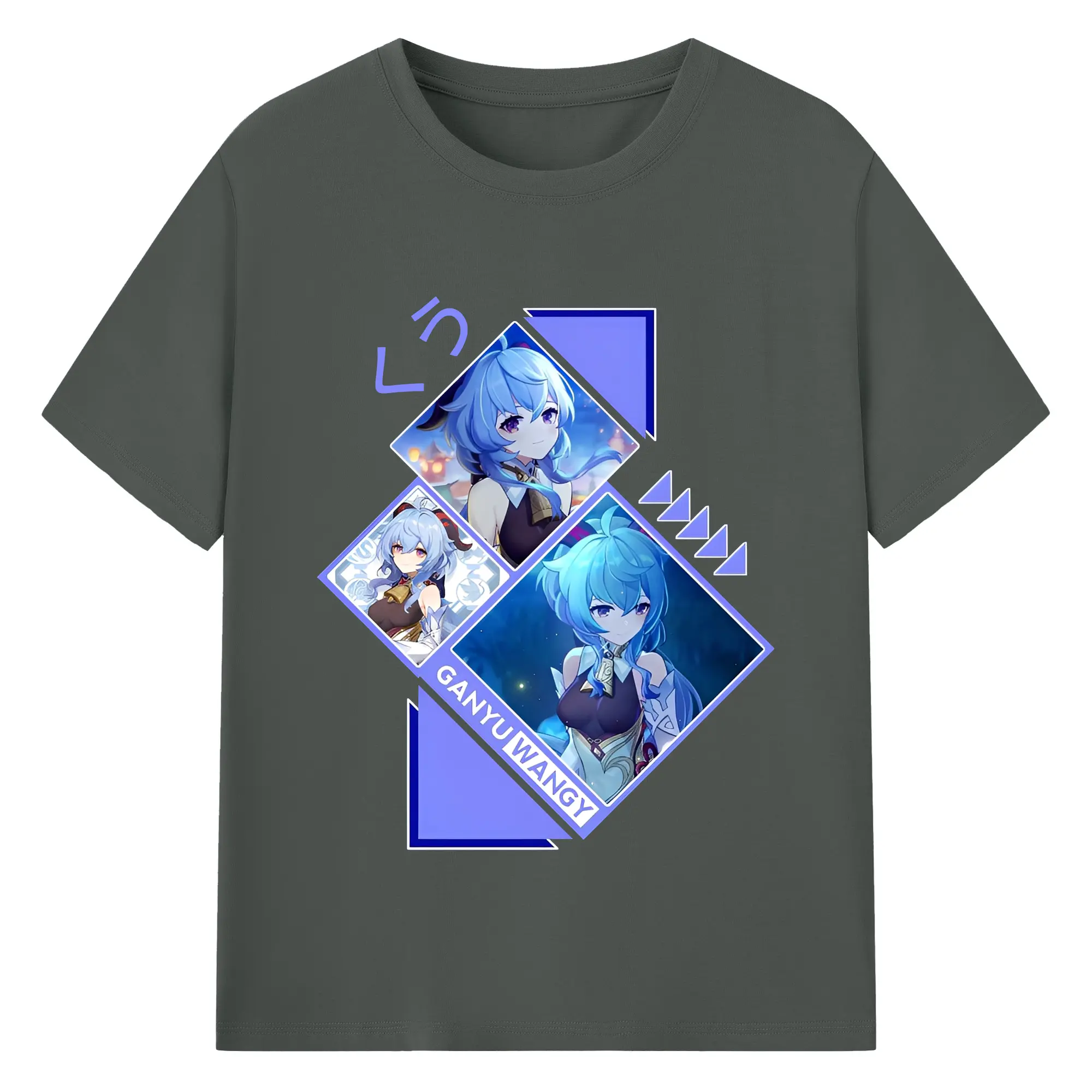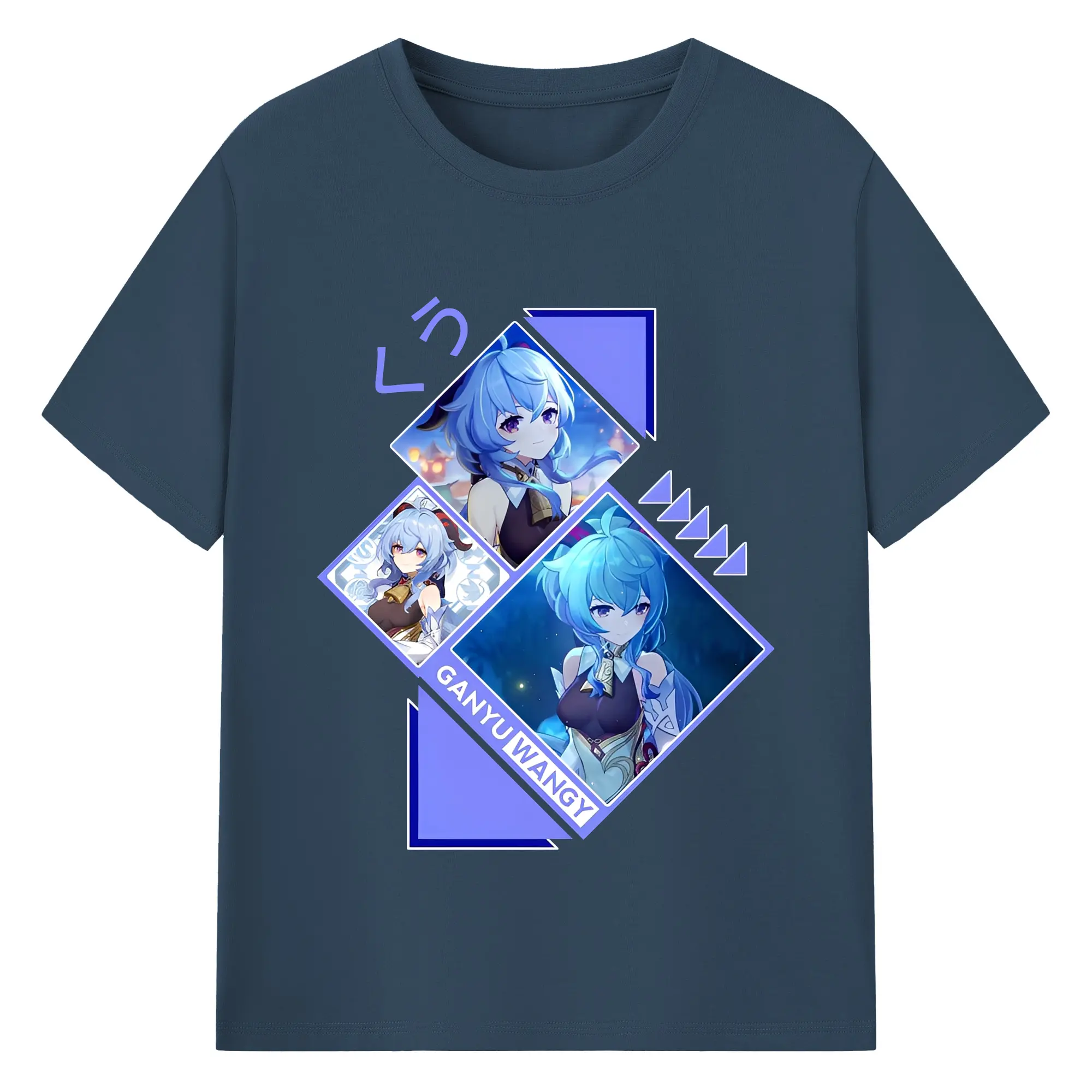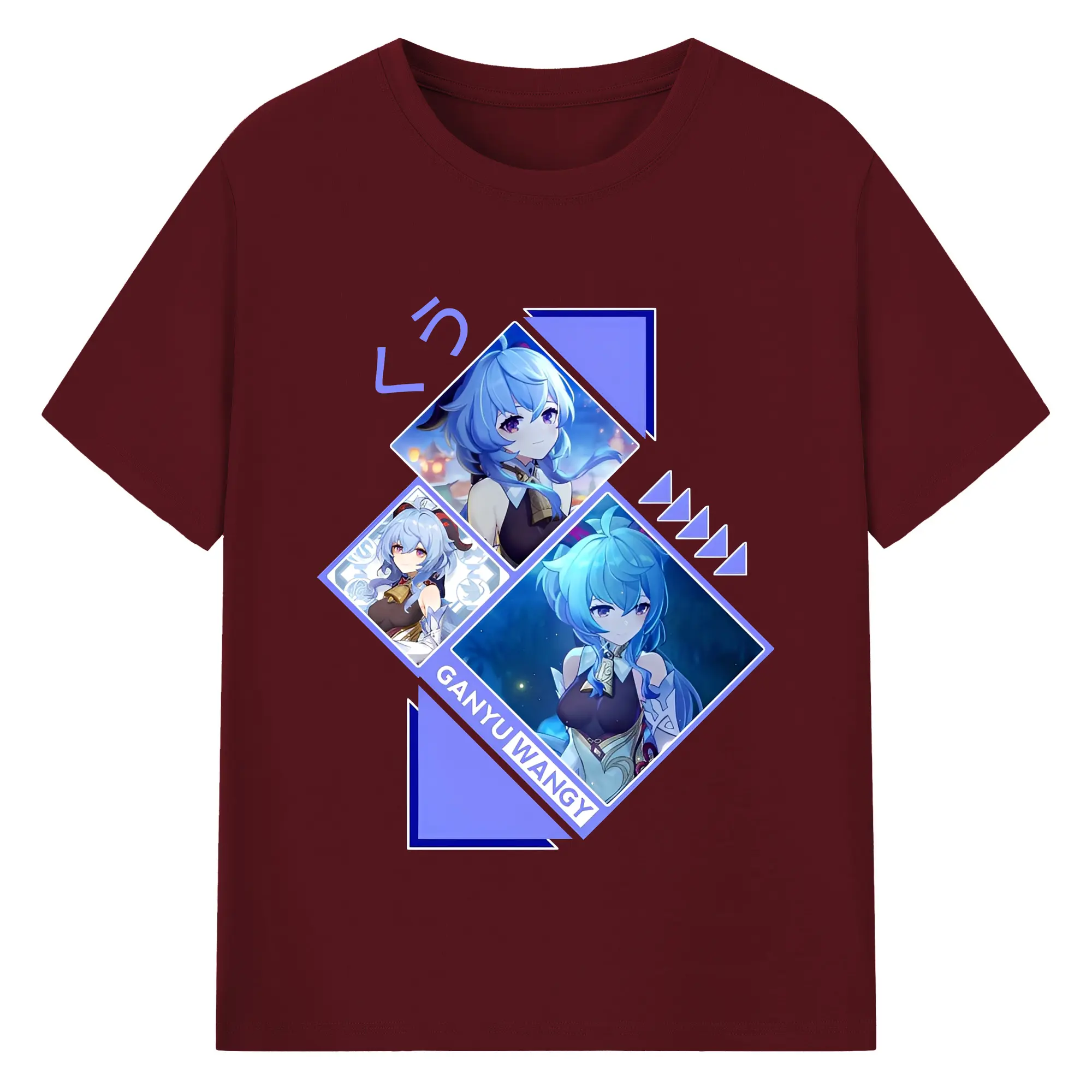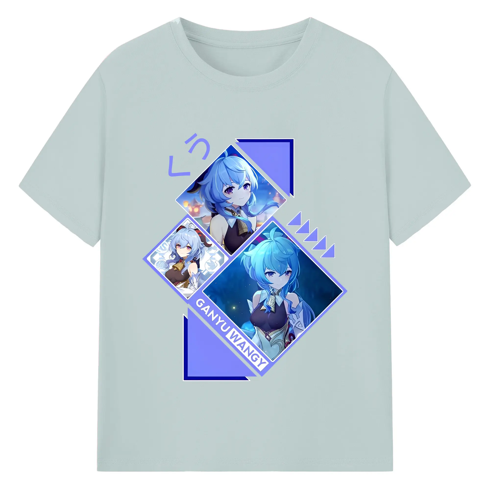 Genshin Impact 甘雨 ミニマルデザイン おしゃれスタイル - 綿100% ヴィンテージ風 半袖Tシャツ ・ フロントプリント ・ 柔らか肌触り ・ 通気性 快適 ・ スポーツ カジュアル 外出用
