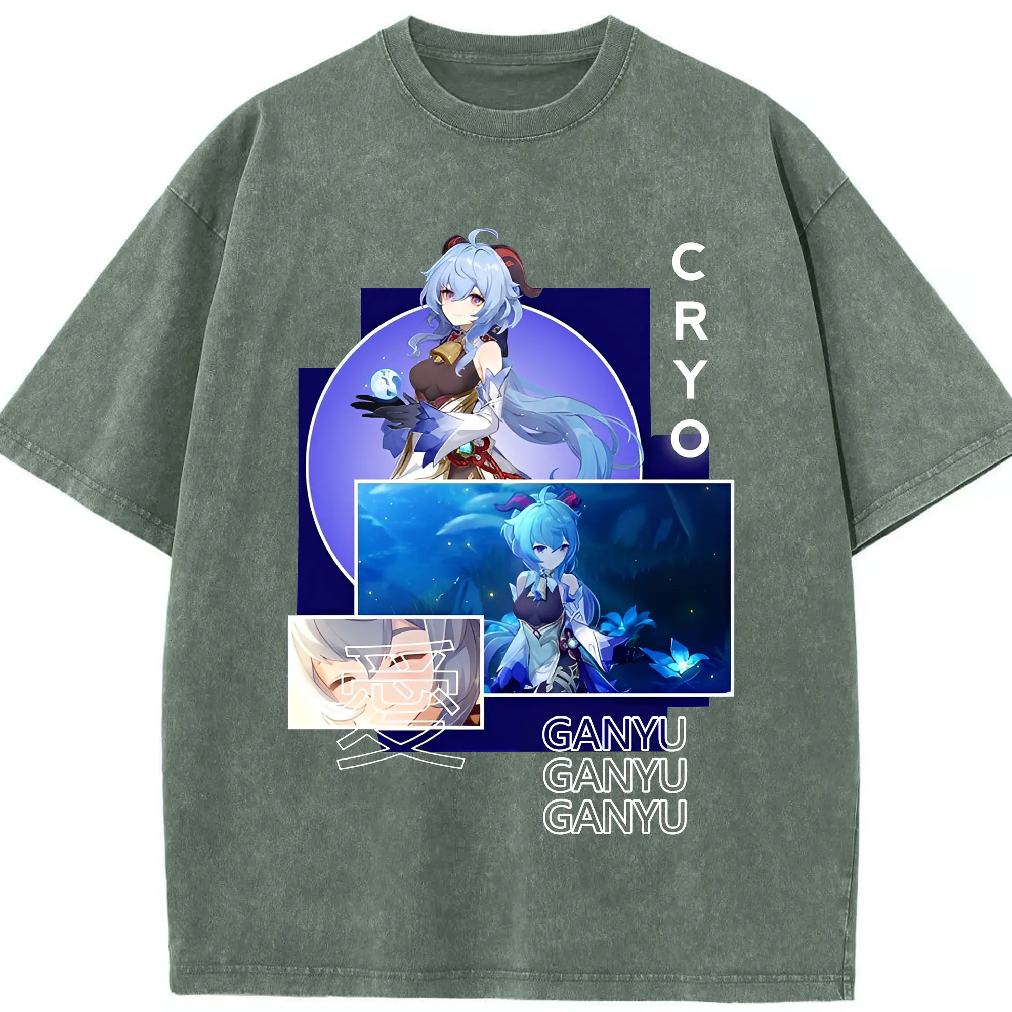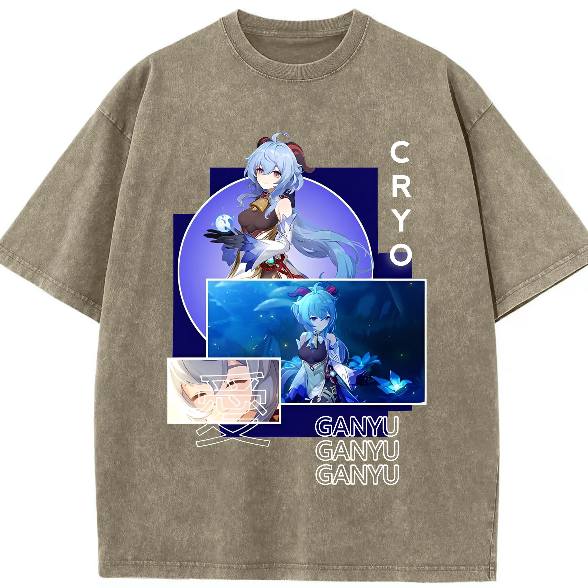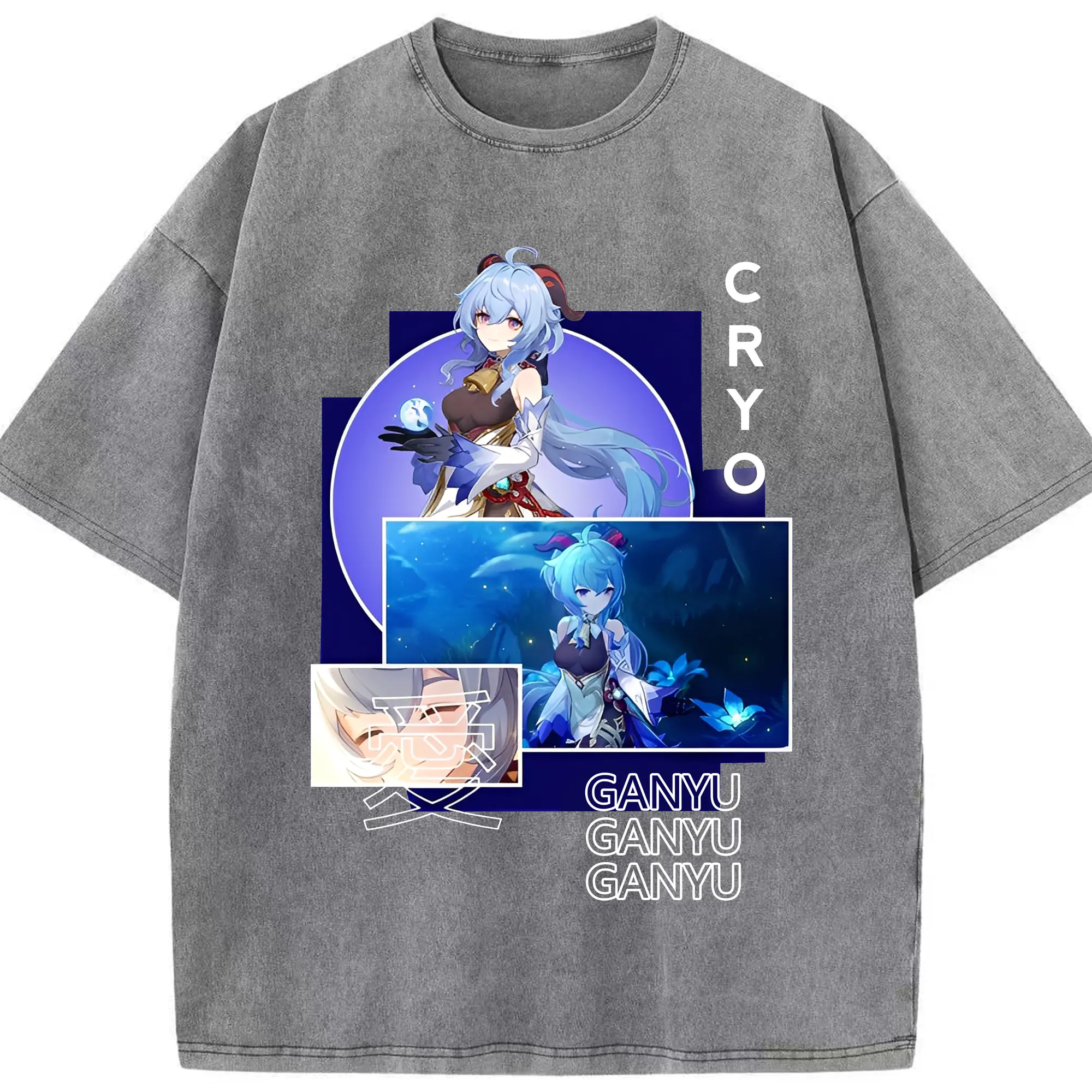 Genshin Impact 甘雨 限定バージョン ファングッズ コレクション - 綿100% 半袖Tシャツ ・ フロントプリント ・ 快適 通気性 ・ 日常使い 散歩 スポーツ用