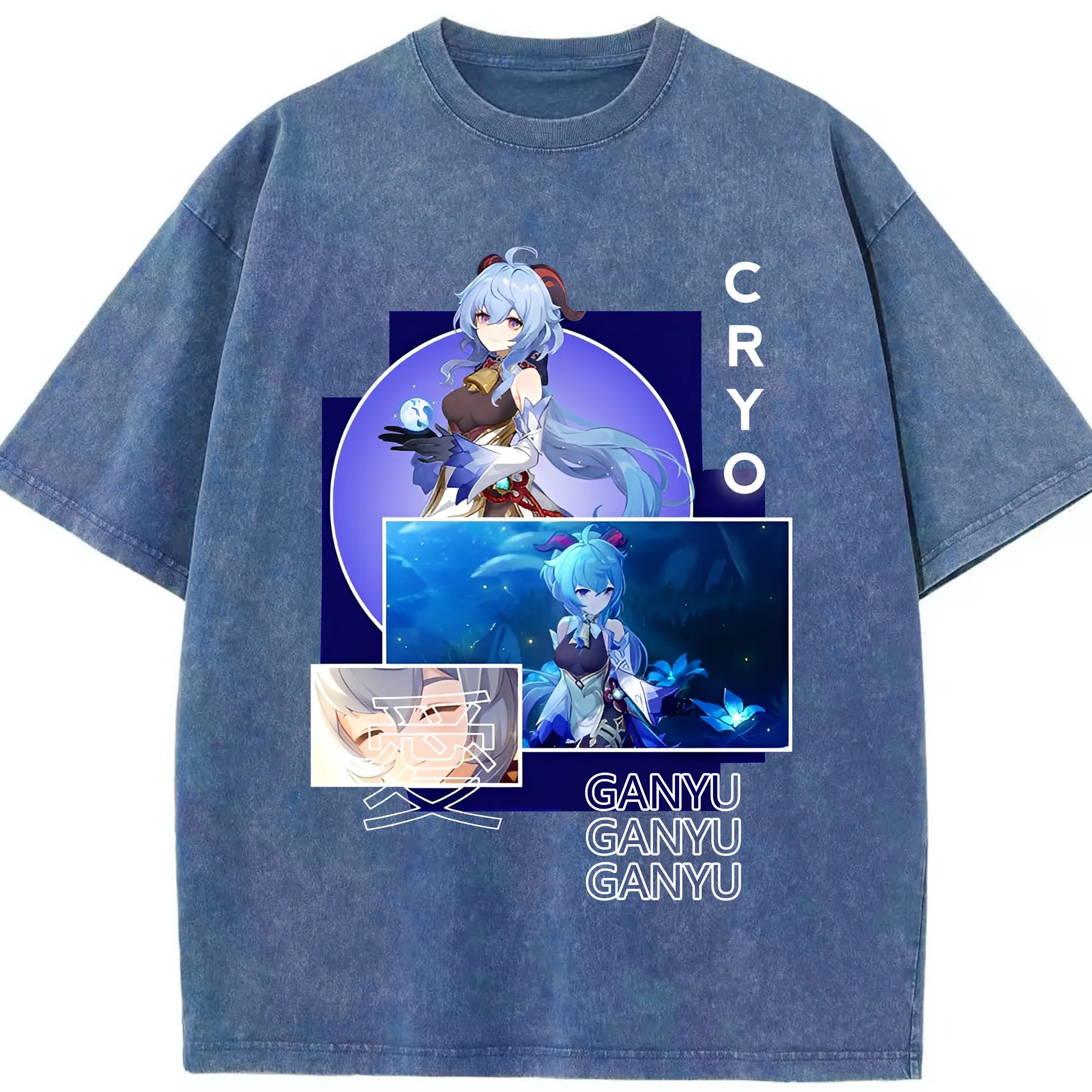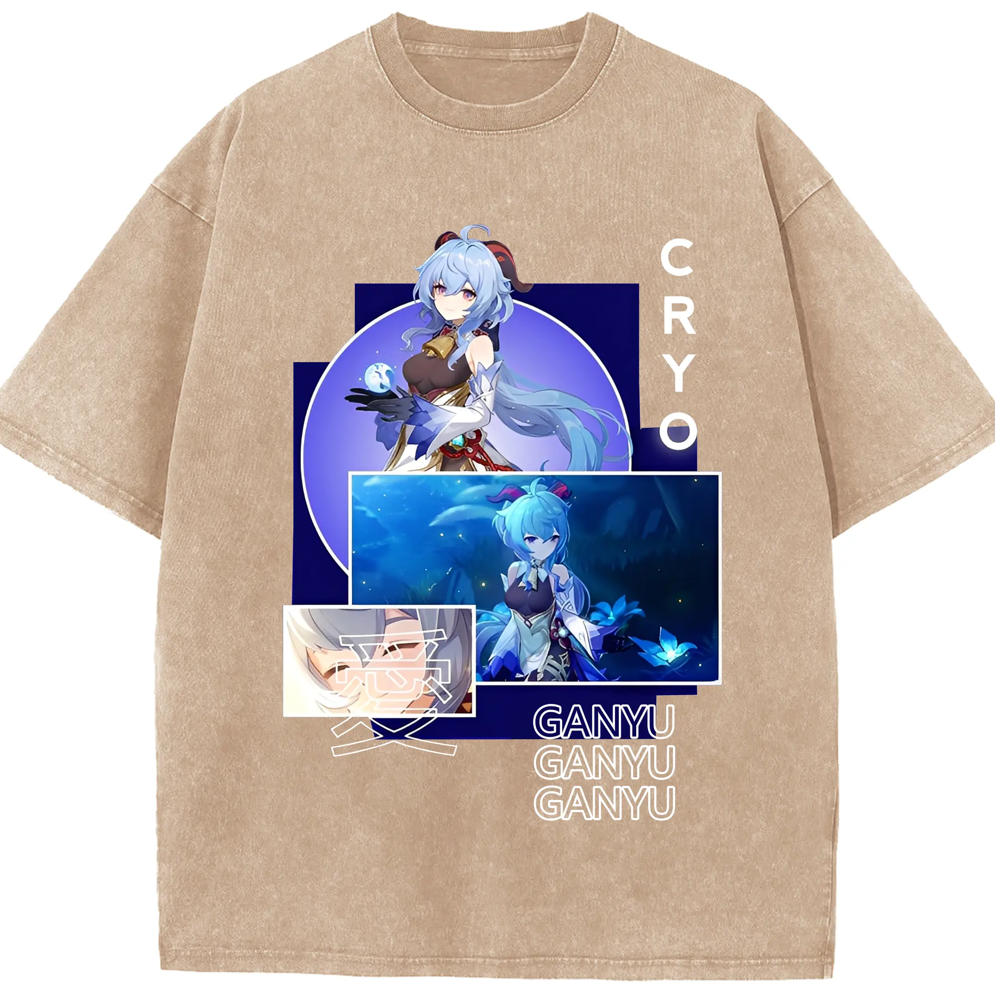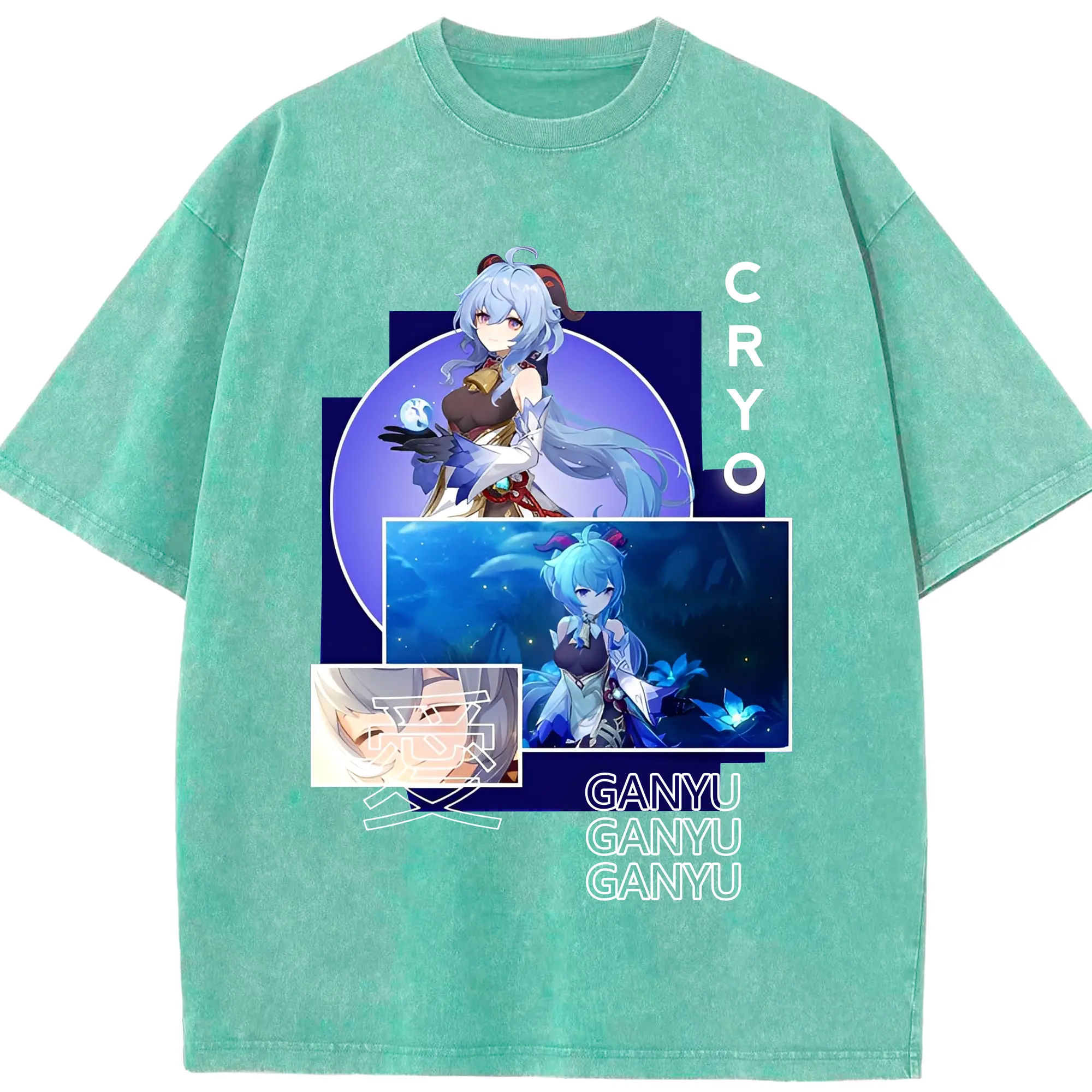 Genshin Impact 甘雨 限定バージョン ファングッズ コレクション - 綿100% 半袖Tシャツ ・ フロントプリント ・ 快適 通気性 ・ 日常使い 散歩 スポーツ用