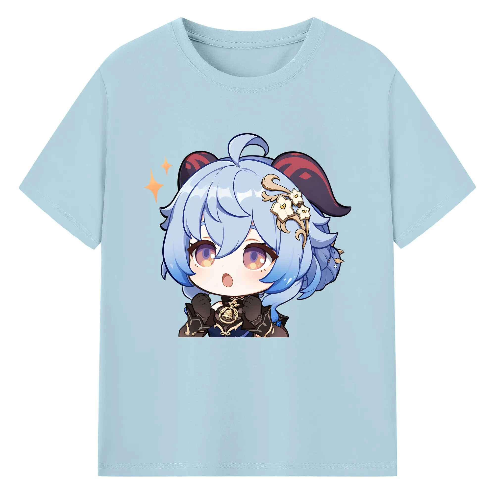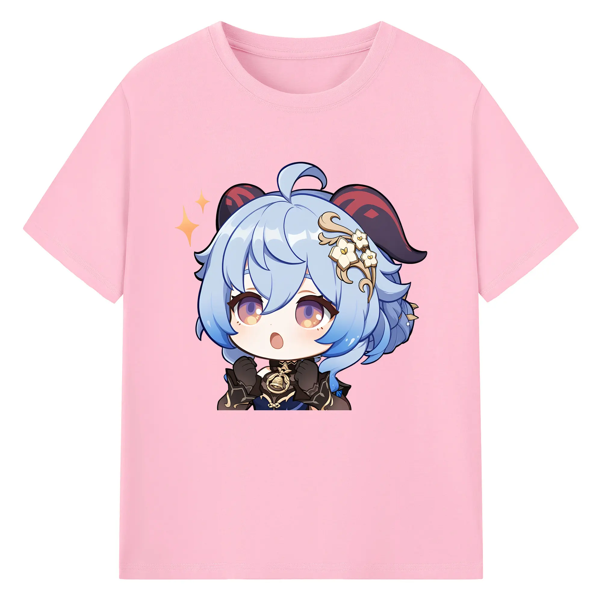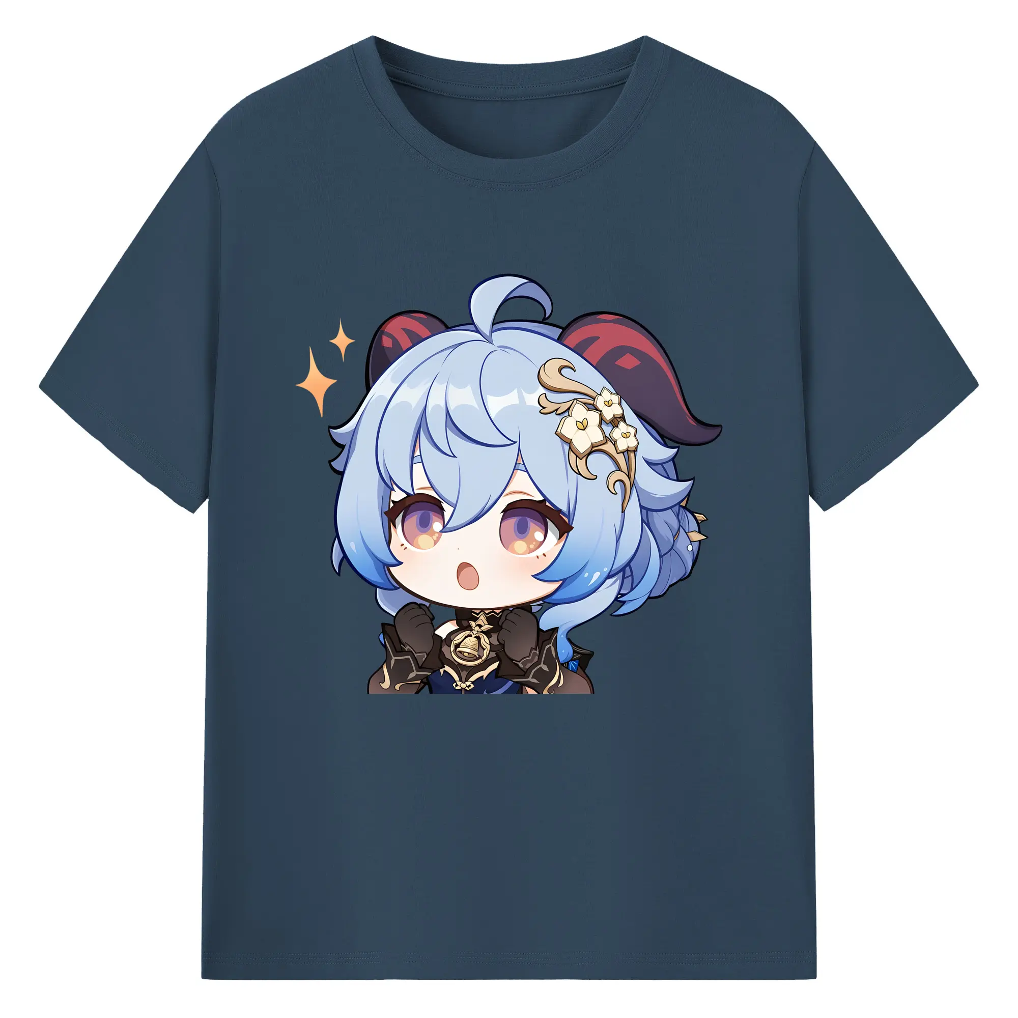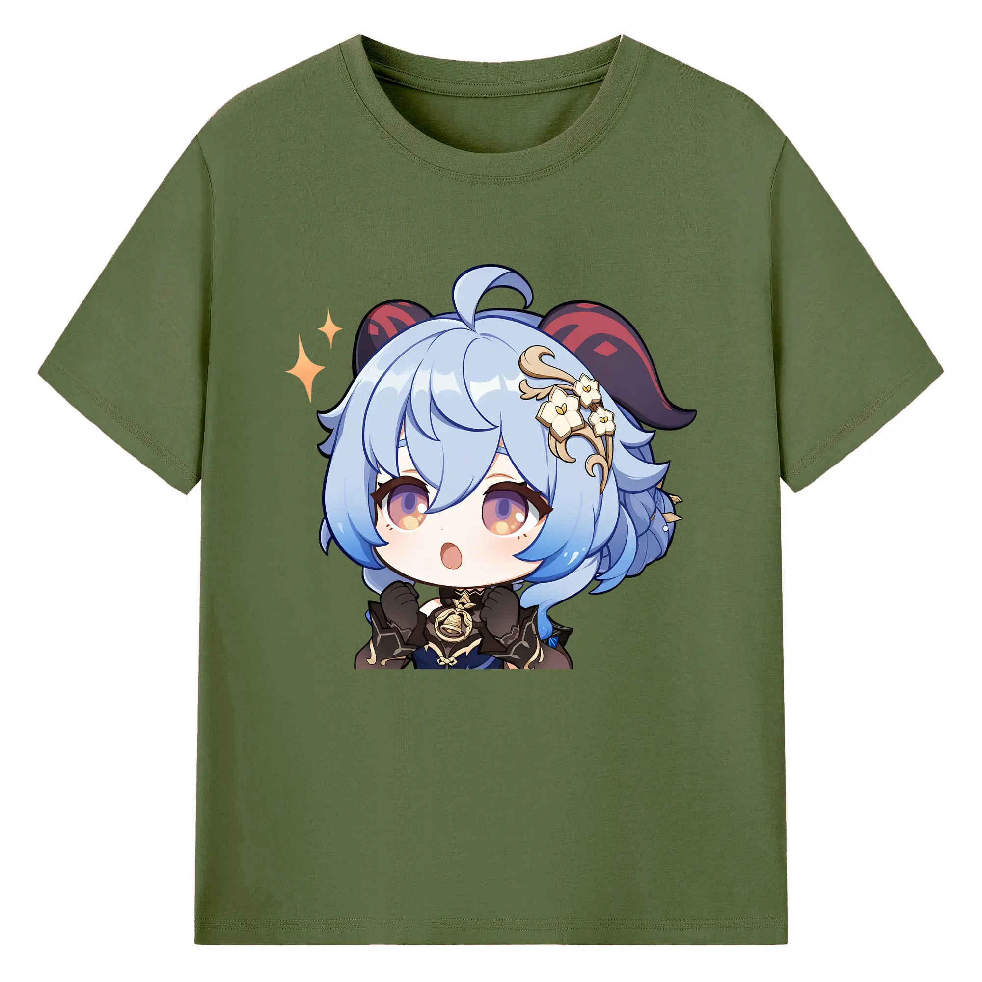 Genshin Impact 甘雨 Q版キャラクター 可愛いファングッズ - 綿100% ヴィンテージ風 半袖Tシャツ ・ フロントプリント ・ 柔らか肌触り ・ 通気性 快適 ・ スポーツ カジュアル 外出用