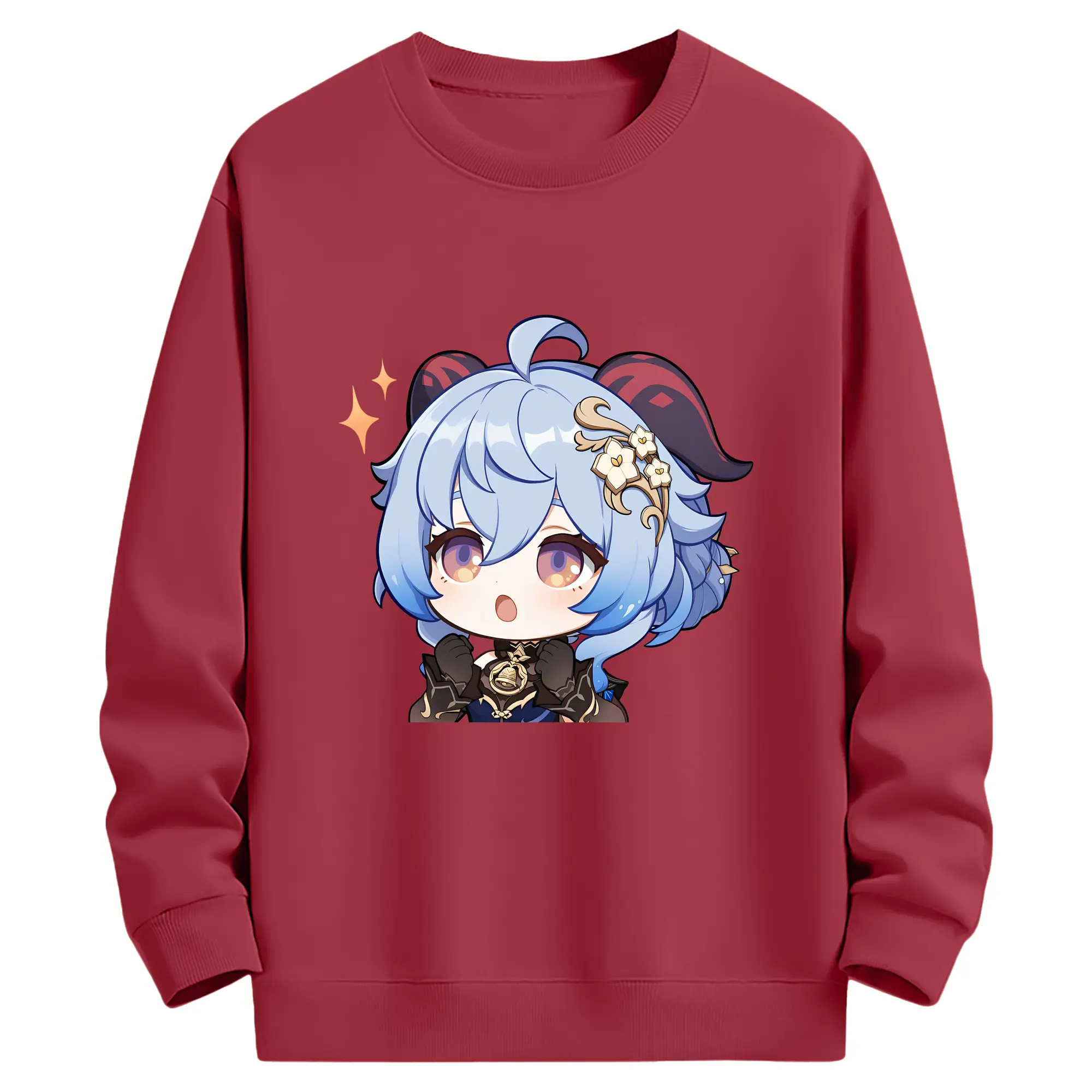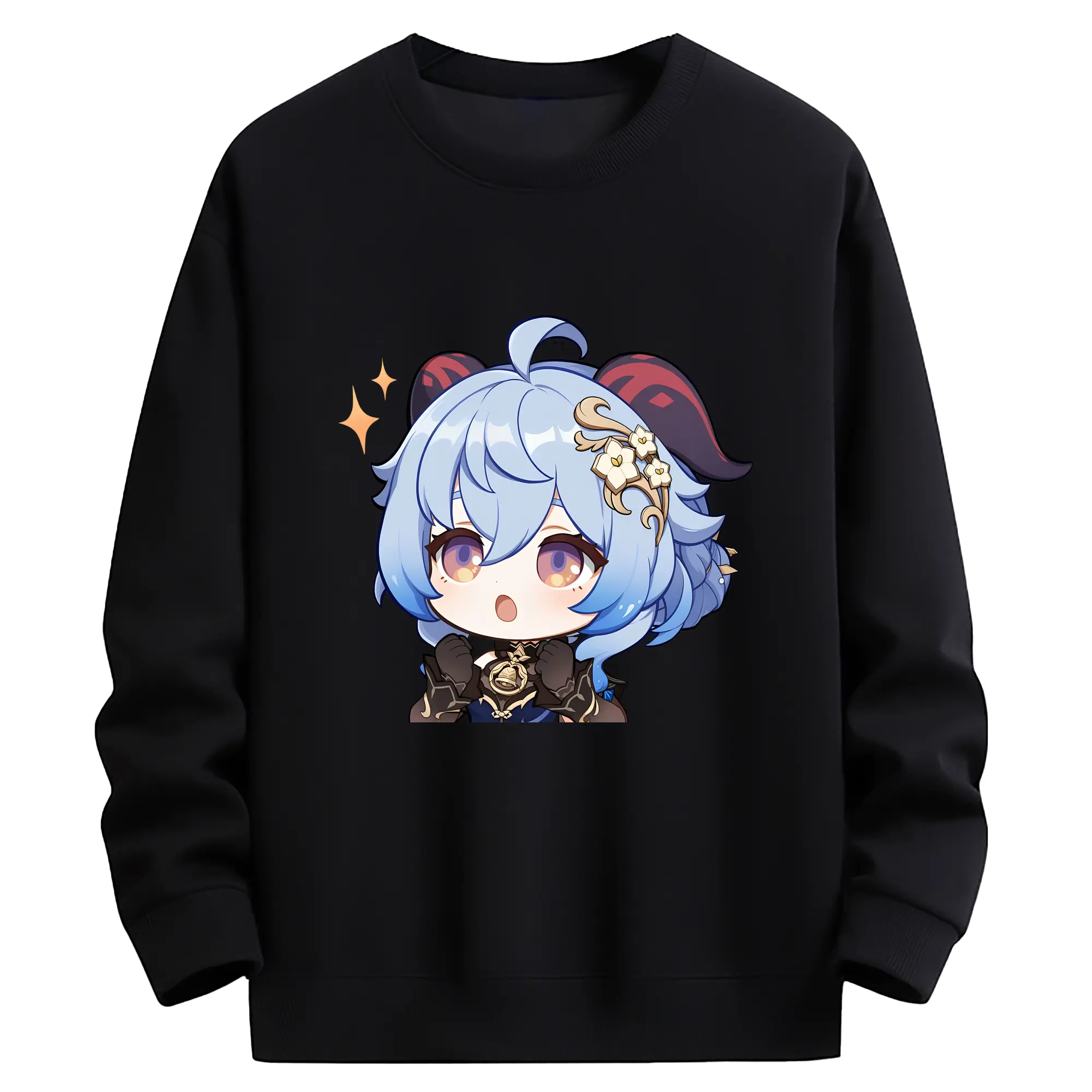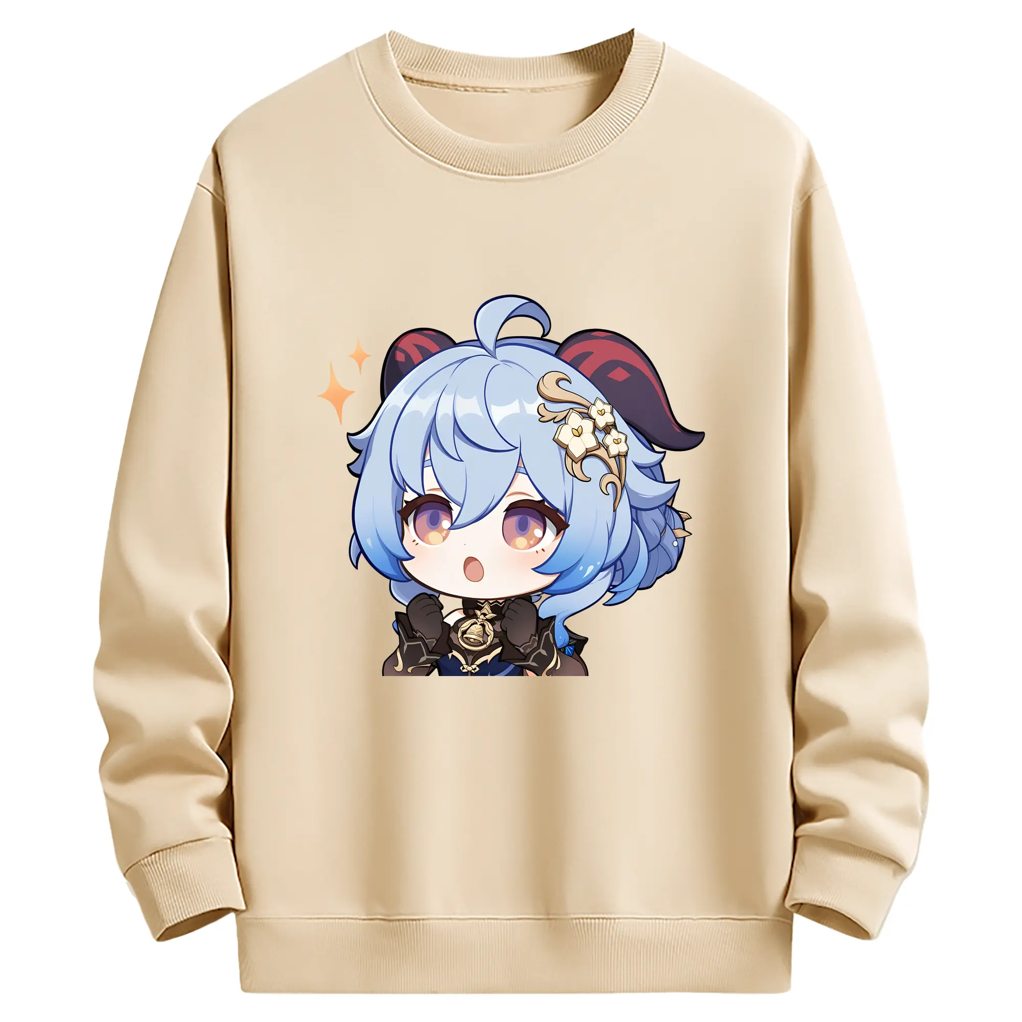 Genshin Impact 甘雨 Q版キャラクター 可愛いファングッズ - 綿100% 半袖Tシャツ ・ フロントプリント ・ 快適 通気性 ・ 日常使い 散歩 スポーツ用