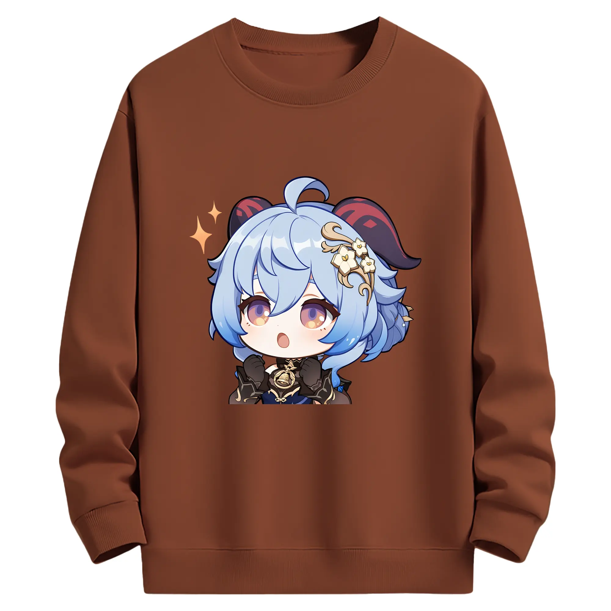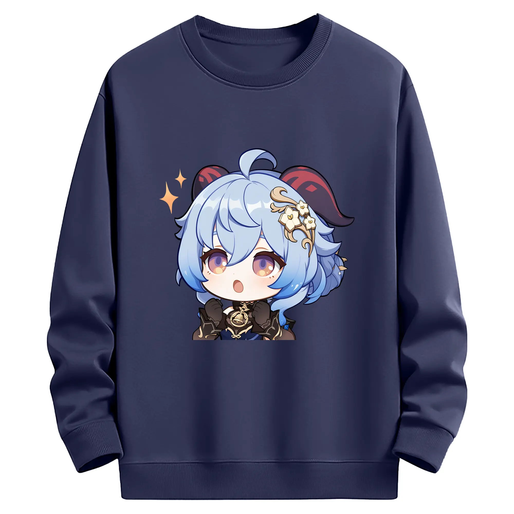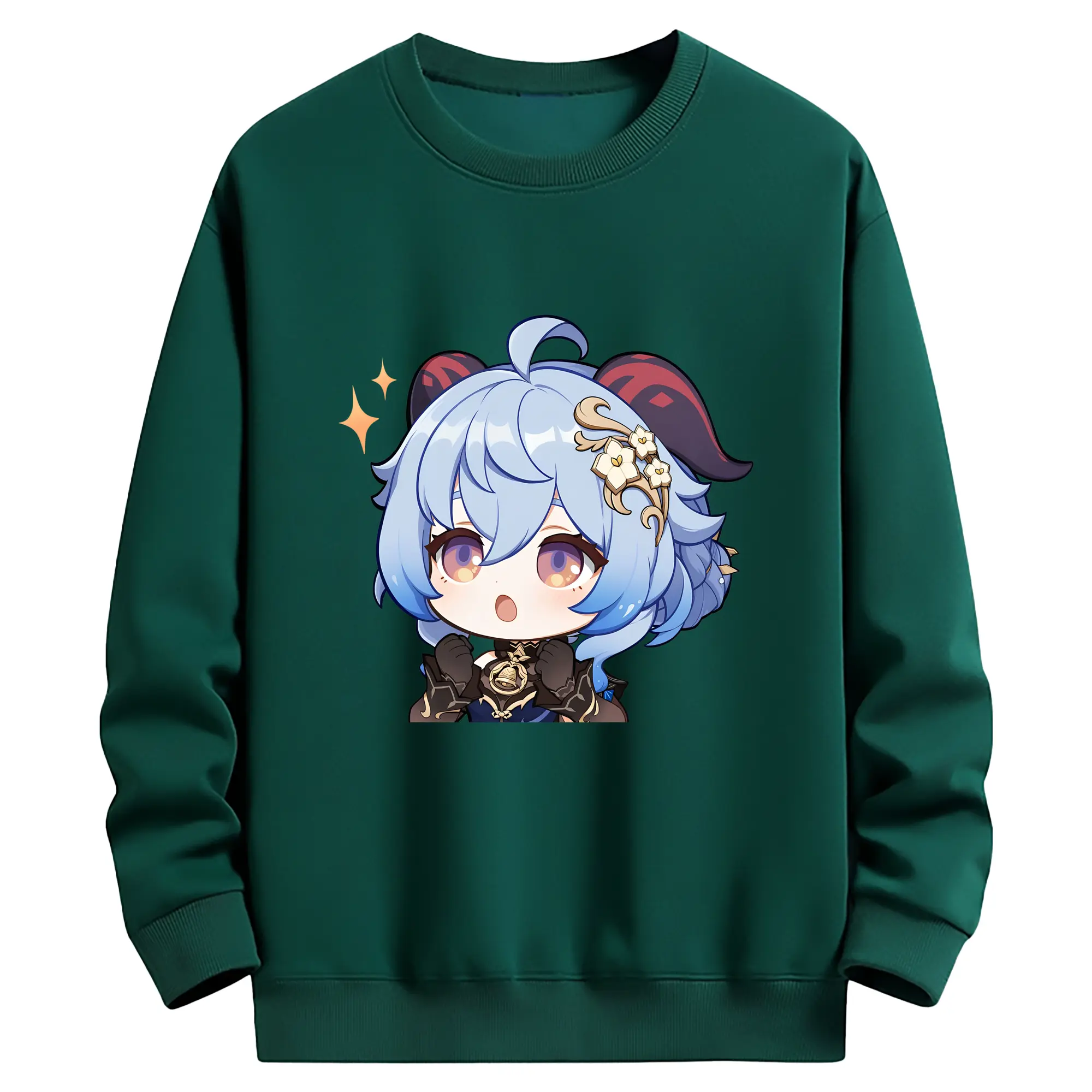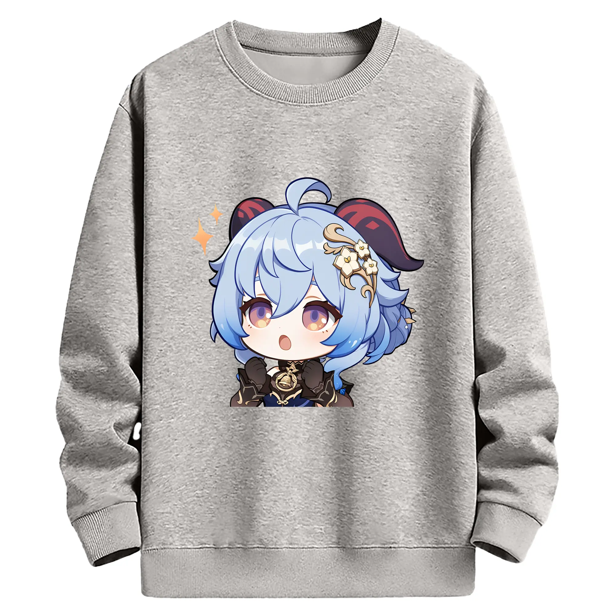 Genshin Impact 甘雨 Q版キャラクター 可愛いファングッズ - 綿100% 半袖Tシャツ ・ フロントプリント ・ 快適 通気性 ・ 日常使い 散歩 スポーツ用