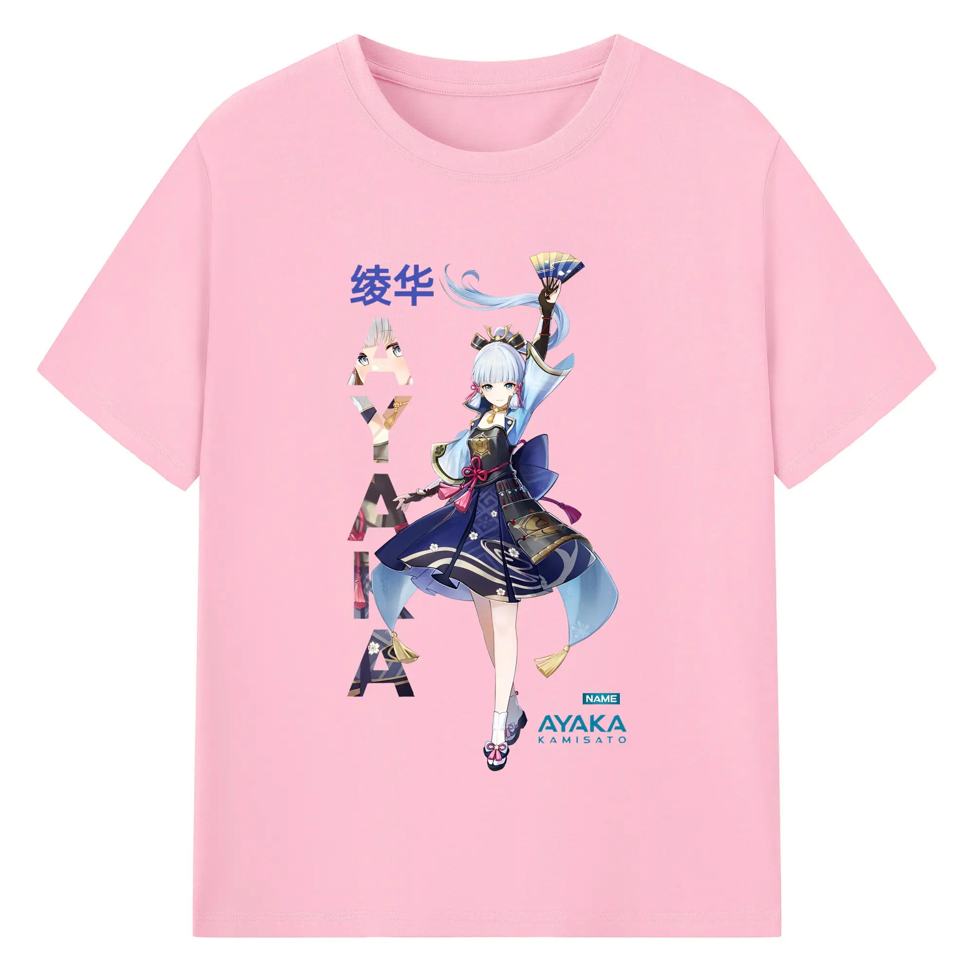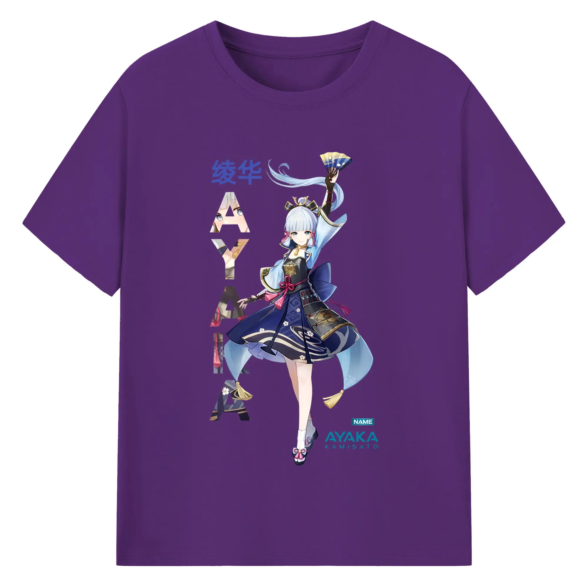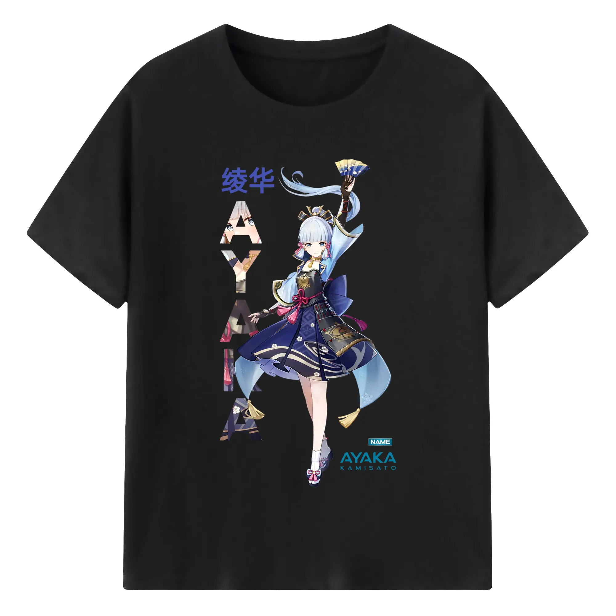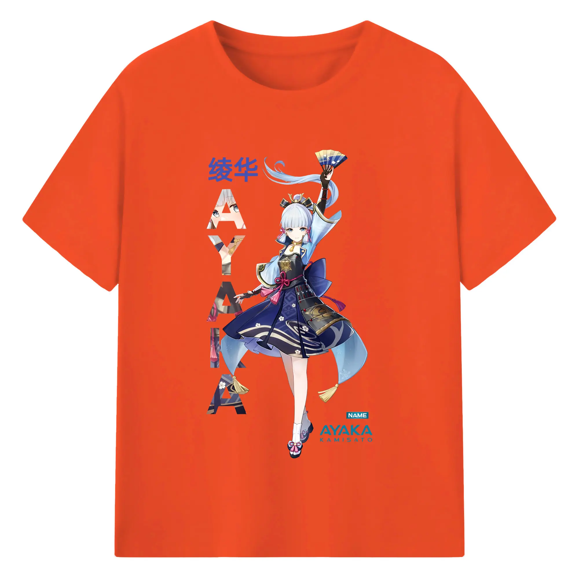 Genshin Impact 神里綾華 イラストプリント グッズ ファン必見 - 綿100% ヴィンテージ風 半袖Tシャツ ・ フロントプリント ・ 柔らか肌触り ・ 通気性 快適 ・ スポーツ カジュアル 外出用
