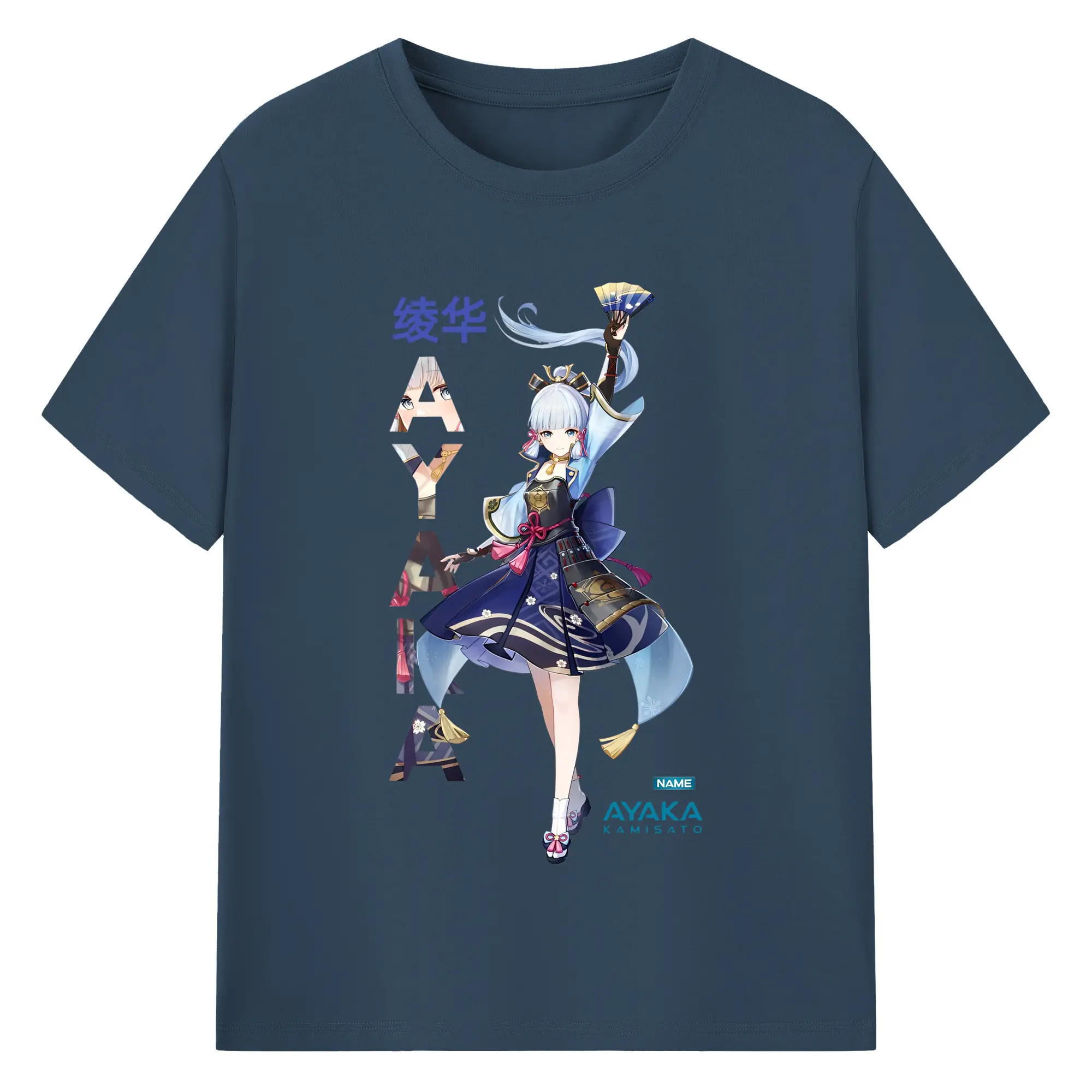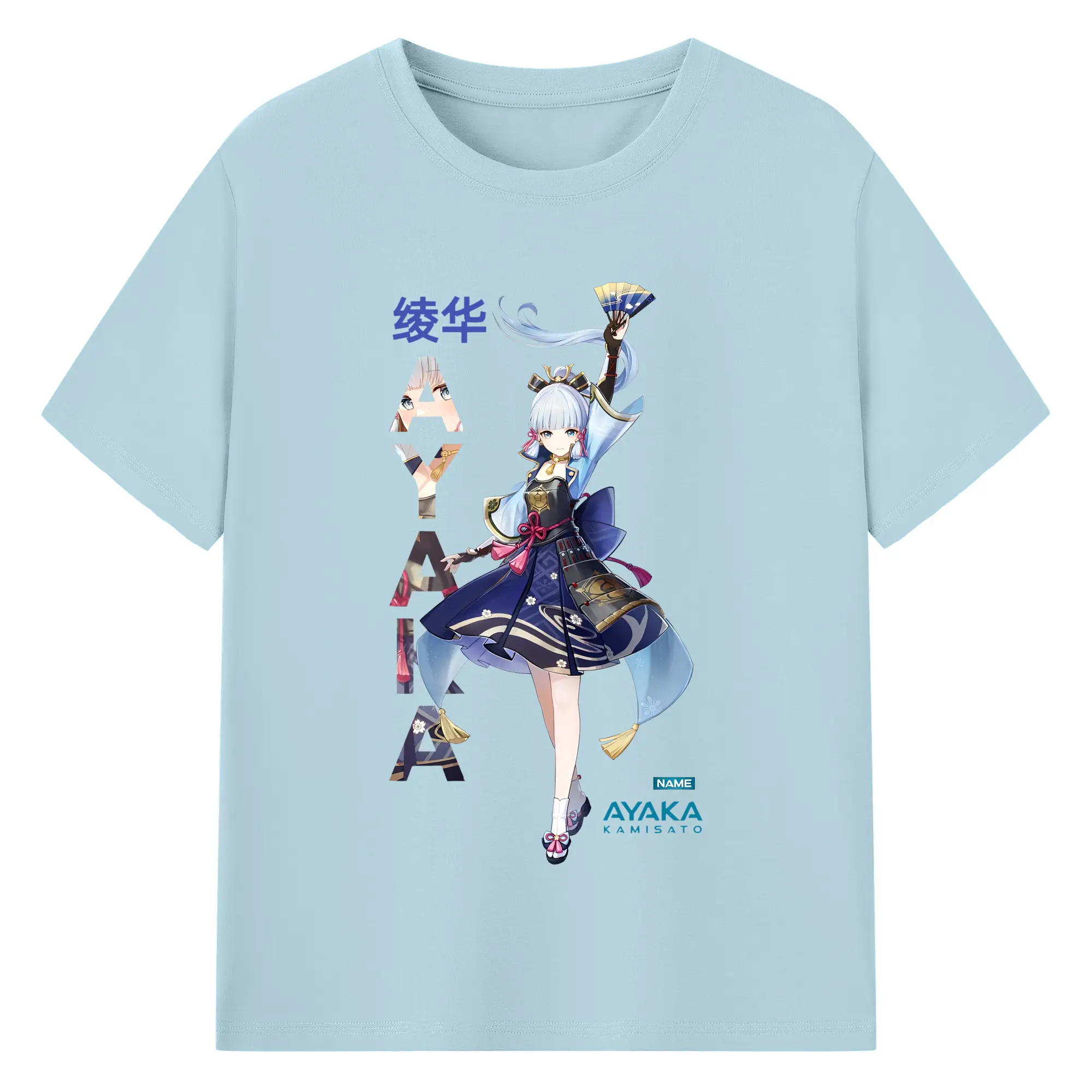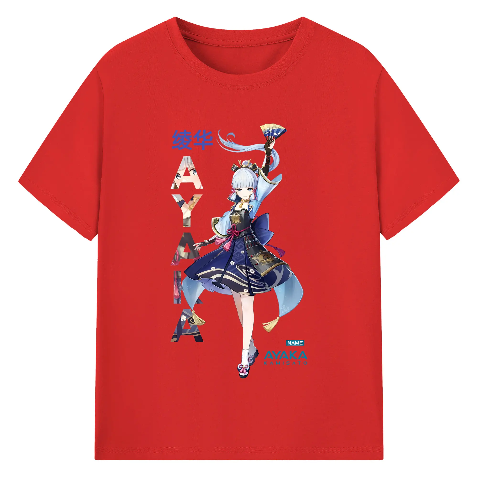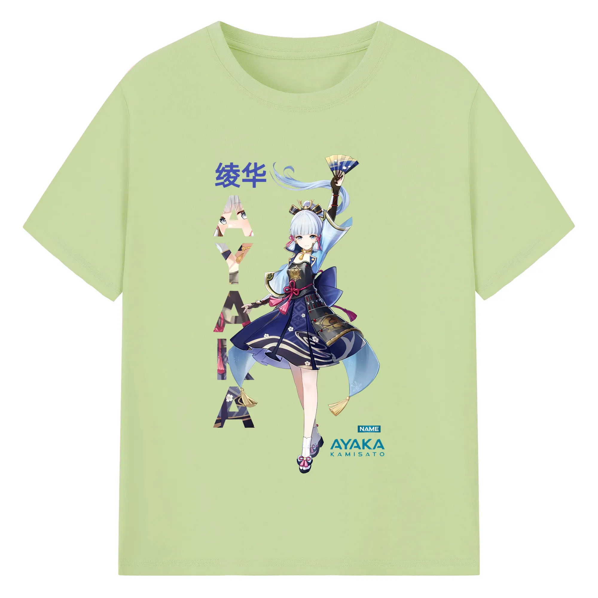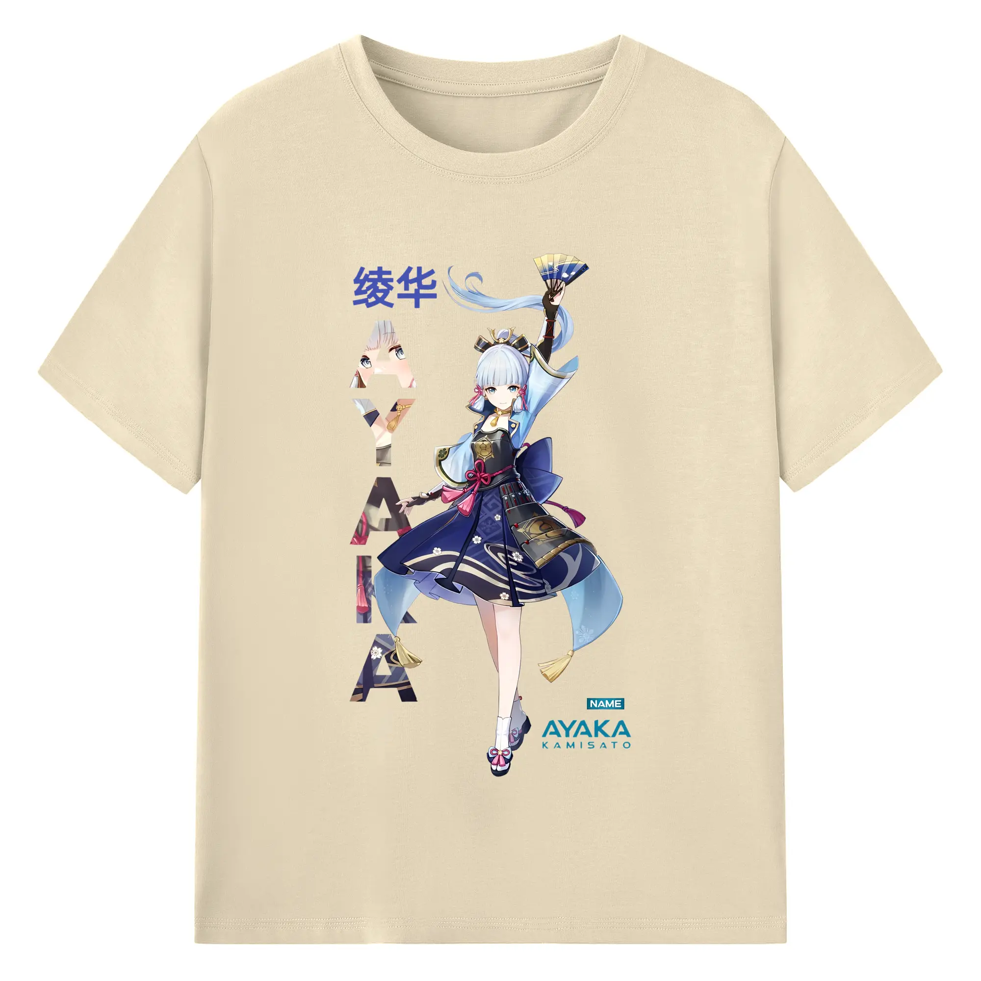 Genshin Impact 神里綾華 イラストプリント グッズ ファン必見 - 綿100% ヴィンテージ風 半袖Tシャツ ・ フロントプリント ・ 柔らか肌触り ・ 通気性 快適 ・ スポーツ カジュアル 外出用