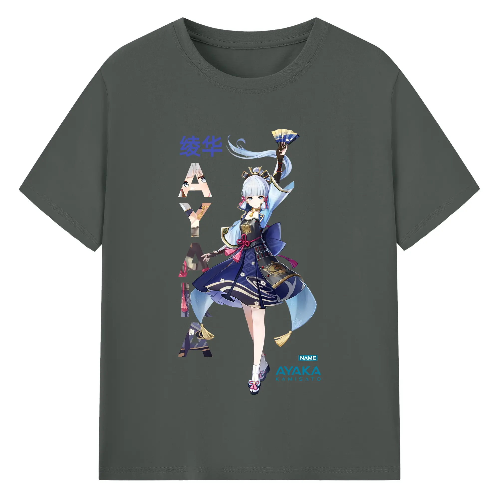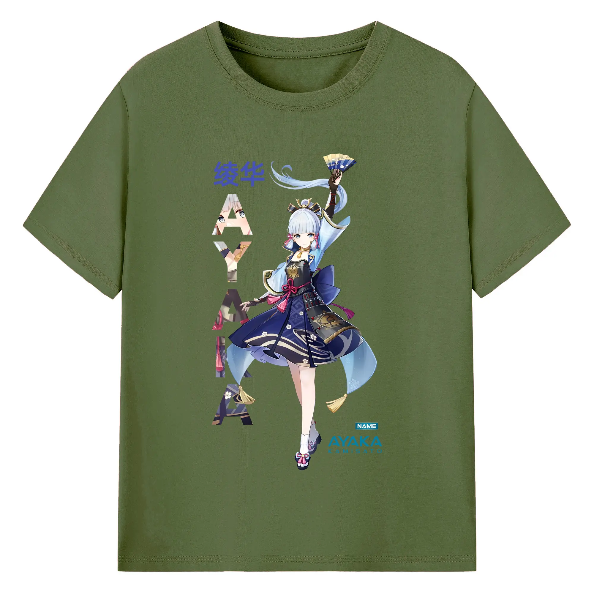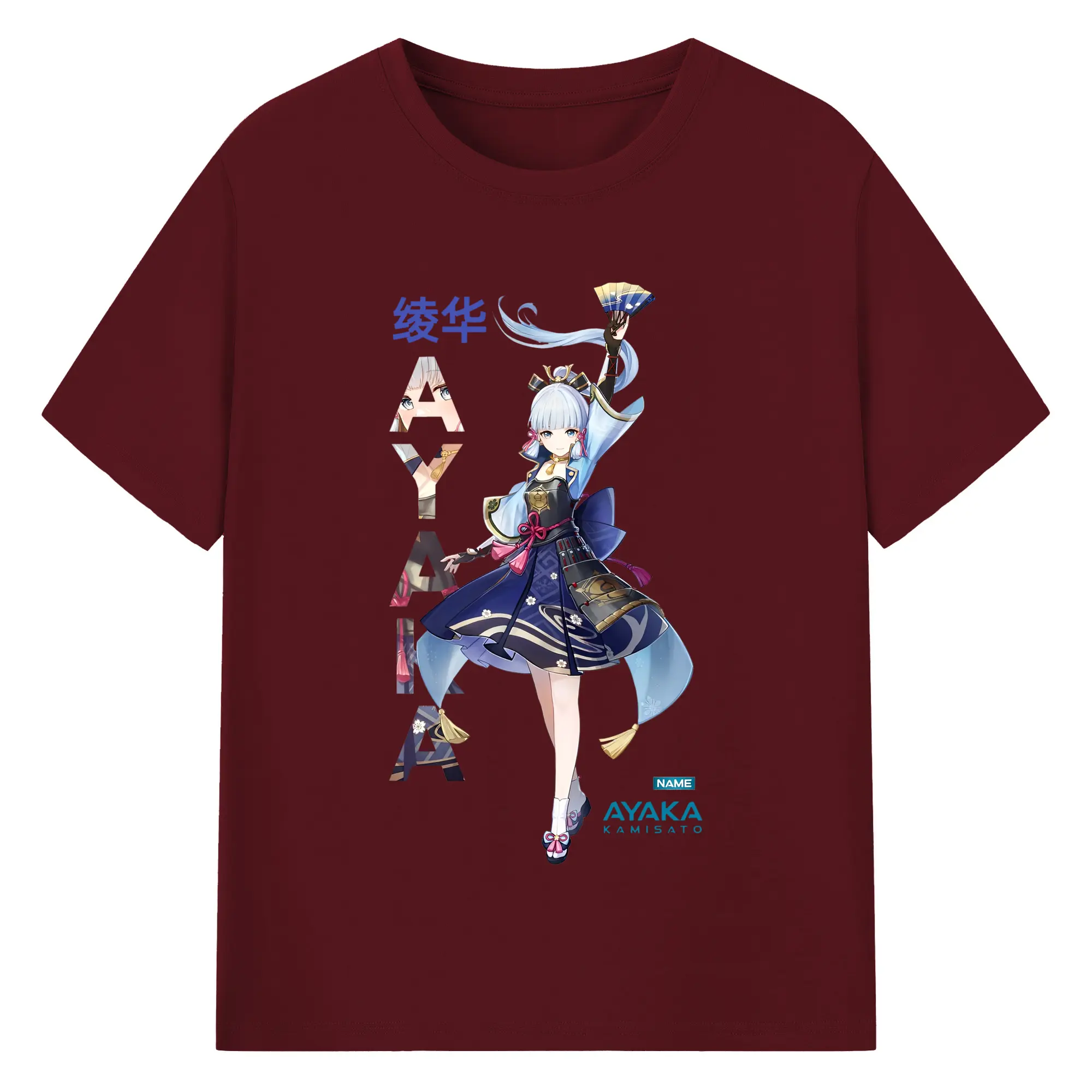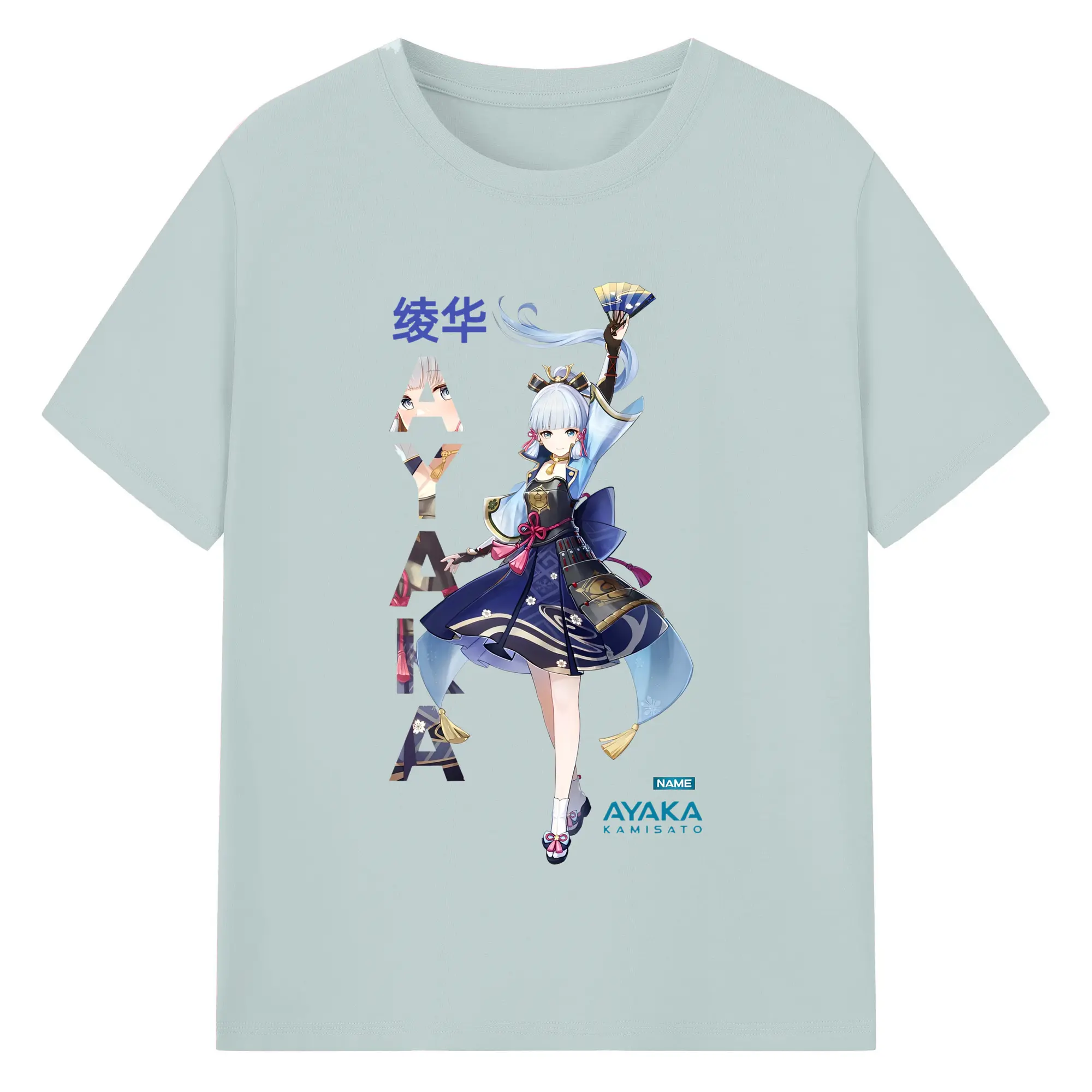 Genshin Impact 神里綾華 イラストプリント グッズ ファン必見 - 綿100% ヴィンテージ風 半袖Tシャツ ・ フロントプリント ・ 柔らか肌触り ・ 通気性 快適 ・ スポーツ カジュアル 外出用
