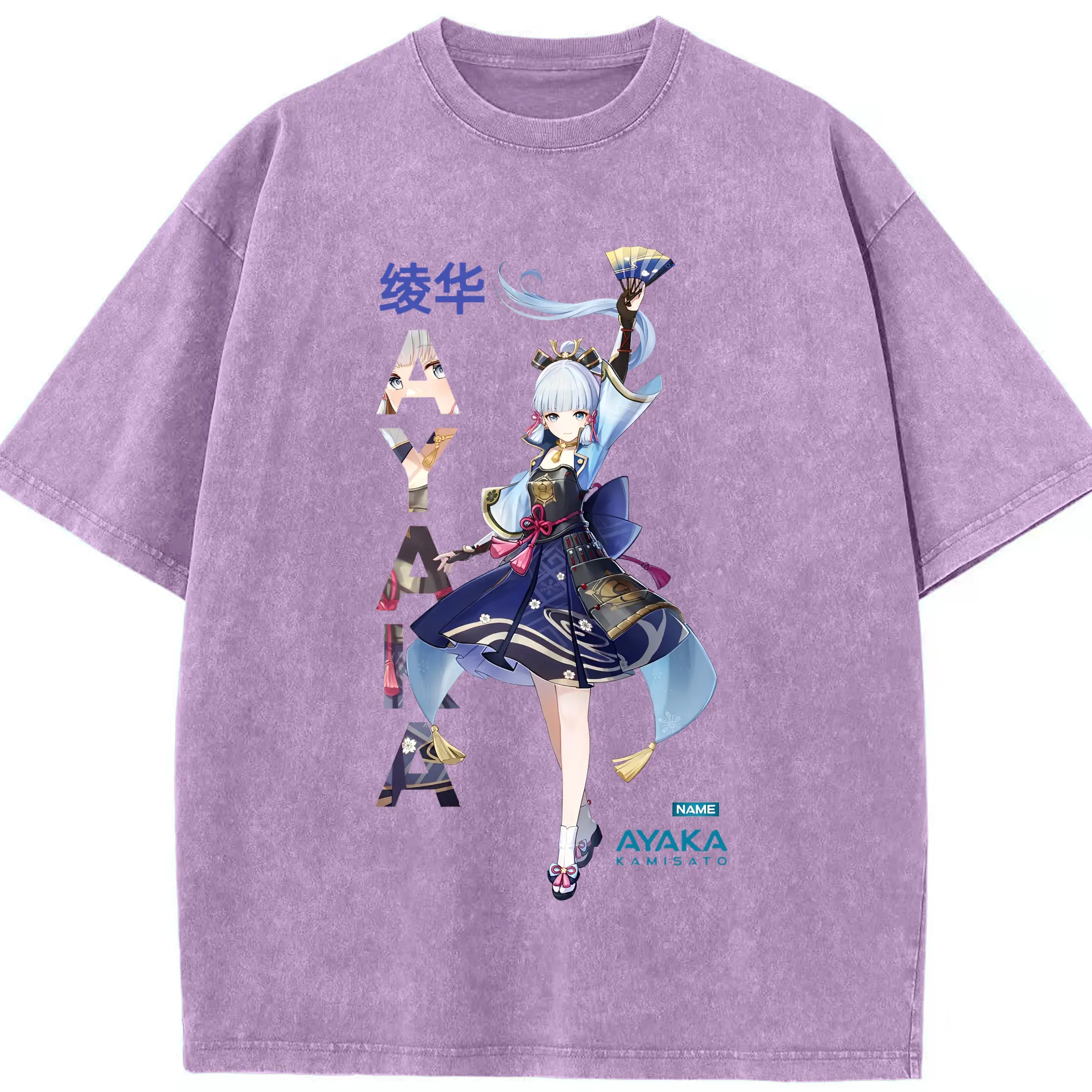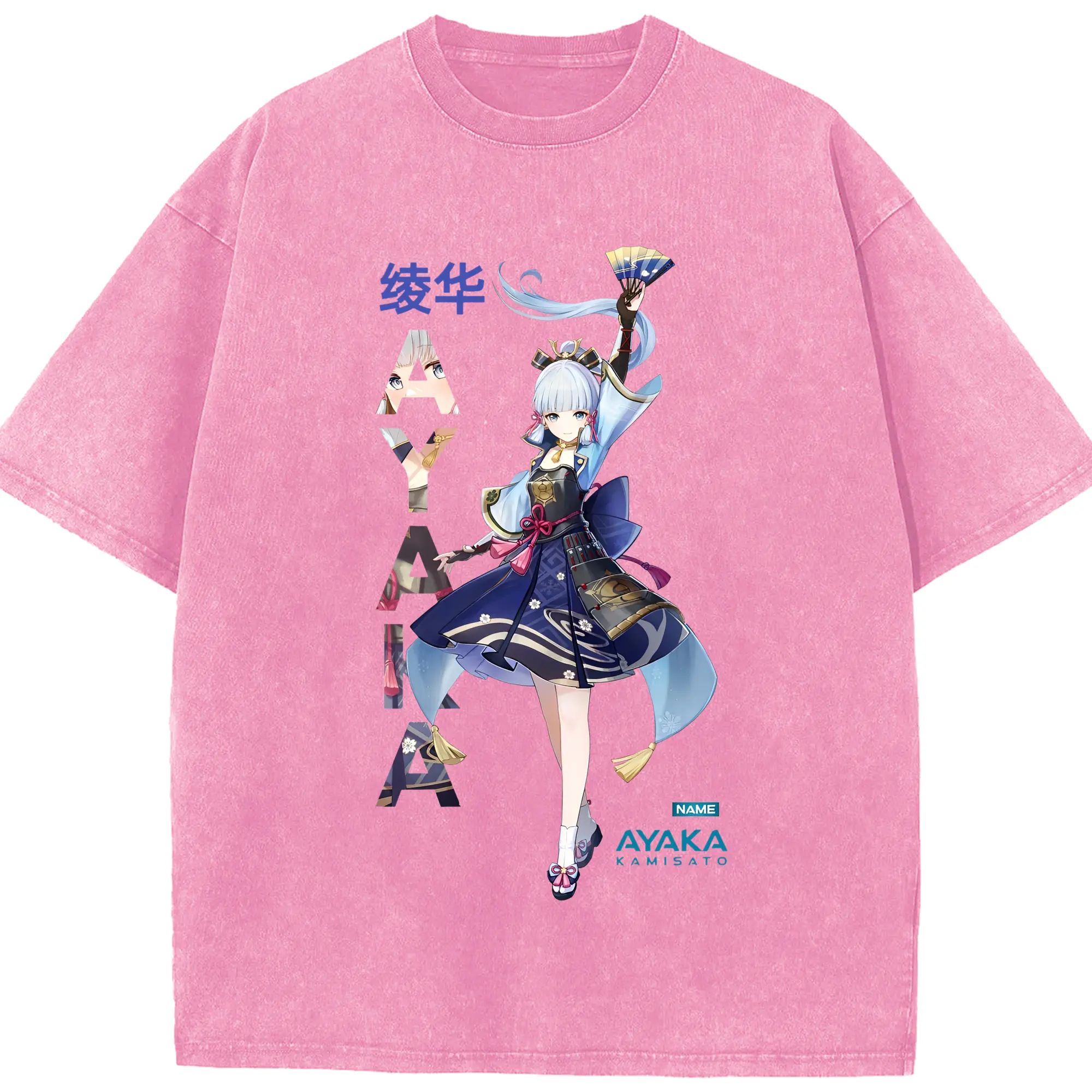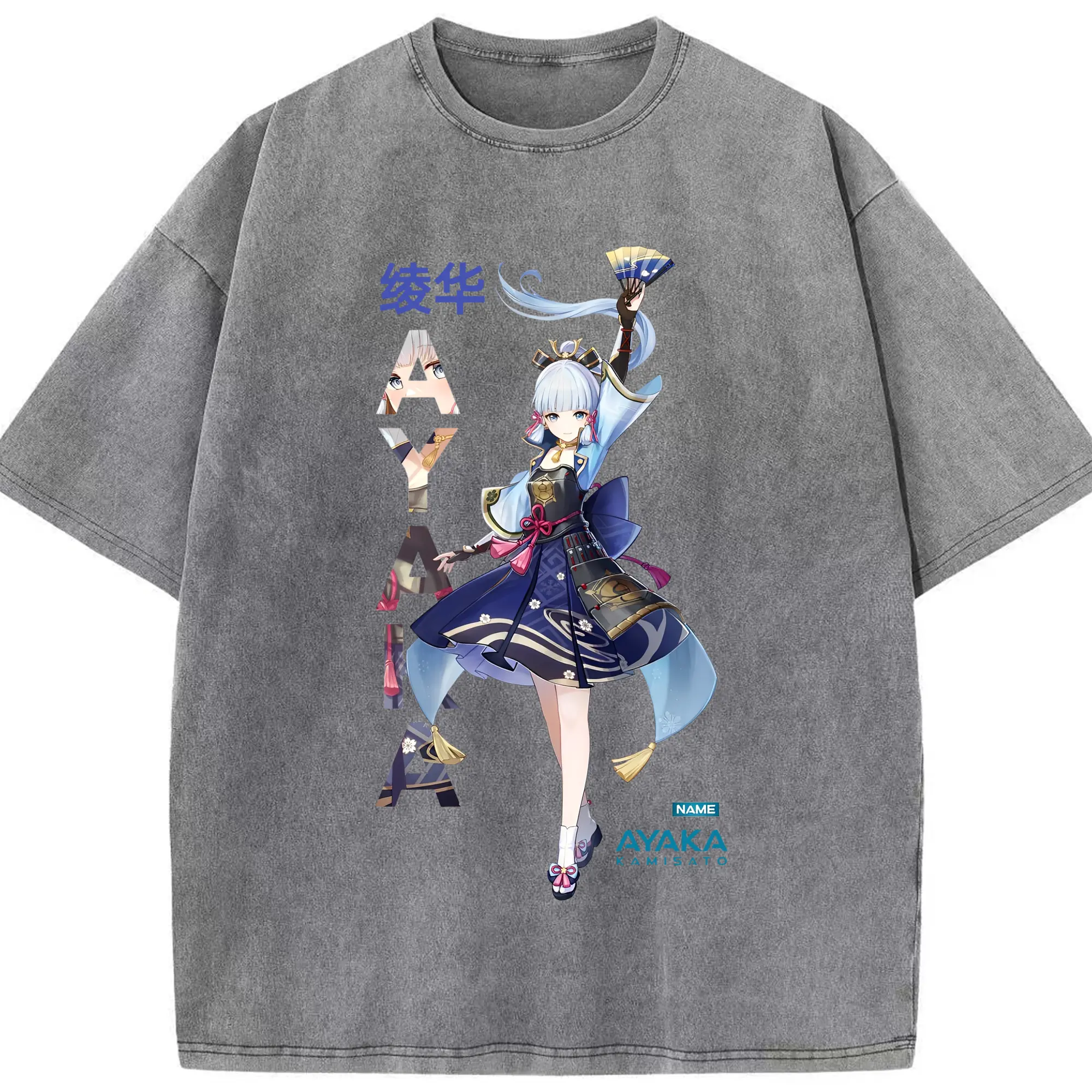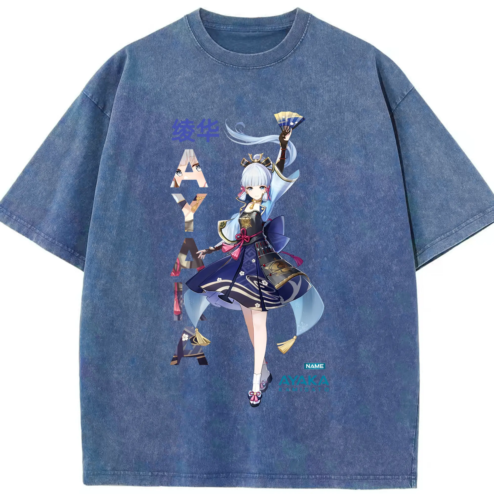 Genshin Impact 神里綾華 イラストプリント グッズ ファン必見 - 綿100% 半袖Tシャツ ・ フロントプリント ・ 快適 通気性 ・ 日常使い 散歩 スポーツ用