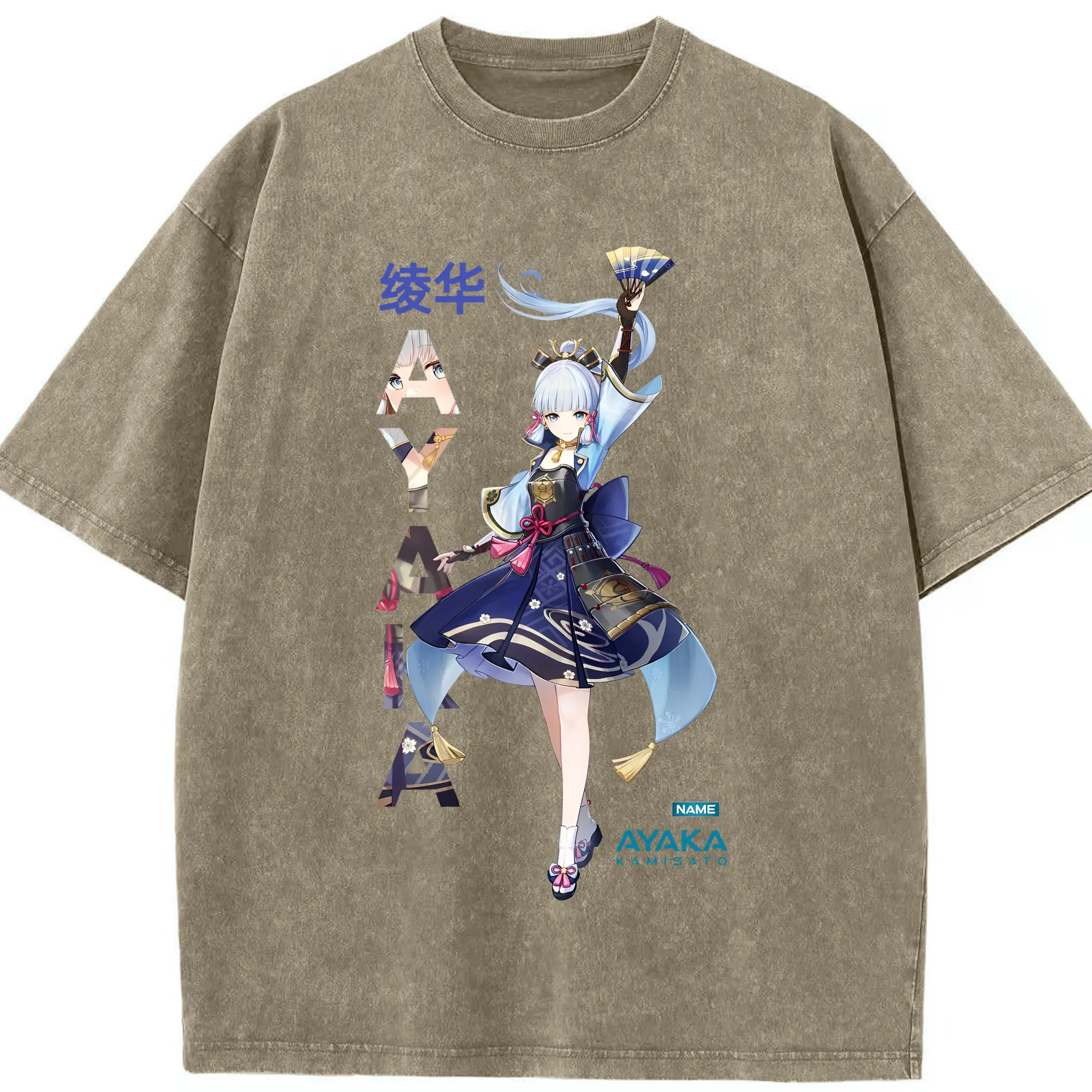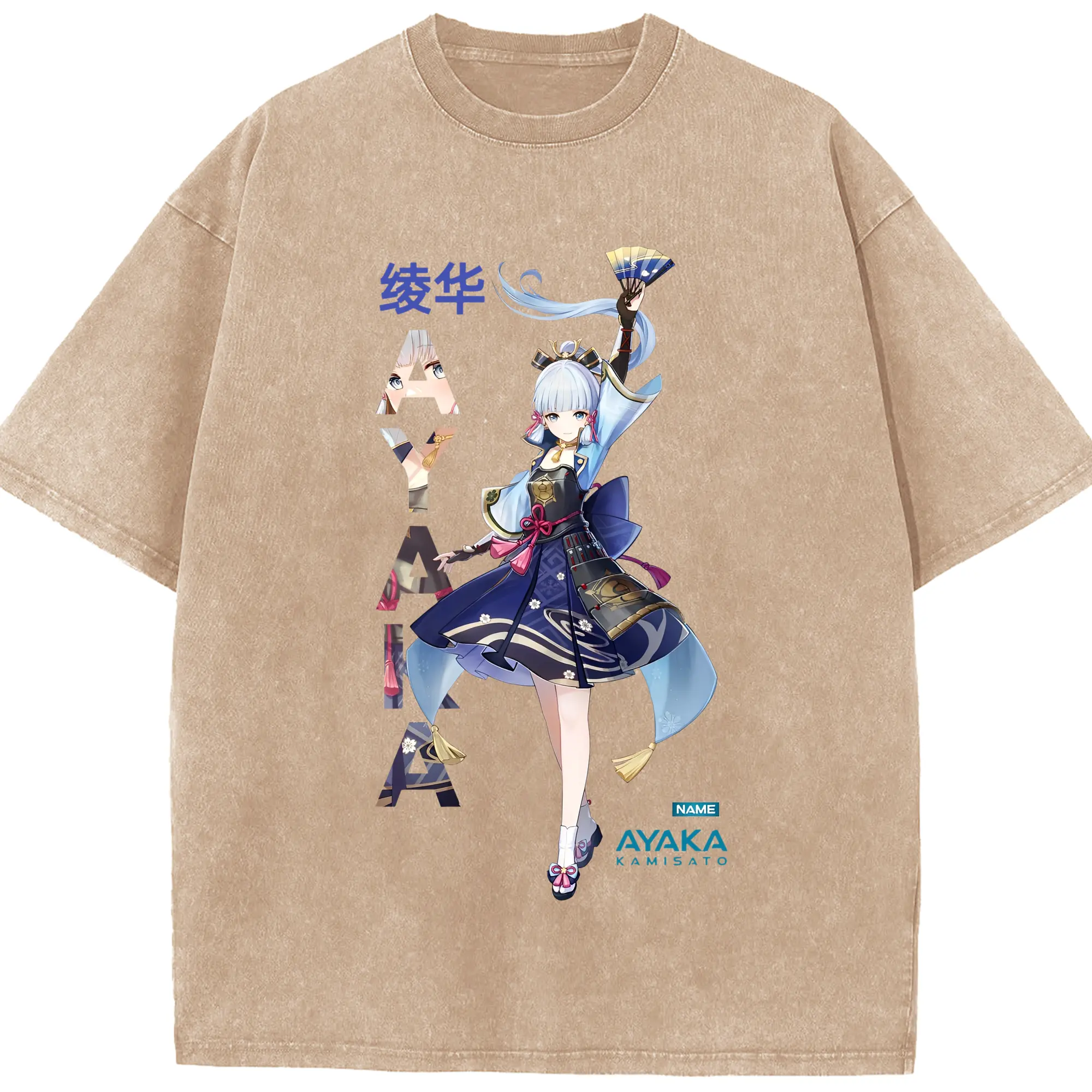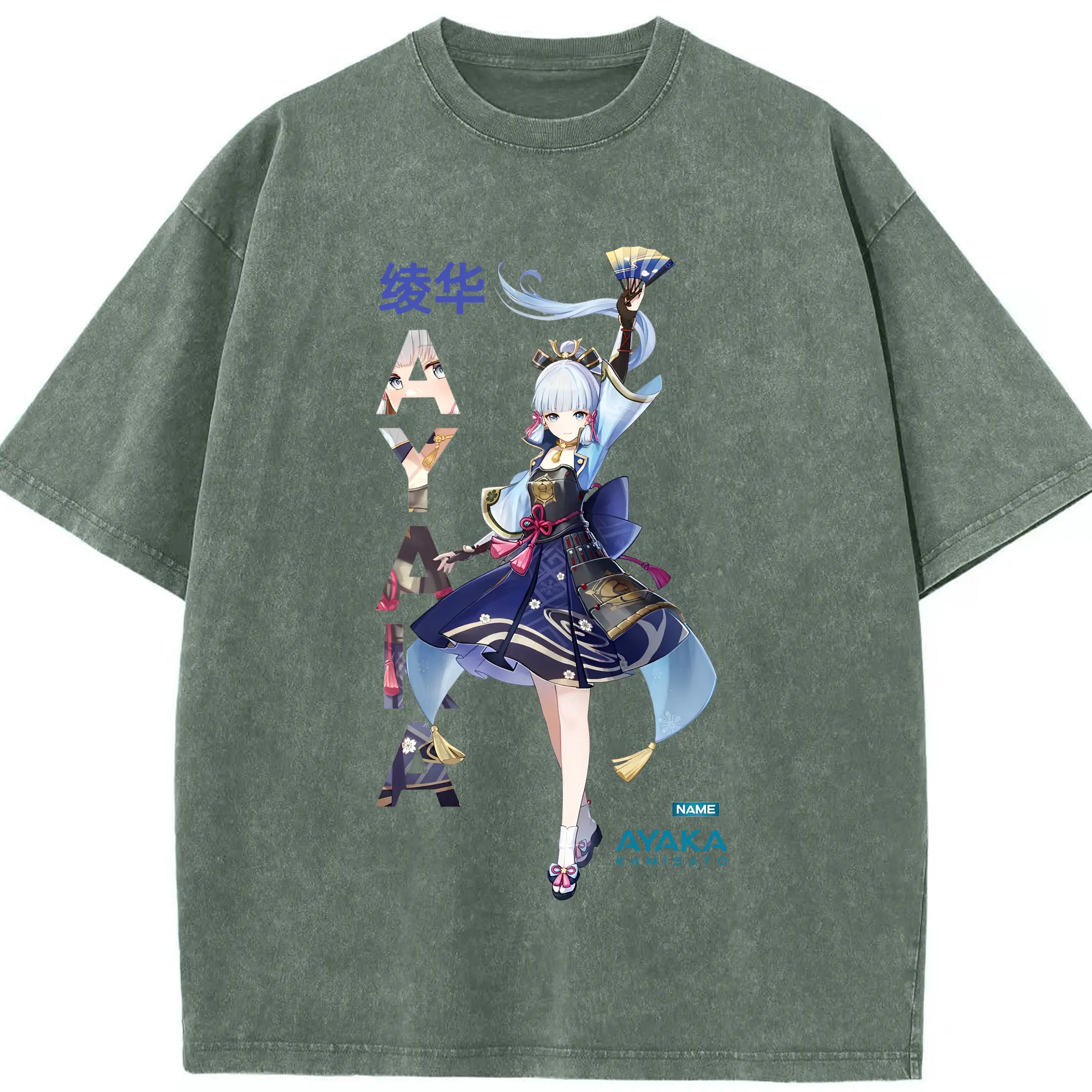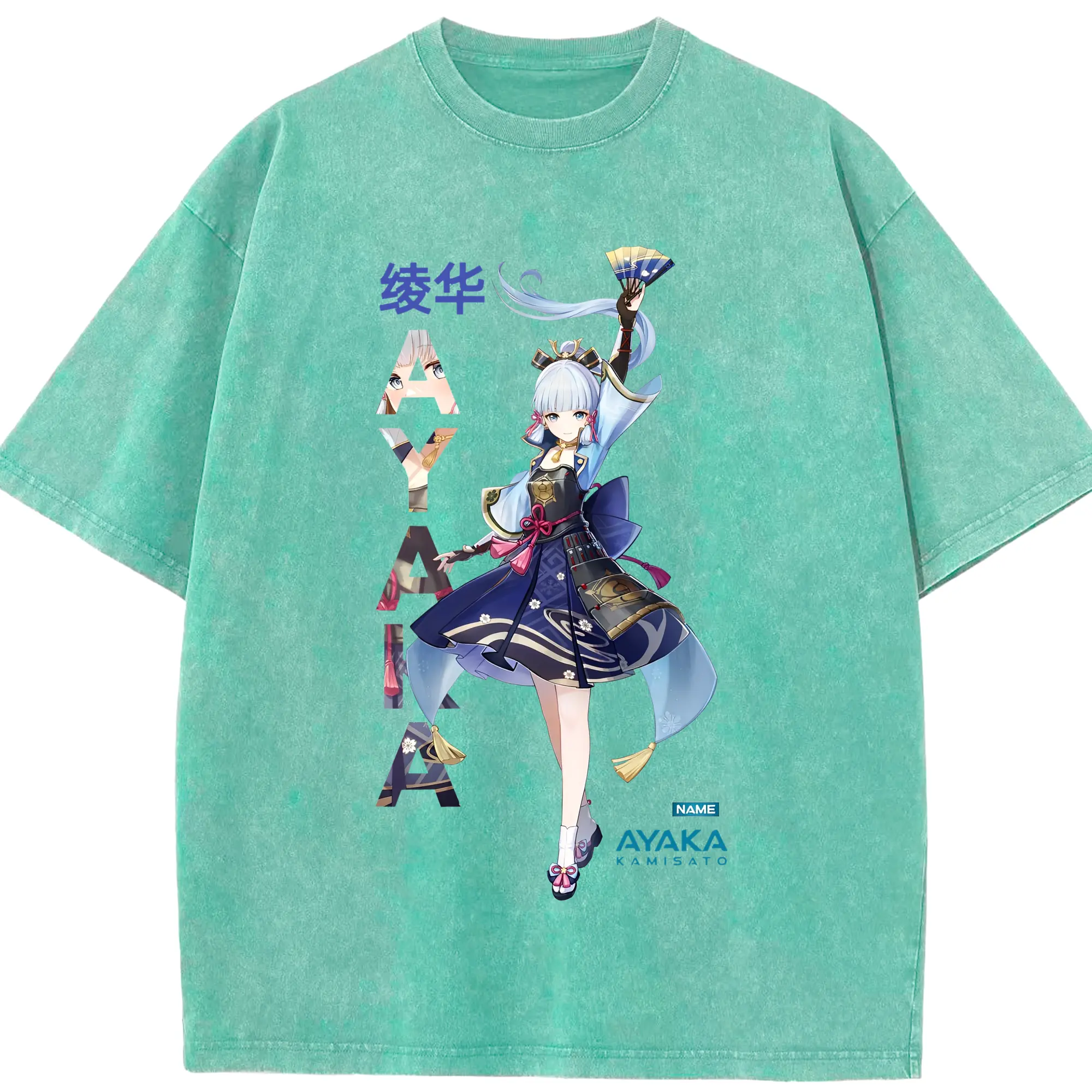 Genshin Impact 神里綾華 イラストプリント グッズ ファン必見 - 綿100% 半袖Tシャツ ・ フロントプリント ・ 快適 通気性 ・ 日常使い 散歩 スポーツ用