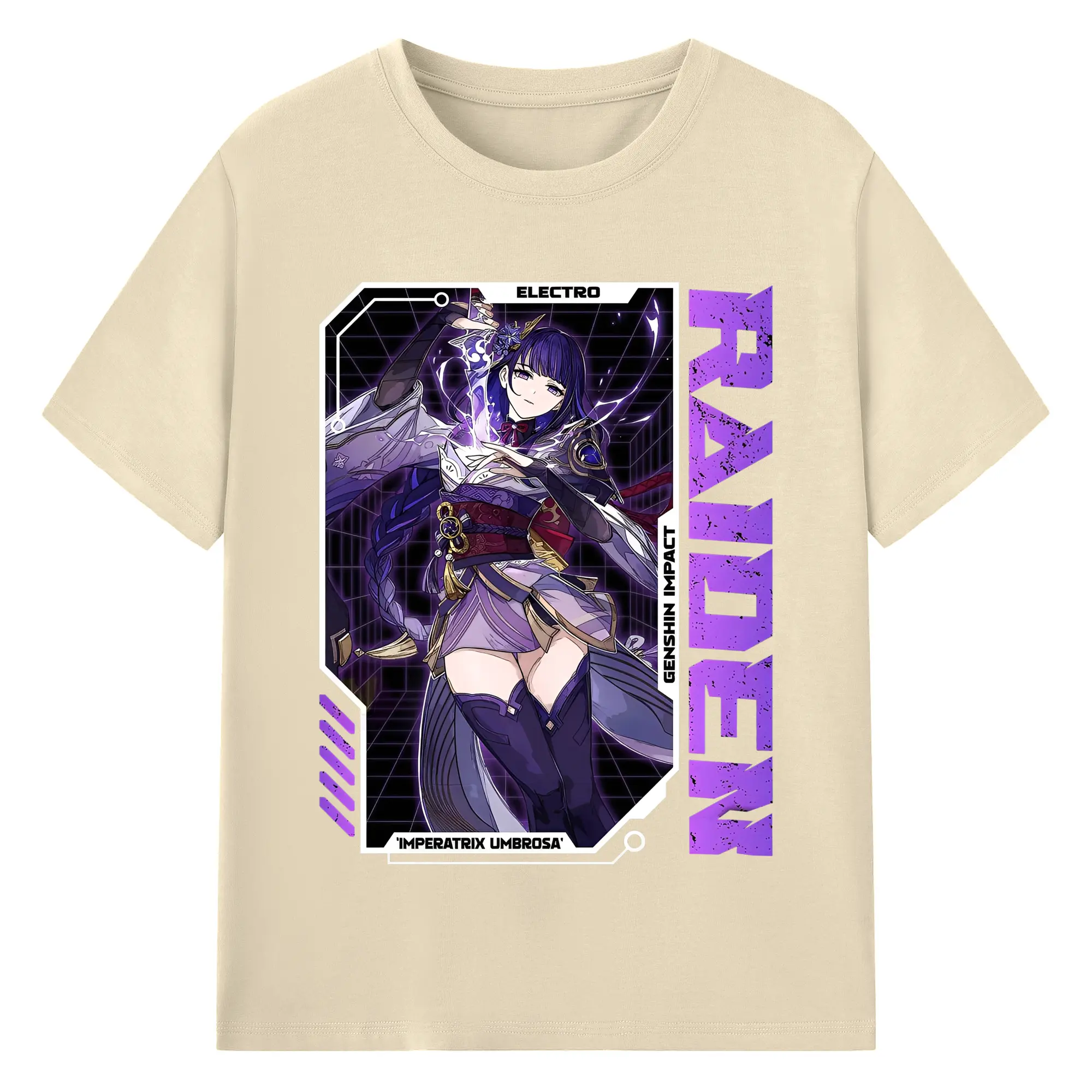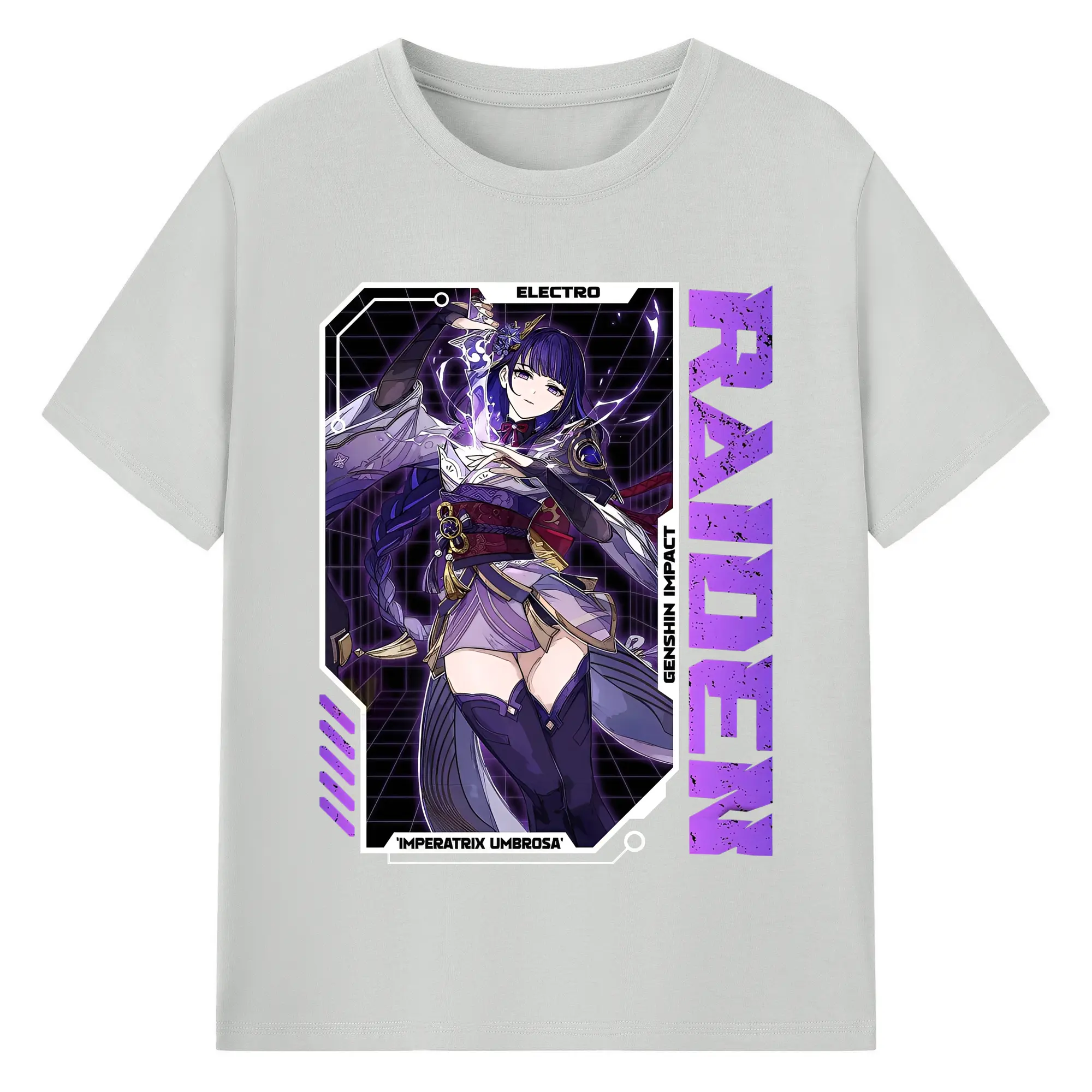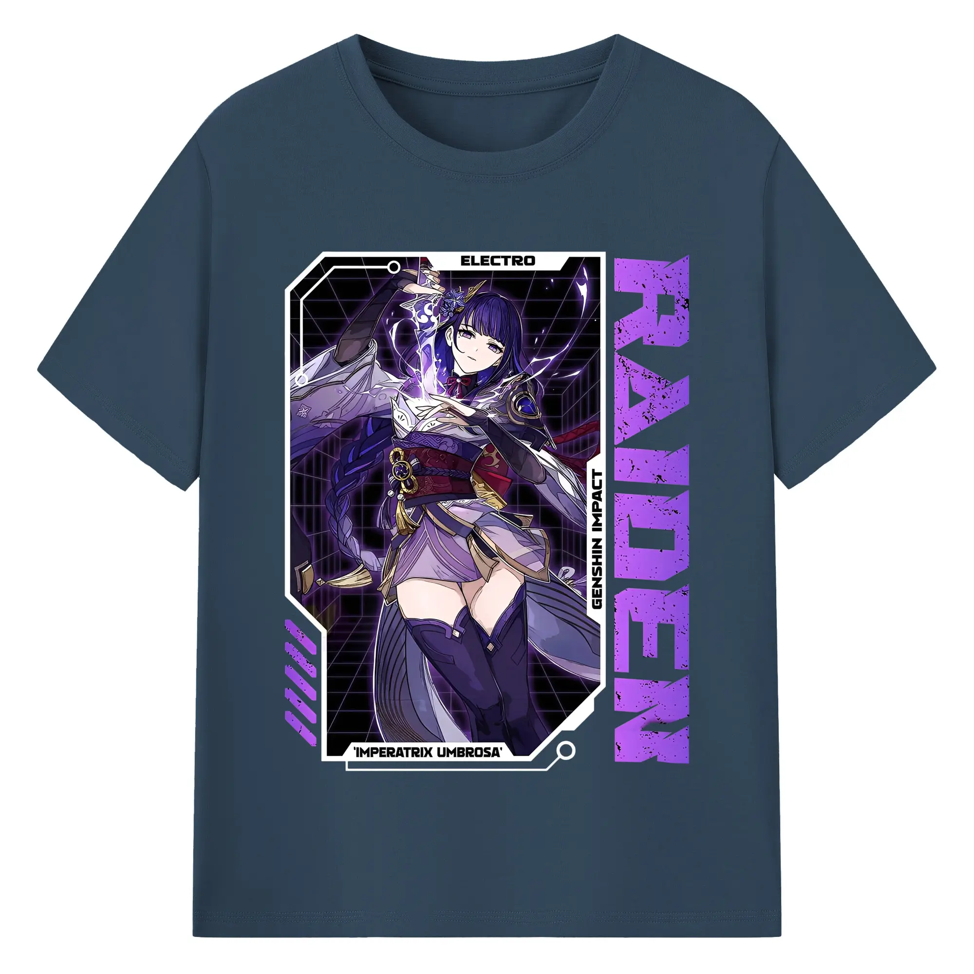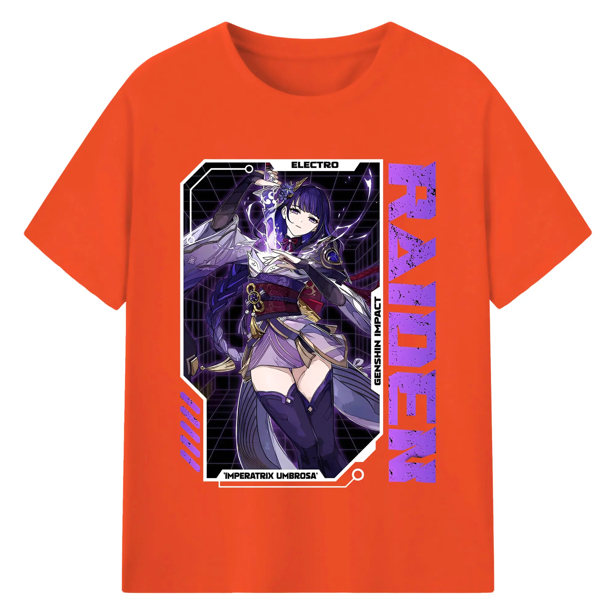 Genshin Impact 雷電将軍 キャラクターグッズ ファン必見 - 綿100% ヴィンテージ風 半袖Tシャツ ・ フロントプリント ・ 柔らか肌触り ・ 通気性 快適 ・ スポーツ カジュアル 外出用