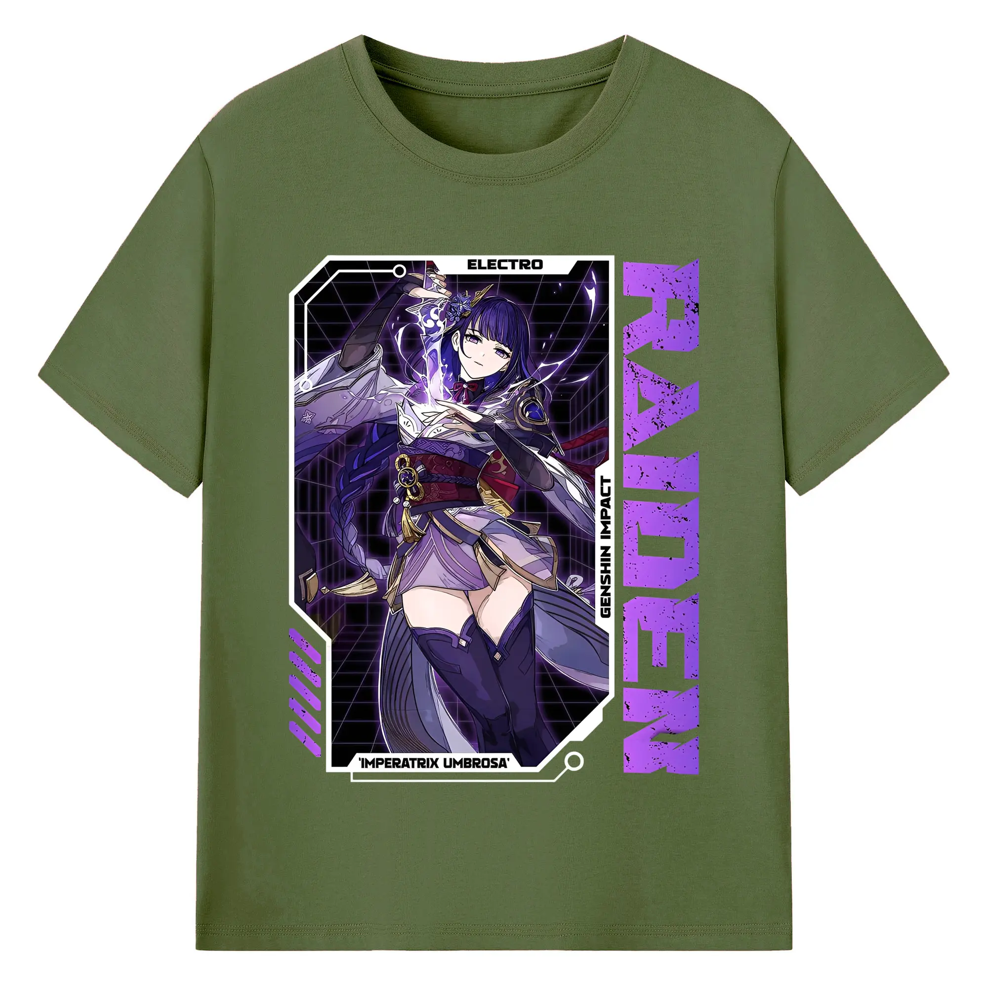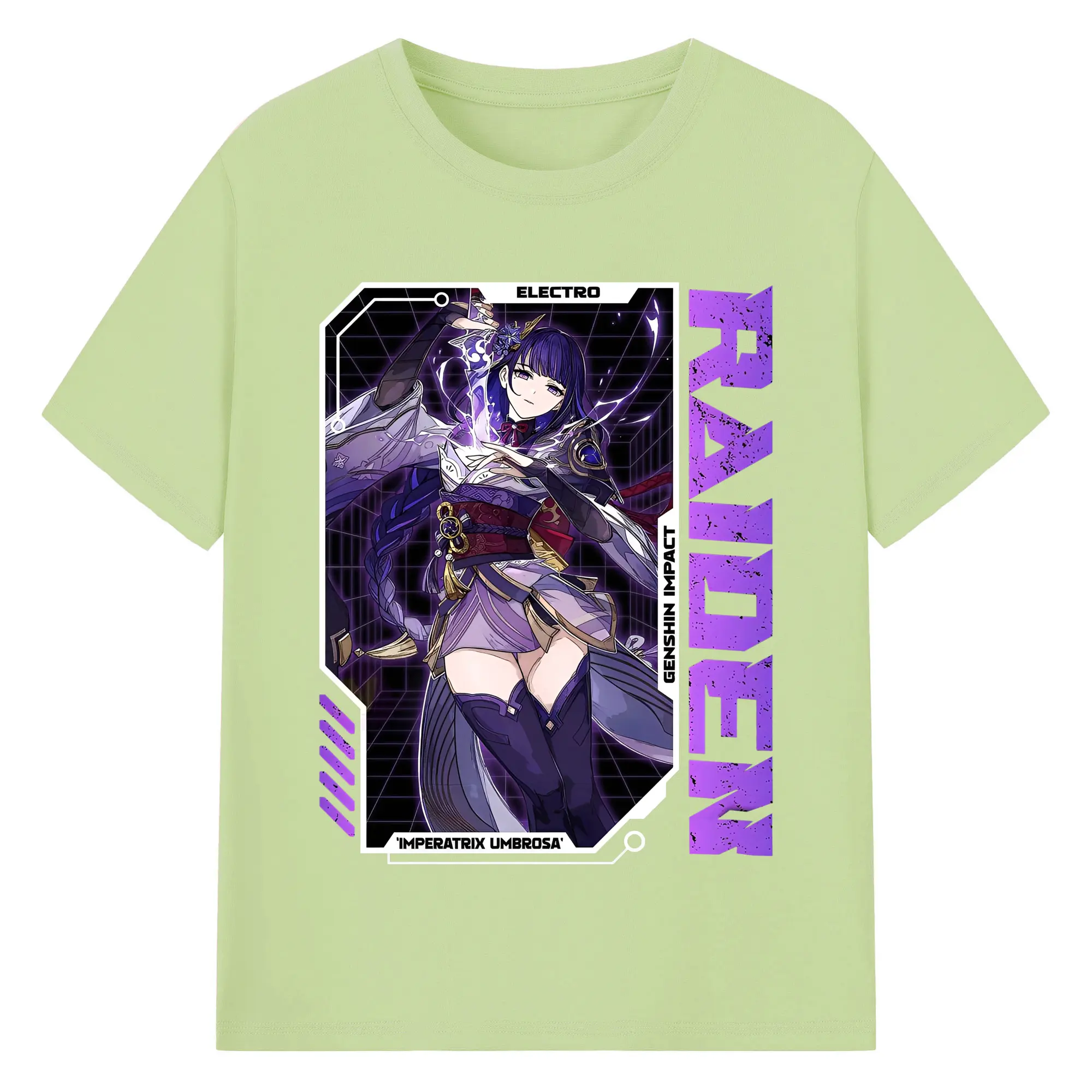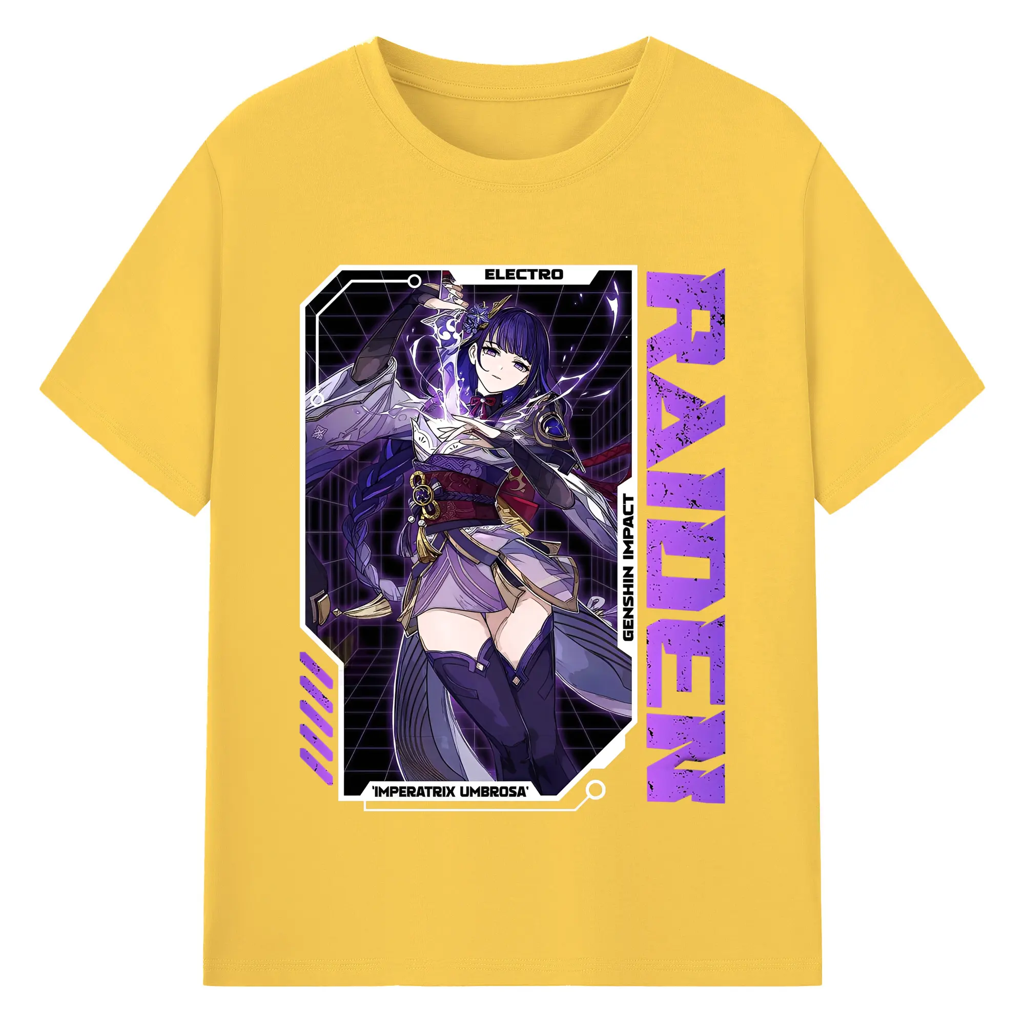 Genshin Impact 雷電将軍 キャラクターグッズ ファン必見 - 綿100% ヴィンテージ風 半袖Tシャツ ・ フロントプリント ・ 柔らか肌触り ・ 通気性 快適 ・ スポーツ カジュアル 外出用