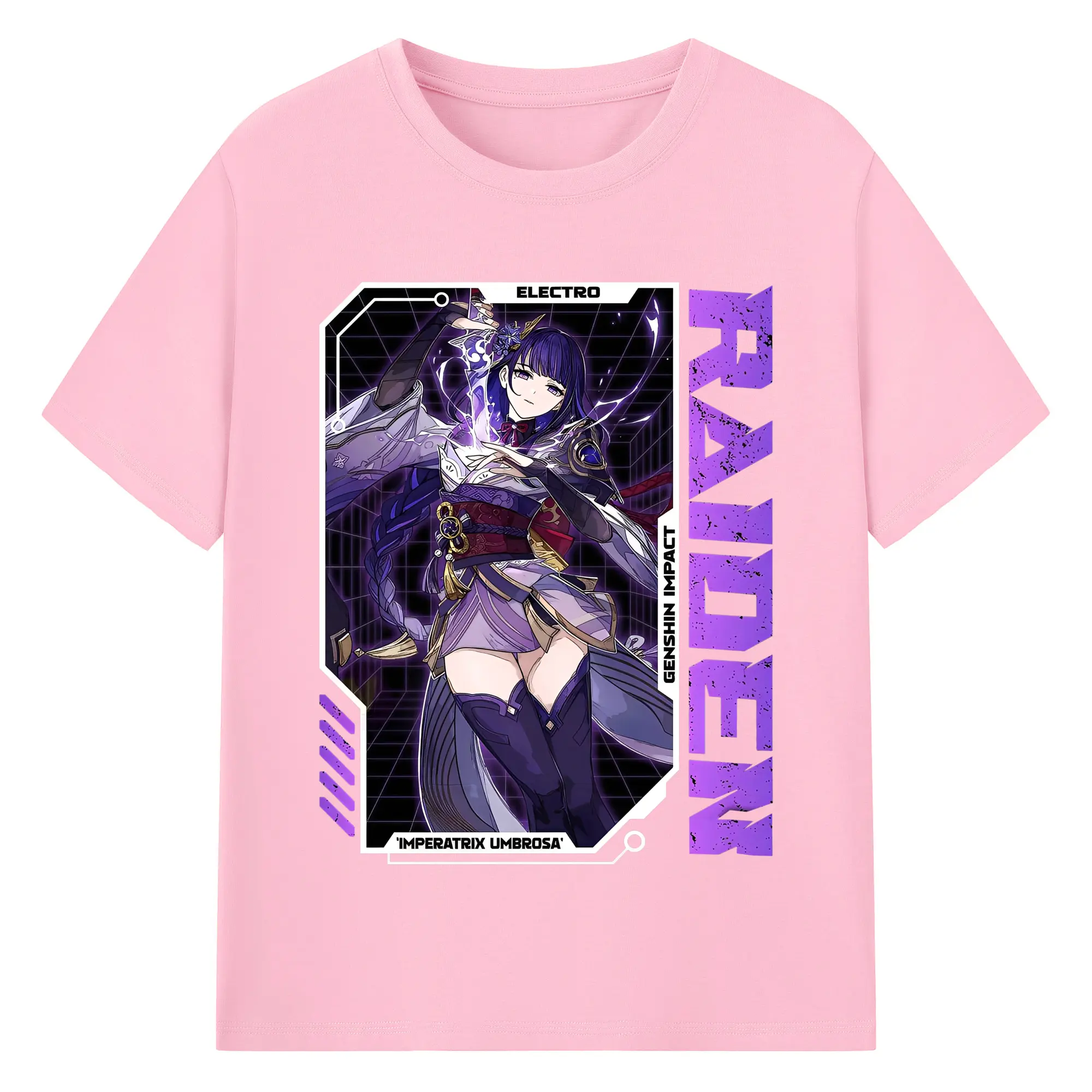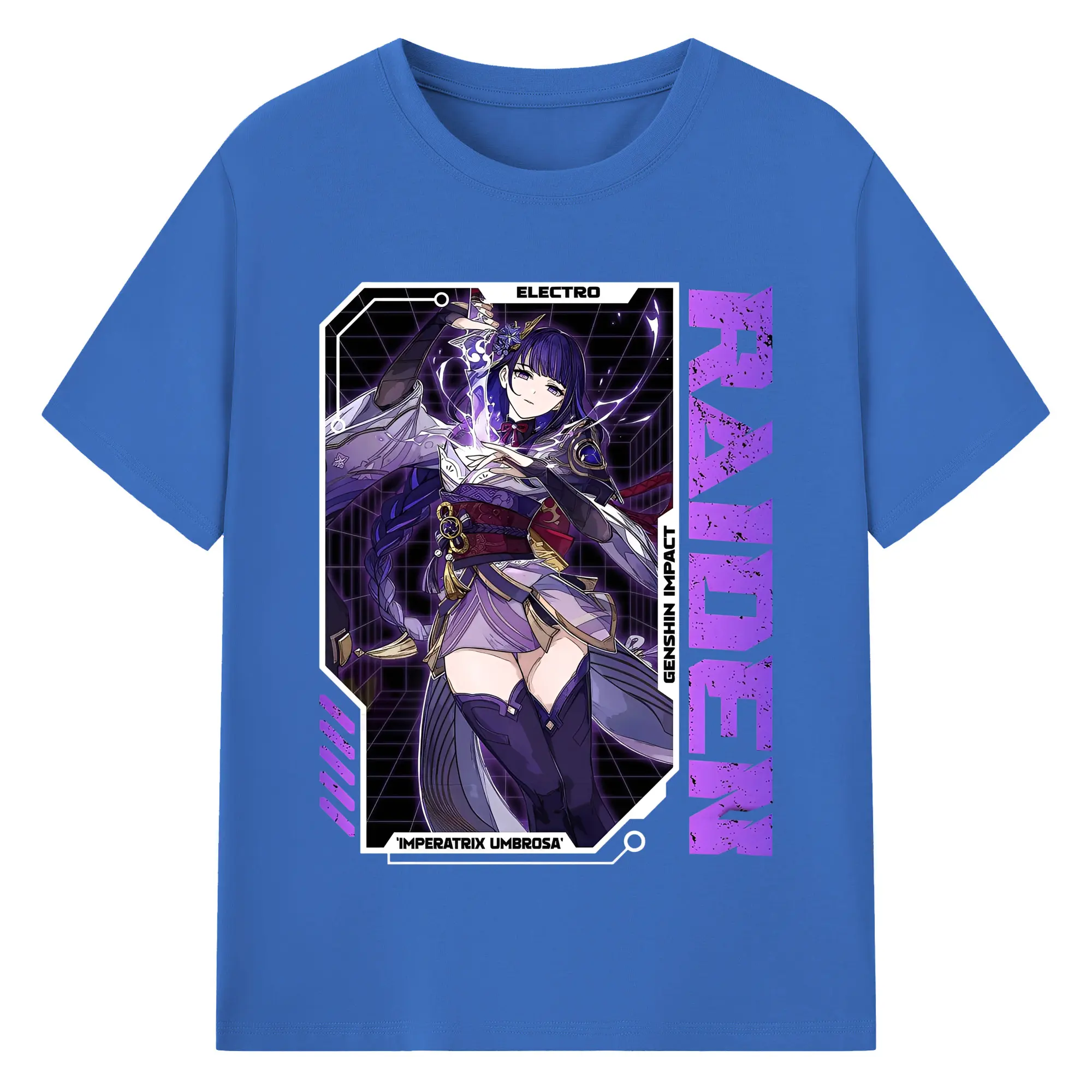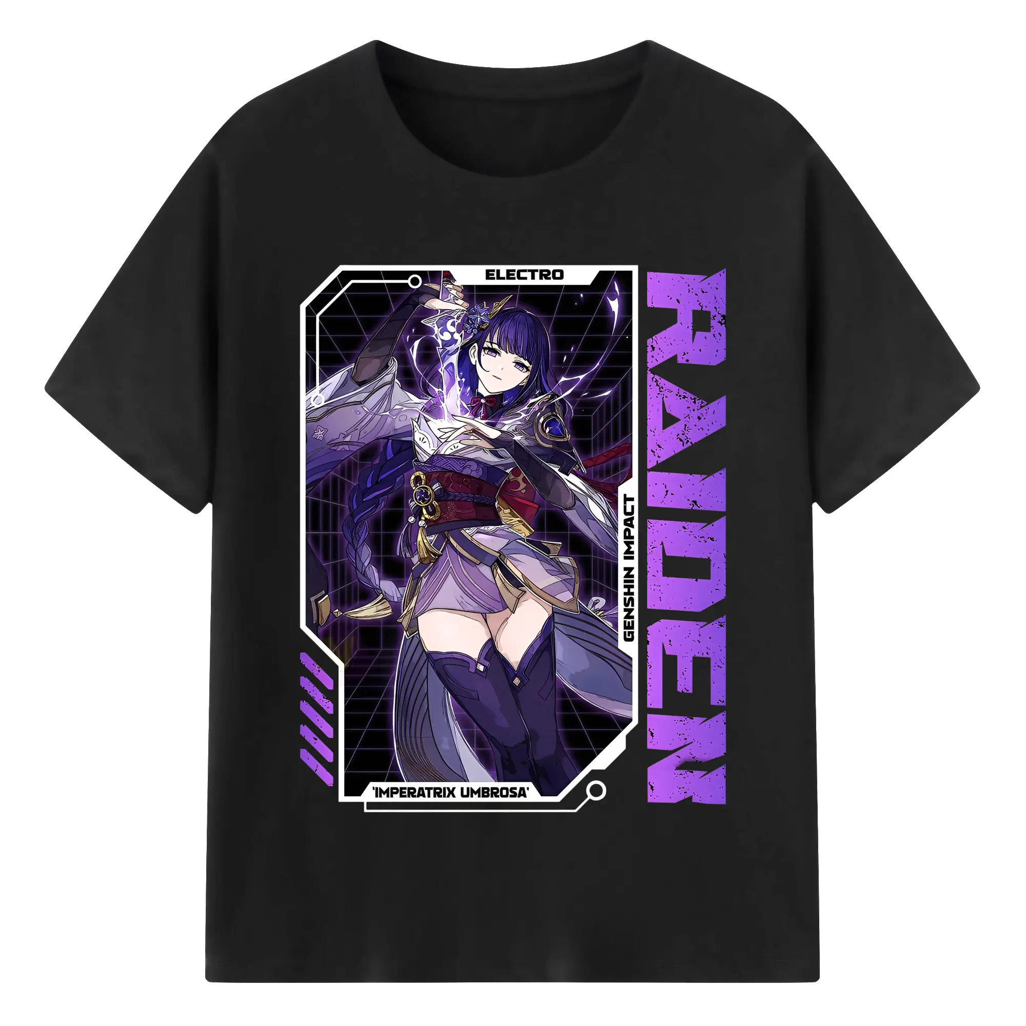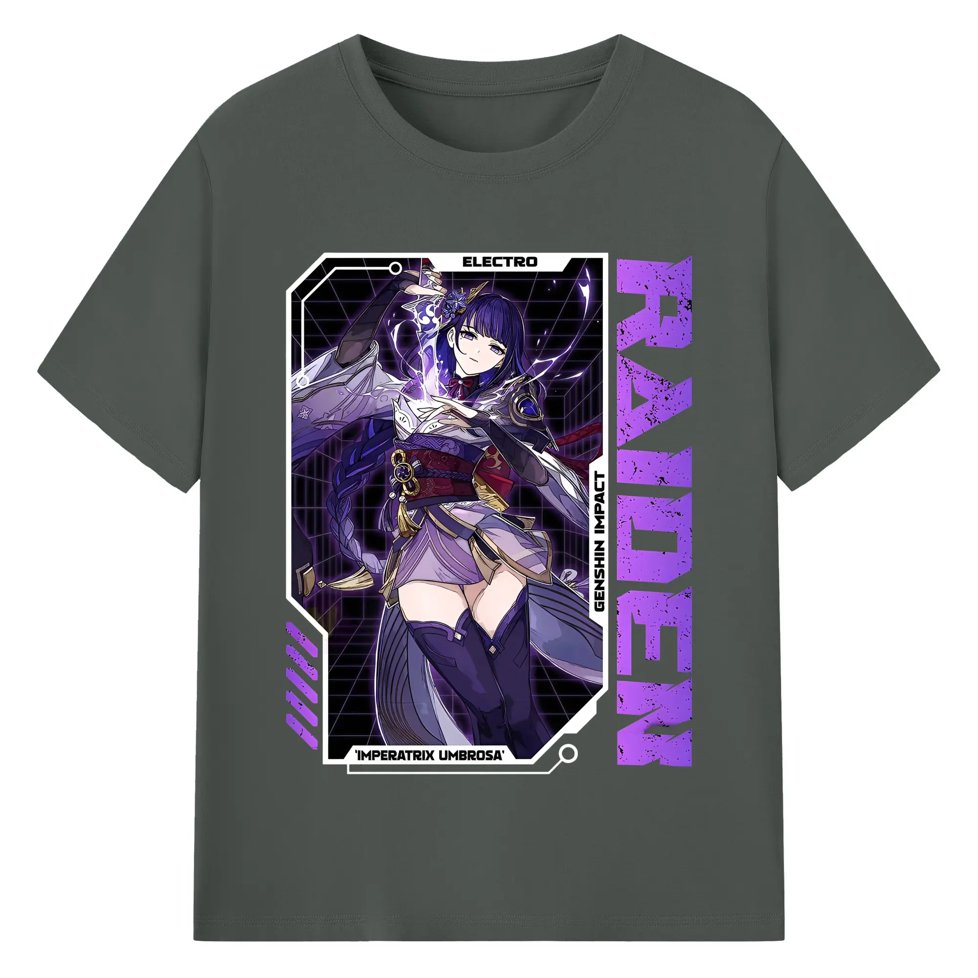 Genshin Impact 雷電将軍 キャラクターグッズ ファン必見 - 綿100% ヴィンテージ風 半袖Tシャツ ・ フロントプリント ・ 柔らか肌触り ・ 通気性 快適 ・ スポーツ カジュアル 外出用