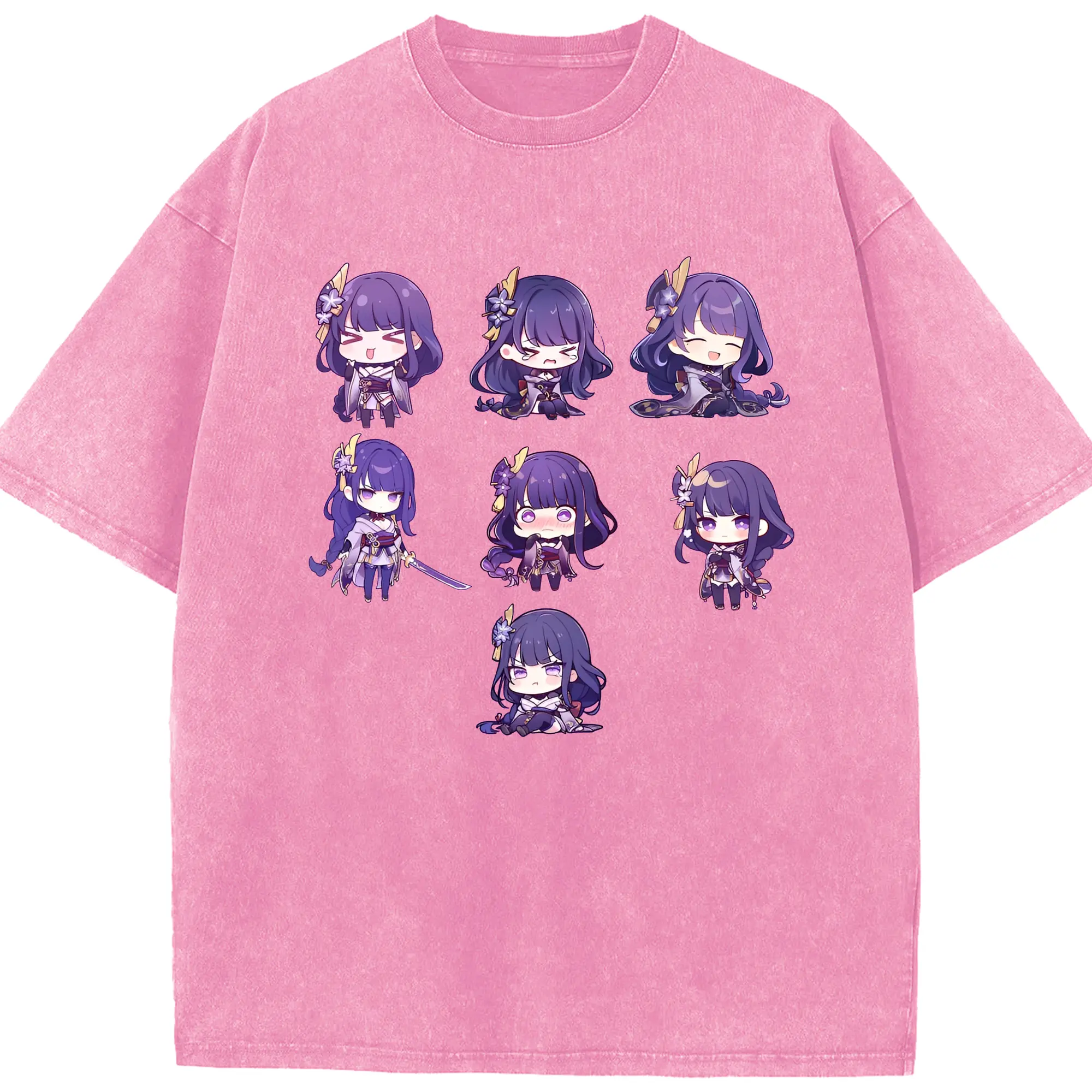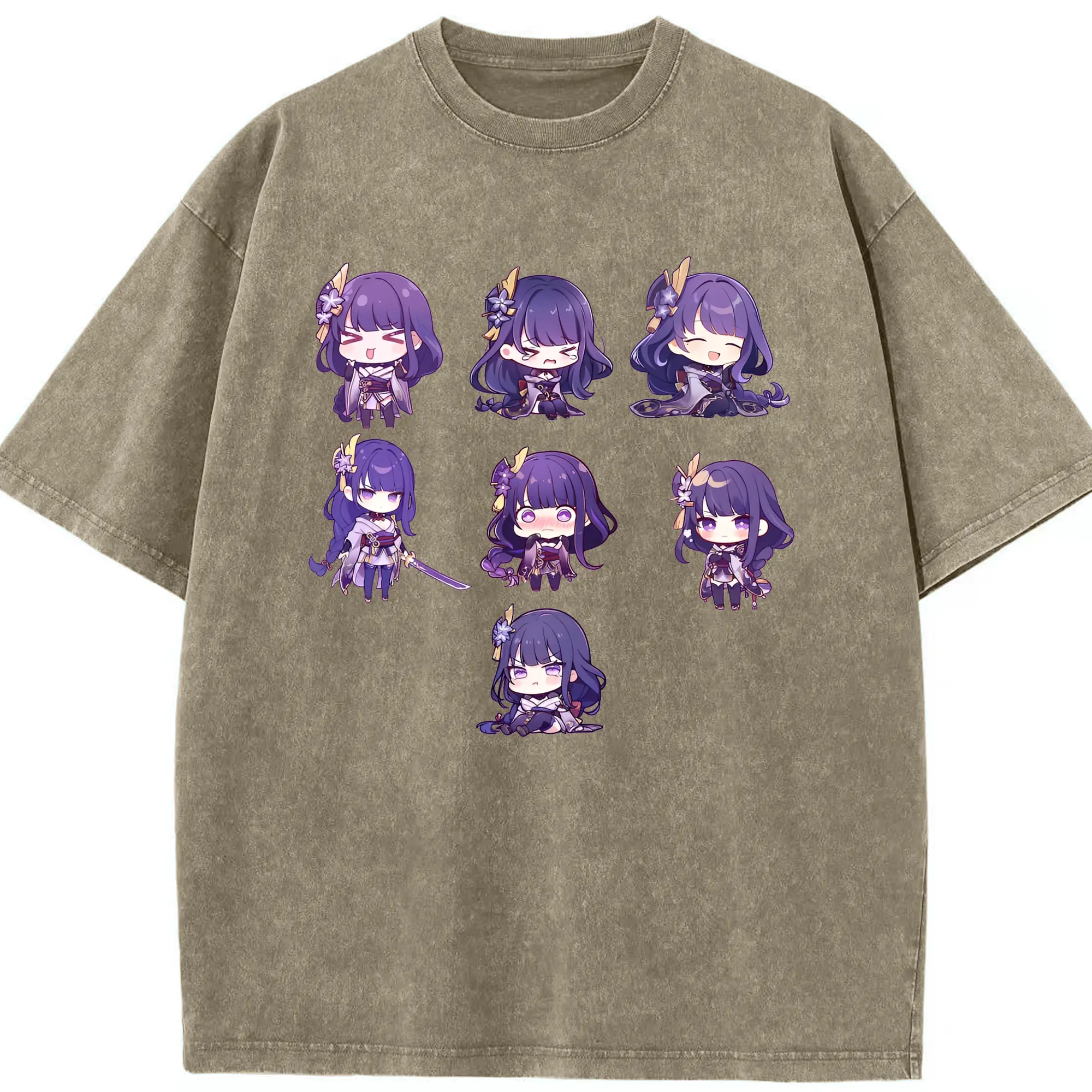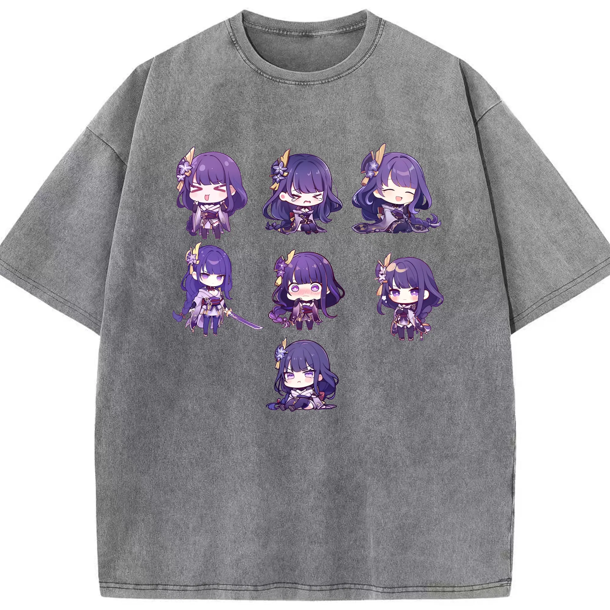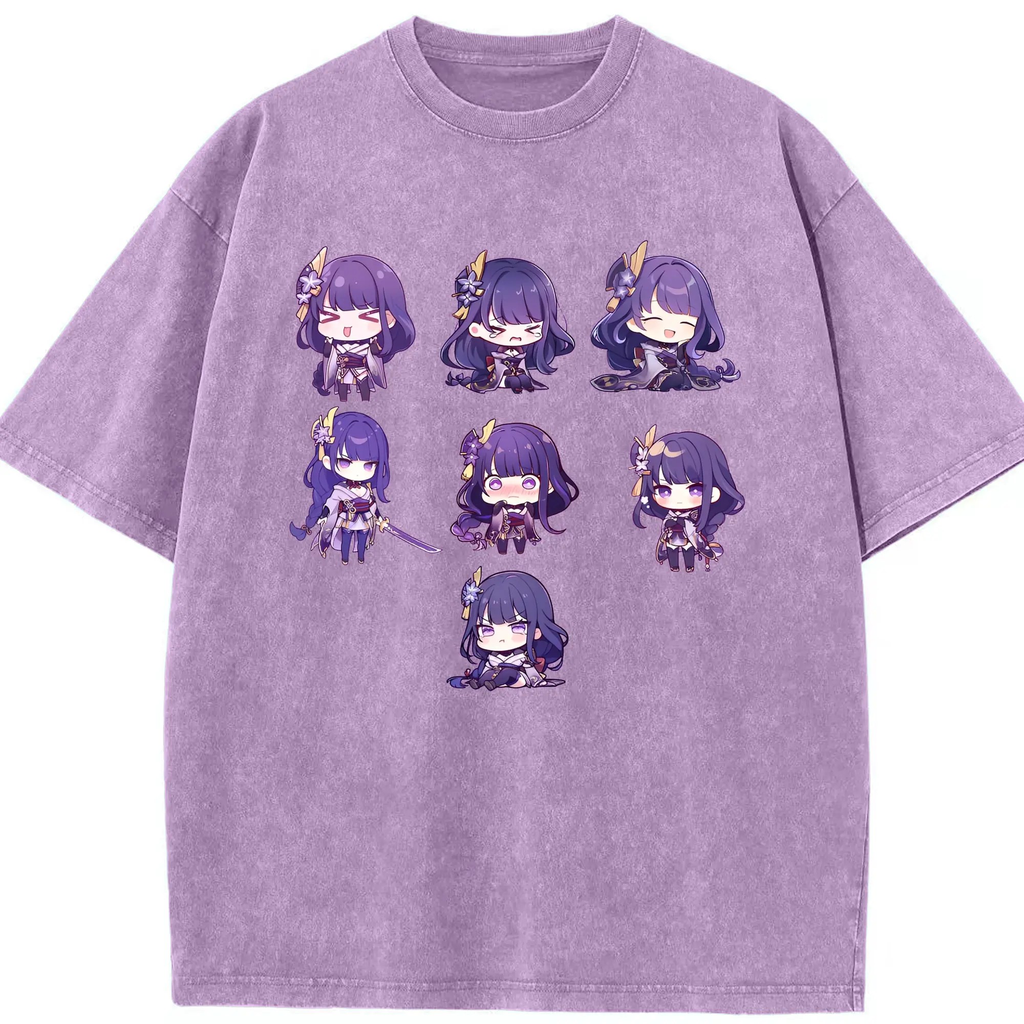 Genshin Impact 雷電将軍 ミニマルデザイン おしゃれスタイル - 綿100% 半袖Tシャツ ・ フロントプリント ・ 快適 通気性 ・ 日常使い 散歩 スポーツ用