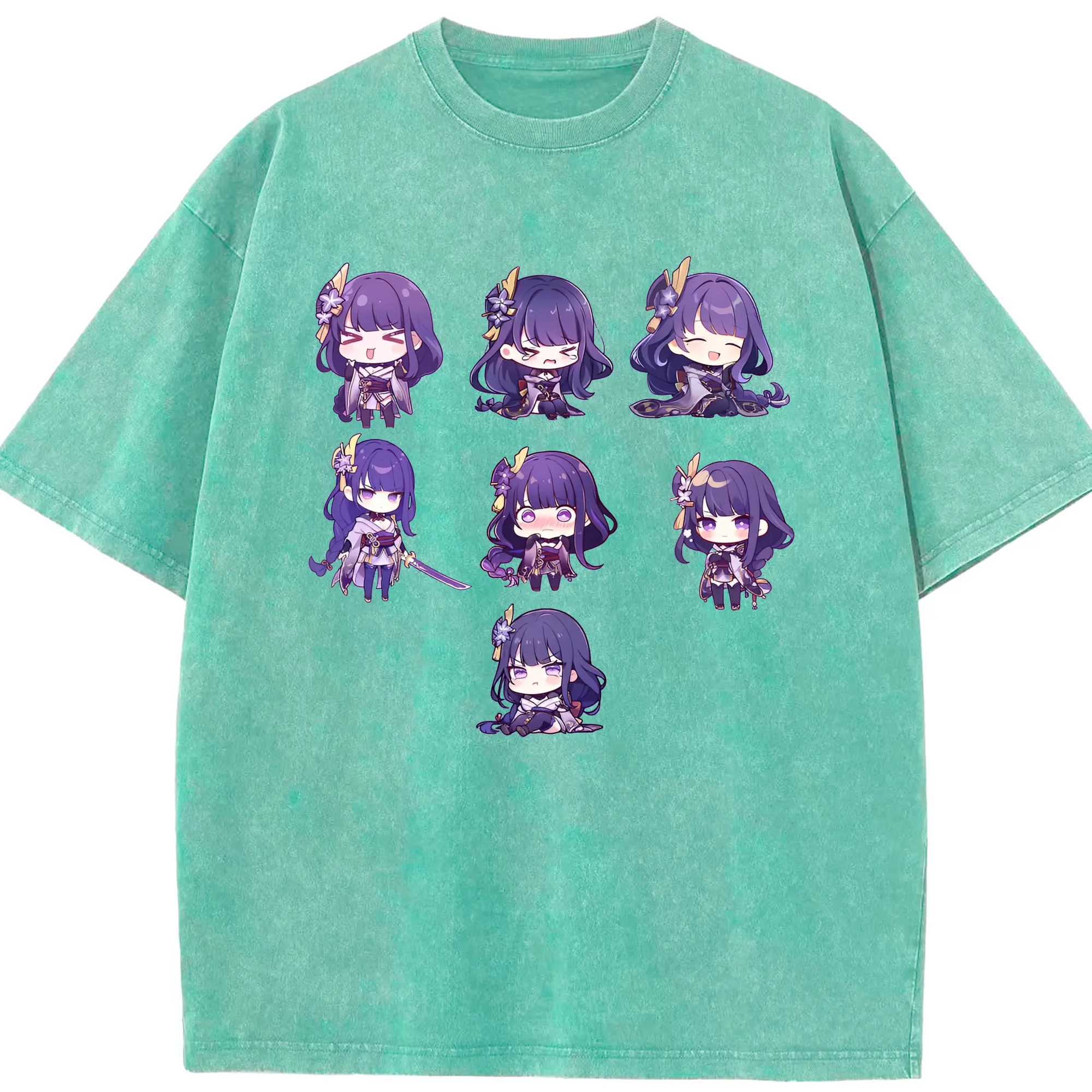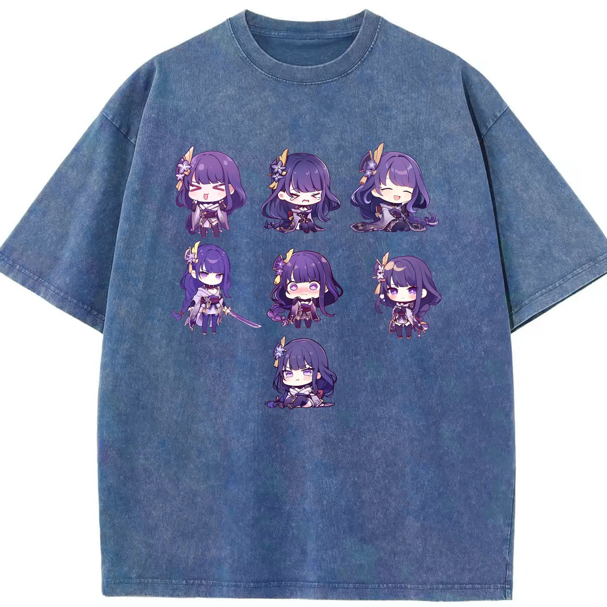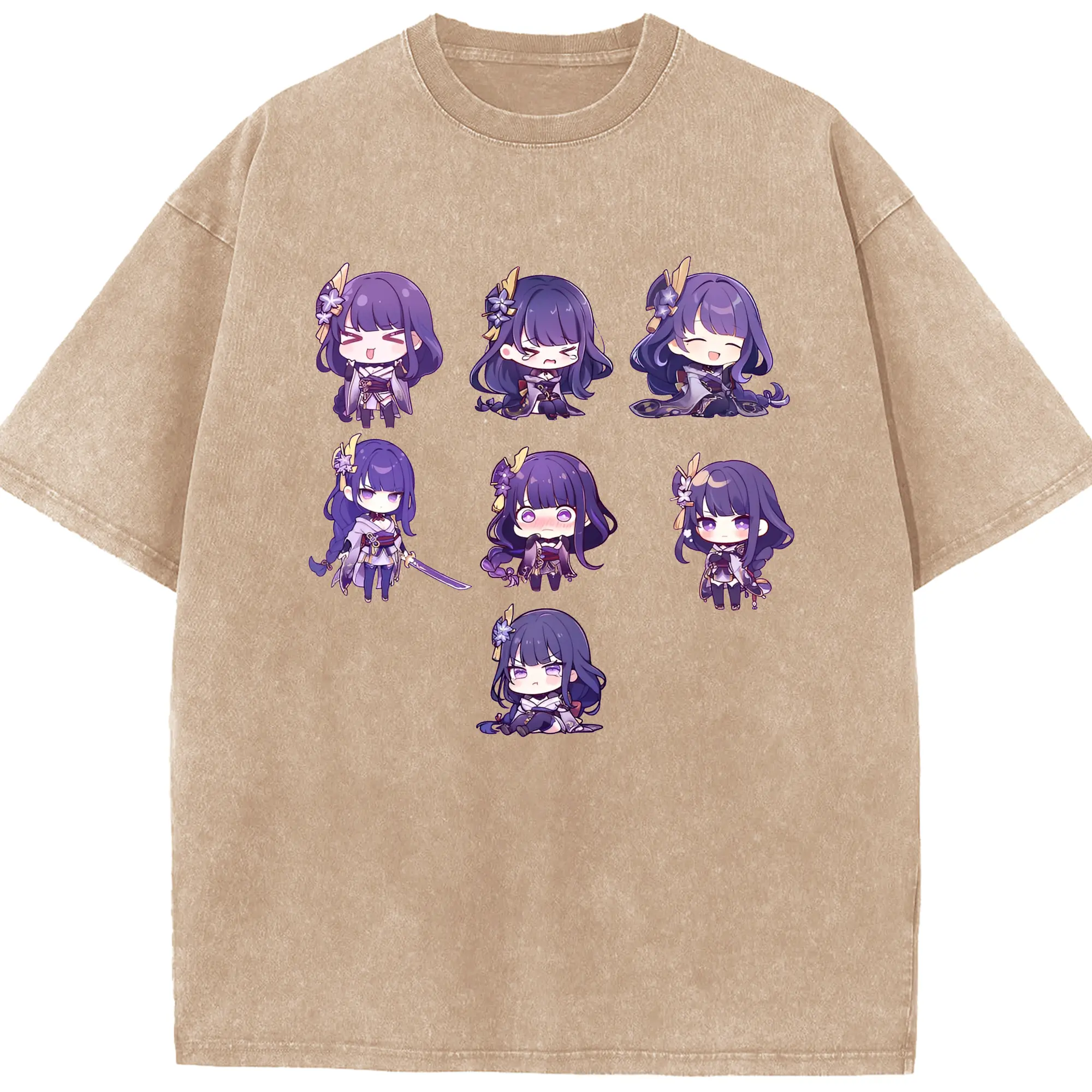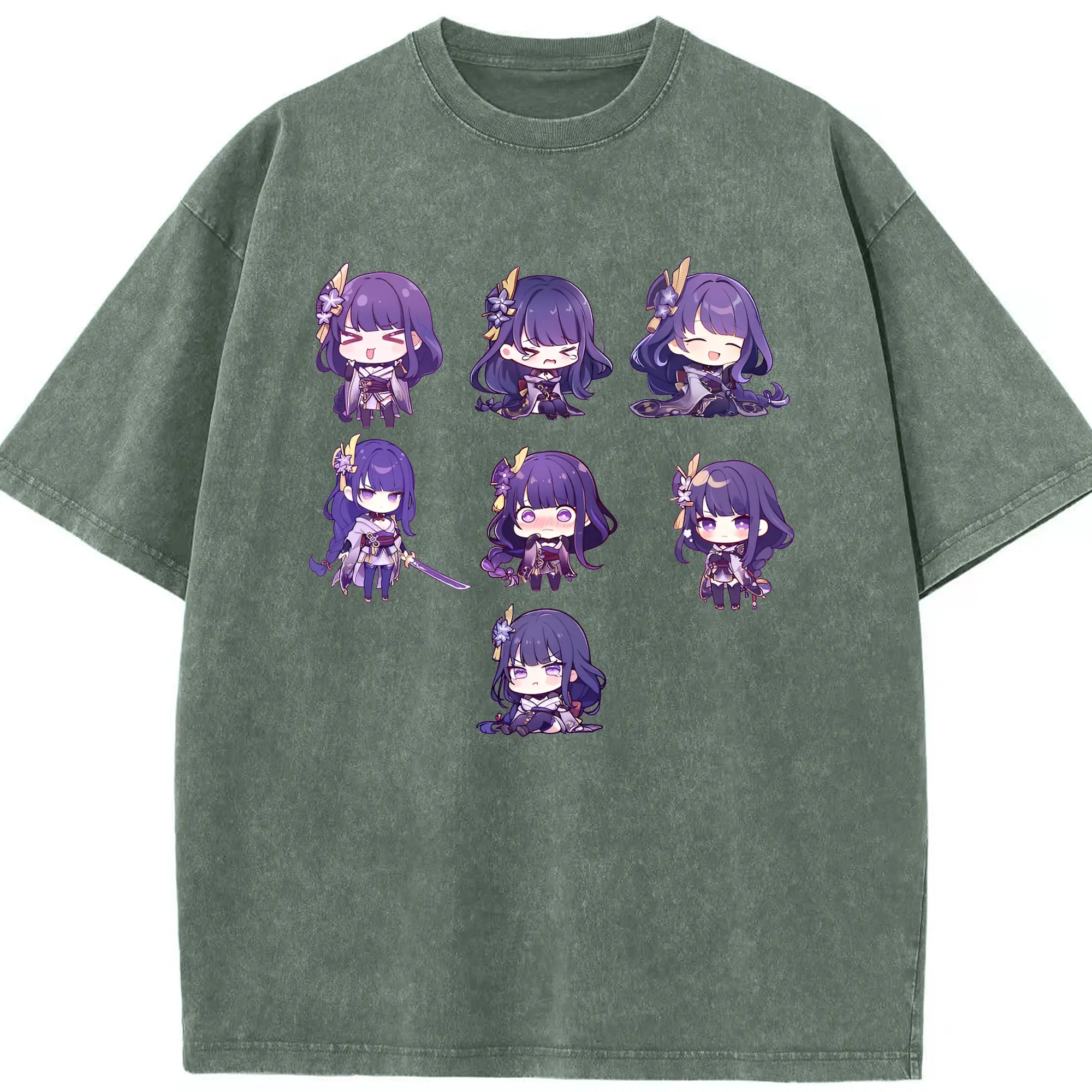 Genshin Impact 雷電将軍 ミニマルデザイン おしゃれスタイル - 綿100% 半袖Tシャツ ・ フロントプリント ・ 快適 通気性 ・ 日常使い 散歩 スポーツ用